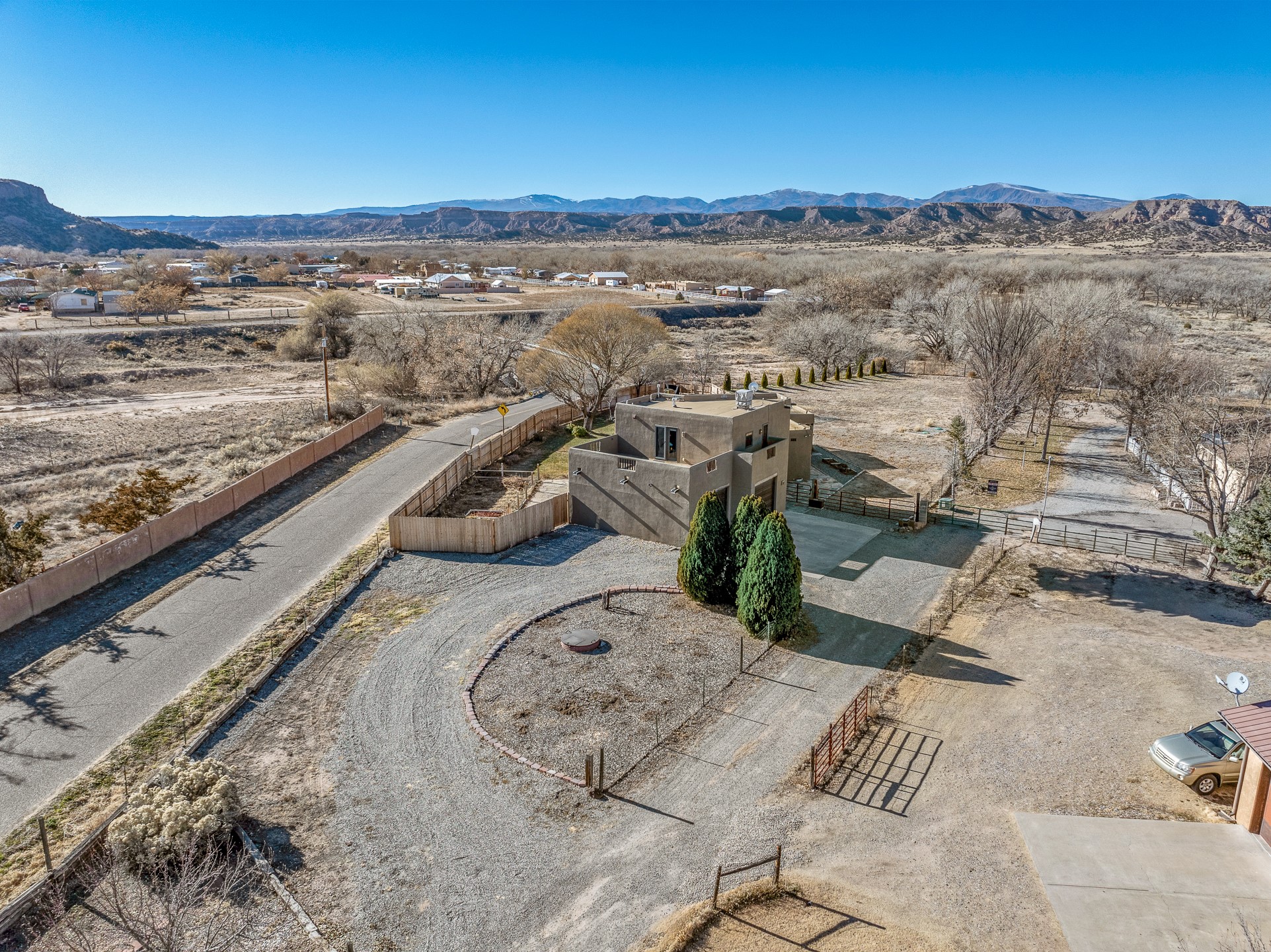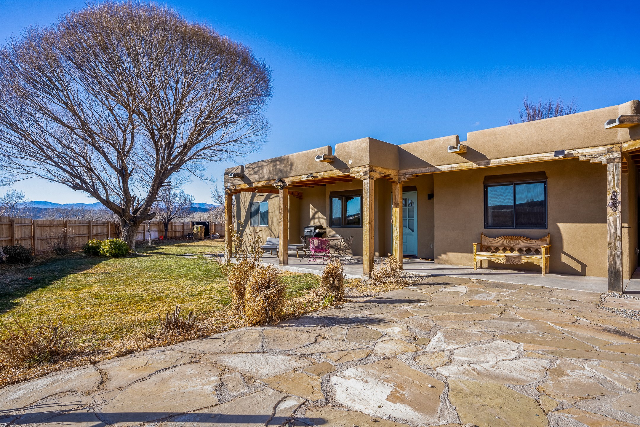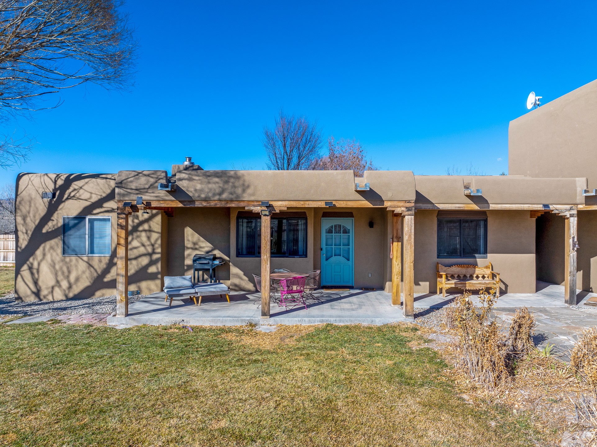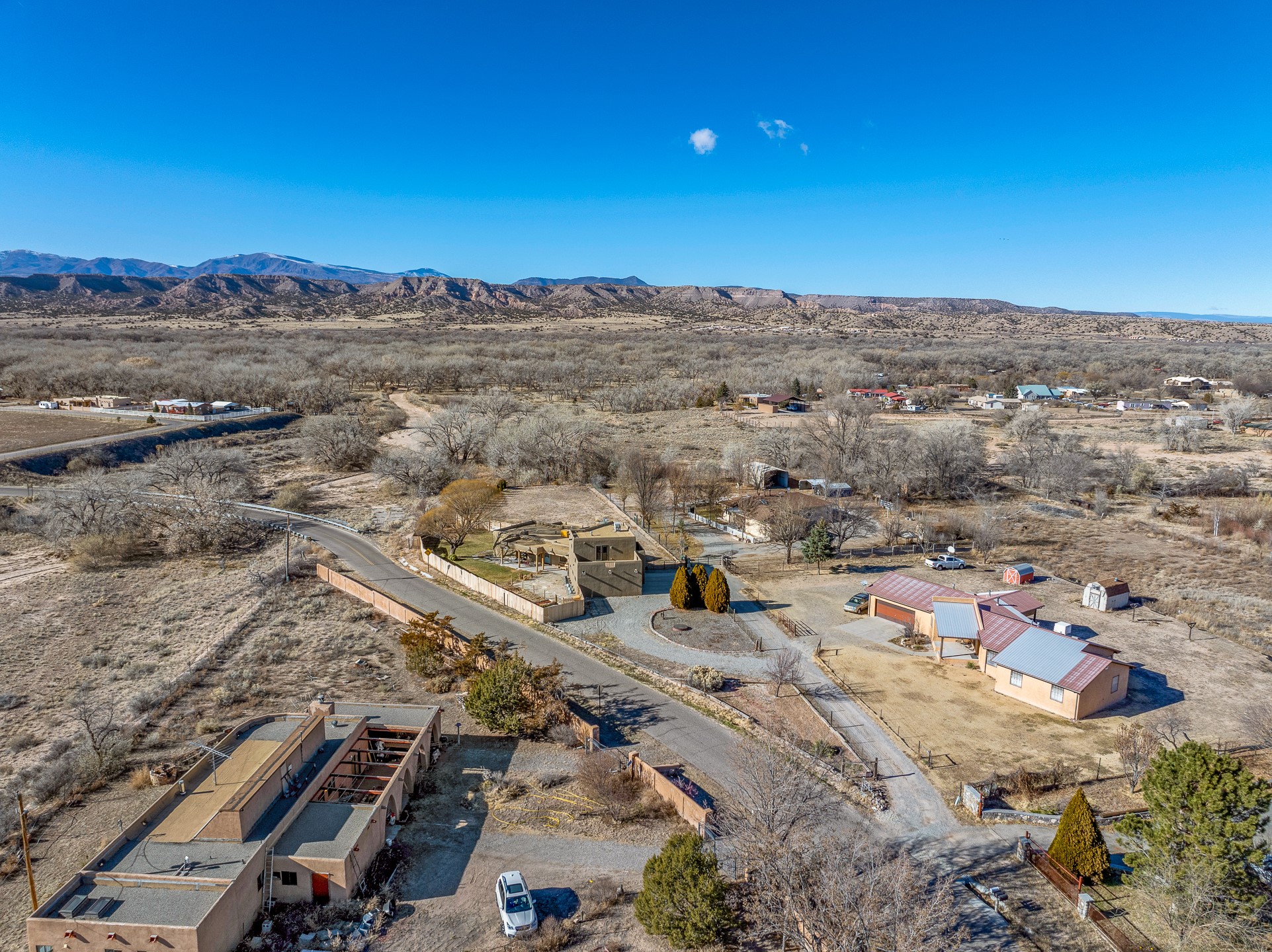 Views, Land, Single-Level Main House, Guest House, Large Garage and Shop, Fenced Yard, Water Rights, and more! This beautiful and well-maintained La Mesilla property sits near the base of Black Mesa and features great views of the Jemez Mountains and the Sangre de Cristos! Sited on 0.75 acres, the property includes a 3 bedroom / 2 bathroom single-level main house, and an attached guest house with a two-car garage and additional shop space. The gated yard greets you as you arrive at the property, and a short walk through the breezeway leads to the manicured back yard. The covered patio is a great spot for morning coffee or enjoying a stunning sunset over Black Mesa. Upon entering the main house, the living room will welcome you into the hub of the home. The kitchen is straight ahead, and it features beautiful wood cabinets, Saltillo tiles, and barstool seating on the peninsula leading into the dining room. A sliding glass door opens to the fenced yard on the north side of the property for easy outdoor access. The primary suite is located at the north side of the house and includes an updated, full bathroom. Two guest bedrooms and an additional updated, full bathroom are at the south end of the house. On the other side of the breezeway, you'll find the guest house, with a two-bay garage and additional shop space on the first level. Upstairs, you'll find a studio suite with a kitchen, fireplace, and full bathroom. Enjoy sunrises and sunsets from the roof deck! In addition to the domestic water well (1.0 acre-feet per annum), the property includes additional irrigation water rights (1.05 acre-feet per annum). This property is a must-see, so schedule your showing today before this one is gone!