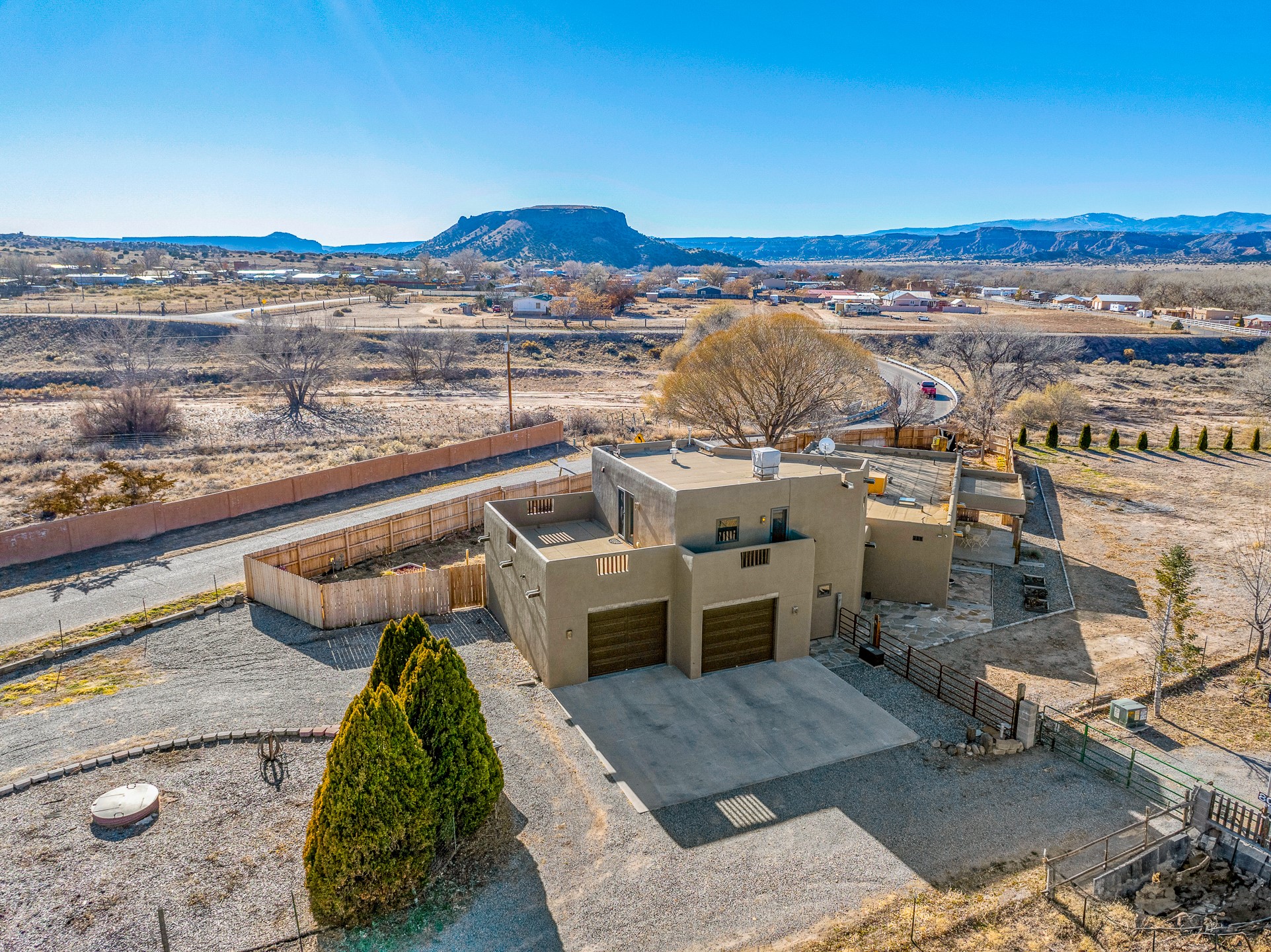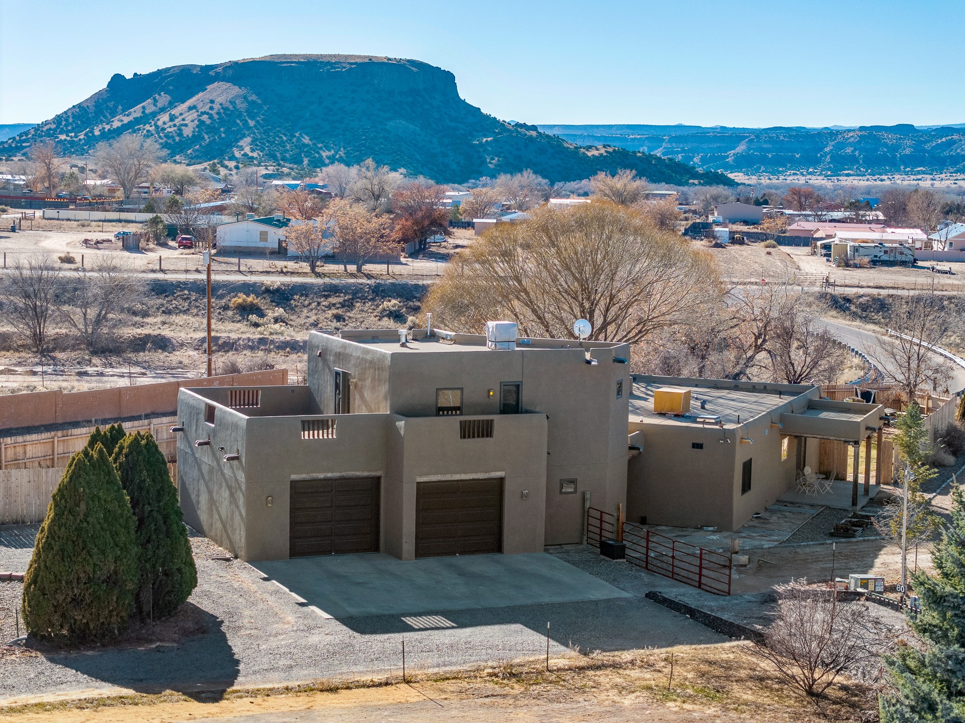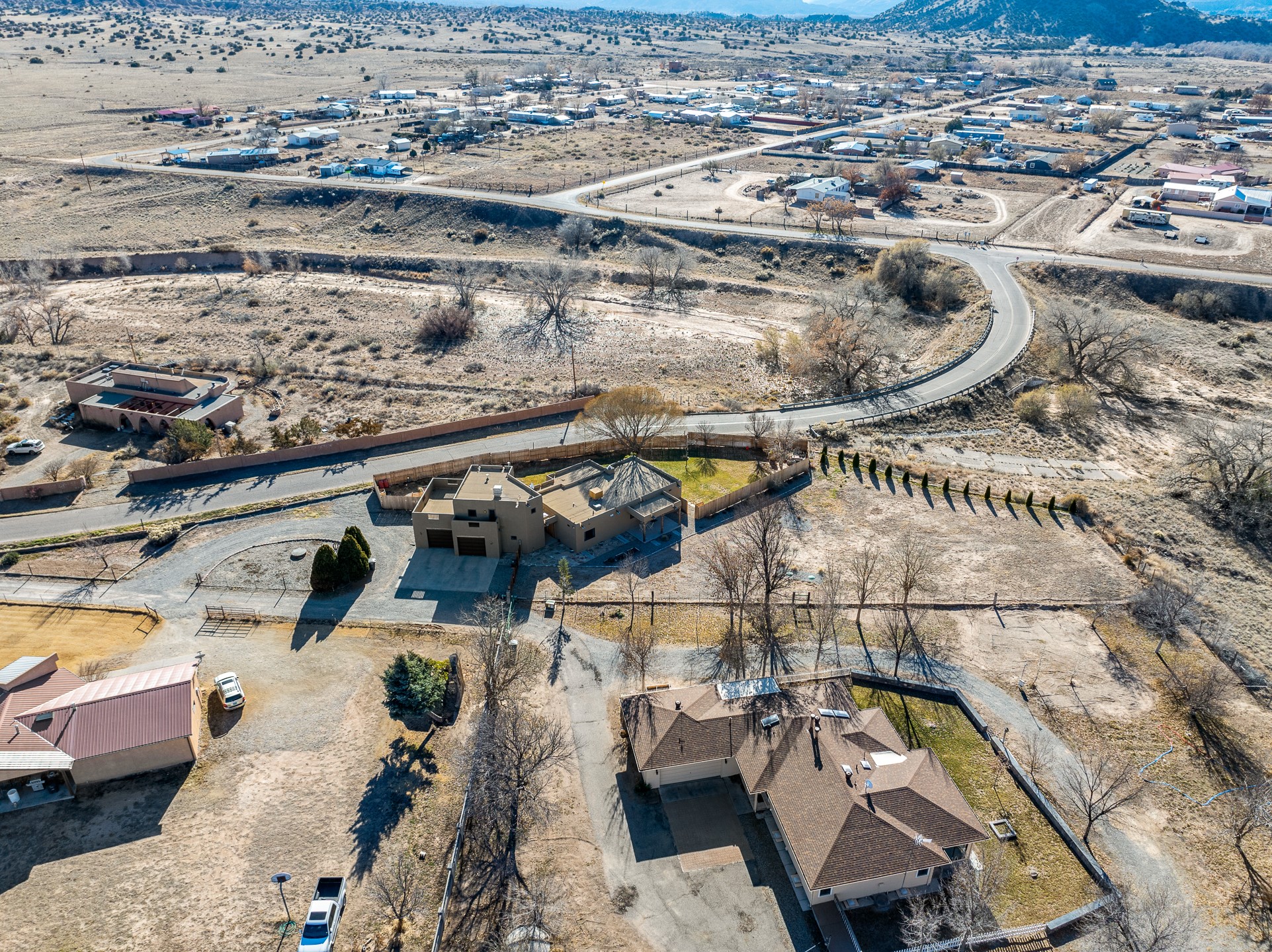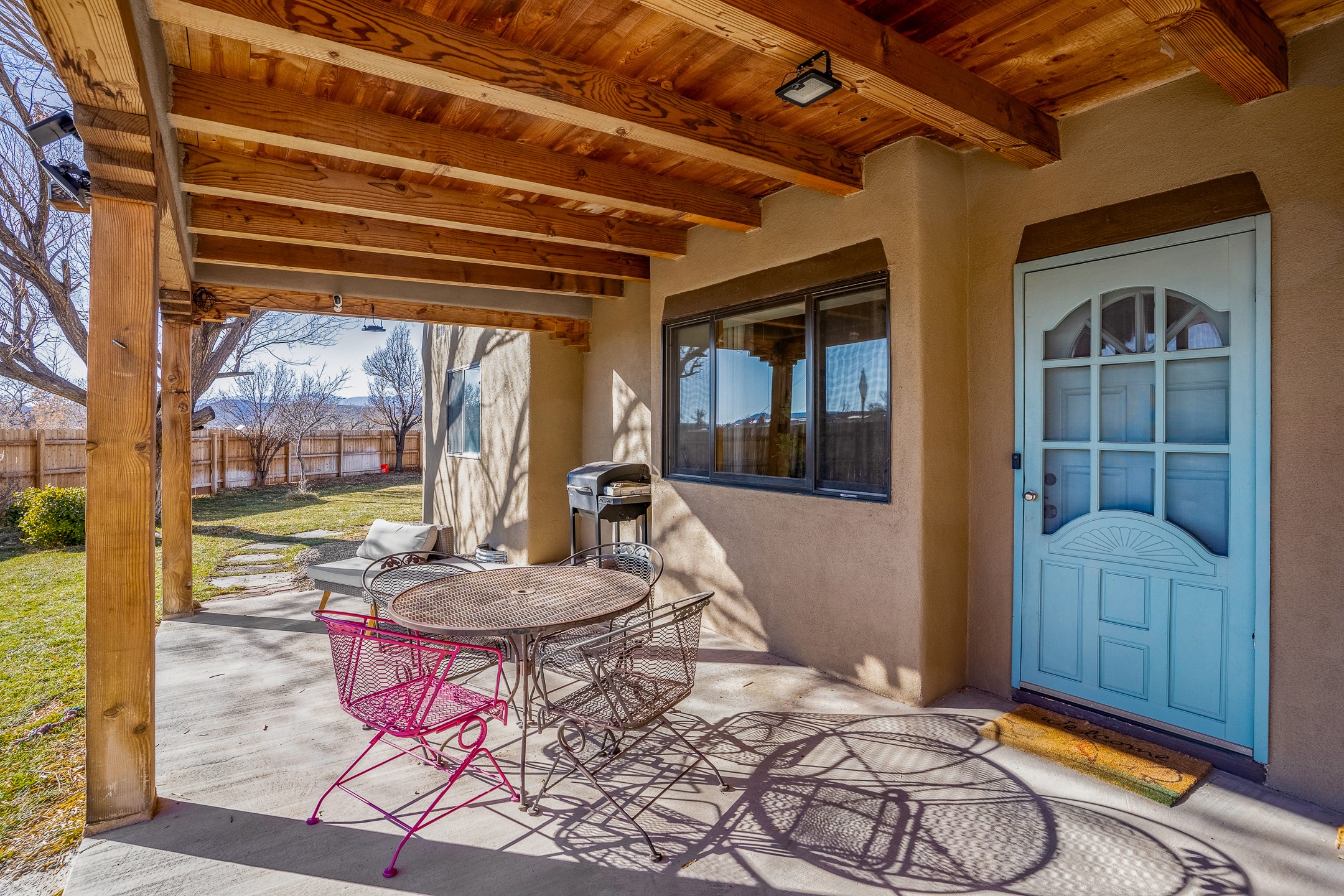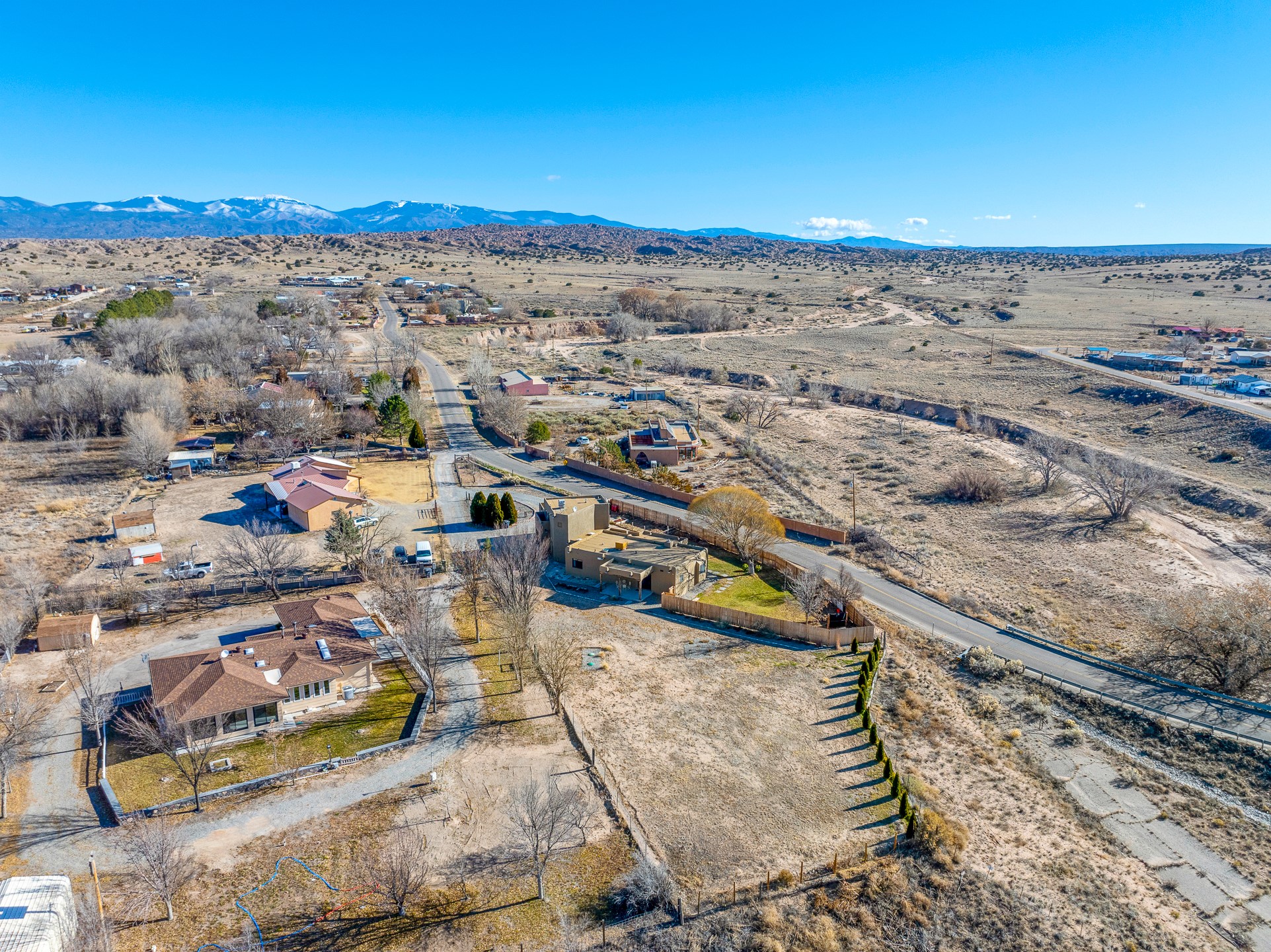 Views, Land, Single-Level Main House, Guest House, Large Garage and Shop, Fenced Yard, Water Rights, and more! This beautiful and well-maintained La Mesilla property sits near the base of Black Mesa and features great views of the Jemez Mountains and the Sangre de Cristos! Sited on 0.75 acres, the property includes a 3 bedroom / 2 bathroom single-level main house, and an attached guest house with a two-car garage and additional shop space. The gated yard greets you as you arrive at the property, and a short walk through the breezeway leads to the manicured back yard. The covered patio is a great spot for morning coffee or enjoying a stunning sunset over Black Mesa. Upon entering the main house, the living room will welcome you into the hub of the home. The kitchen is straight ahead, and it features beautiful wood cabinets, Saltillo tiles, and barstool seating on the peninsula leading into the dining room. A sliding glass door opens to the fenced yard on the north side of the property for easy outdoor access. The primary suite is located at the north side of the house and includes an updated, full bathroom. Two guest bedrooms and an additional updated, full bathroom are at the south end of the house. On the other side of the breezeway, you'll find the guest house, with a two-bay garage and additional shop space on the first level. Upstairs, you'll find a studio suite with a kitchen, fireplace, and full bathroom. Enjoy sunrises and sunsets from the roof deck! In addition to the domestic water well (1.0 acre-feet per annum), the property includes additional irrigation water rights (1.05 acre-feet per annum). This property is a must-see, so schedule your showing today before this one is gone!