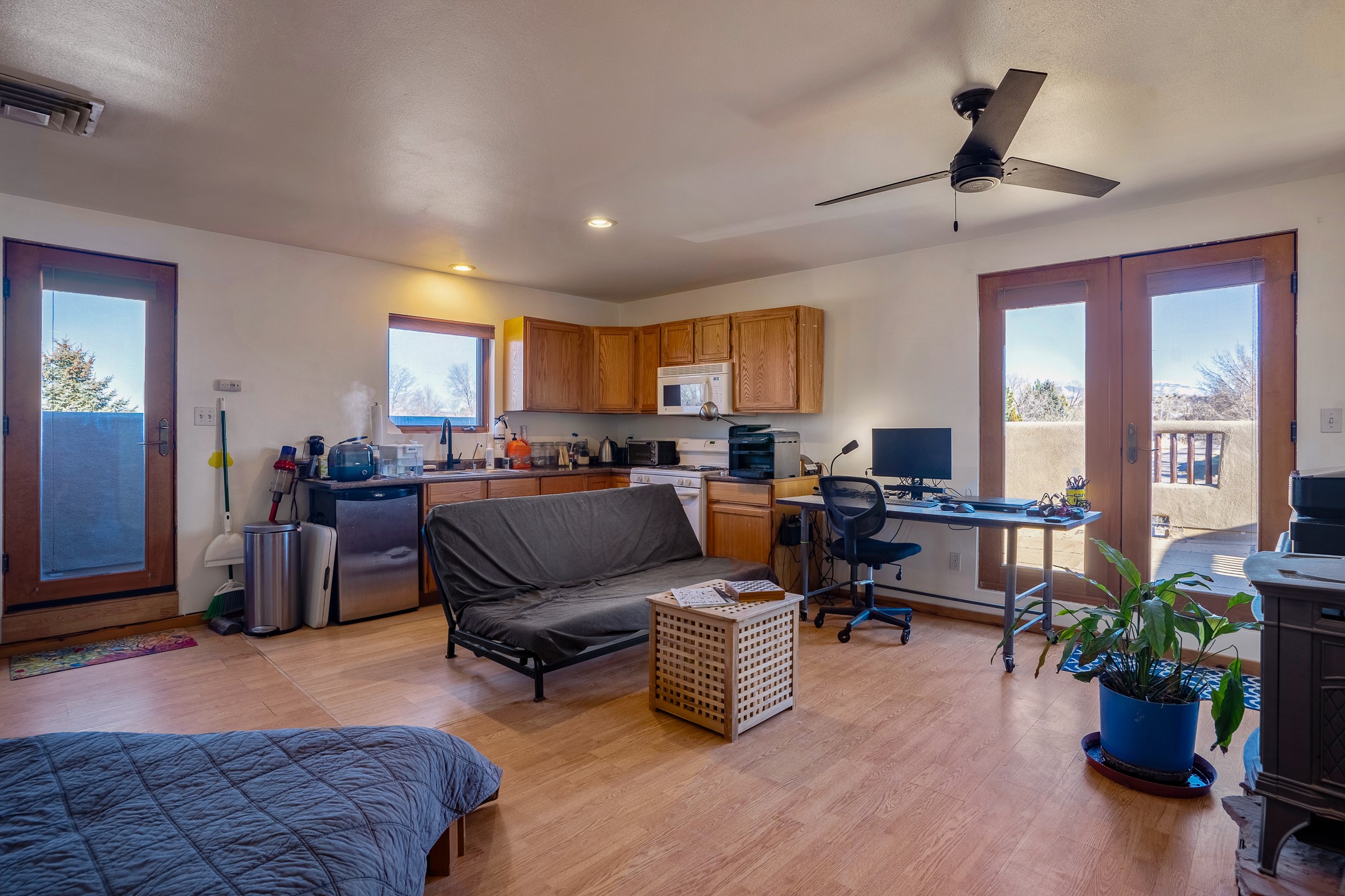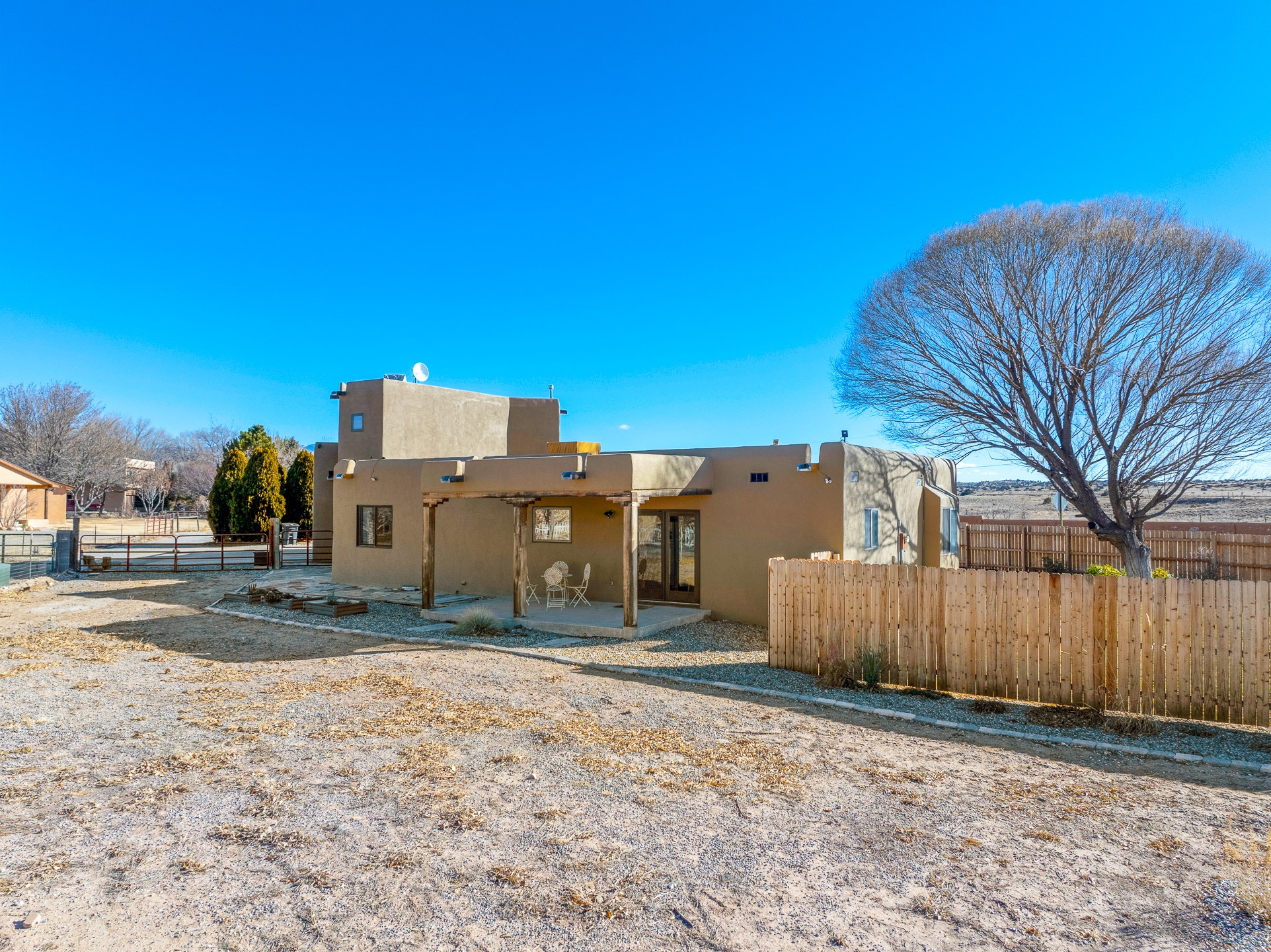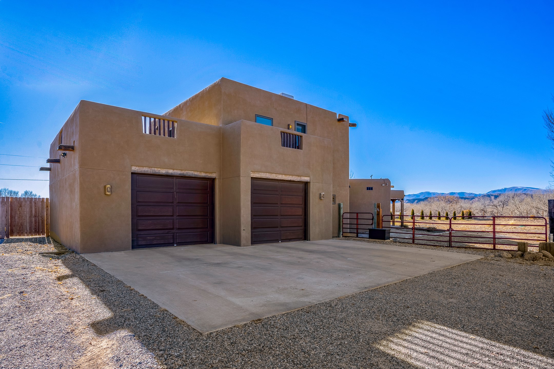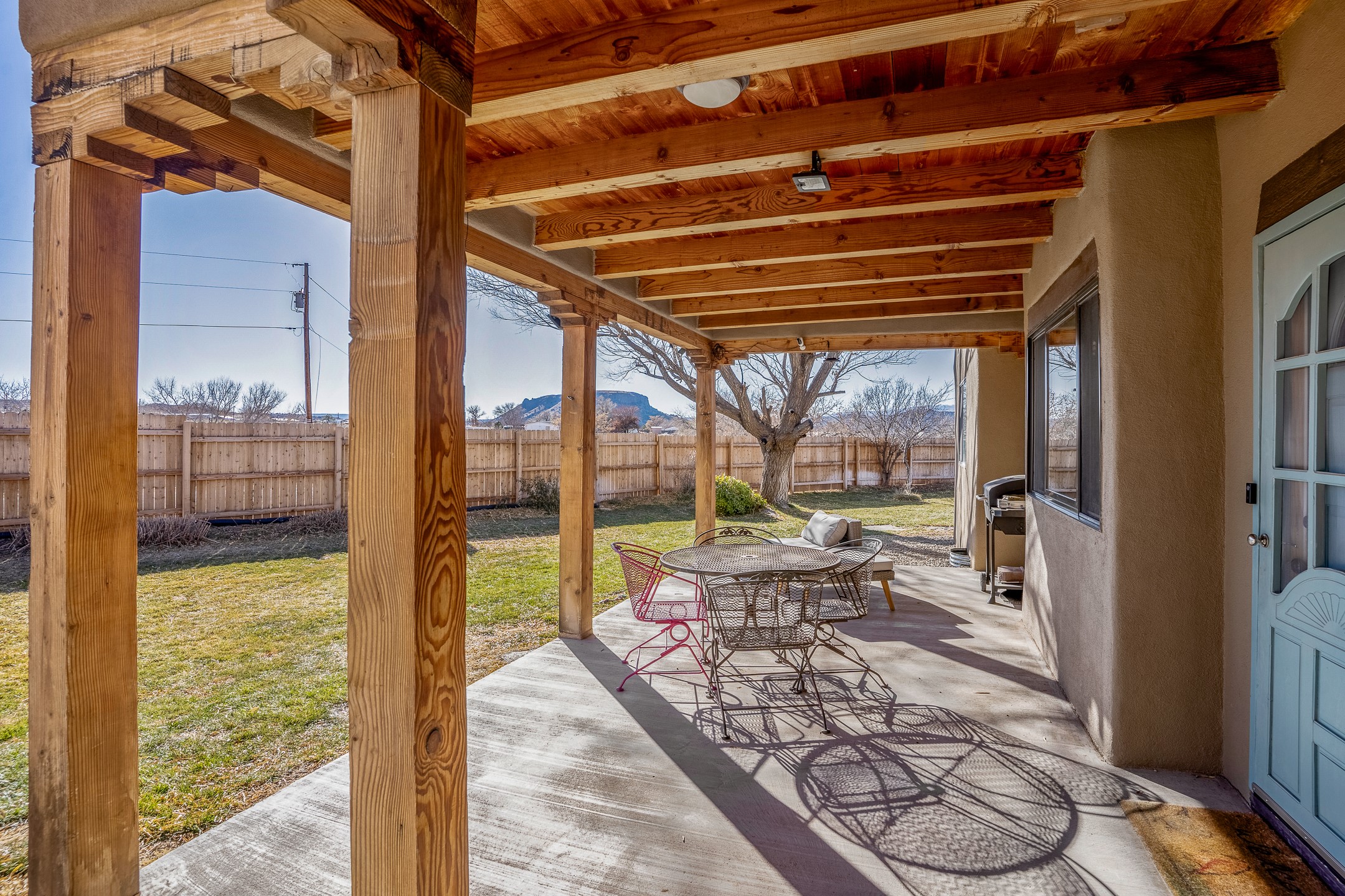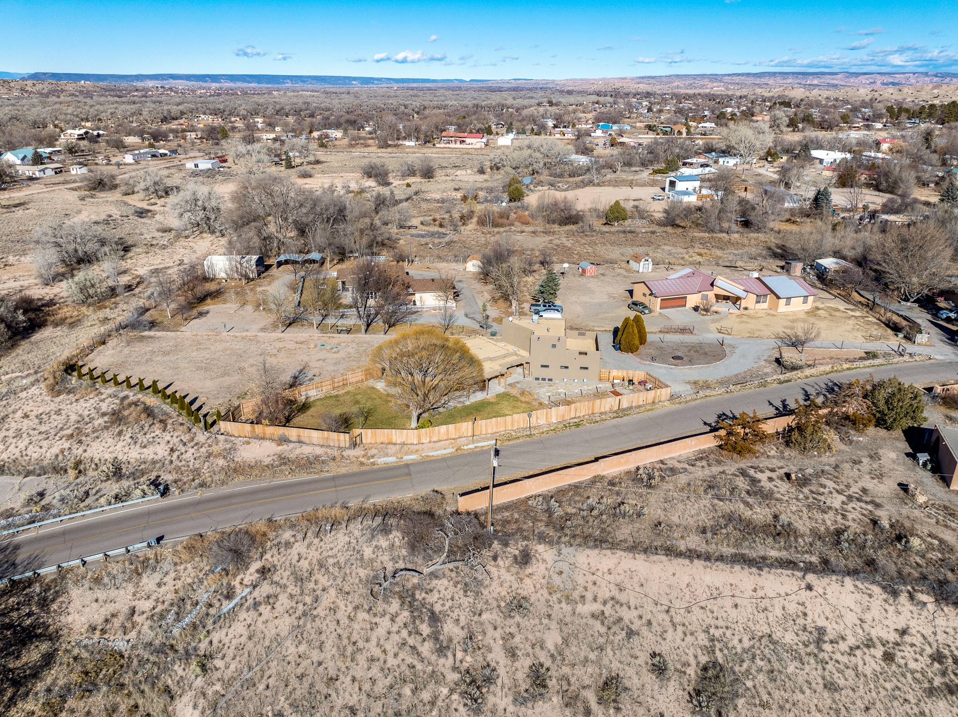 Views, Land, Single-Level Main House, Guest House, Large Garage and Shop, Fenced Yard, Water Rights, and more! This beautiful and well-maintained La Mesilla property sits near the base of Black Mesa and features great views of the Jemez Mountains and the Sangre de Cristos! Sited on 0.75 acres, the property includes a 3 bedroom / 2 bathroom single-level main house, and an attached guest house with a two-car garage and additional shop space. The gated yard greets you as you arrive at the property, and a short walk through the breezeway leads to the manicured back yard. The covered patio is a great spot for morning coffee or enjoying a stunning sunset over Black Mesa. Upon entering the main house, the living room will welcome you into the hub of the home. The kitchen is straight ahead, and it features beautiful wood cabinets, Saltillo tiles, and barstool seating on the peninsula leading into the dining room. A sliding glass door opens to the fenced yard on the north side of the property for easy outdoor access. The primary suite is located at the north side of the house and includes an updated, full bathroom. Two guest bedrooms and an additional updated, full bathroom are at the south end of the house. On the other side of the breezeway, you'll find the guest house, with a two-bay garage and additional shop space on the first level. Upstairs, you'll find a studio suite with a kitchen, fireplace, and full bathroom. Enjoy sunrises and sunsets from the roof deck! In addition to the domestic water well (1.0 acre-feet per annum), the property includes additional irrigation water rights (1.05 acre-feet per annum). This property is a must-see, so schedule your showing today before this one is gone!