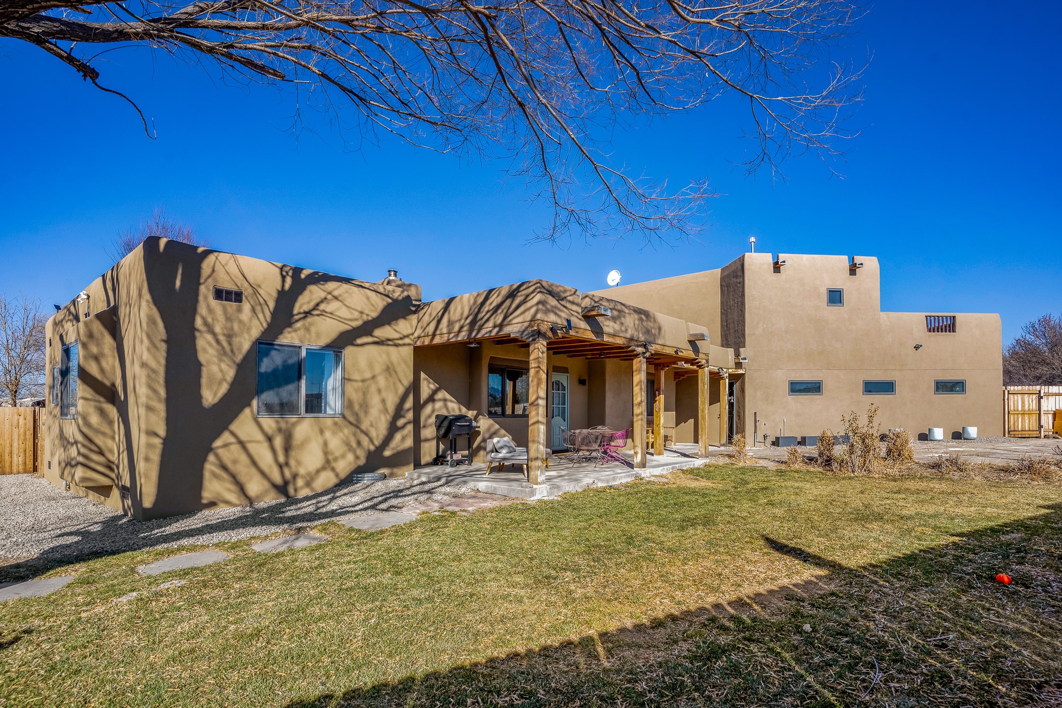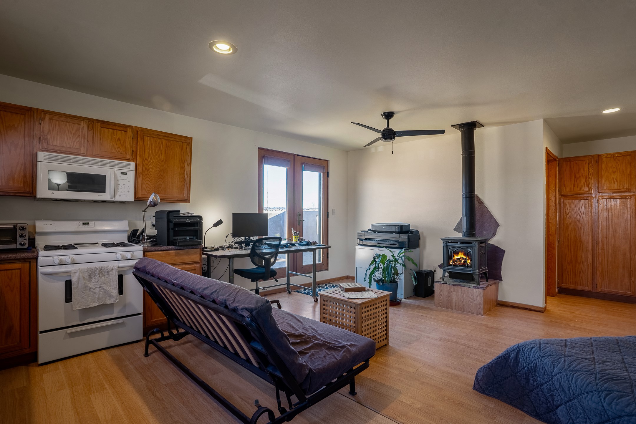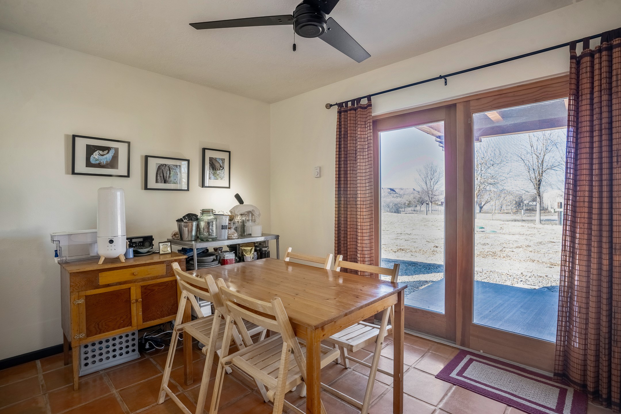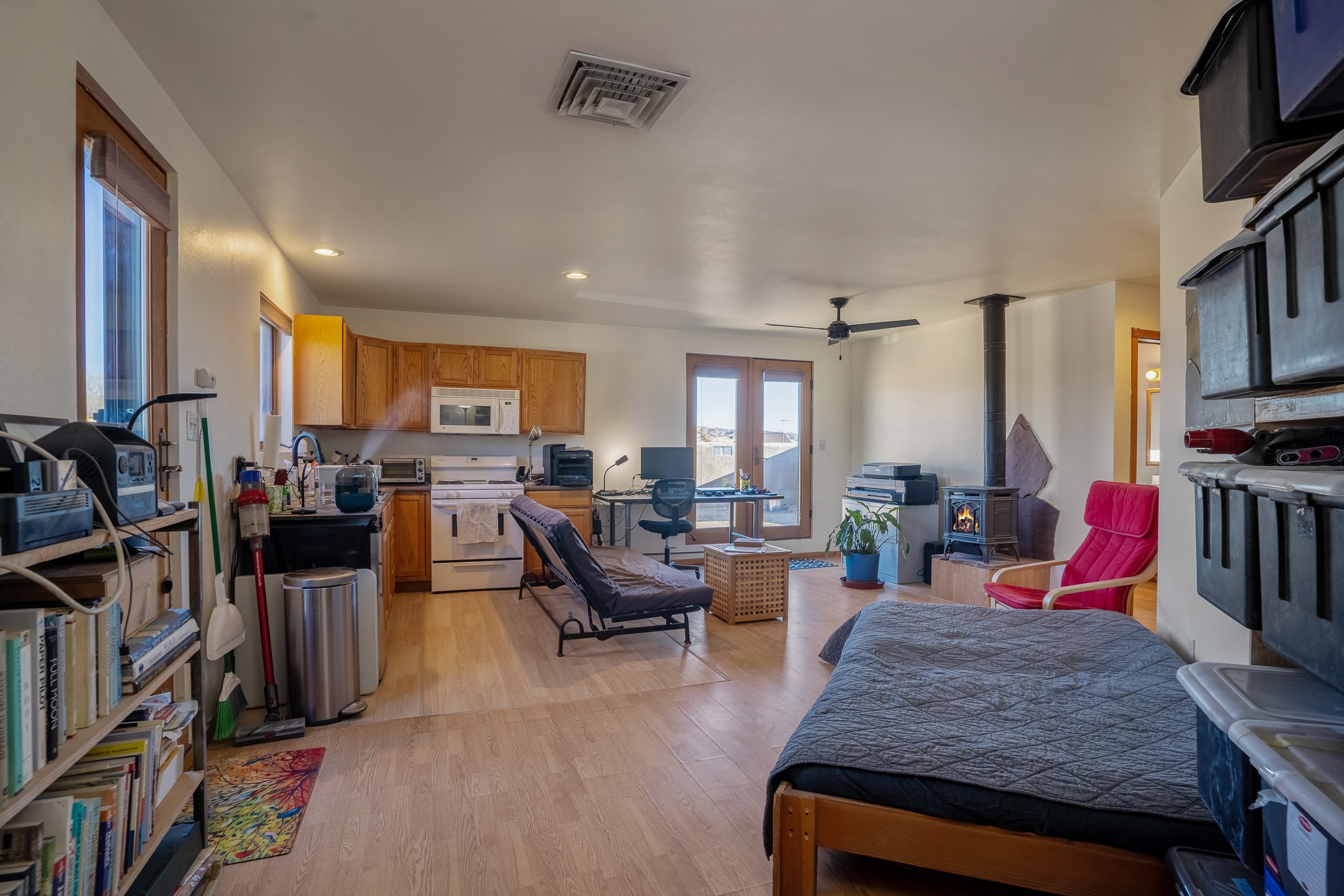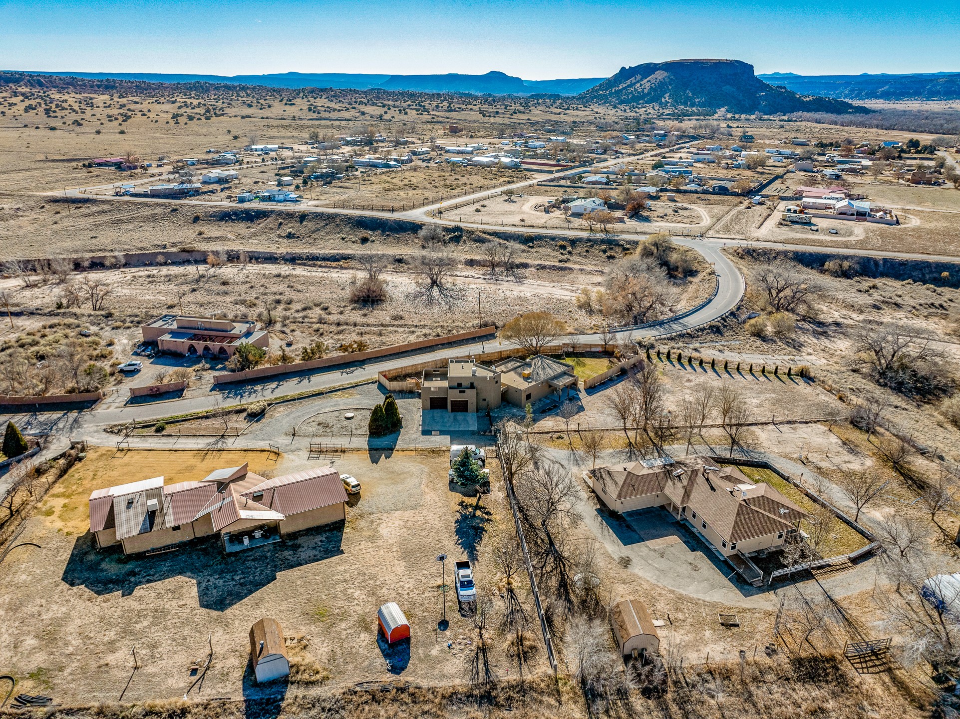 Views, Land, Single-Level Main House, Guest House, Large Garage and Shop, Fenced Yard, Water Rights, and more! This beautiful and well-maintained La Mesilla property sits near the base of Black Mesa and features great views of the Jemez Mountains and the Sangre de Cristos! Sited on 0.75 acres, the property includes a 3 bedroom / 2 bathroom single-level main house, and an attached guest house with a two-car garage and additional shop space. The gated yard greets you as you arrive at the property, and a short walk through the breezeway leads to the manicured back yard. The covered patio is a great spot for morning coffee or enjoying a stunning sunset over Black Mesa. Upon entering the main house, the living room will welcome you into the hub of the home. The kitchen is straight ahead, and it features beautiful wood cabinets, Saltillo tiles, and barstool seating on the peninsula leading into the dining room. A sliding glass door opens to the fenced yard on the north side of the property for easy outdoor access. The primary suite is located at the north side of the house and includes an updated, full bathroom. Two guest bedrooms and an additional updated, full bathroom are at the south end of the house. On the other side of the breezeway, you'll find the guest house, with a two-bay garage and additional shop space on the first level. Upstairs, you'll find a studio suite with a kitchen, fireplace, and full bathroom. Enjoy sunrises and sunsets from the roof deck! In addition to the domestic water well (1.0 acre-feet per annum), the property includes additional irrigation water rights (1.05 acre-feet per annum). This property is a must-see, so schedule your showing today before this one is gone!