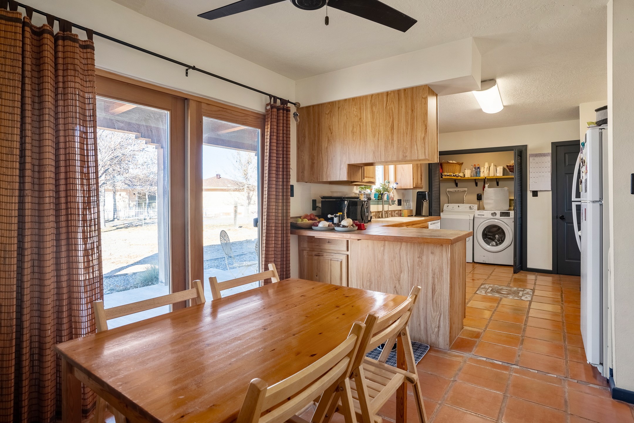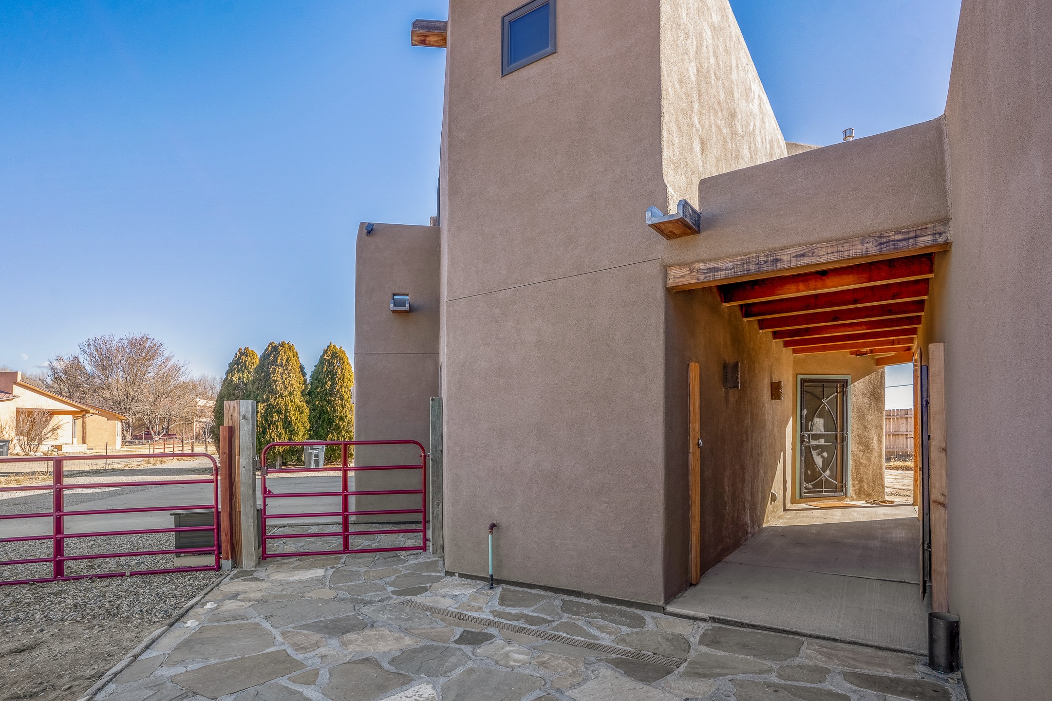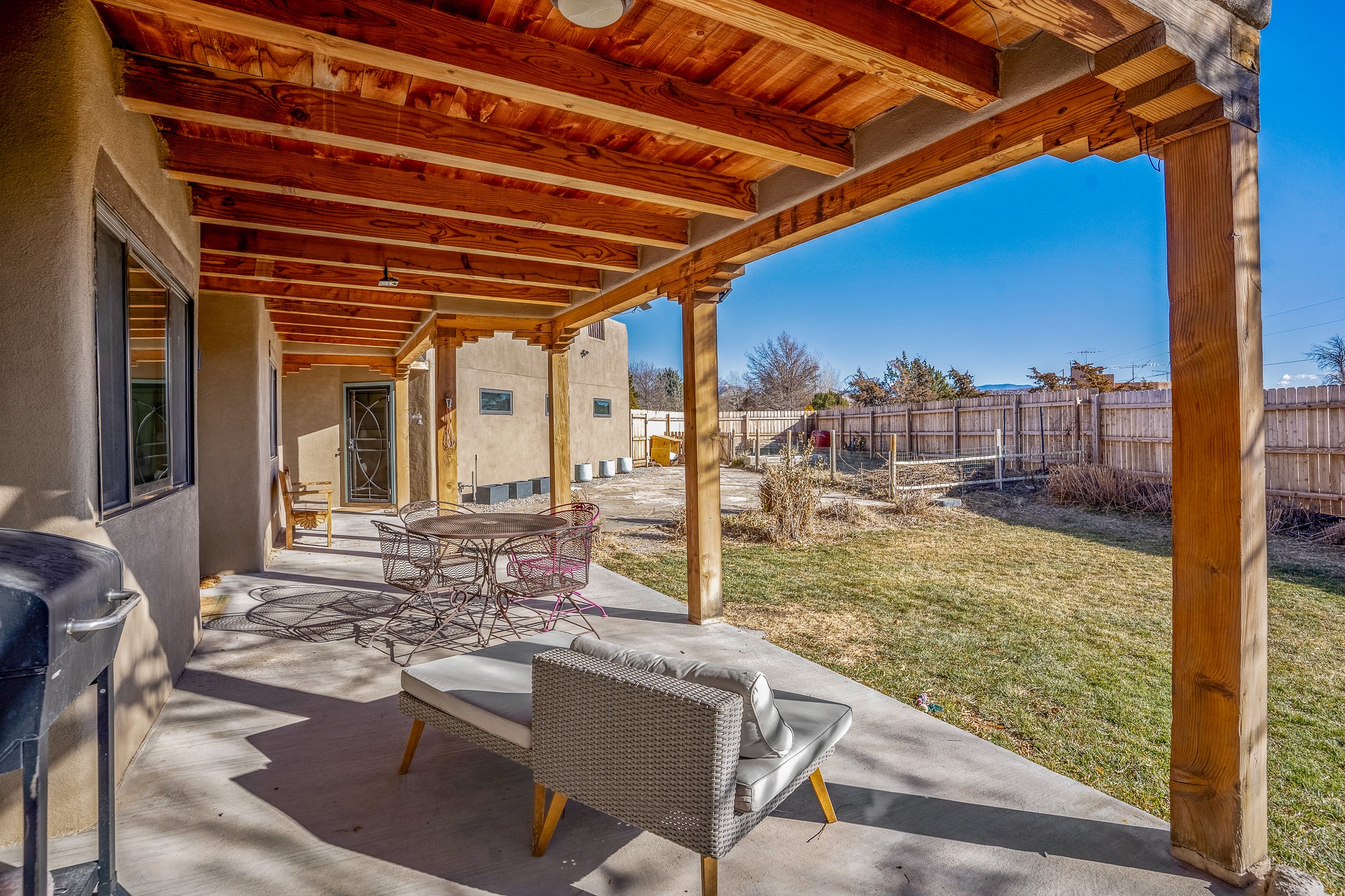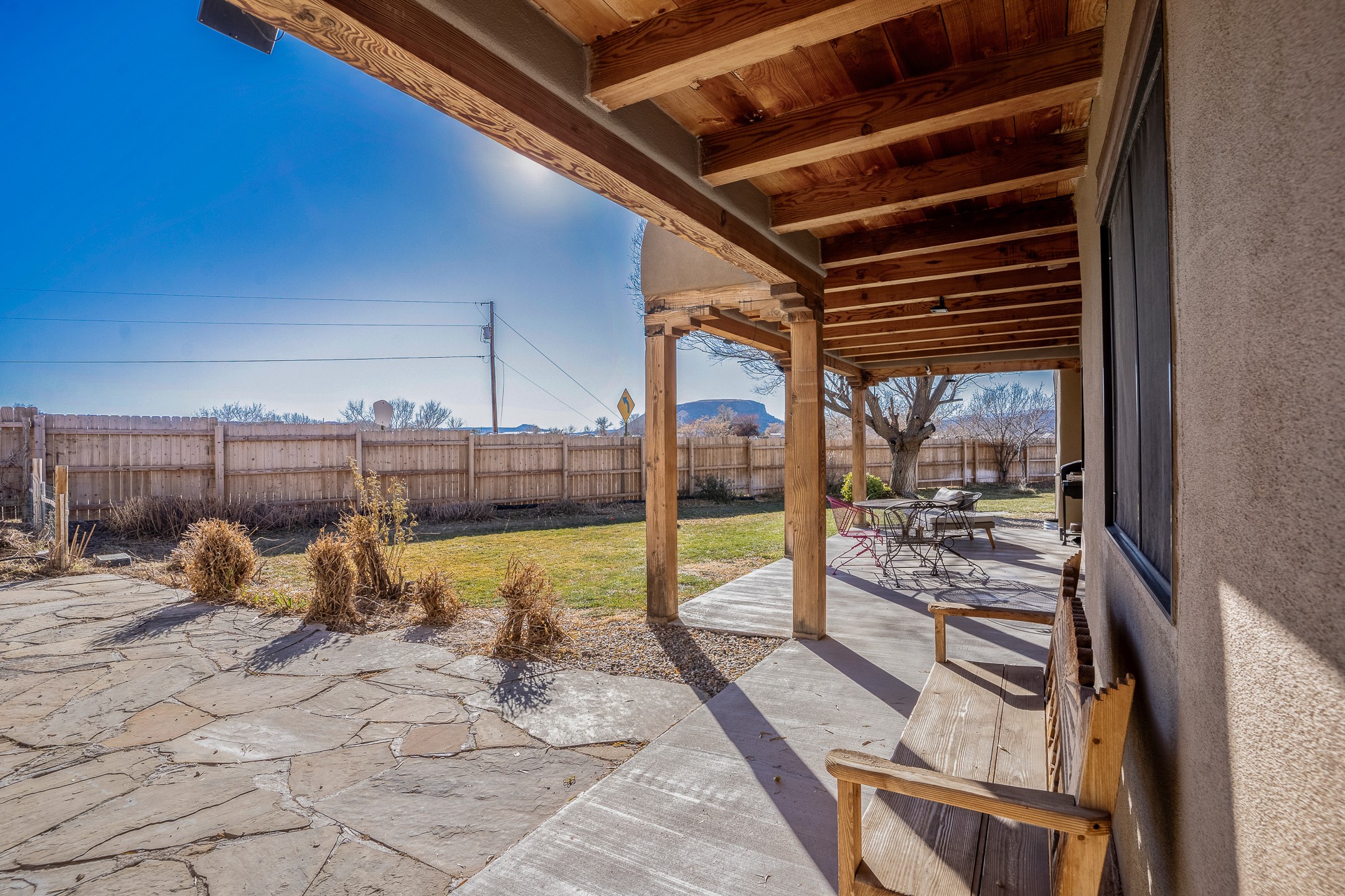 Views, Land, Single-Level Main House, Guest House, Large Garage and Shop, Fenced Yard, Water Rights, and more! This beautiful and well-maintained La Mesilla property sits near the base of Black Mesa and features great views of the Jemez Mountains and the Sangre de Cristos! Sited on 0.75 acres, the property includes a 3 bedroom / 2 bathroom single-level main house, and an attached guest house with a two-car garage and additional shop space. The gated yard greets you as you arrive at the property, and a short walk through the breezeway leads to the manicured back yard. The covered patio is a great spot for morning coffee or enjoying a stunning sunset over Black Mesa. Upon entering the main house, the living room will welcome you into the hub of the home. The kitchen is straight ahead, and it features beautiful wood cabinets, Saltillo tiles, and barstool seating on the peninsula leading into the dining room. A sliding glass door opens to the fenced yard on the north side of the property for easy outdoor access. The primary suite is located at the north side of the house and includes an updated, full bathroom. Two guest bedrooms and an additional updated, full bathroom are at the south end of the house. On the other side of the breezeway, you'll find the guest house, with a two-bay garage and additional shop space on the first level. Upstairs, you'll find a studio suite with a kitchen, fireplace, and full bathroom. Enjoy sunrises and sunsets from the roof deck! In addition to the domestic water well (1.0 acre-feet per annum), the property includes additional irrigation water rights (1.05 acre-feet per annum). This property is a must-see, so schedule your showing today before this one is gone!