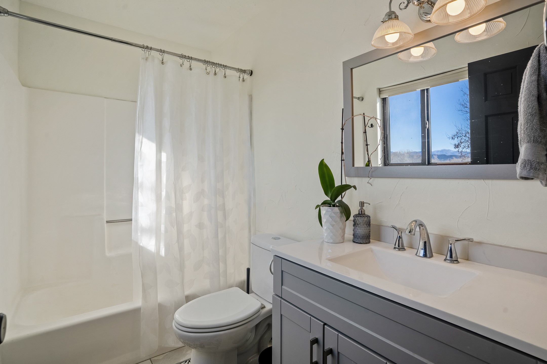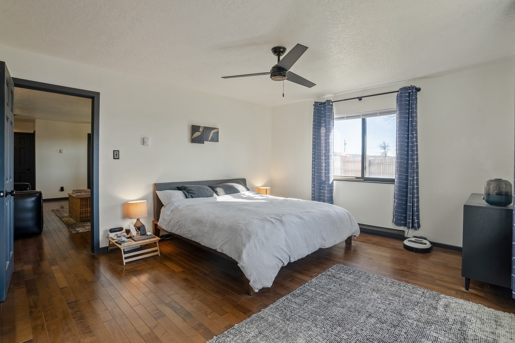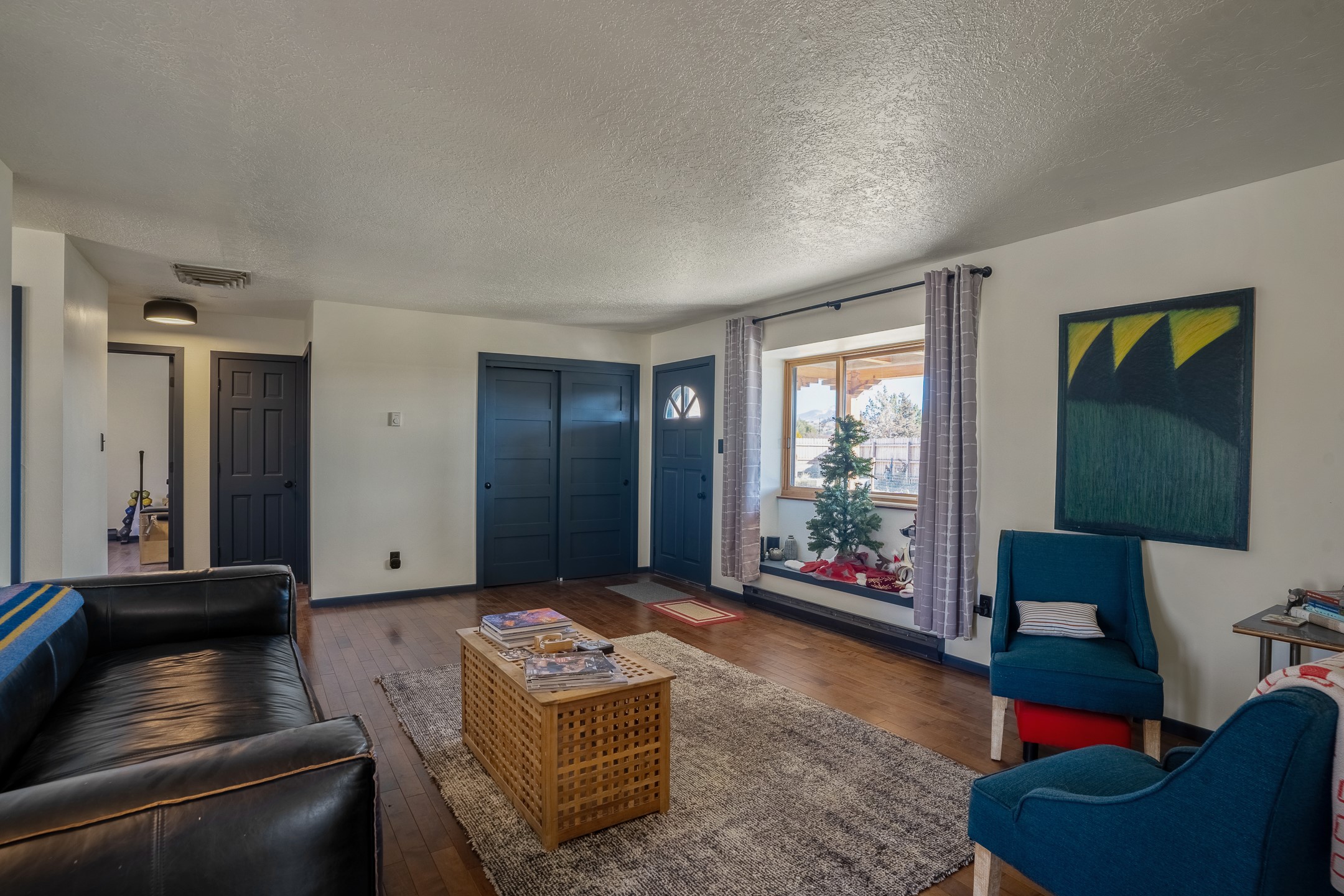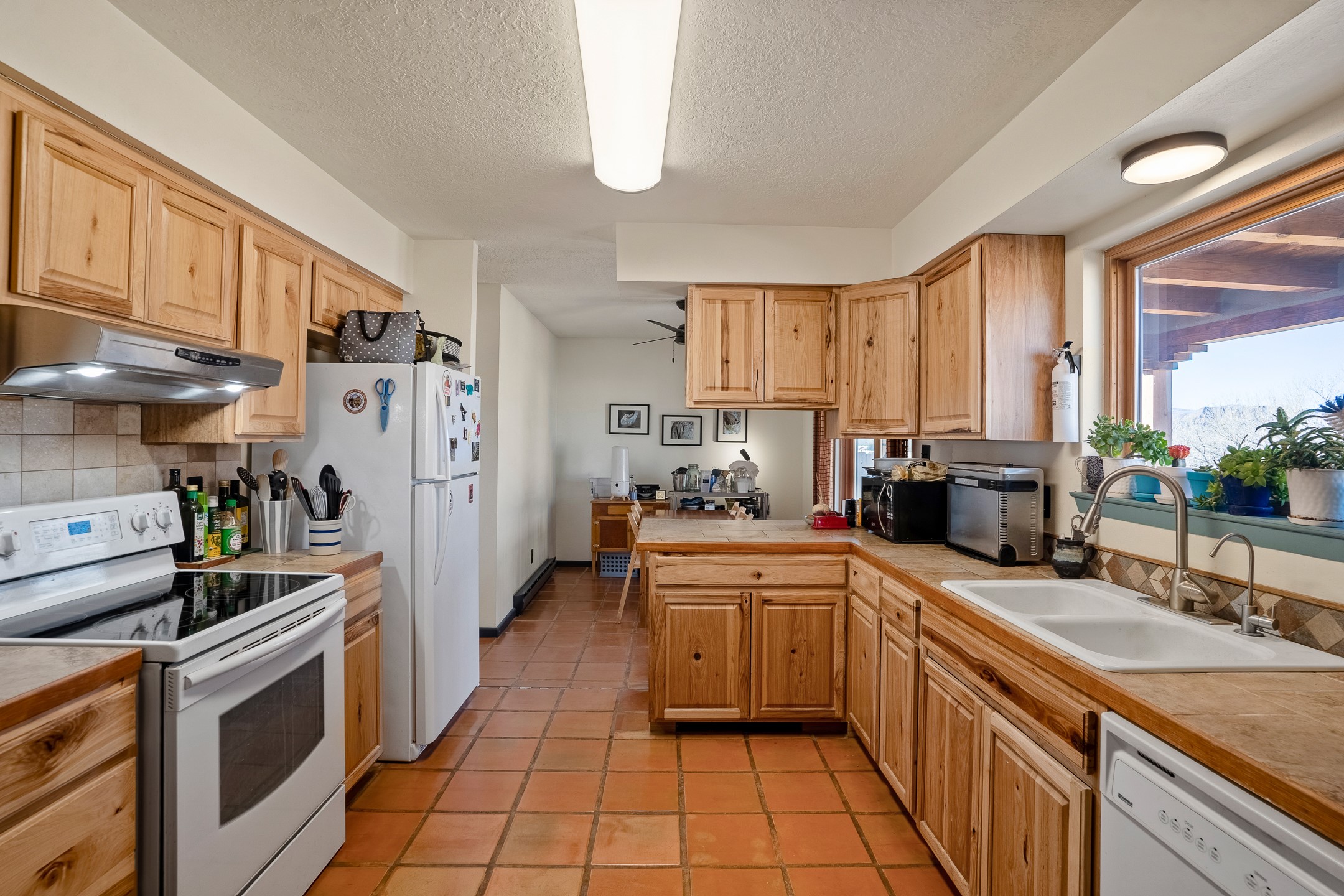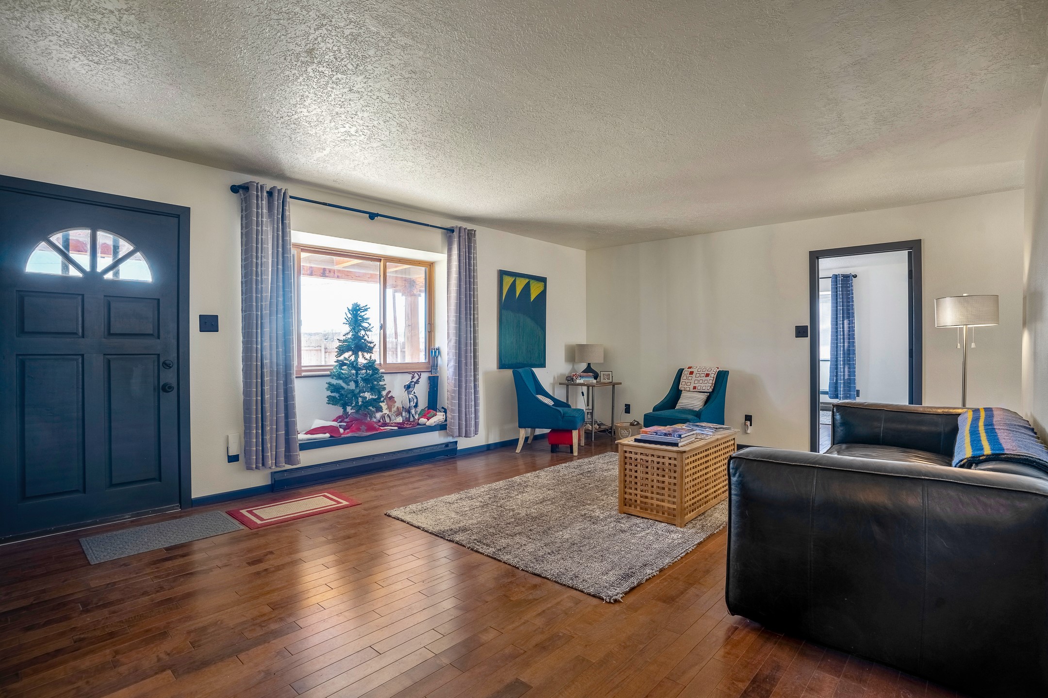 Views, Land, Single-Level Main House, Guest House, Large Garage and Shop, Fenced Yard, Water Rights, and more! This beautiful and well-maintained La Mesilla property sits near the base of Black Mesa and features great views of the Jemez Mountains and the Sangre de Cristos! Sited on 0.75 acres, the property includes a 3 bedroom / 2 bathroom single-level main house, and an attached guest house with a two-car garage and additional shop space. The gated yard greets you as you arrive at the property, and a short walk through the breezeway leads to the manicured back yard. The covered patio is a great spot for morning coffee or enjoying a stunning sunset over Black Mesa. Upon entering the main house, the living room will welcome you into the hub of the home. The kitchen is straight ahead, and it features beautiful wood cabinets, Saltillo tiles, and barstool seating on the peninsula leading into the dining room. A sliding glass door opens to the fenced yard on the north side of the property for easy outdoor access. The primary suite is located at the north side of the house and includes an updated, full bathroom. Two guest bedrooms and an additional updated, full bathroom are at the south end of the house. On the other side of the breezeway, you'll find the guest house, with a two-bay garage and additional shop space on the first level. Upstairs, you'll find a studio suite with a kitchen, fireplace, and full bathroom. Enjoy sunrises and sunsets from the roof deck! In addition to the domestic water well (1.0 acre-feet per annum), the property includes additional irrigation water rights (1.05 acre-feet per annum). This property is a must-see, so schedule your showing today before this one is gone!