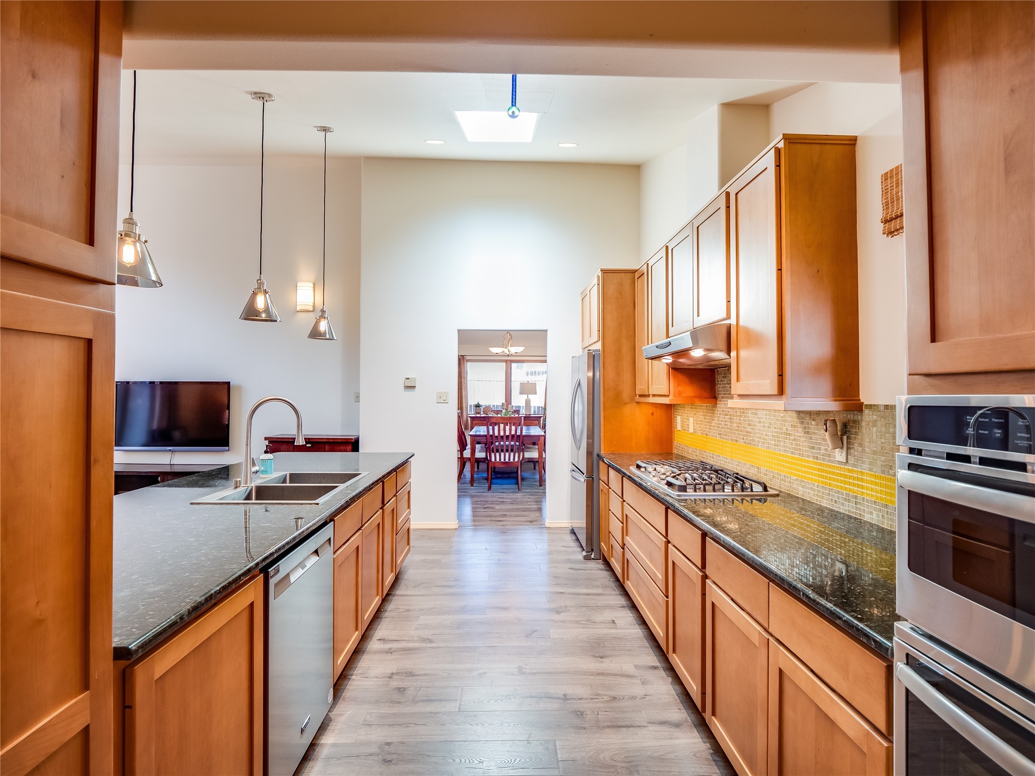 In the heart of North Mesa, this gorgeous two-story home offers the perfect blend of style and comfort. The large, low-maintenance front yard welcomes you, leading up to a two-car garage with direct access to the home. Step inside to find grey laminate wood floors that flow throughout the main living areas. To the left of the entryway is a bright living and dining space, featuring vaulted ceilings and a striking stone wood-burning fireplace that serves as the room's centerpiece. A spacious kitchen with tons of rich wood cabinets for storage, granite counters, stainless steel appliances. The kitchen's large island overlooks the family room, where a cozy wood-burning stove adds warmth, and sliders lead to the fully fenced-in backyard, an entertainer space with a covered patio and a retaining walls showcasing fruit trees. The main floor continues with two guest bedrooms, each featuring walk-in closets, and a full guest bathroom. Down the hall is a guest en-suite with a walk-in closet and its own bathroom, complete with a single-sink vanity and tiled shower/tub. A spacious laundry room with included washer and dryer completes the main level. The second floor boasts a private guest en-suite with a charming loft and access to a shared deck. The primary en-suite is bathed in natural light, thanks to a wall of windows and sliding glass doors that lead to a shared deck perfect for enjoying a quiet morning coffee or stargazing at night. The spa-inspired primary bathroom is the epitome of relaxation. Featuring sleek tile floors and a stunning walk-in shower with a glass door enclosure, tiled from floor to ceiling for a luxurious and polished look. A deep soaking tub for unwinding after a long day, complemented by a large double-sink vanity. Located near horse stables, parks, and scenic hiking trails, this home provides a perfect balance of peaceful living and easy access to outdoor recreation. Don't miss your chance to make this incredible property your own!