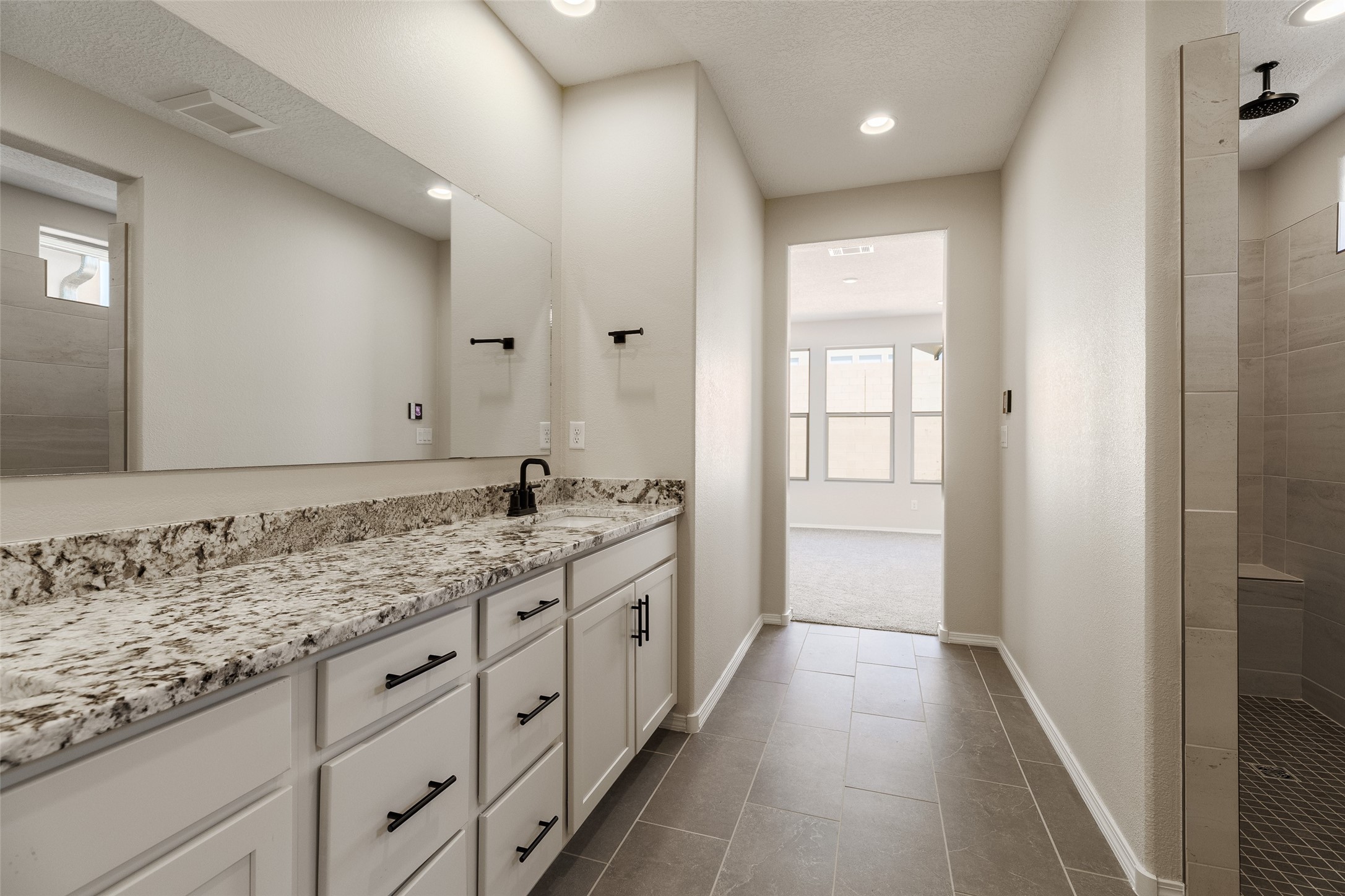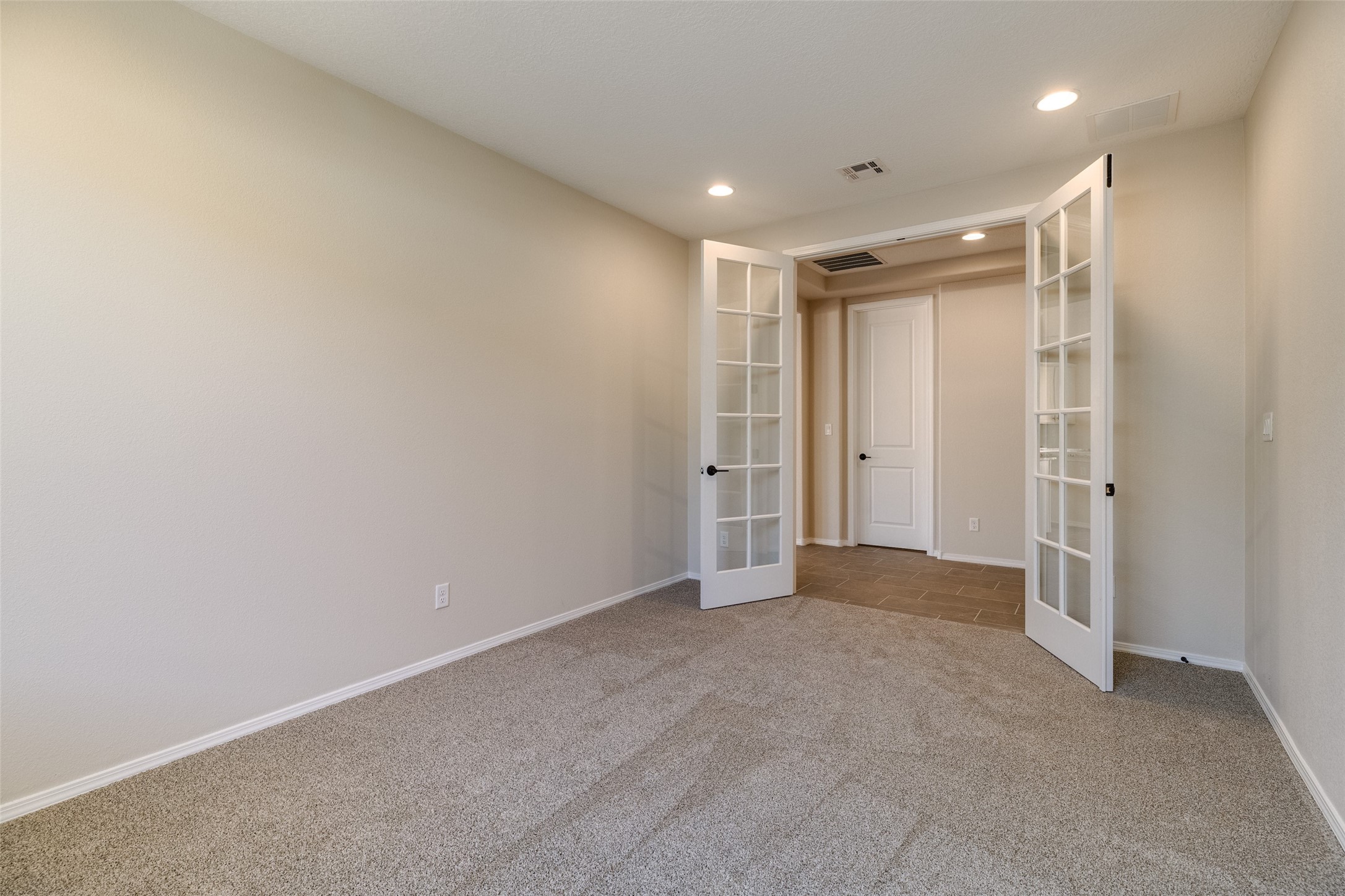 Step into this exceptional single-story home, where elegance meets functionality. The expansive covered patio provides the perfect outdoor retreat for relaxation or entertaining. Inside, the heart of the home features a huge kitchen island, paired with upgraded white cabinets that offer timeless style and ample storage. Cozy up by the fireplace in the inviting living area, and retreat to the owner's suite, complete with a framed walk-in shower for a spa-like experience. A spacious office with French doors is ideal for productivity or quiet reflection. The home's thoughtful design continues with a tray ceiling in the entryway, adding a touch of sophistication, and elegant 8-foot interior doors, enhancing the sense of space throughout. This home is truly a blend of luxury and comfort, perfect for making lasting memories.