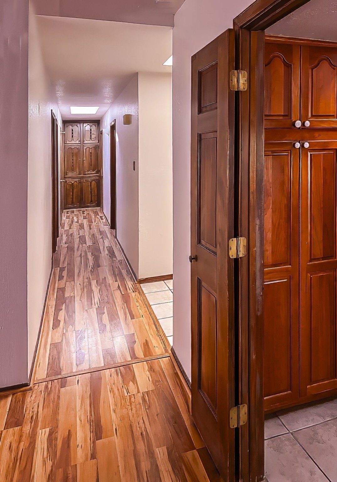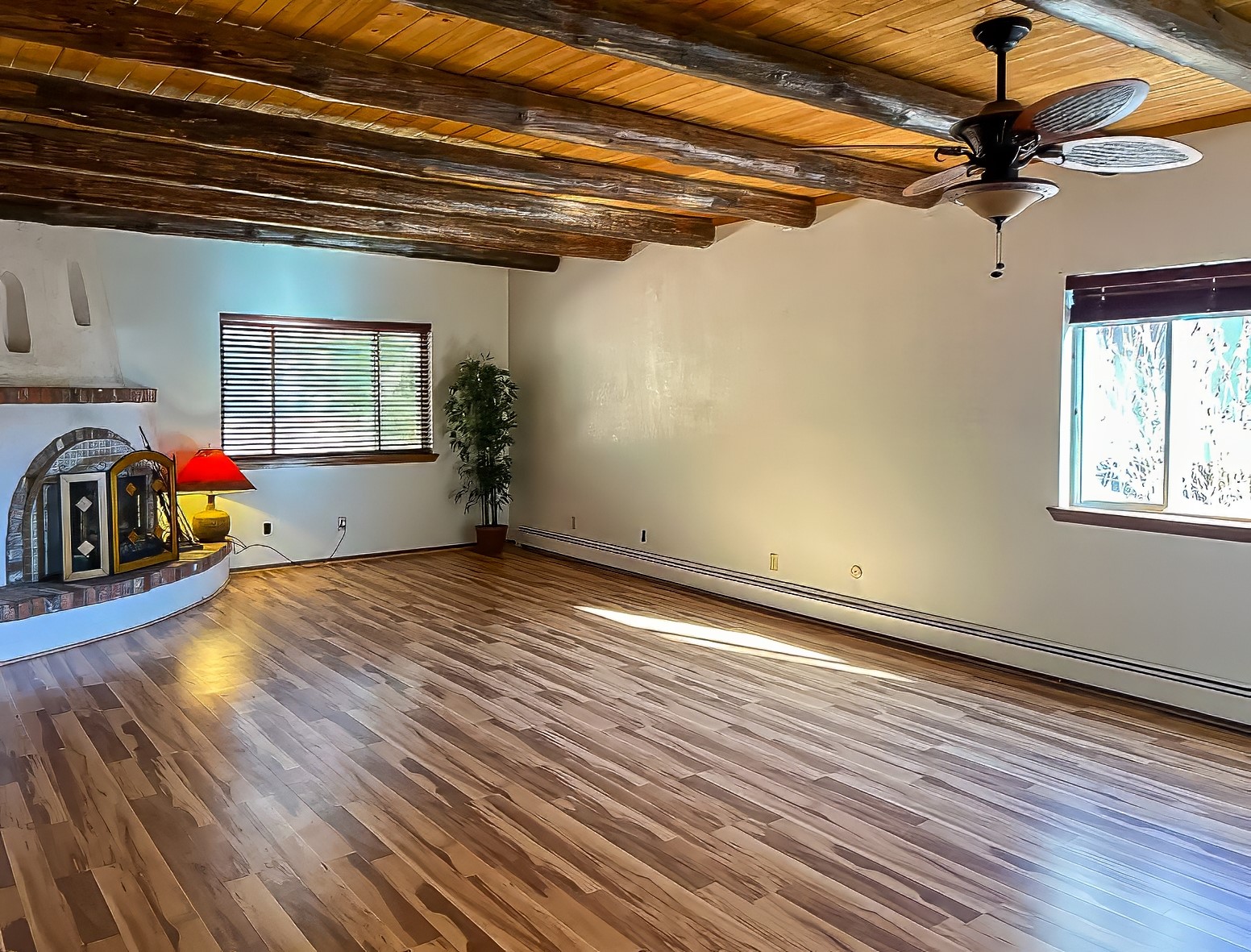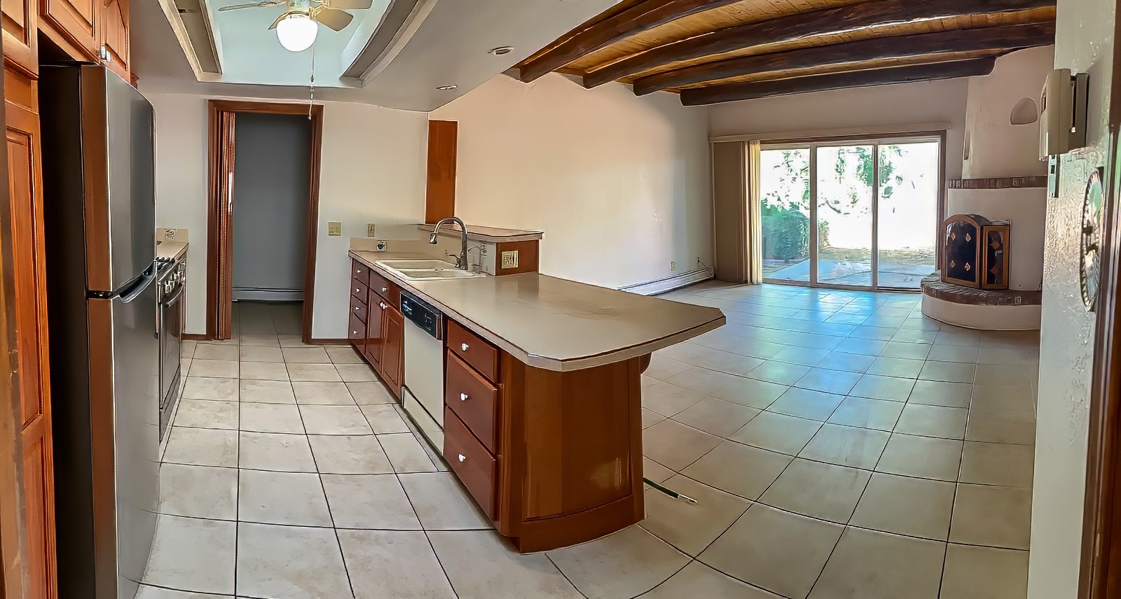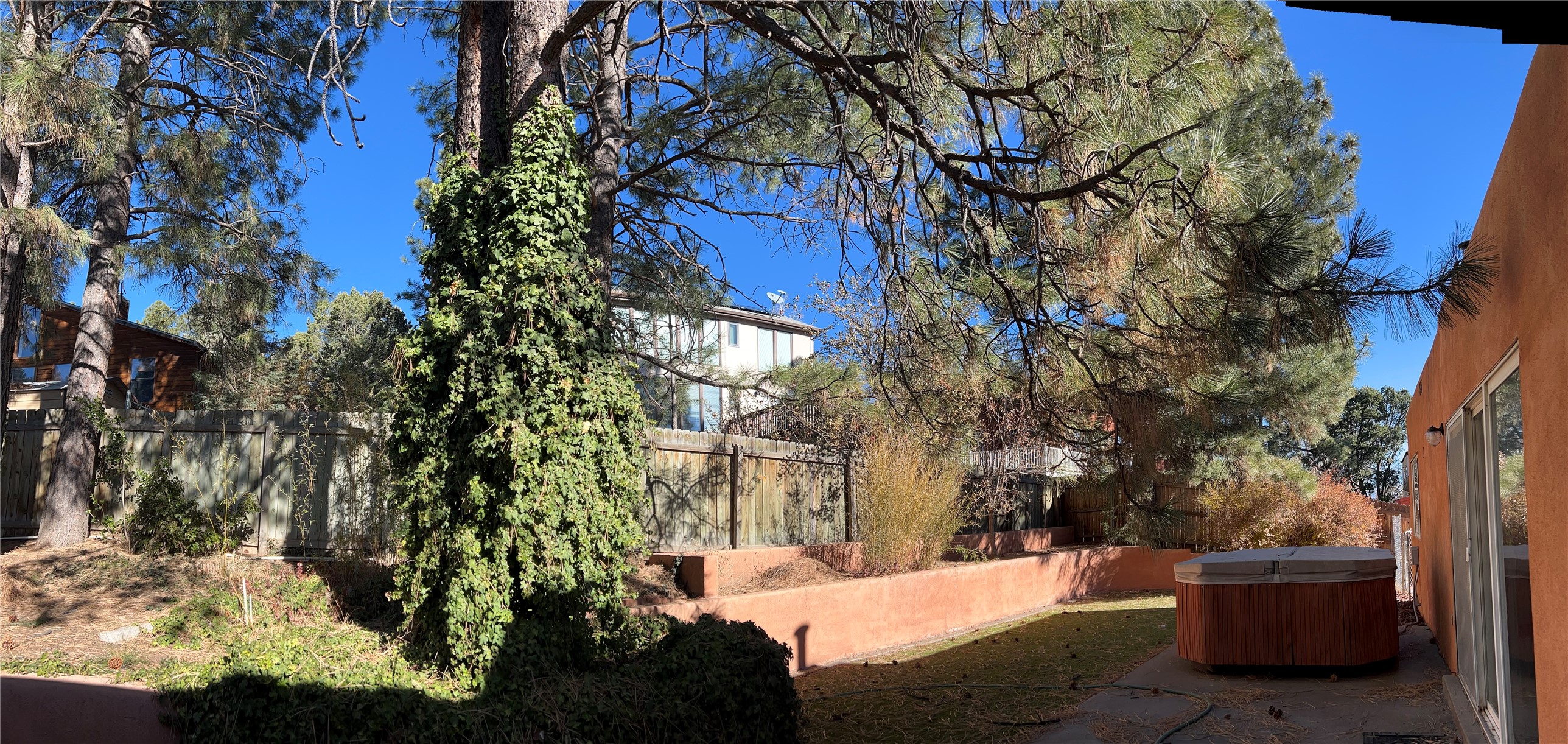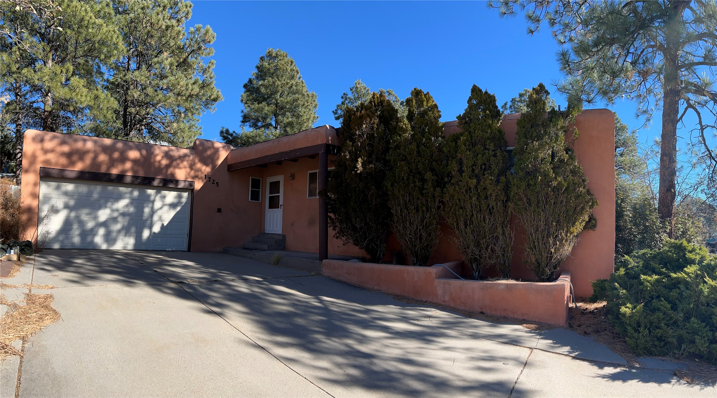 Charming 1930 sq. ft. 4 bedroom/ 2 bath ranch style home with heated two car garage (area not included in square footage figure). Has tongue and groove ceilings with vigas. Kiva fireplaces in living and family rooms. Kitchen open to family room. Cherrywood kitchen cabinets, Bosch convection range with warming drawer and microwave/ exhaust hood. Skylights in entry, kitchen, bath and hallway. New carpeting and paint. Forest-like, fenced back yard with patio, raised flower beds, Morgan garden shed, and dog run. Landscaped front with tall pines. South facing driveway (easy to clean snow.)