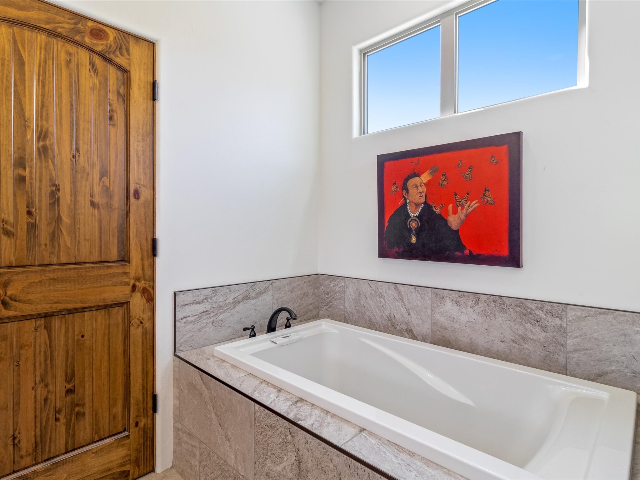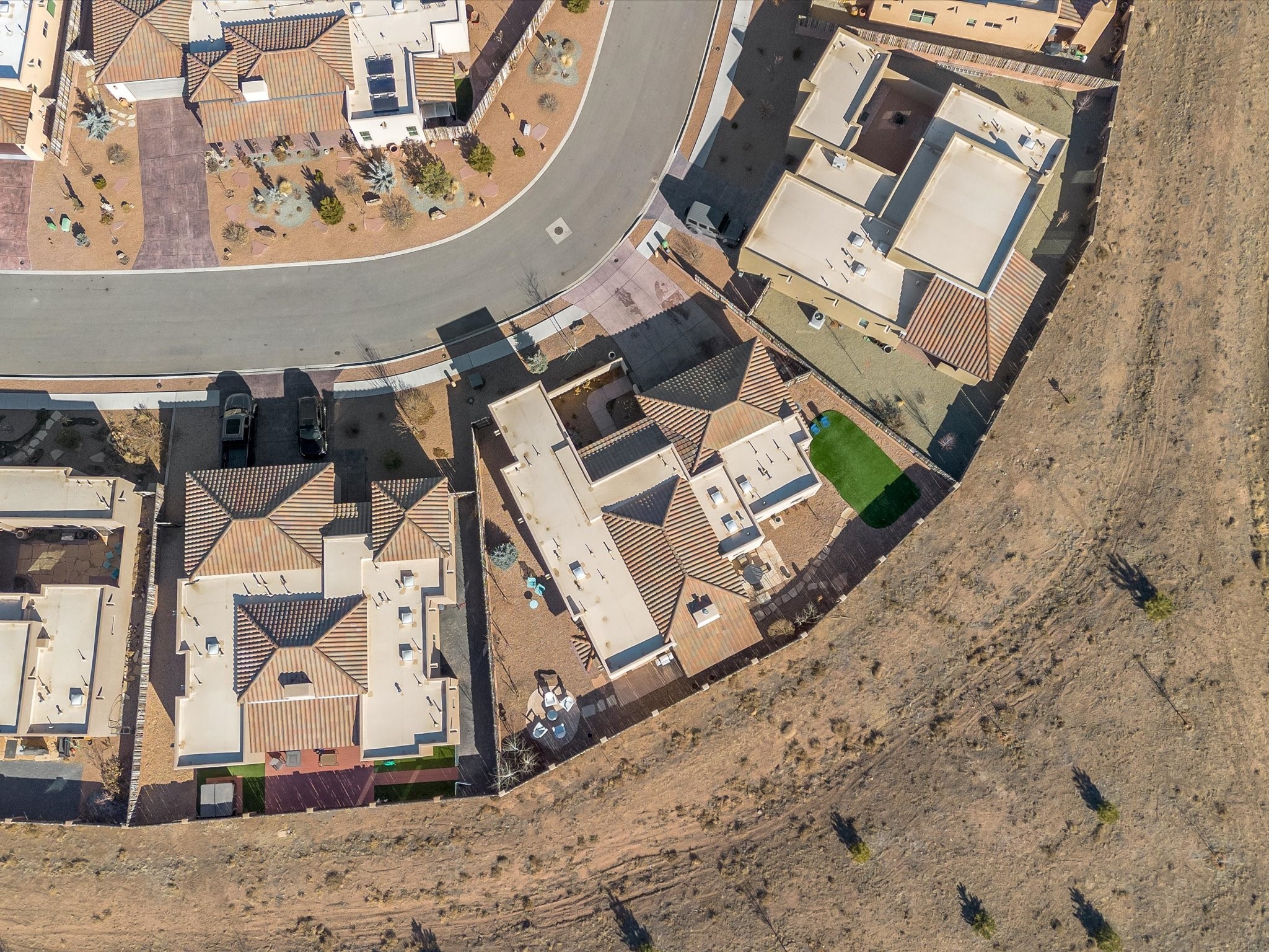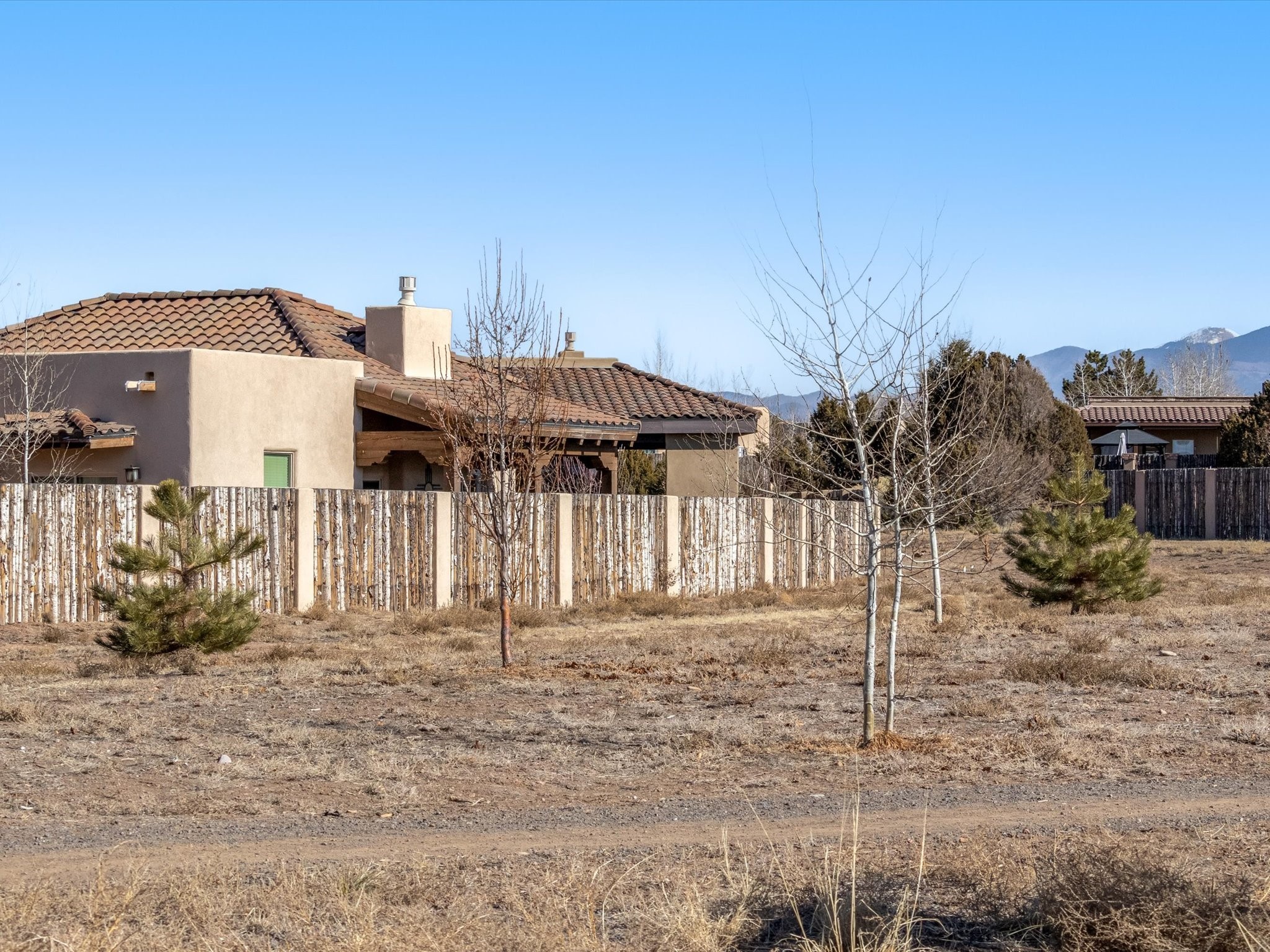 Nestled in the sought-after La Pradera Subdivision, this stunning Spanish-inspired home, built in 2021, has a total of 2,186 sqft. It has pitched Spanish design with clay-like roof and covered portals with rustic wood beams. It's brick pavers & colored driveway create a warm and inviting curb appeal. The rear of the property opens to a serene natural space and there are Walking trails surrounding the community.Step inside to an open-concept layout that seamlessly connects the dining area, kitchen, and living room--perfect for entertaining or relaxing with family. Custom interior lights in the foyer entrance set the tone for elegance, while the living room showcases white-stained beams with T&G planking and a cozy fireplace that adds warmth and character. The kitchen is a chef's dream, featuring a commercial-grade stove, stainless steel appliances, a breakfast island, and a window over the sink that fills the space with natural light. A gas line at the back patio for outdoor cooking adds efficiency and custom window treatments elevate the home's style and comfort. This home offers three spacious bedrooms, including an owner's suite, en-suite bathroom with an enclosed shower, a bath tub and dual sinks. A powder room is conveniently located near the entry. Additional features include a separate laundry room, an extra room ideal for an office, study or small studio, and an attached three-car finished garage equipped with electric vehicle charging capability. Experience the perfect balance of style and practicality in this exceptional La Pradera home. Its inviting interiors, picturesque surroundings, and thoughtful design make it a must-see for those seeking their dream home in Santa Fe.