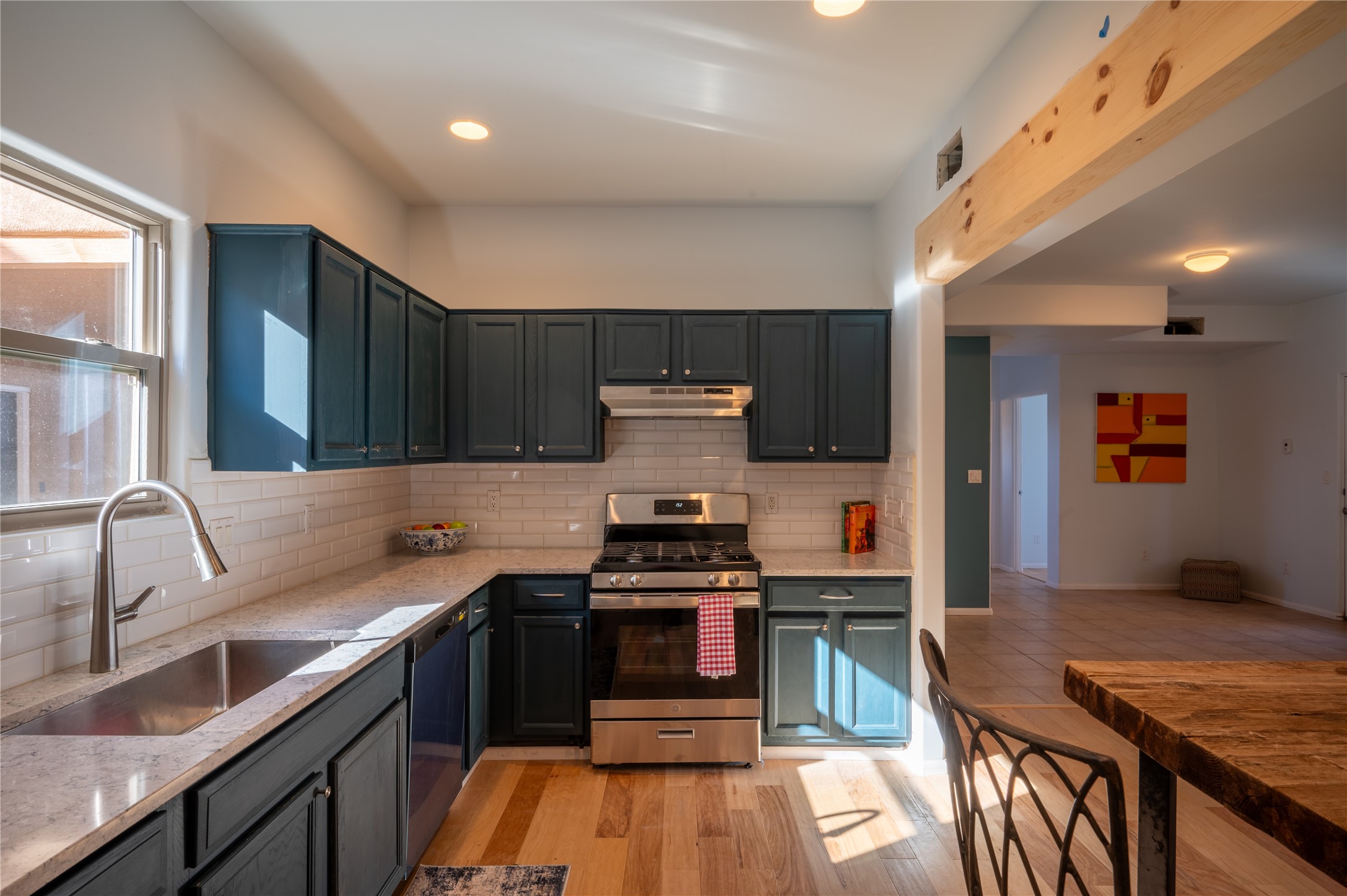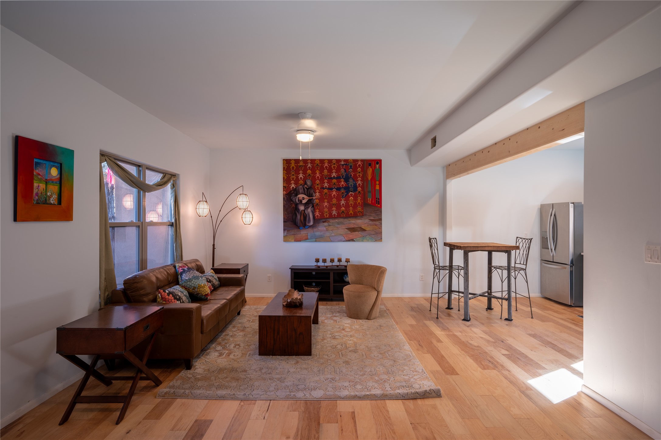 Live 8 years longer. Laugh out loud every day, eat nuts and live in a house with stairs. There is one bedroom and bath downstairs and 2 bedrooms and bath up stairs. This fully remodeled home was finished with a wood floor and tile, remodeled kitchen and baths and new appliances. The floor plan is a light filled open concept. It's very private with access to 2 lovely court yards. 2 covered parking spaces are included. Shopping and dining are not far, a great library is just a block away, and easy access to highway 599 provides for an easy commute to the airport, Los Alamos, Albuquerque and downtown Santa Fe. This price is a bargain. Come see today.