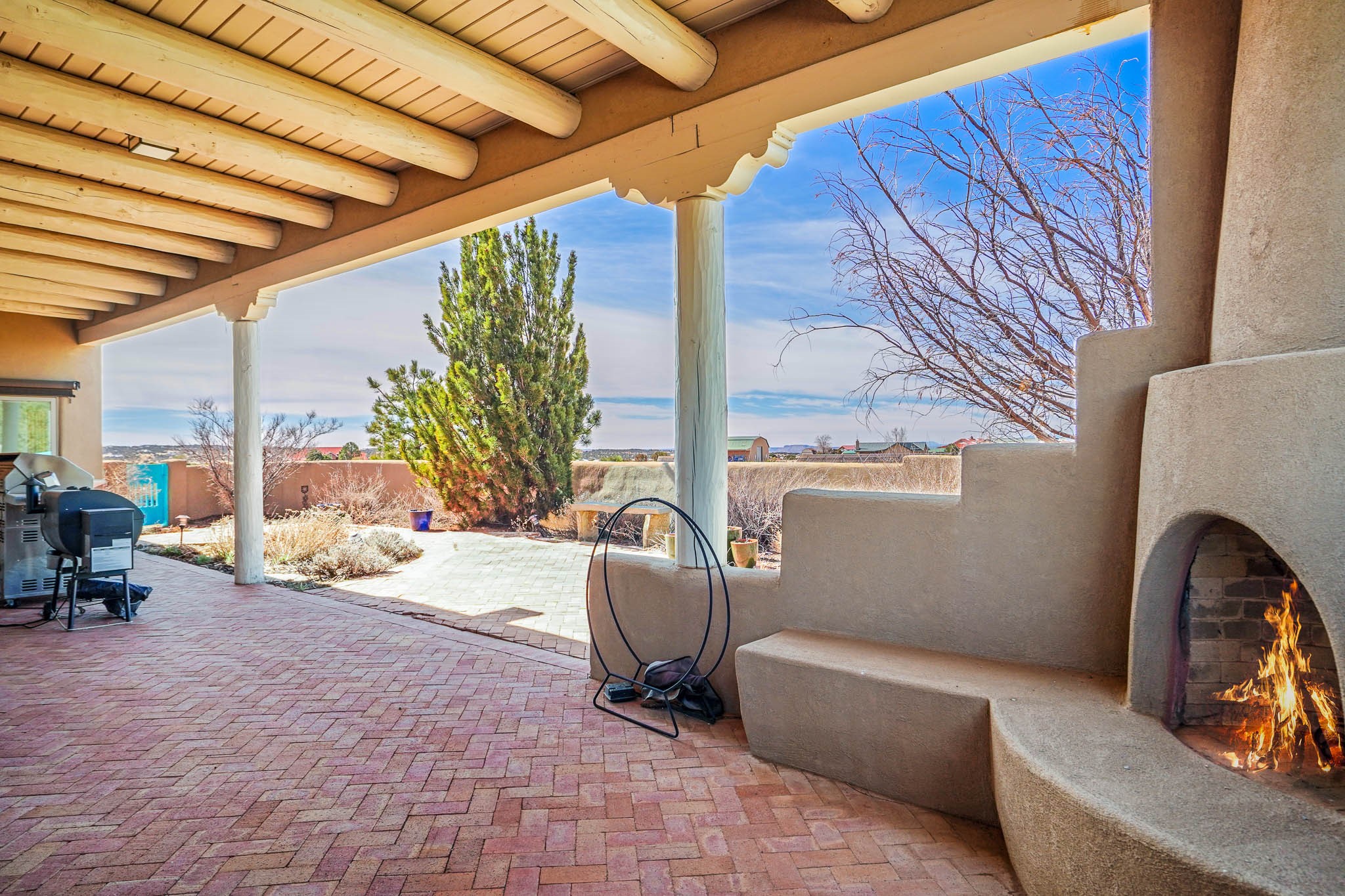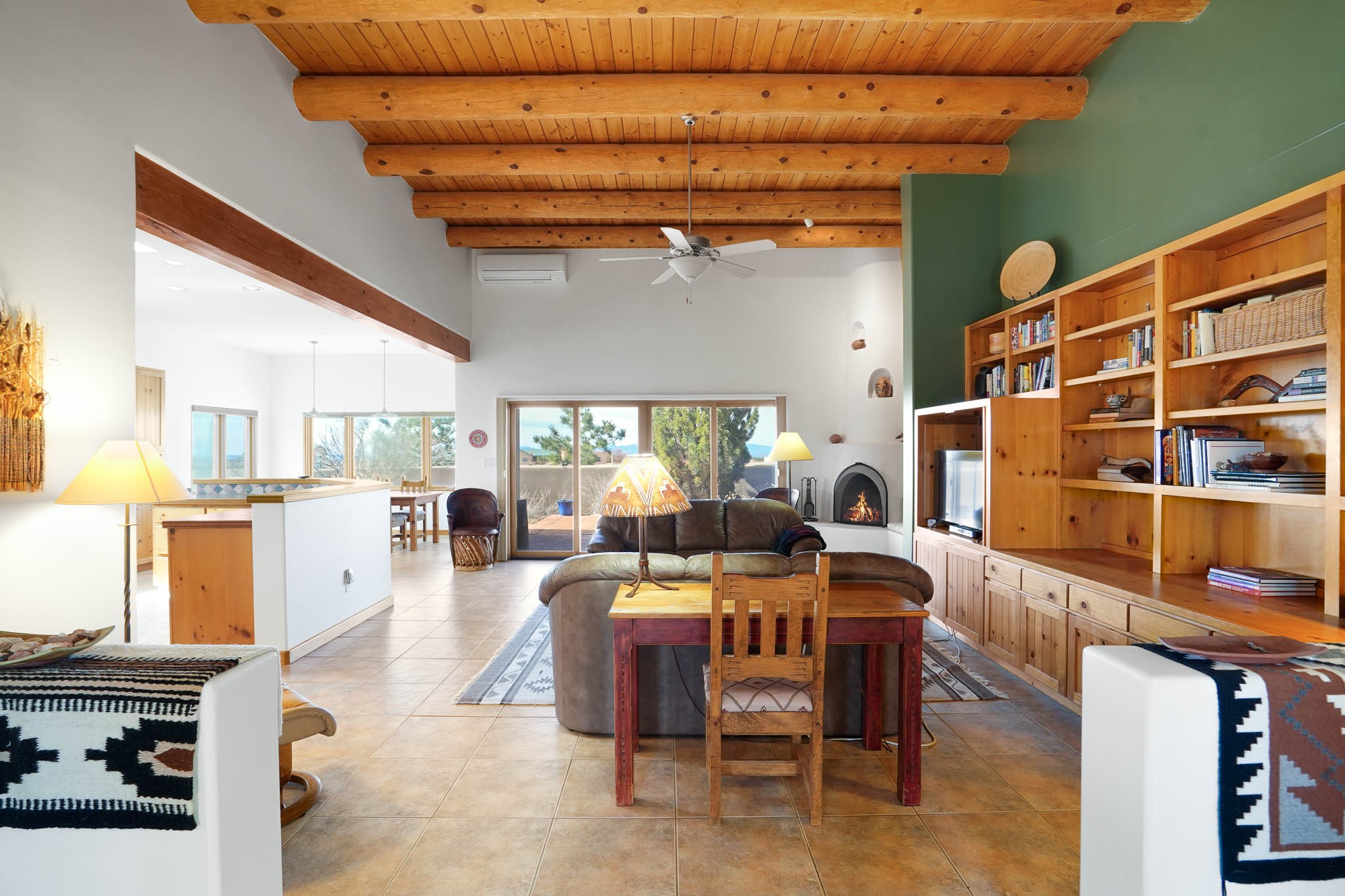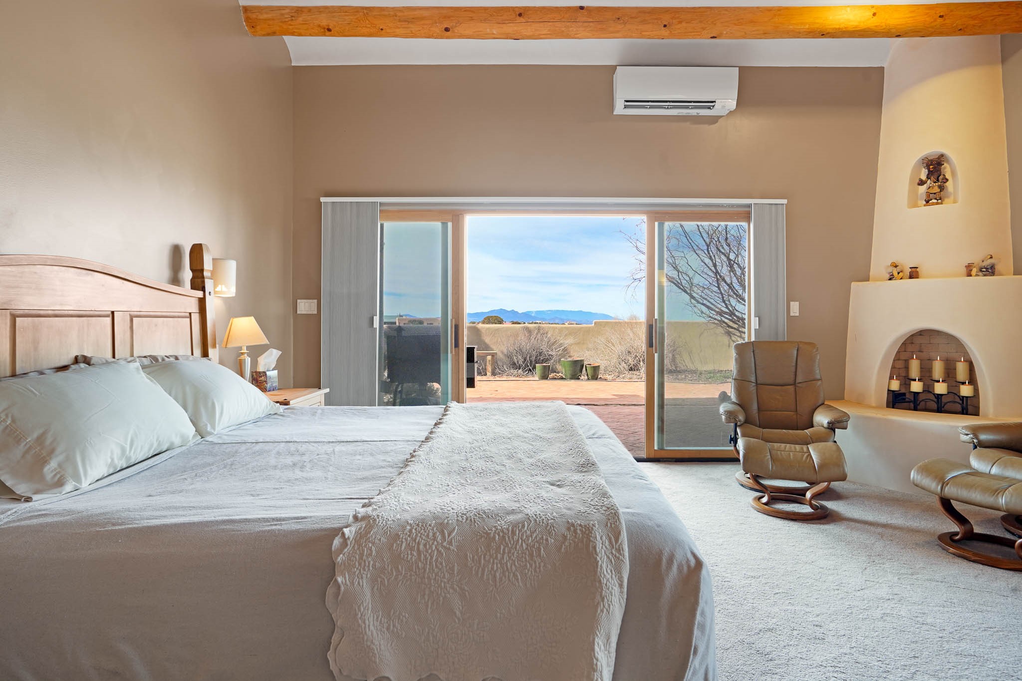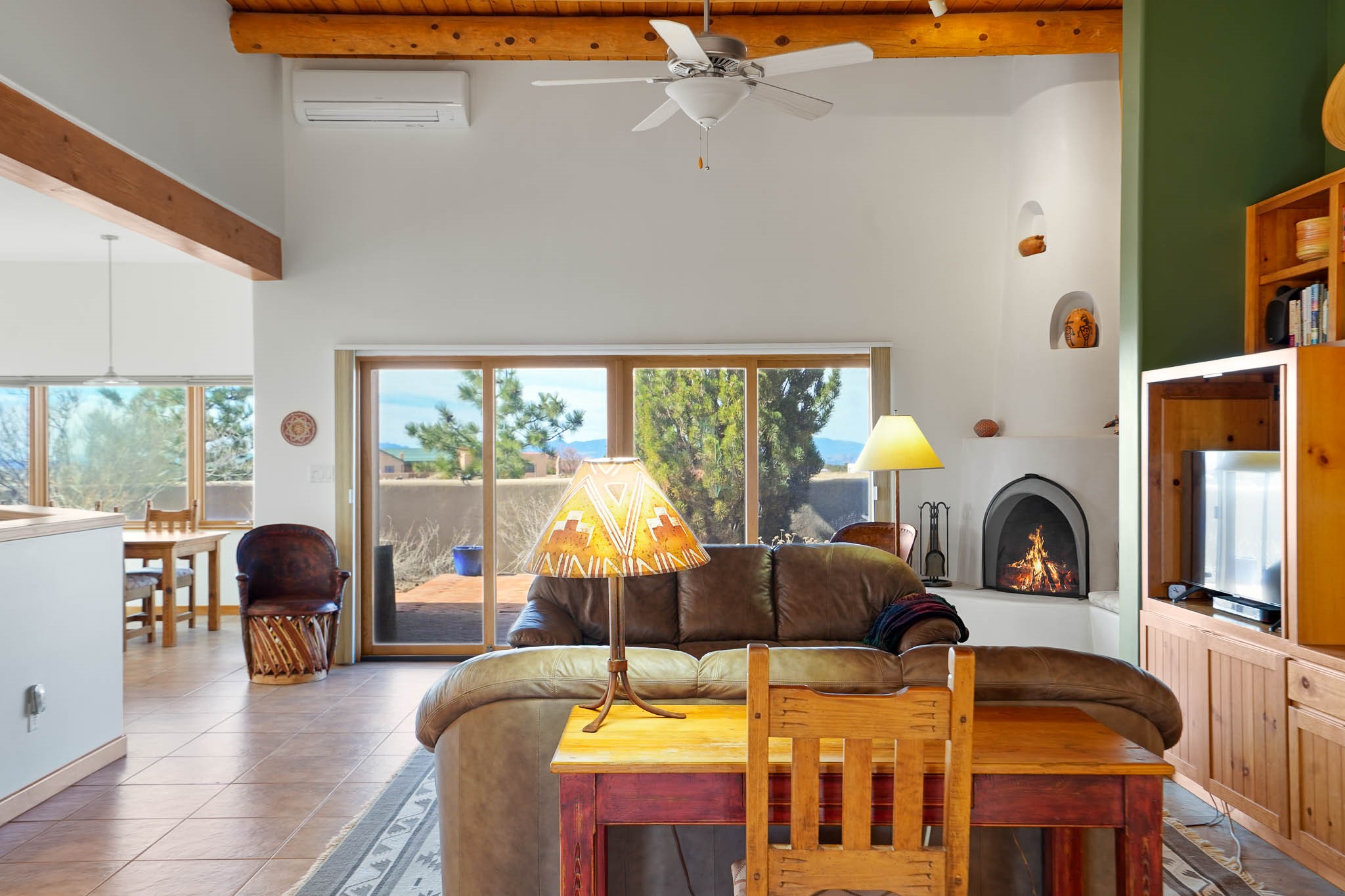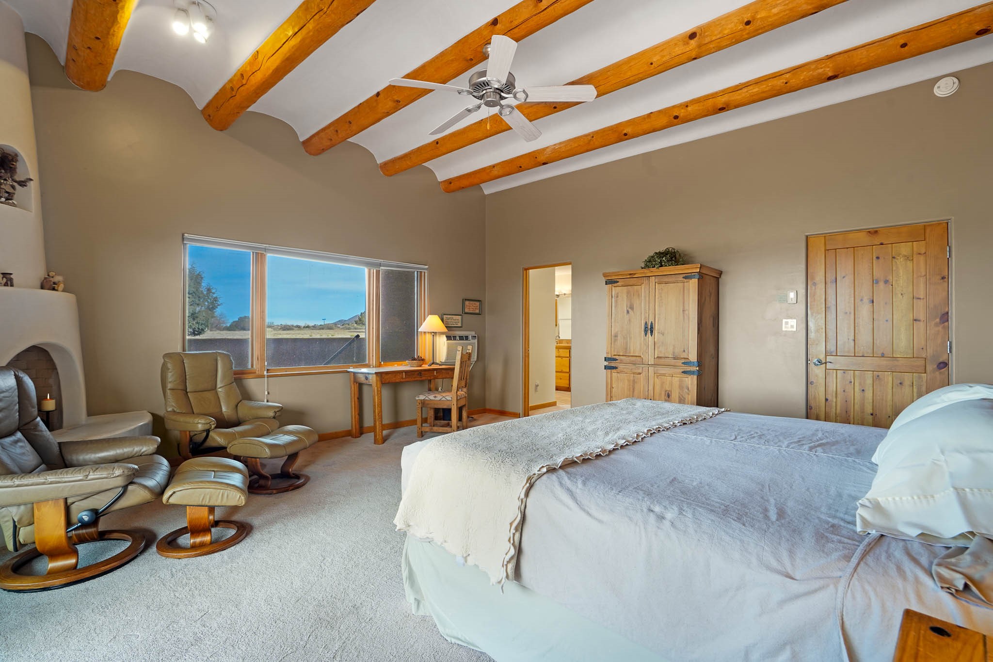 Now priced BELOW APPRAISAL VALUE! Located in the exclusive La Paz neighborhood, 122 La Paz Loop offers stunning sunset views on a 3-acre lot. This 3-bedroom, 2-bathroom home features classic Santa Fe style with beautiful kiva fireplaces in both the living room and primary suite. The open floor plan provides a seamless flow for living and entertaining, while the peaceful outdoor space offers privacy and room to relax. Just a short drive to downtown Santa Fe, you'll enjoy both tranquility and easy access to the city's amenities. Schedule your showing today!