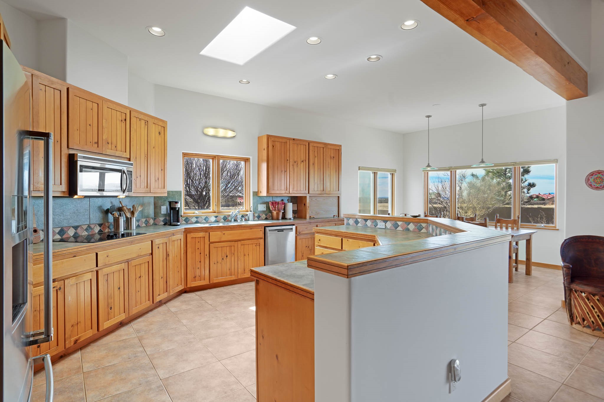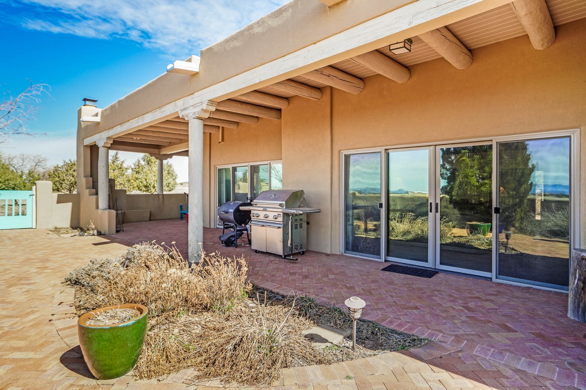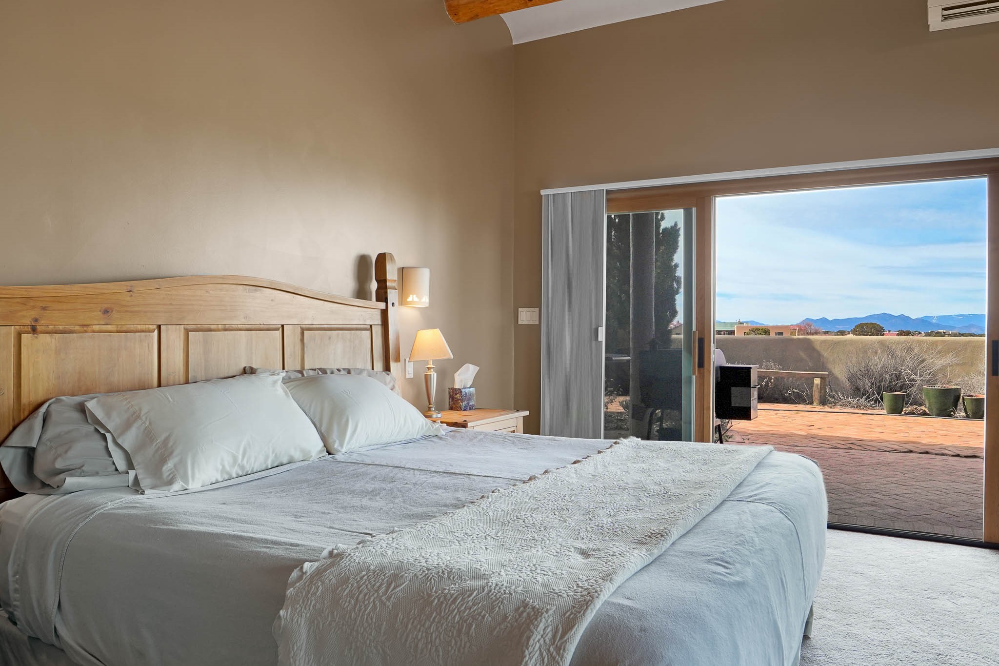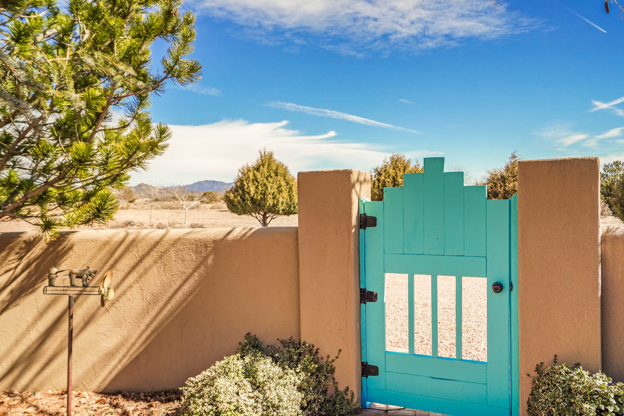 Now priced BELOW APPRAISAL VALUE! Located in the exclusive La Paz neighborhood, 122 La Paz Loop offers stunning sunset views on a 3-acre lot. This 3-bedroom, 2-bathroom home features classic Santa Fe style with beautiful kiva fireplaces in both the living room and primary suite. The open floor plan provides a seamless flow for living and entertaining, while the peaceful outdoor space offers privacy and room to relax. Just a short drive to downtown Santa Fe, you'll enjoy both tranquility and easy access to the city's amenities. Schedule your showing today!