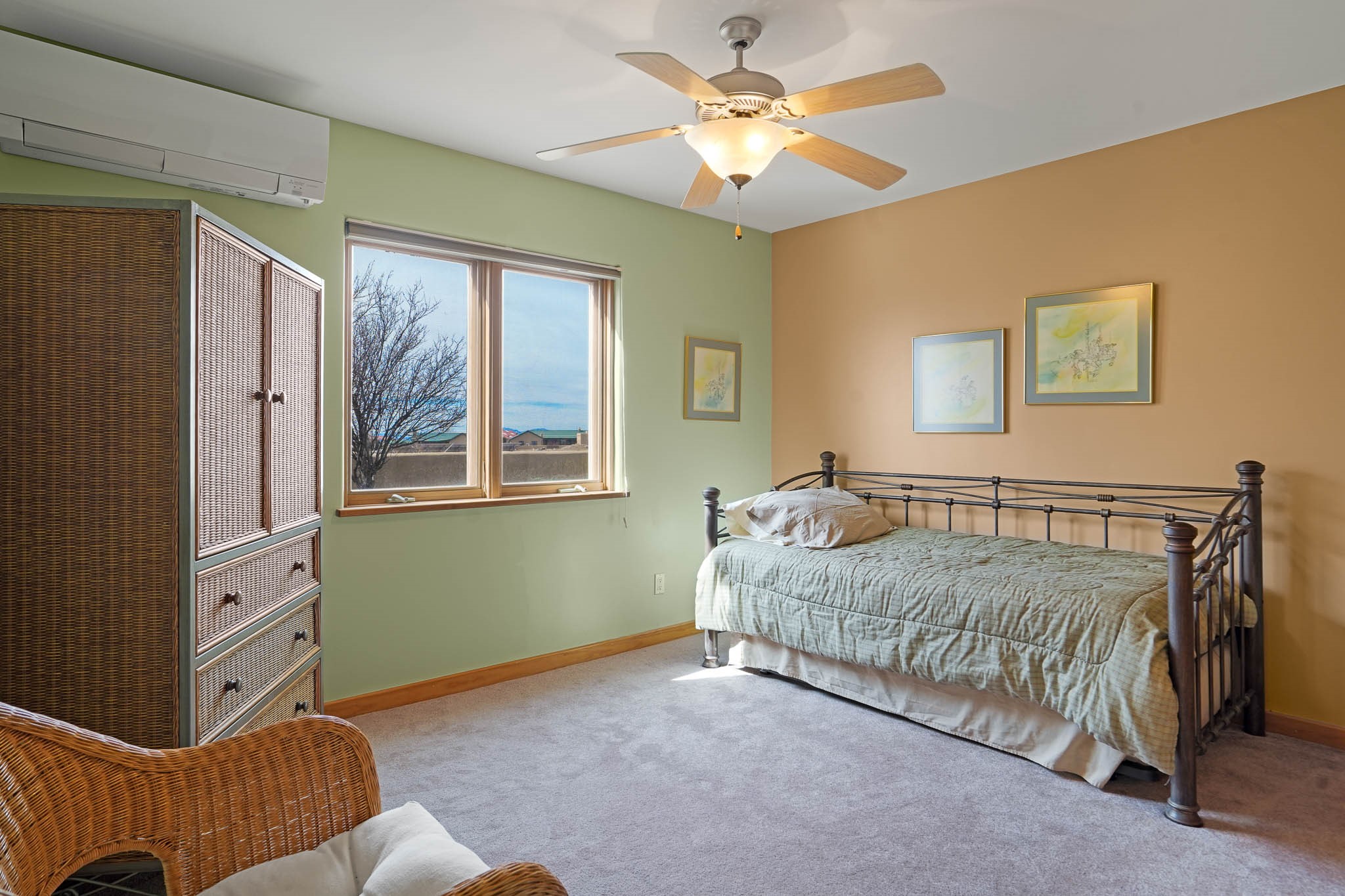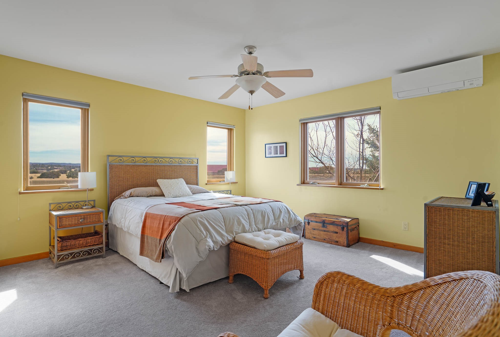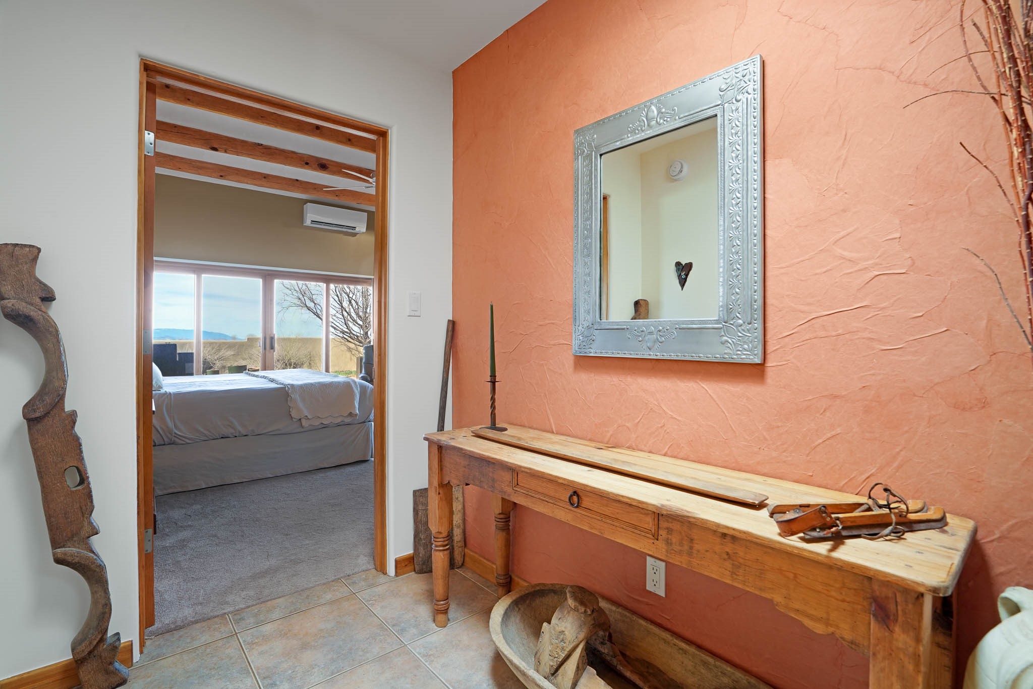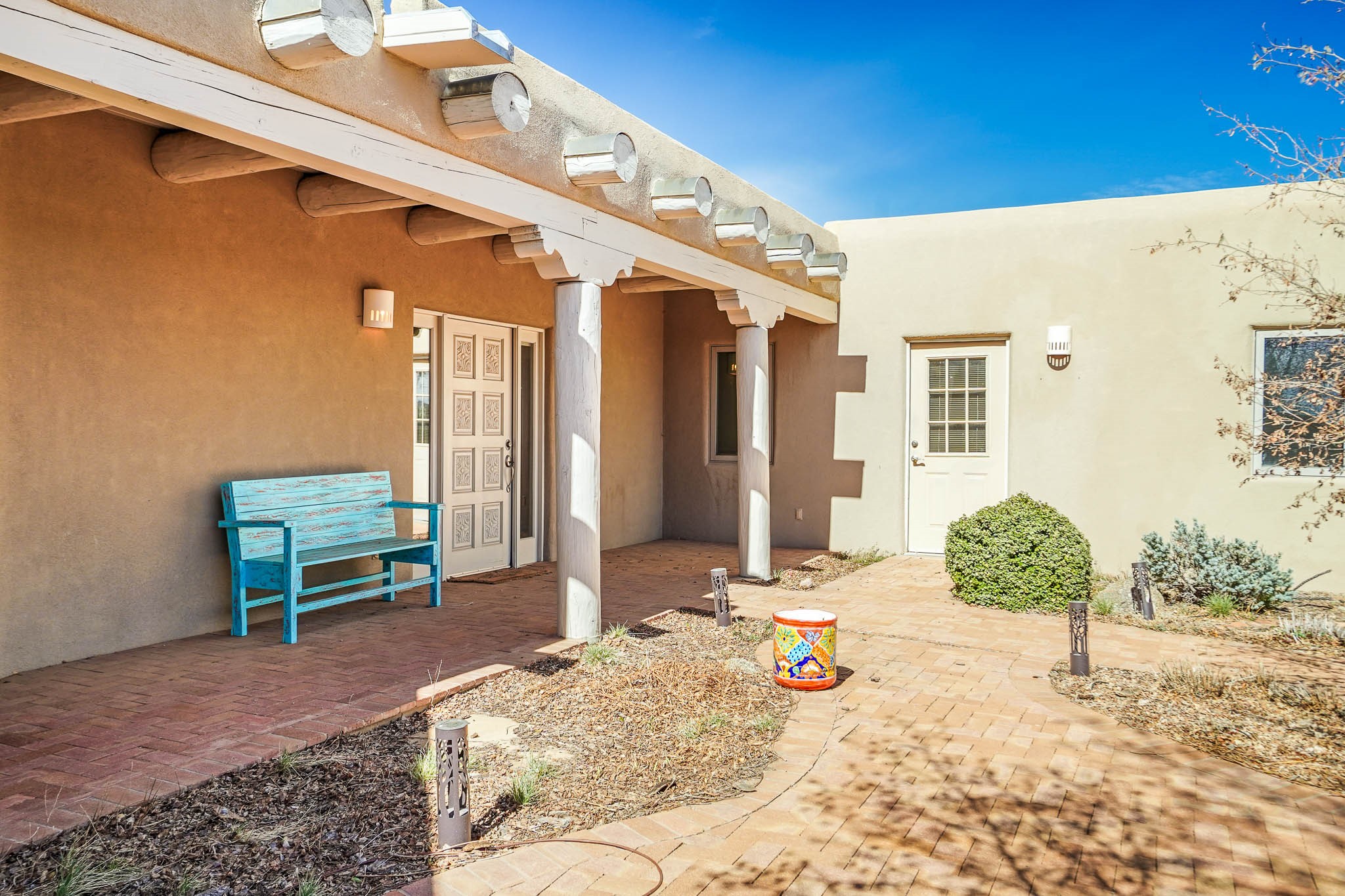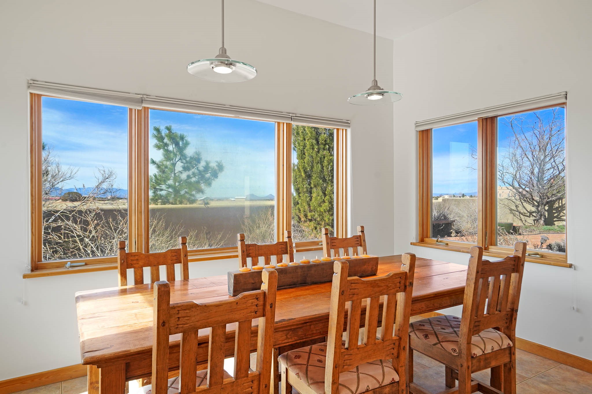 Now priced BELOW APPRAISAL VALUE! Located in the exclusive La Paz neighborhood, 122 La Paz Loop offers stunning sunset views on a 3-acre lot. This 3-bedroom, 2-bathroom home features classic Santa Fe style with beautiful kiva fireplaces in both the living room and primary suite. The open floor plan provides a seamless flow for living and entertaining, while the peaceful outdoor space offers privacy and room to relax. Just a short drive to downtown Santa Fe, you'll enjoy both tranquility and easy access to the city's amenities. Schedule your showing today!