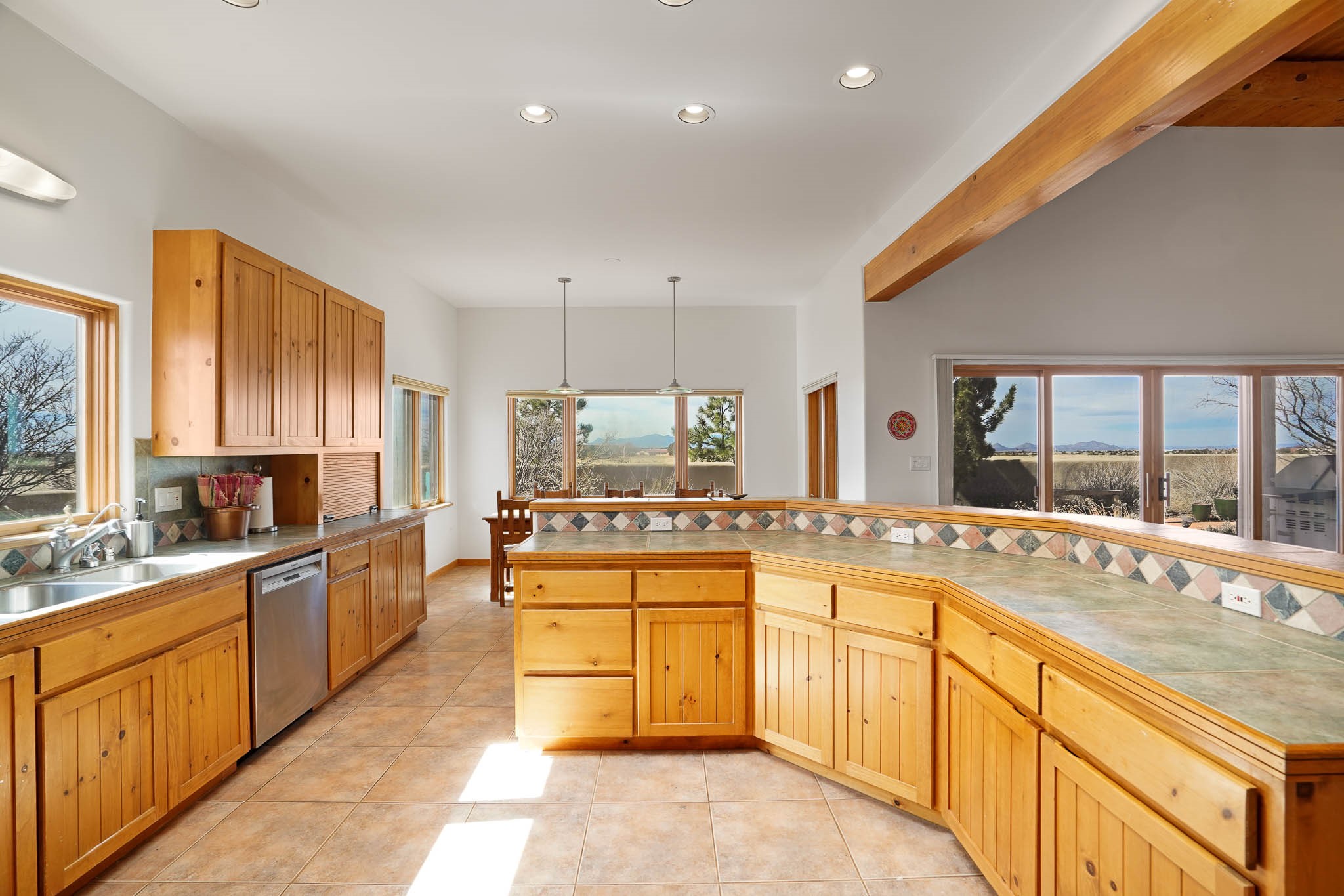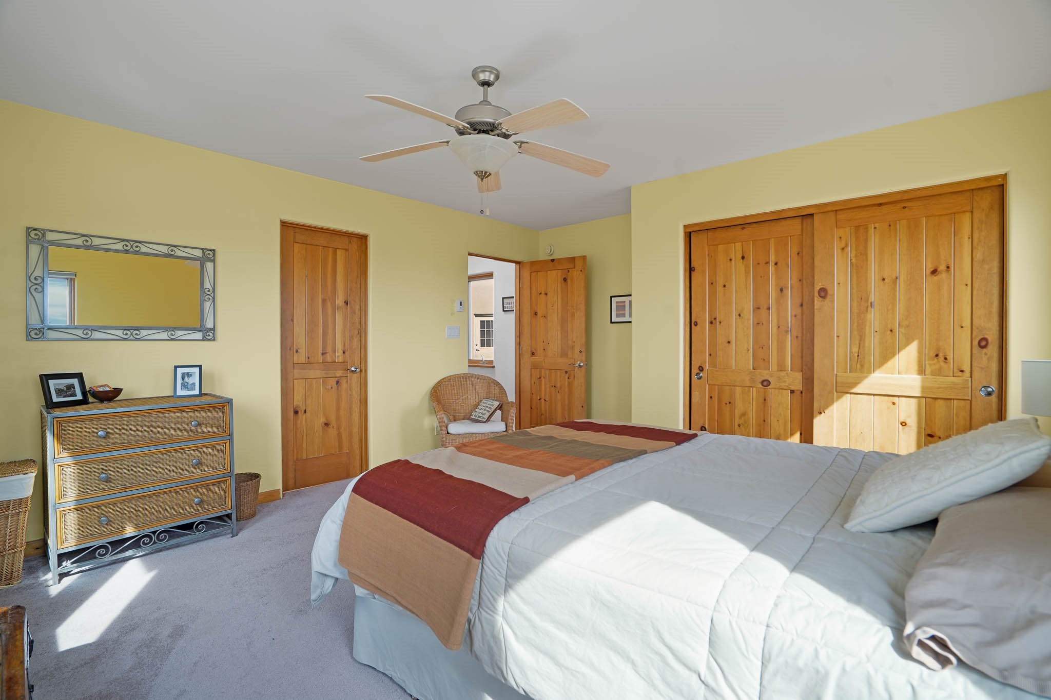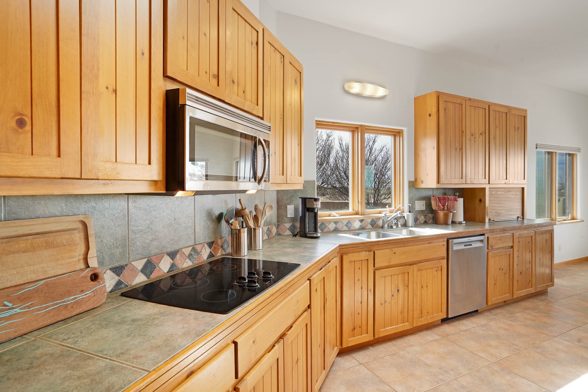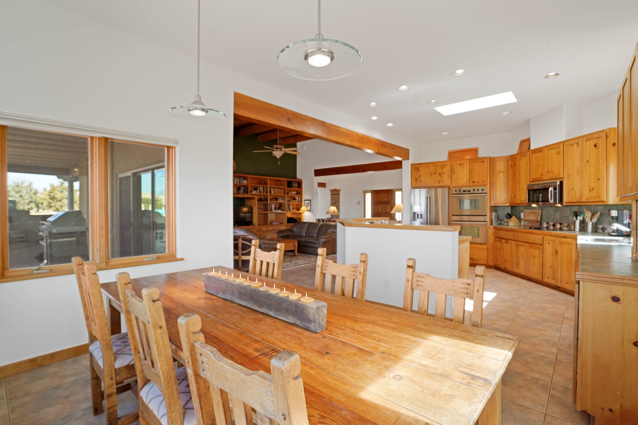 Now priced BELOW APPRAISAL VALUE! Located in the exclusive La Paz neighborhood, 122 La Paz Loop offers stunning sunset views on a 3-acre lot. This 3-bedroom, 2-bathroom home features classic Santa Fe style with beautiful kiva fireplaces in both the living room and primary suite. The open floor plan provides a seamless flow for living and entertaining, while the peaceful outdoor space offers privacy and room to relax. Just a short drive to downtown Santa Fe, you'll enjoy both tranquility and easy access to the city's amenities. Schedule your showing today!