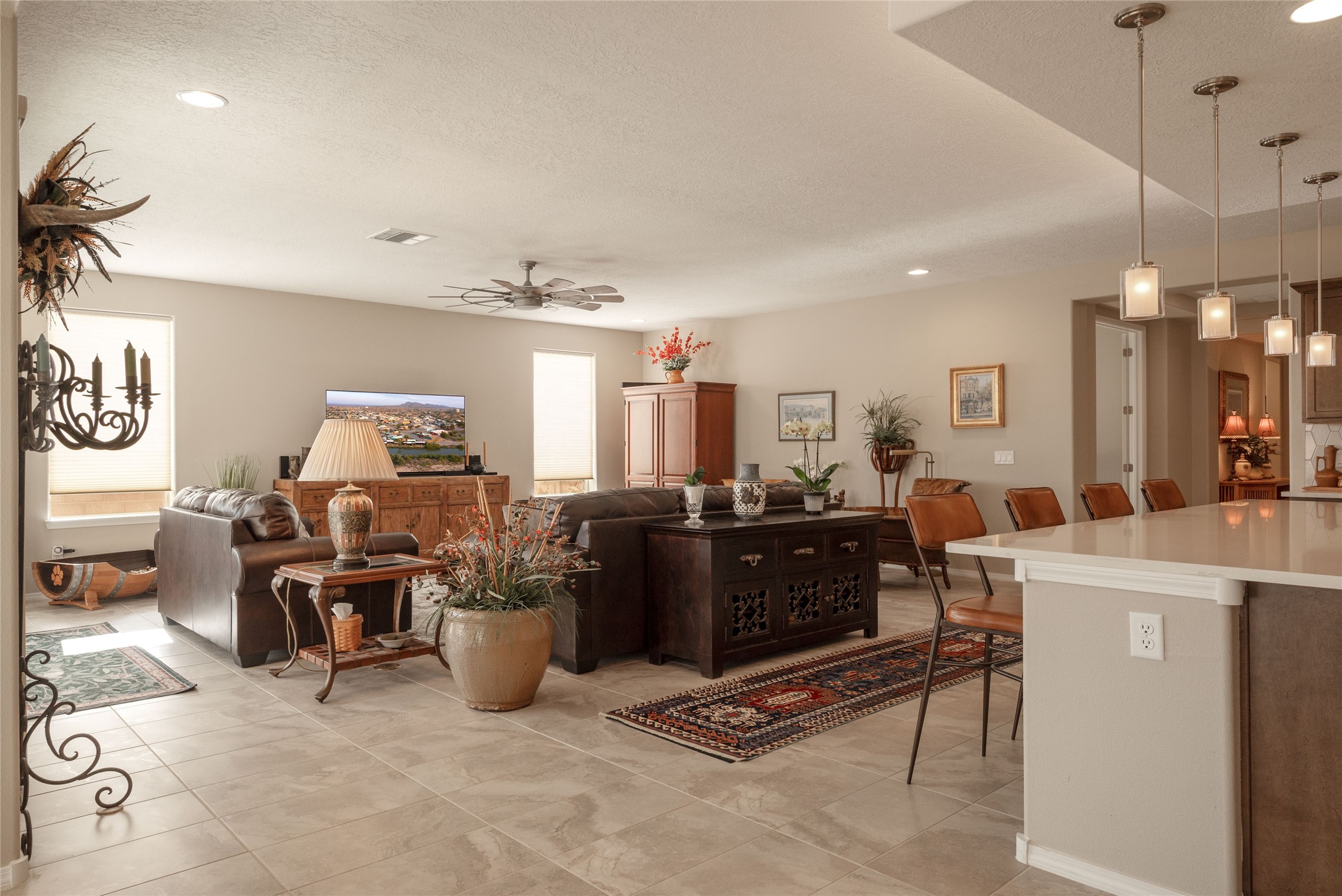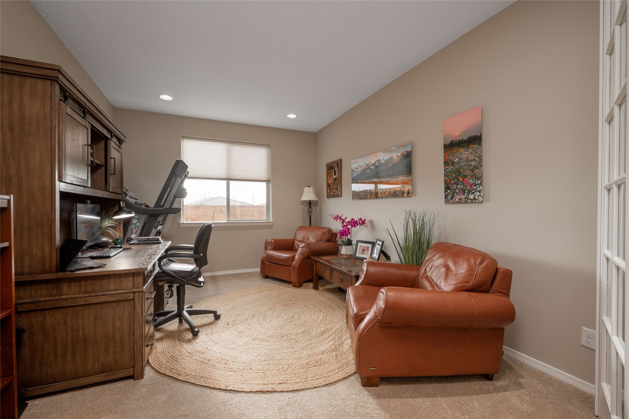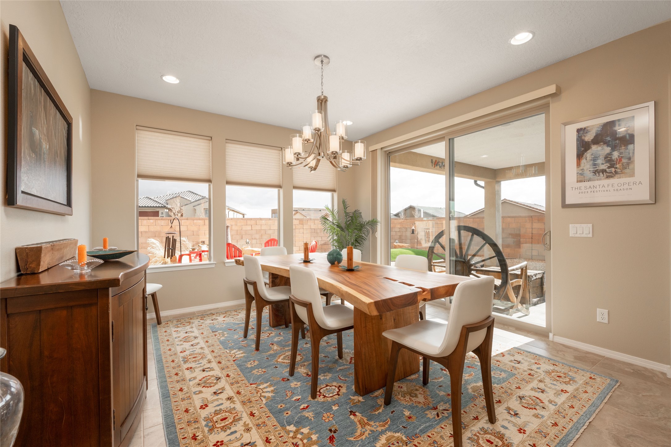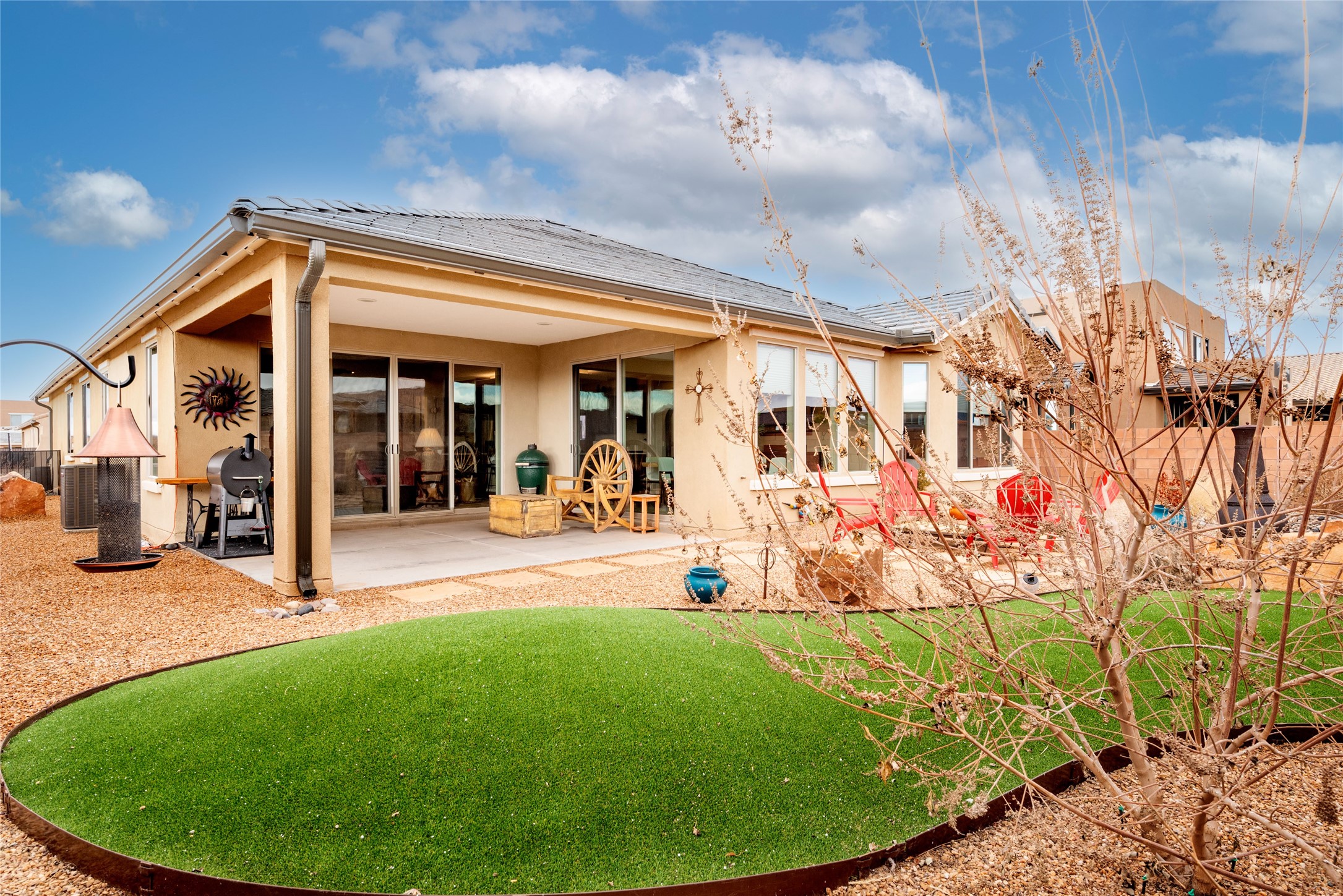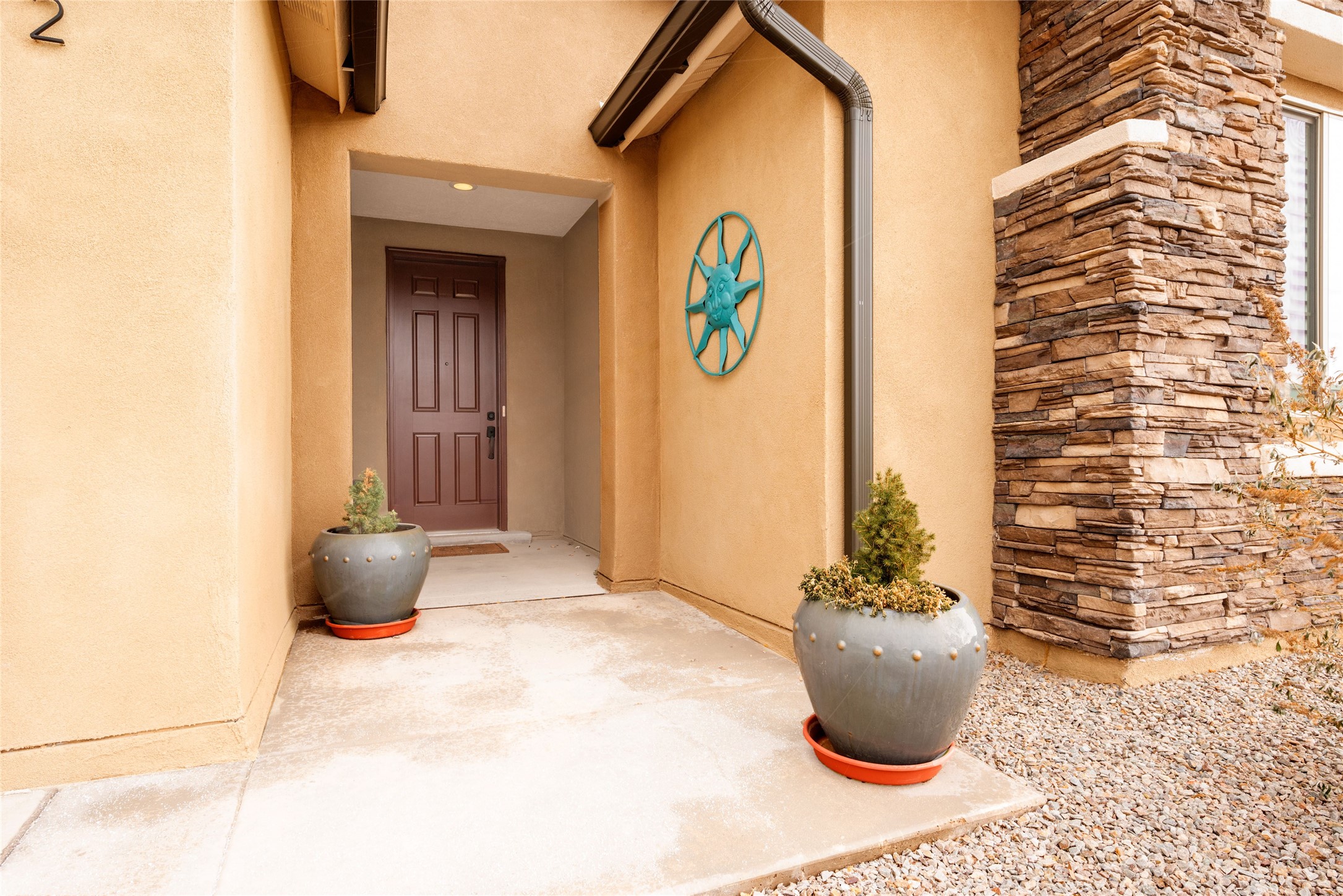 Wonderful Pulte home in the popular Colibri subdivision in Santa Fe. This turnkey home features a beautiful, custom kitchen that opens to the living and dining areas. Great for entertaining. A large, covered patioaccessed by 2 walls of glass sliders, extends your living space outdoors, and provides a great area for outdoor cooking, dining, and relaxing. The office/flex space with French doors offers a quiet and dedicated area for an office, den, or workout room. The home features custom window coverings throughout; the dining and living room coverings are electric/remote/programmable controlled, and blackout coverings in the master bedroom. This home offers a 3-car tandem garage with rubberized floor matting, allowing ample parking and snow/rain protection. The corner lot is larger than most lots in the neighborhood and offers extra privacy with no house behind or to the side of the property. You can enjoy the backyard during all seasons with shade during the summers and warm sun during the winters. It has been beautifully and professionally landscaped, with backyard gutters, French drains, and a French basin for water mitigation (this is crucial to eliminate flooding in the backyard during monsoon season). The location provides very close access (less than a mile) to Hwy 599 and the NMDOT Park and Ride for commuters to Los Alamos National Lab. Located on the southwest side of Santa Fe, you will be close to shopping, restaurants, and schools in the newer section of town. There are no additions necessary for this home to meet Colibri's mandatory covenants!