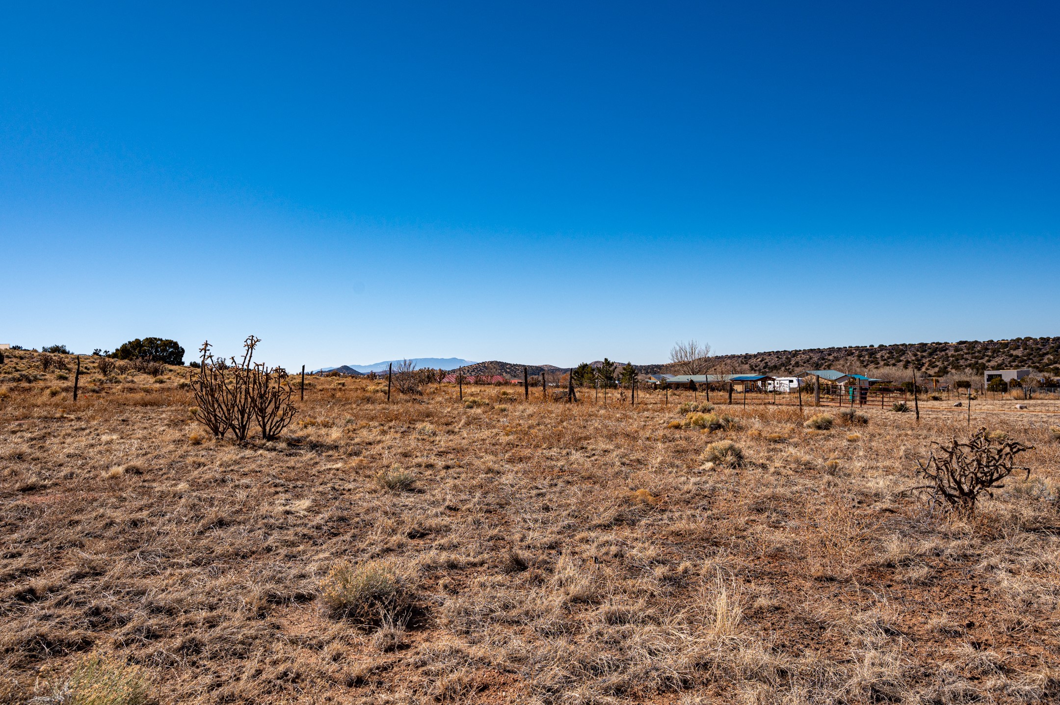 Located in the bucolic La Cieneguilla area, this 2.5 acre lot is mostly level and is partially fenced. With gently sloping terrain, sweeping mountain views, and utilities in the street, the picturesque home site is ready to be developed. This idyllic corner of Santa Fe offers nearby trails with historic sites, a short gallop to Hipico, and is minutes from shopping and entertainment. Come see for yourself!