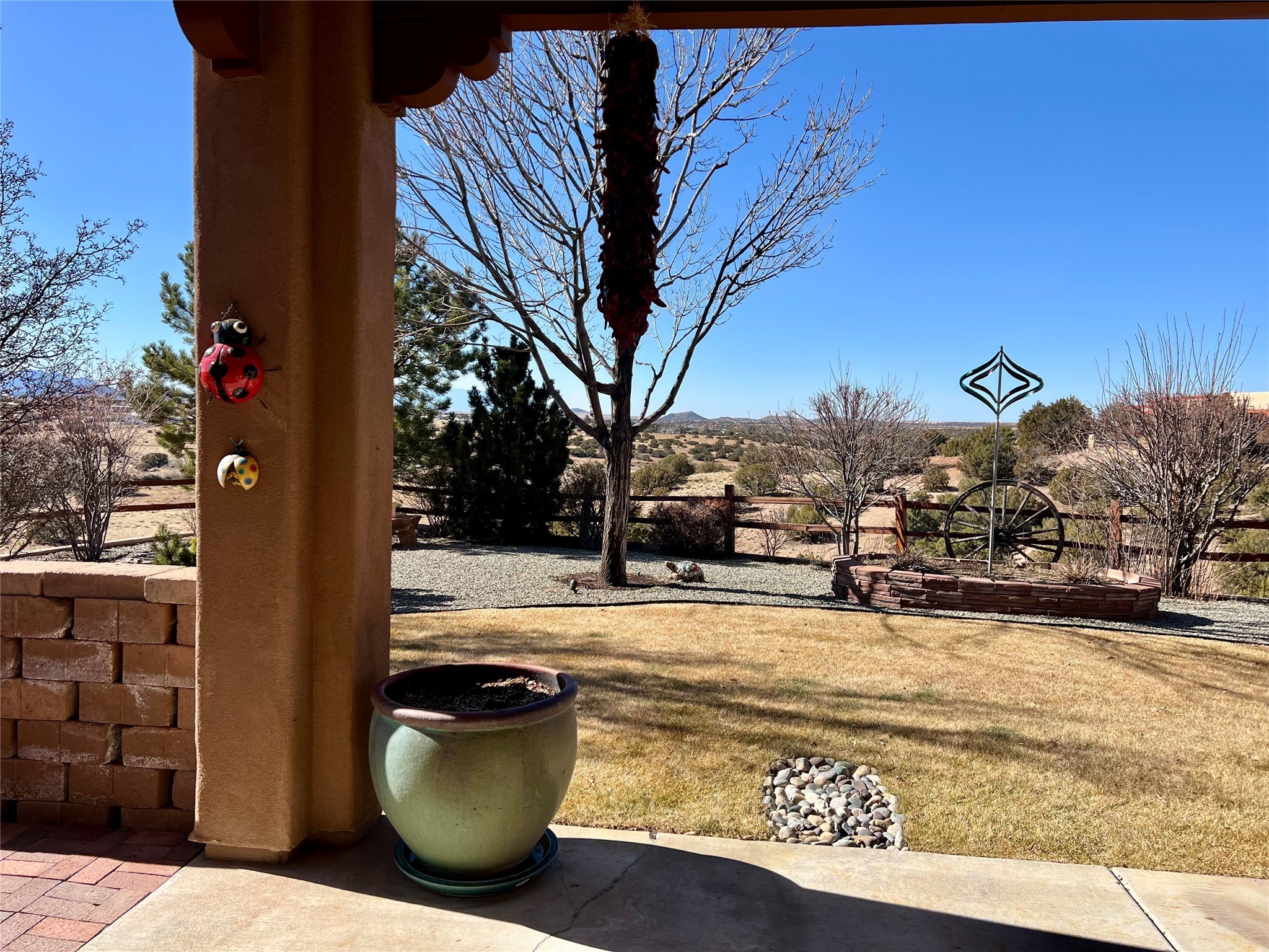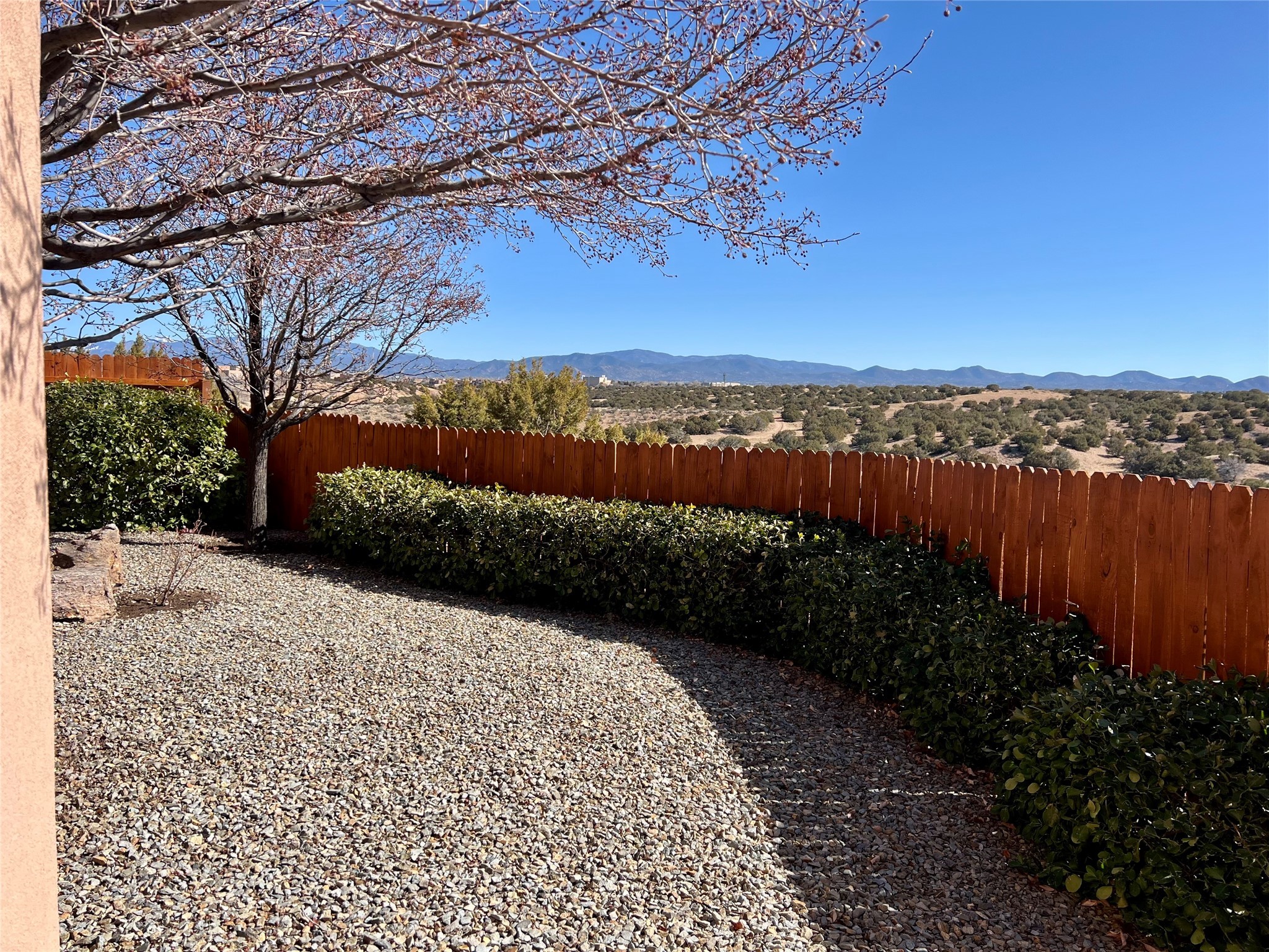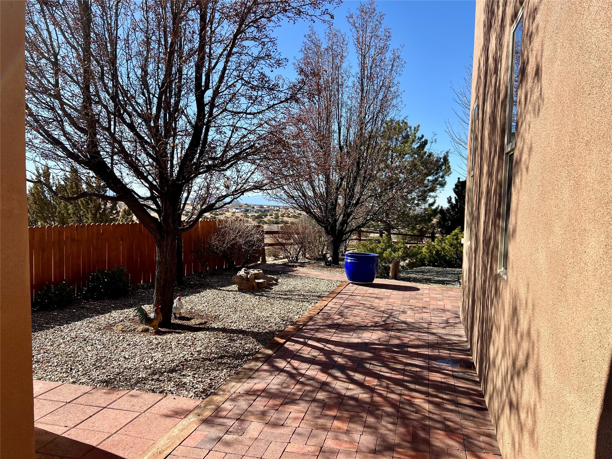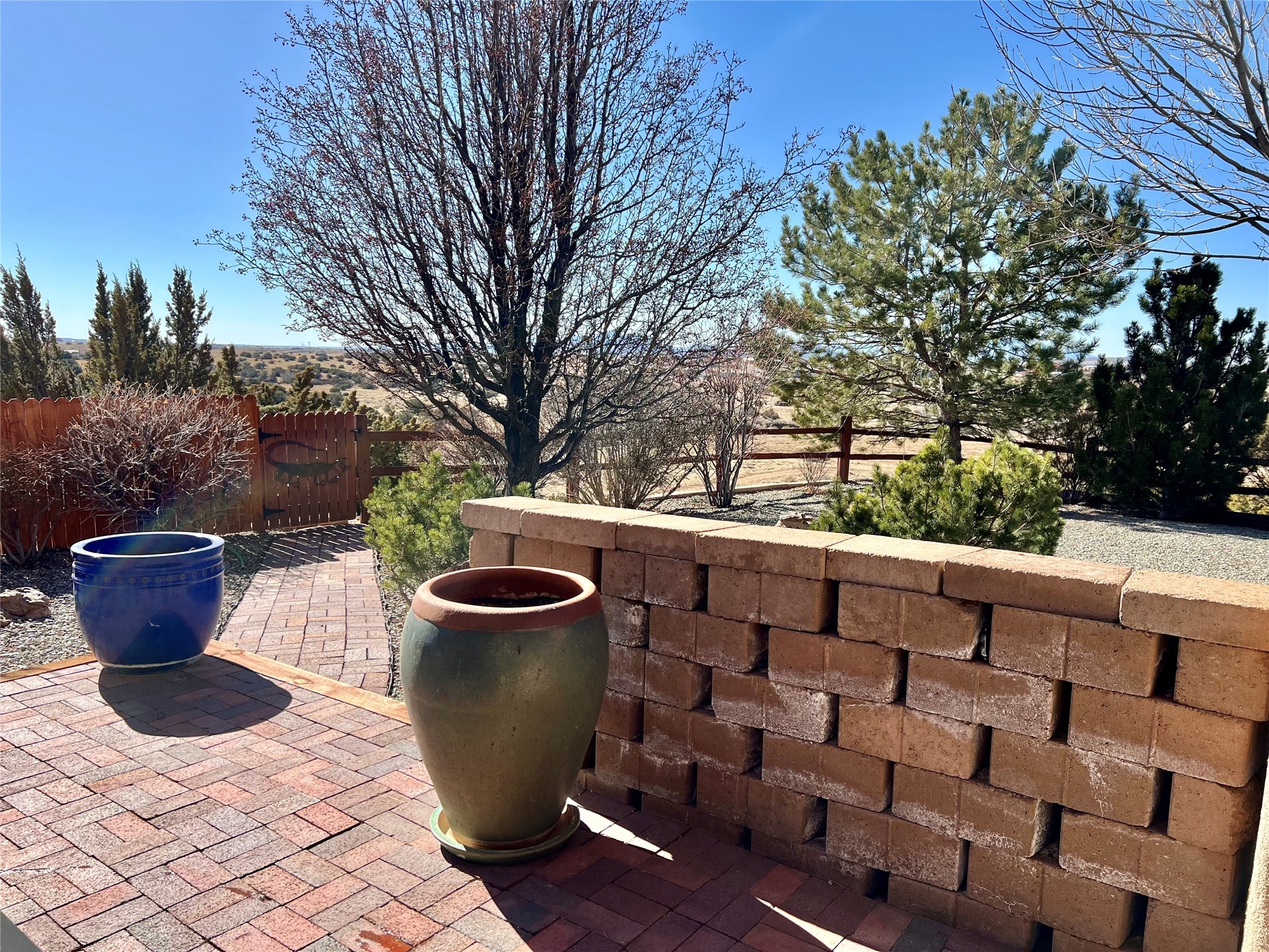 Nestled in a quiet cul-de-sac with no neighbors on the west or south sides, this charming and meticulously maintained home offers the perfect blend of privacy, comfort, and modern updates. Featuring three spacious bedrooms, two bathrooms, a dedicated office, and a generous two-car garage, this home's well-designed layout provides both functionality and warmth.The inviting living space is highlighted by beautiful vigas and soaring 10-foot ceilings, adding a touch of Southwestern elegance. Beautiful skylights throughout the home, a cozy fireplace completes the space, creating a warm and inviting atmosphere ideal for relaxation.Step outside to a beautifully landscaped backyard--a true gardener's dream! Thoughtfully designed with lush greenery and open space, this serene retreat offers breathtaking views and endless possibilities for outdoor enjoyment. The covered patio, complete with a ceiling fan, provides a cool and comfortable space to relax or entertain. Whether you're tending to your garden, unwinding in the shade, or hosting guests, this private oasis is the perfect place to soak in the natural beauty that surrounds you. A storage shed provides additional space for tools and outdoor essentials, ensuring everything has its place.Recent updates include fresh stucco on the west and south sides (completed in August/September 2024), a brand-new outdoor gate and fence enclosing the property, and new paint and plush carpeting (2023), all enhancing the home's fresh and welcoming feel. Additional upgrades include a Trane HVAC system on the north side of the garage, as well as a newer water heater and furnace, both replaced approximately three to four years ago.