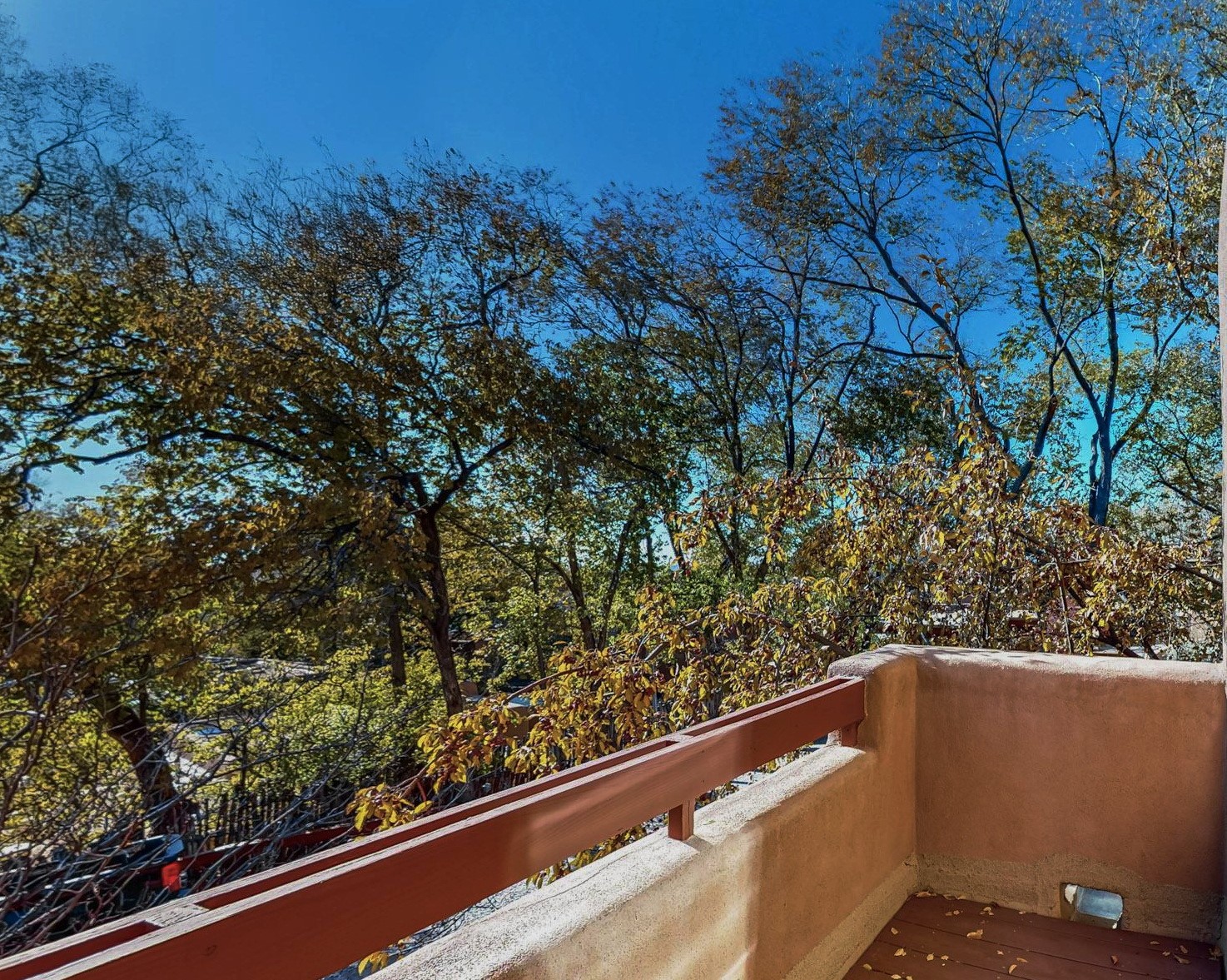 Perfectly located in the Historic Eastside, this 3 bedroom, 3 bath home with an attached 2 car garage is a rare offering. Located in the desirable La Vereda Compound, the home has been lovingly updated by the current and previous owners. Recent improvements include the kitchen with new counters and Miele appliances, central air conditioning and heating and bathroom upgrades. The open floor plan is perfect for entertaining and flows beautifully between the private patio and the living/dining areas. As an end unit it is bright and airy. The living room with a kiva fireplace, high ceilings, and glass roofed dining area is an inviting space. The drip irrigated, well landscaped gardens, with a zen-like water feature and mature trees offer a relaxing respite. The spacious upper-level primary bedroom suite features a kiva fireplace, walk-in closet, en-suite bath and opens onto a private deck overlooking the trees. The 2 guest bedrooms and baths are separated nicely offering privacy. The rarely found 2 car attached garage features a 220V vehicle charger, new opener, and bicycle storage. This home can be a perfect full-time residence or pied a tierre for a discerning buyer.