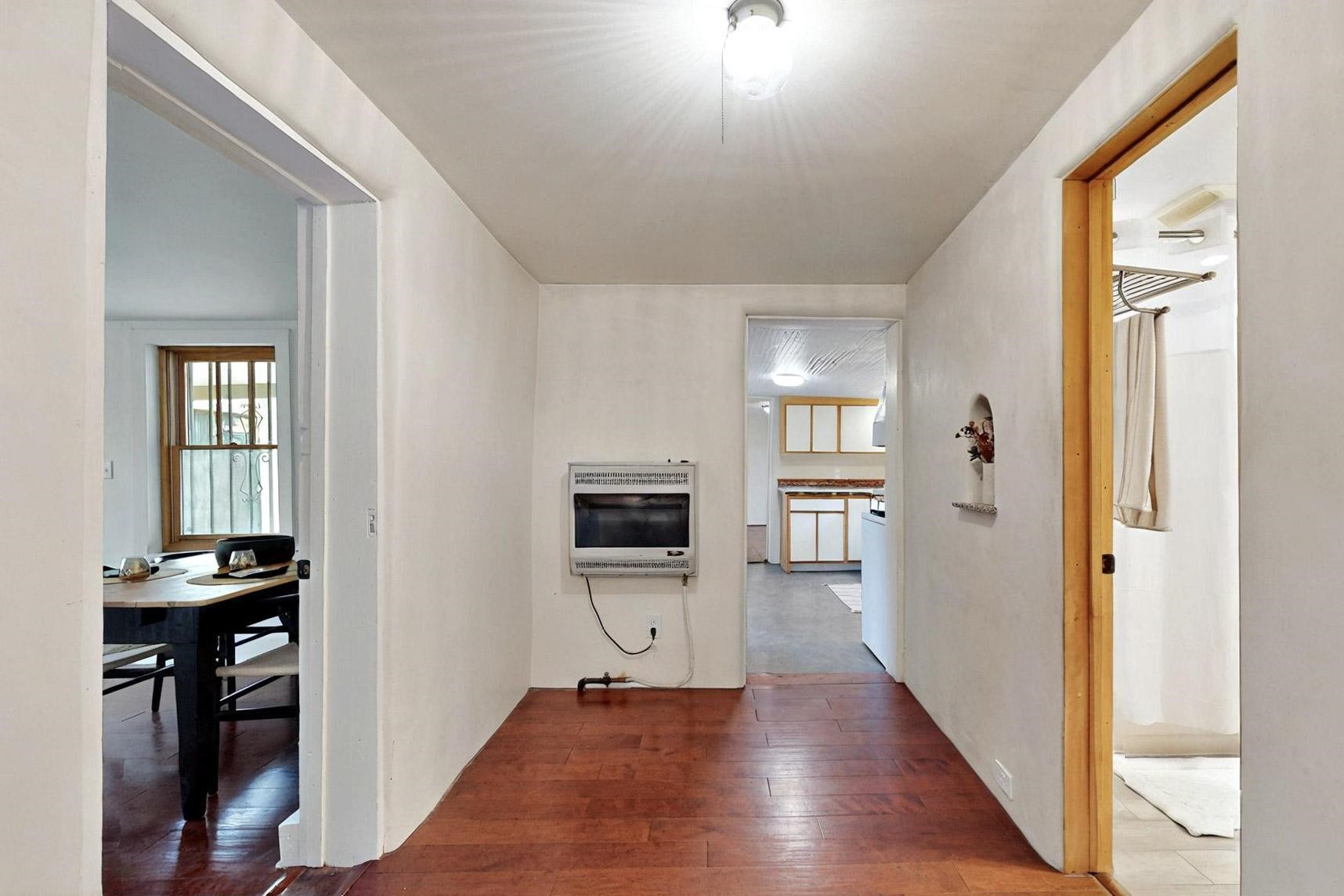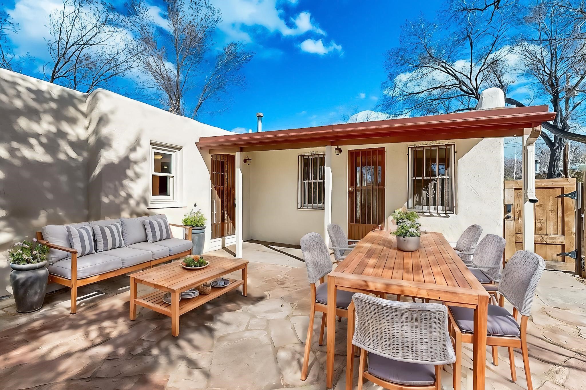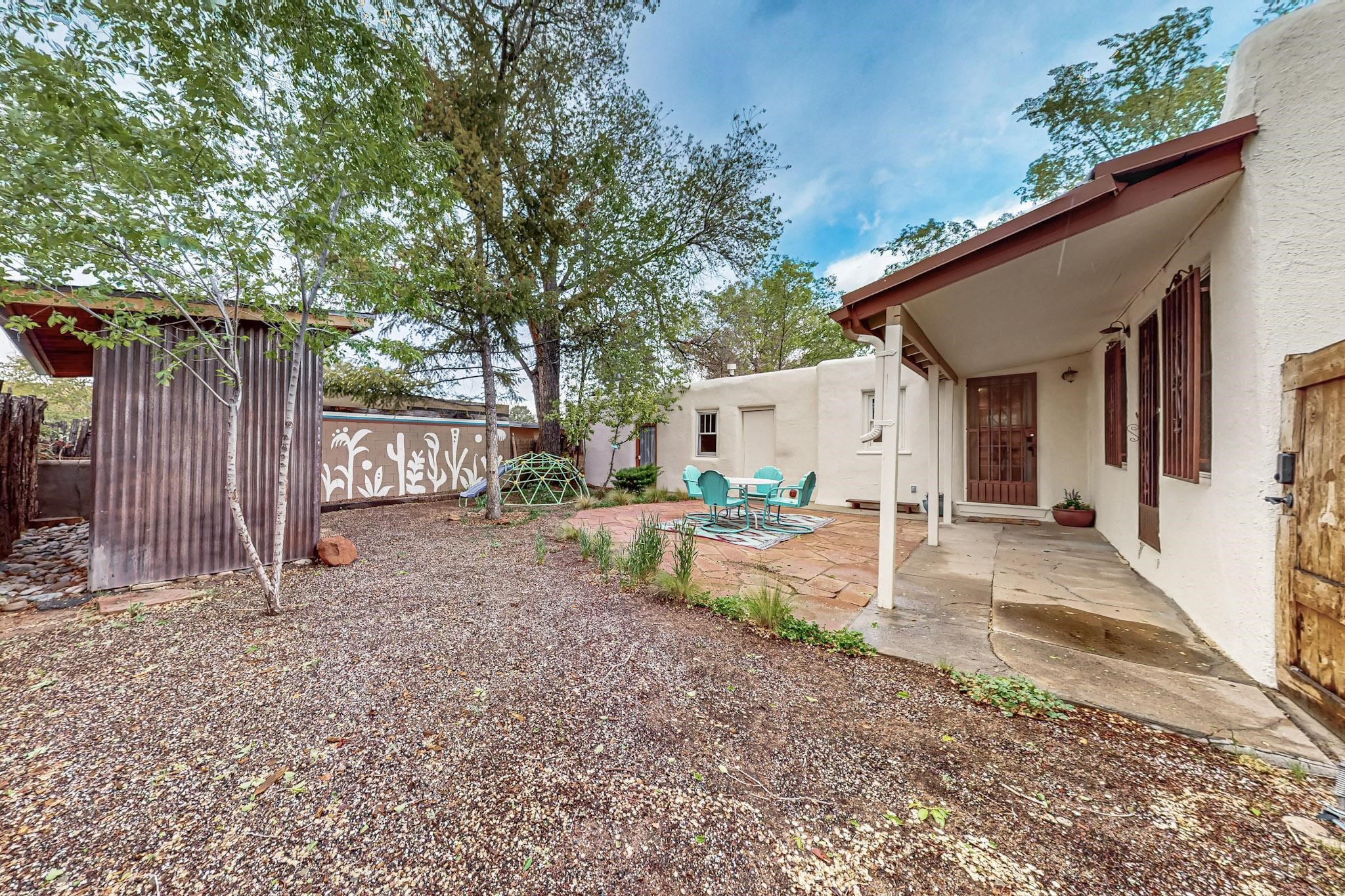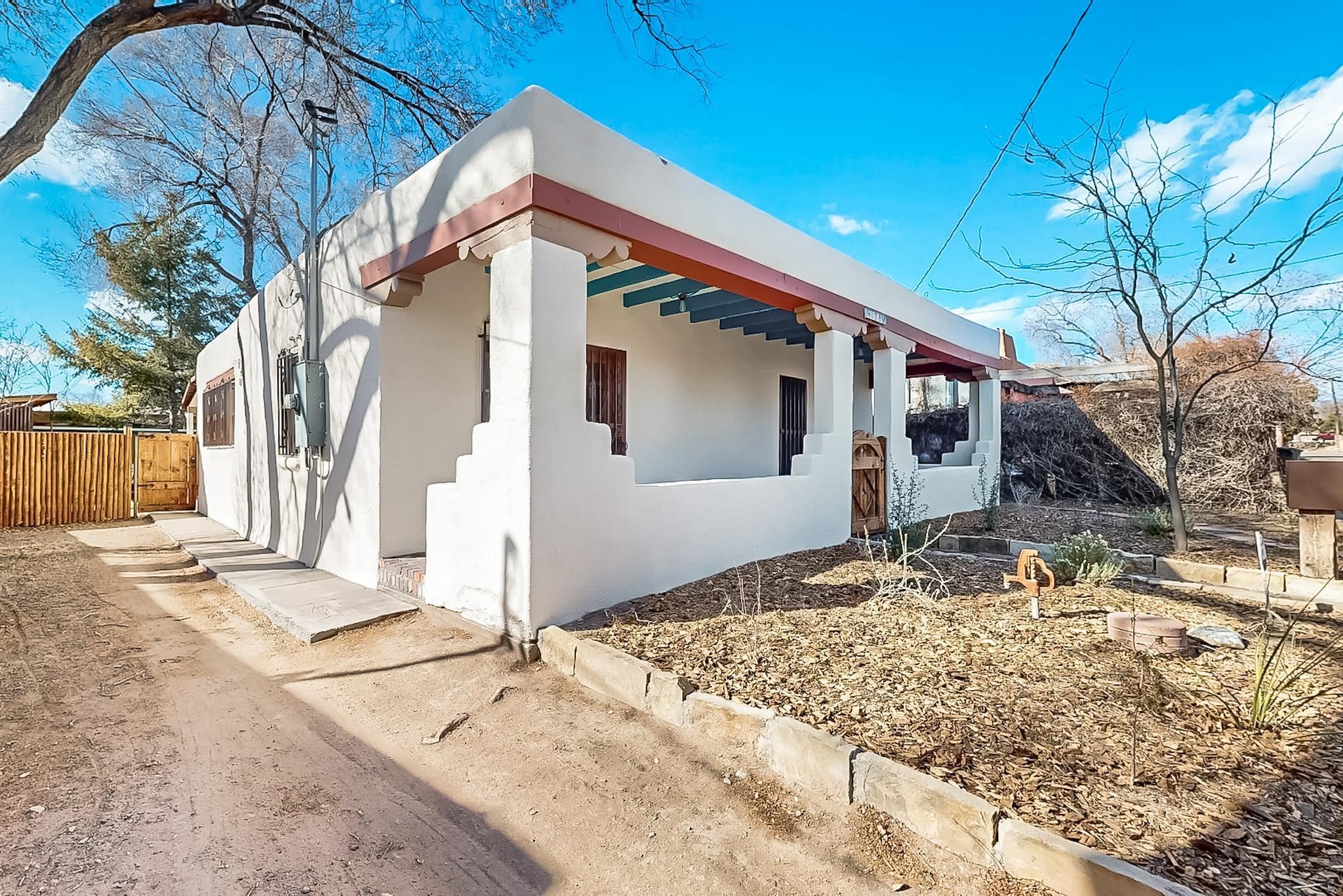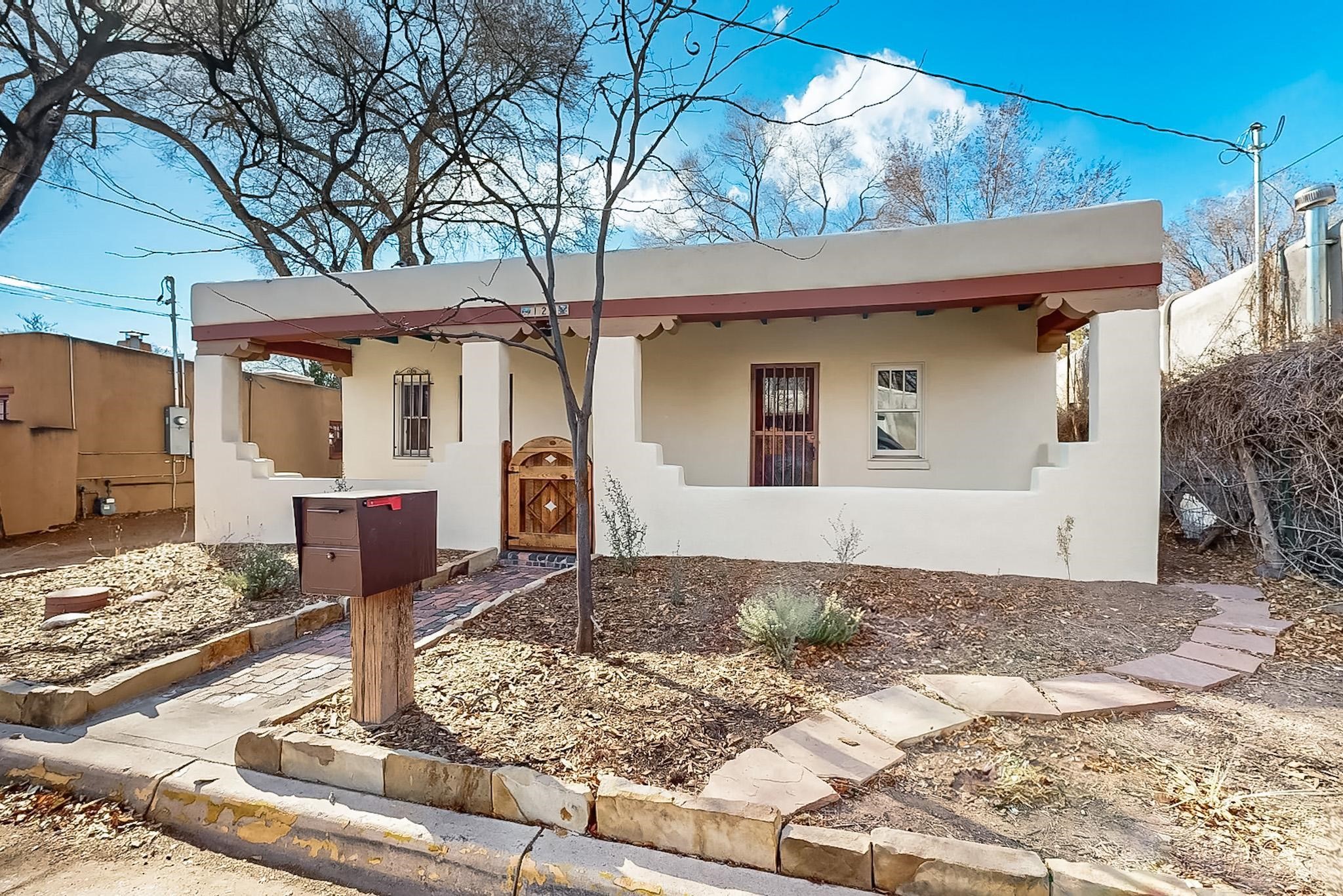 Newly staged.Take another look.This 1900s downtown vintage casa is a blank canvas ready for your creative touches. With its mature trees, the backyard offers a private setting for entertaining or relaxation. A separate unheated storage room off the laundry room (accessible from the outside) could be transformed into a fabulous office, art studio, or guest room. Off-street tandem parking. Mature trees. The cellar offers extra space for storage. Just a few blocks away, you'll find the historic Santa Fe Plaza, with its excellent shops, world-class restaurants, galleries, and the Rail Runner commuter train for easy access to ABQ. If construction type (e.g., Adobe) is of material consideration to the Buyer then Buyer should obtain independent verification of construction type and materials.