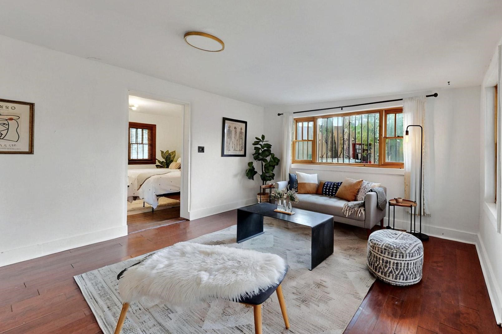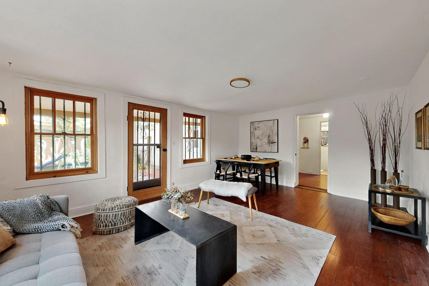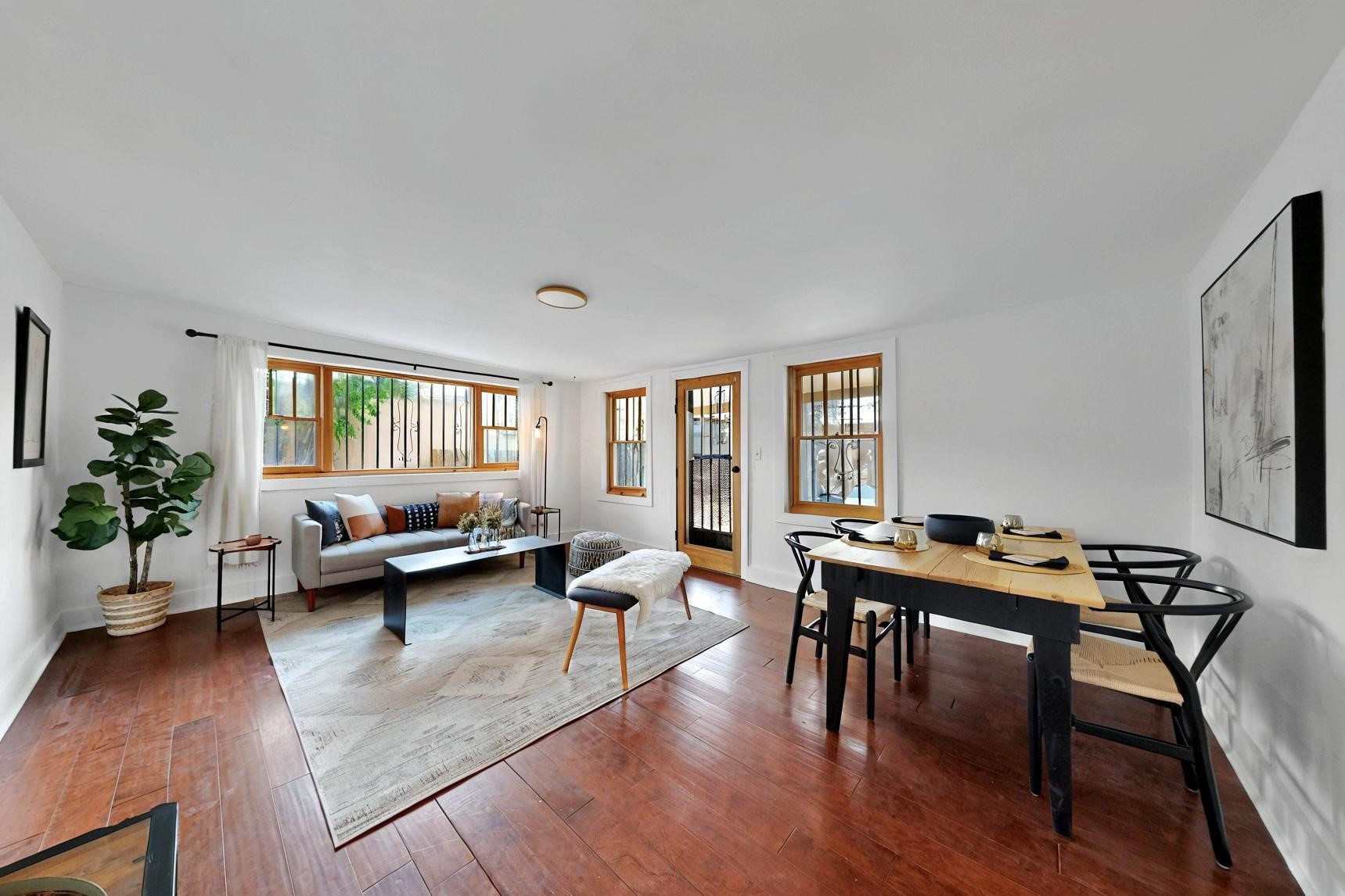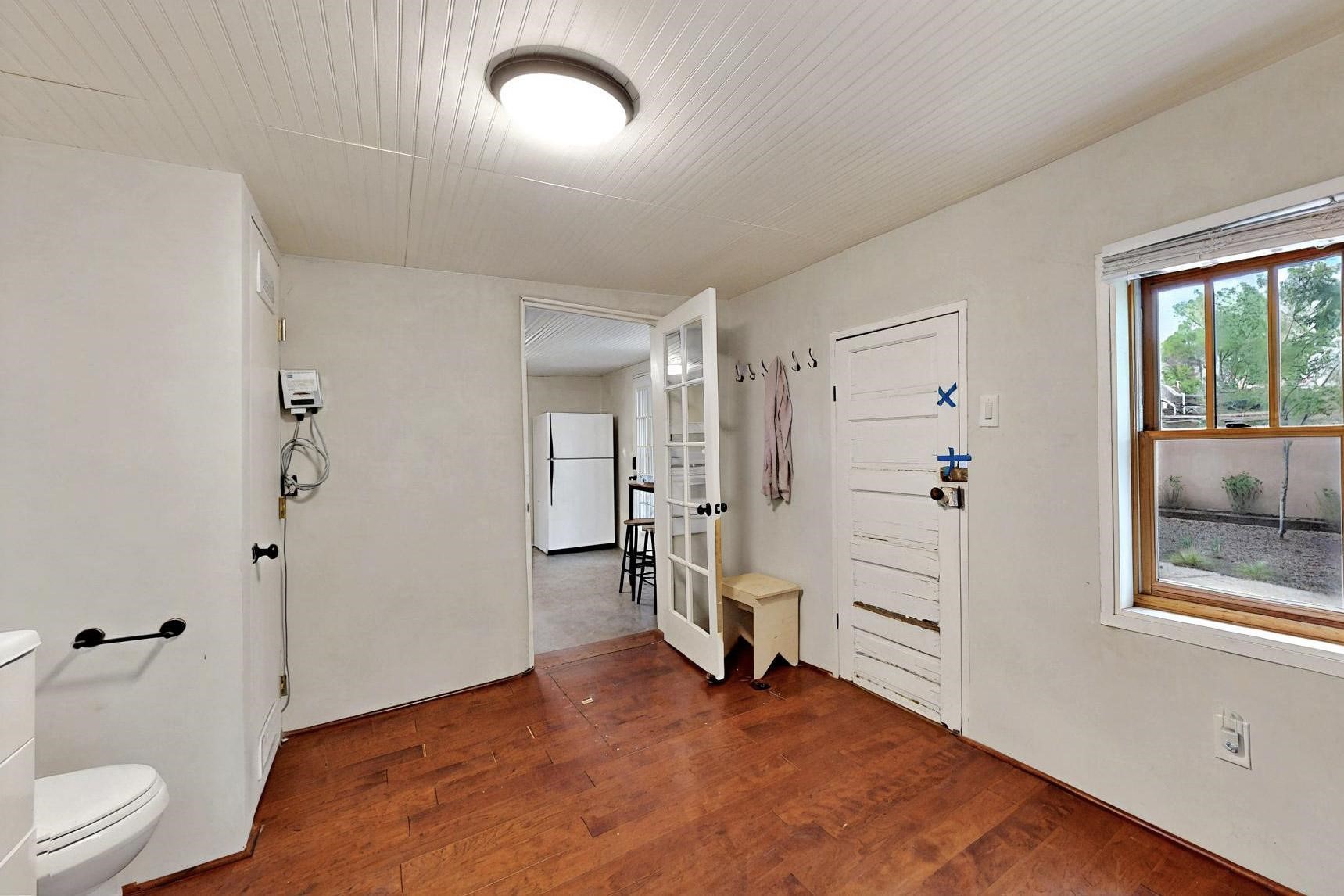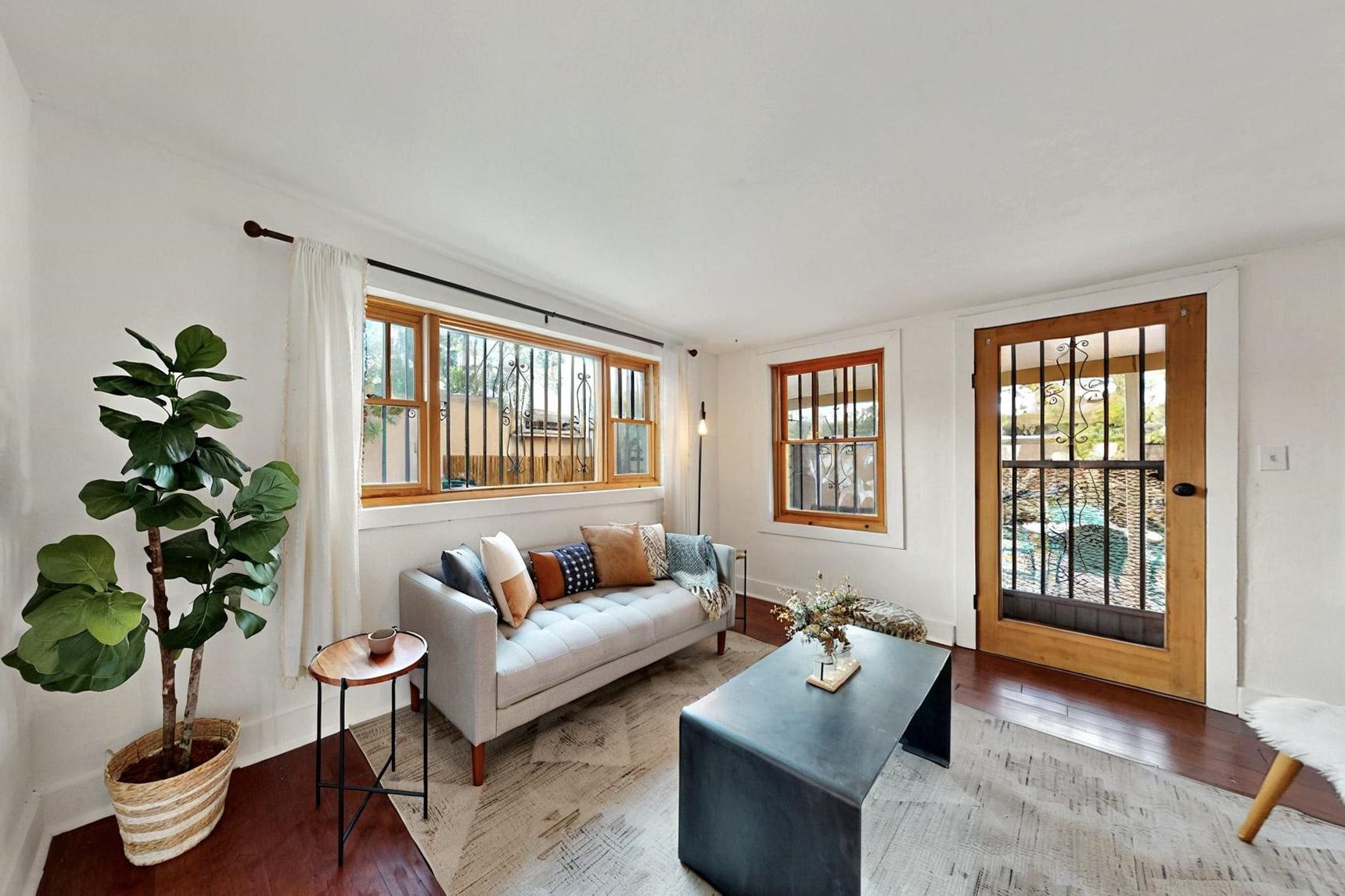 Newly staged.Take another look.This 1900s downtown vintage casa is a blank canvas ready for your creative touches. With its mature trees, the backyard offers a private setting for entertaining or relaxation. A separate unheated storage room off the laundry room (accessible from the outside) could be transformed into a fabulous office, art studio, or guest room. Off-street tandem parking. Mature trees. The cellar offers extra space for storage. Just a few blocks away, you'll find the historic Santa Fe Plaza, with its excellent shops, world-class restaurants, galleries, and the Rail Runner commuter train for easy access to ABQ. If construction type (e.g., Adobe) is of material consideration to the Buyer then Buyer should obtain independent verification of construction type and materials.