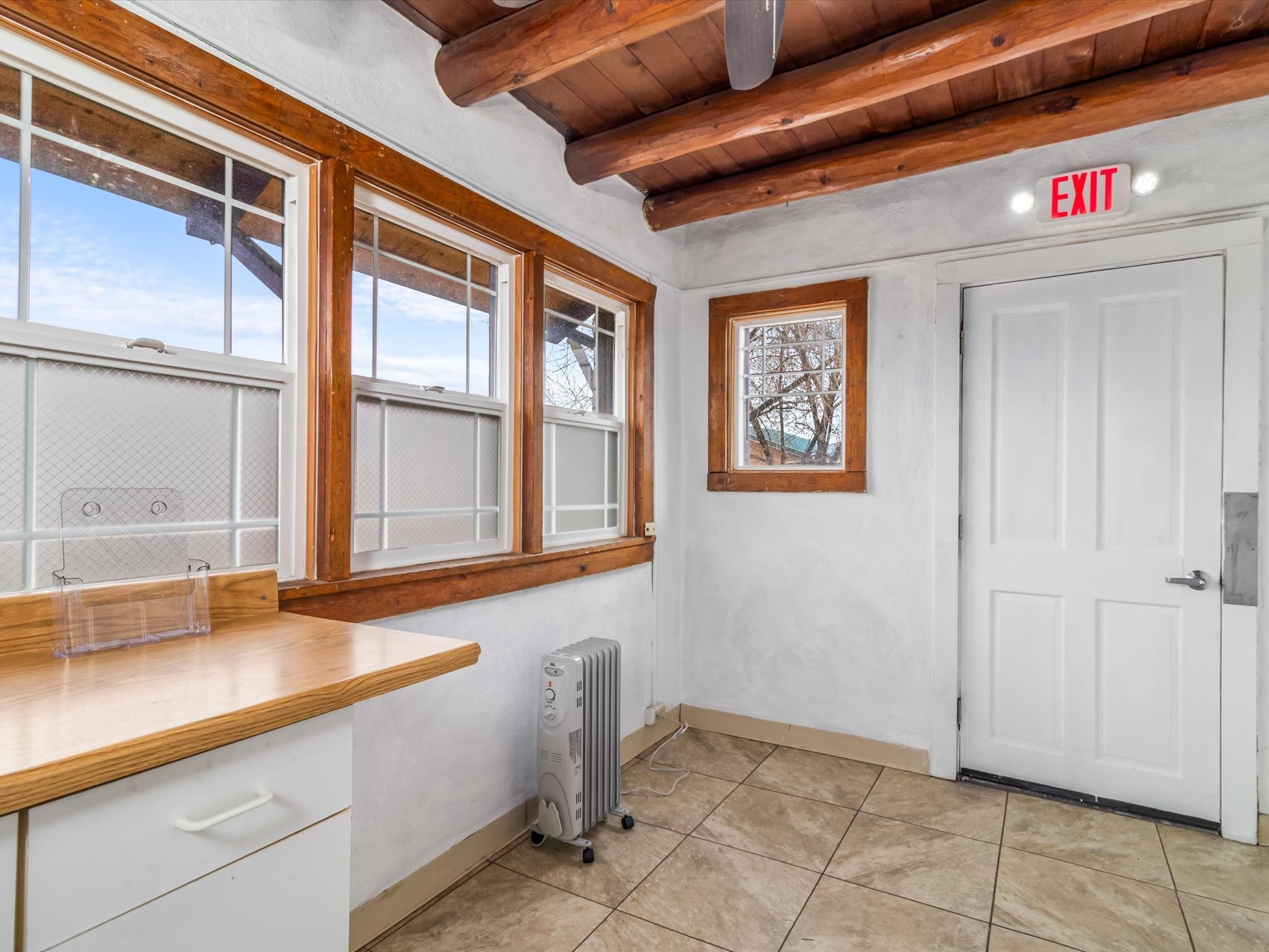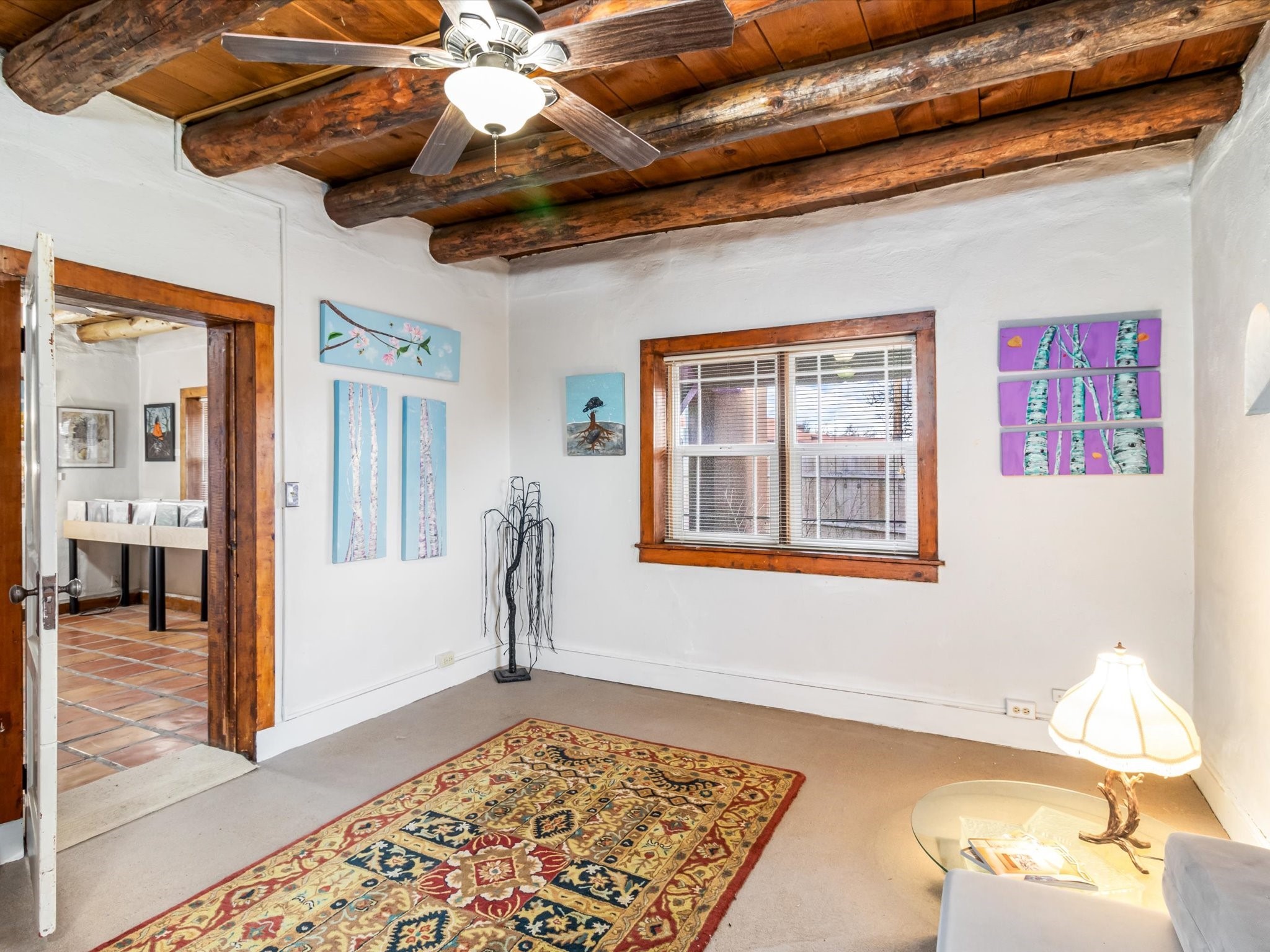 Welcome to 1217 Agua Fra Street, a versatile and charming adobe property that offers endless possibilities for families, multigenerational living, or investment opportunities. The main home features 2 bedrooms and 1 bath, complemented by a 1-bedroom, 1-bath attached unit. The main living area showcases Saltillo tile flooring, known for its durability AND scratch resistance making it a practical yet stylish choice. Lots of Santa fe Charm with wood ceilings and Vegas. In the back, you'll find a spacious 2-bedroom, 1-bath casita that exudes the same quintessential Santa Fe charm. Both homes highlight stunning adobe walls and authentic wood vigas, creating a warm and inviting atmosphere. Situated in the heart of Santa Fe, this property is perfectly positioned for easy access to local attractions, dining, and shopping. Ample parking and flexible zoning (C-1) add to its appeal, offering potential for additional development or creative uses. Don't miss the opportunity to own a piece of Santa Fe's rich heritage and vibrant culture. Contact us today to schedule your private tour!