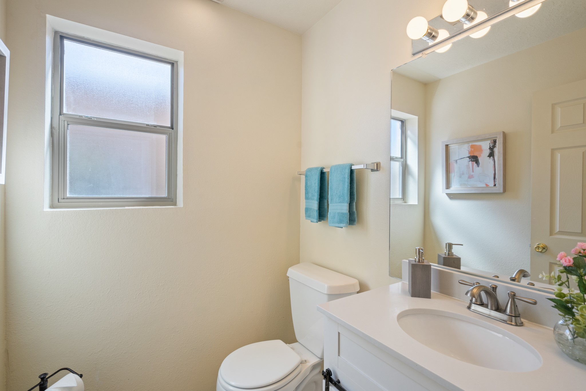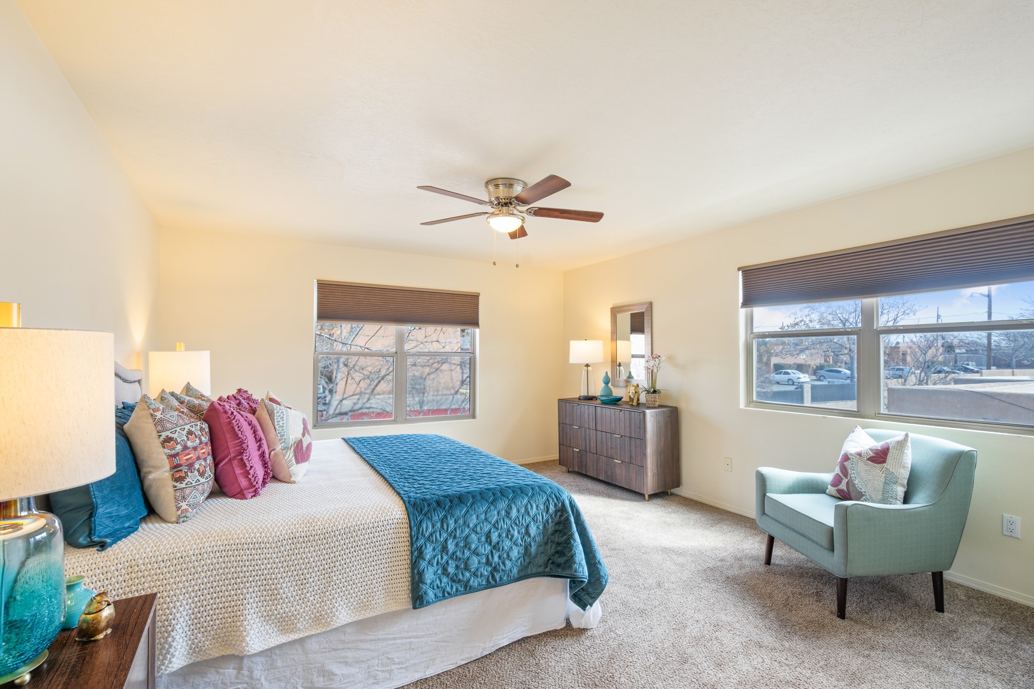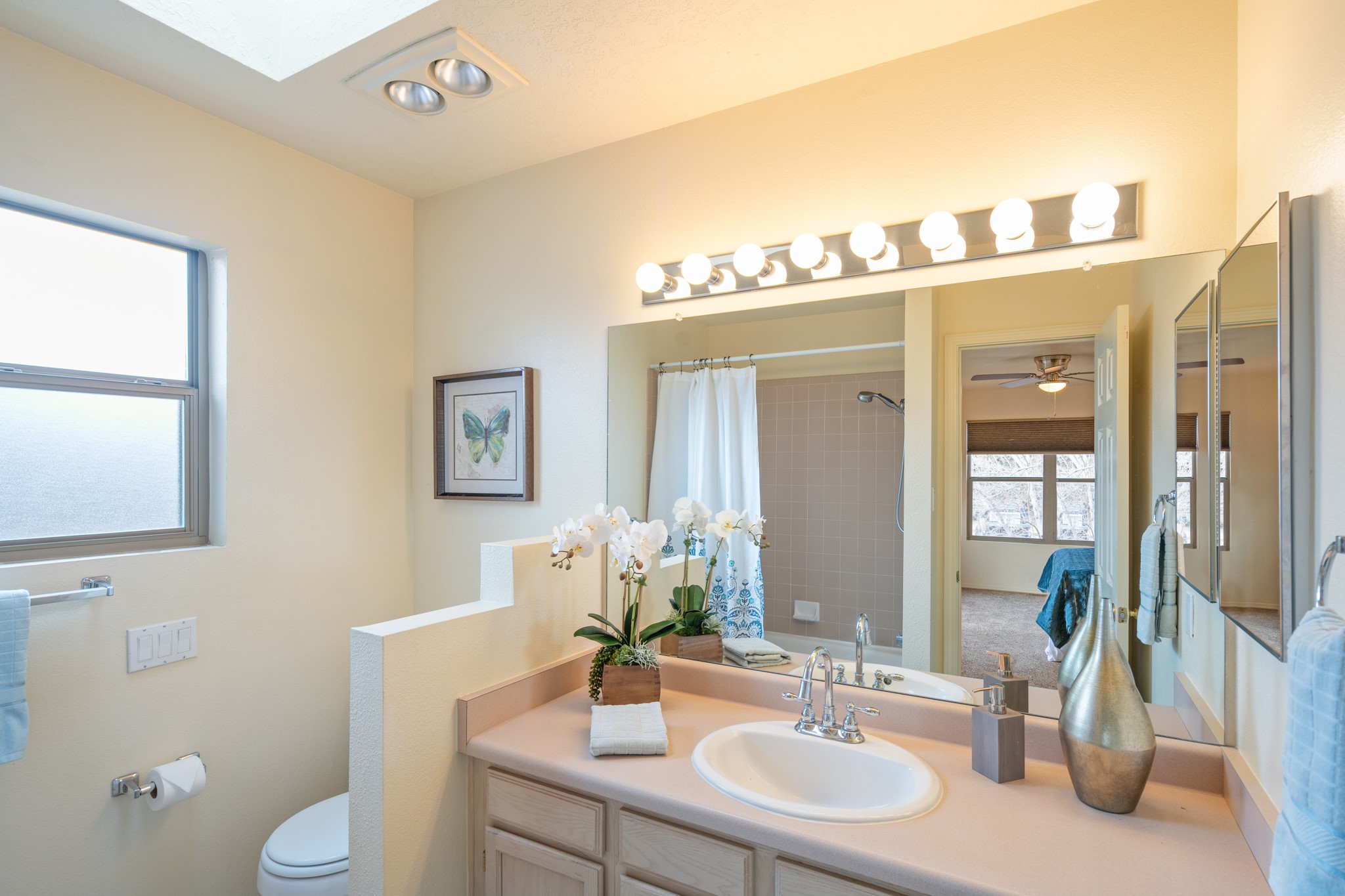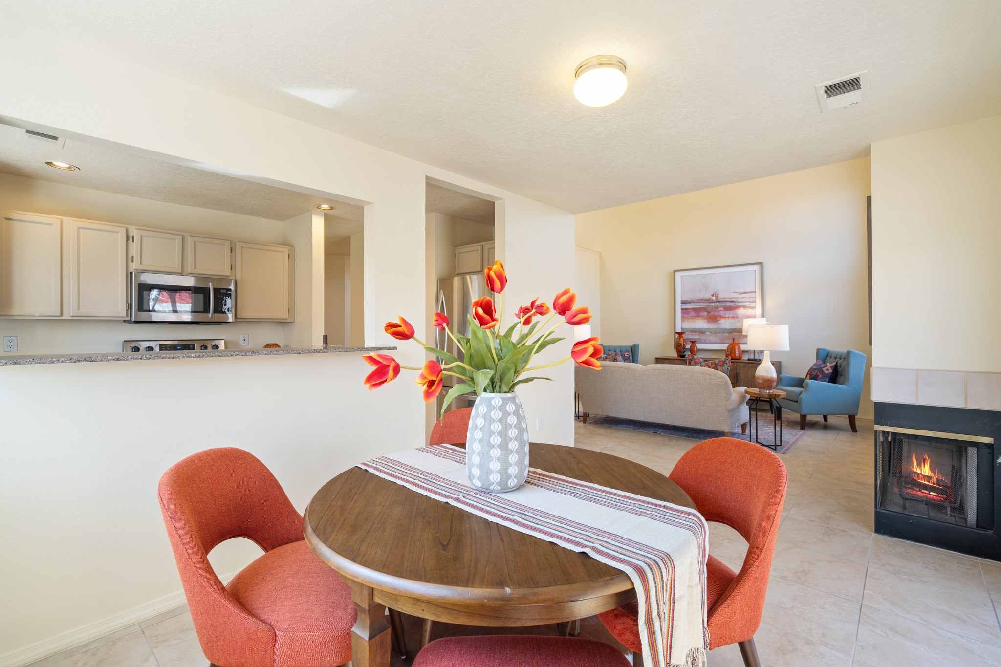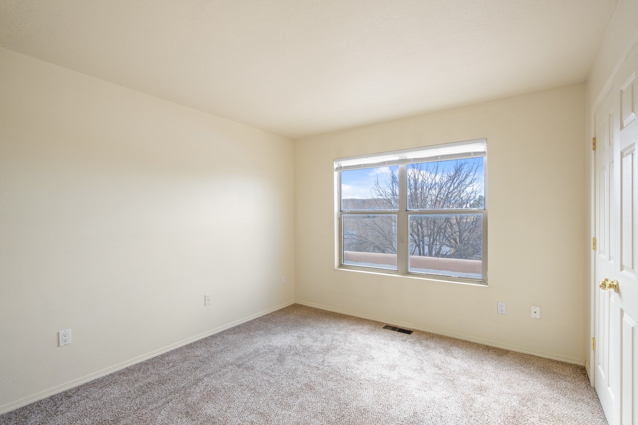 Priced $41,000 below appraisal and pre-inspected, this beautifully updated, light, and bright 3-bedroom, 2.5-bathroom home is situated on a quiet cul-de-sac providing a peaceful and very private ambiance in the heart of central Santa Fe. The two-story design boasts an open and airy layout, accentuated by soaring ceilings in the living room, clearstory picture windows that flood the space with natural light, and a charming wood-burning fireplace. Central refrigerated air conditioning and skylights throughout ensure year-round comfort and a welcoming atmosphere.The modernized kitchen shines with elegant granite countertops and stainless steel appliances complementing the home's contemporary feel. The updated bathrooms feature tasteful finishes that add a touch of luxury. The master suite is a serene retreat, complete with an ensuite bathroom and a generously sized walk-in closet, providing ample storage and privacy.Outdoor living is a delight with a fully enclosed, gated courtyard and an expansive yard shaded by lovely mature trees, offering both privacy and beautiful green screening during the warmer months. The patio area is ideal for outdoor entertaining or simply relaxing in the tranquil surroundings. Adding to the sense of seclusion, an unbuildable lot next door enhances the privacy and provides additional space.Practicality meets convenience with an attached 2-car garage and no HOA fees. Centrally located, this home is just minutes from shopping, parks, restaurants, fitness centers, and schools, making it an ideal spot for easy, everyday living. This stunning Santa Fe home offers a rare combination of modern updates, spacious design, and an unbeatable location.