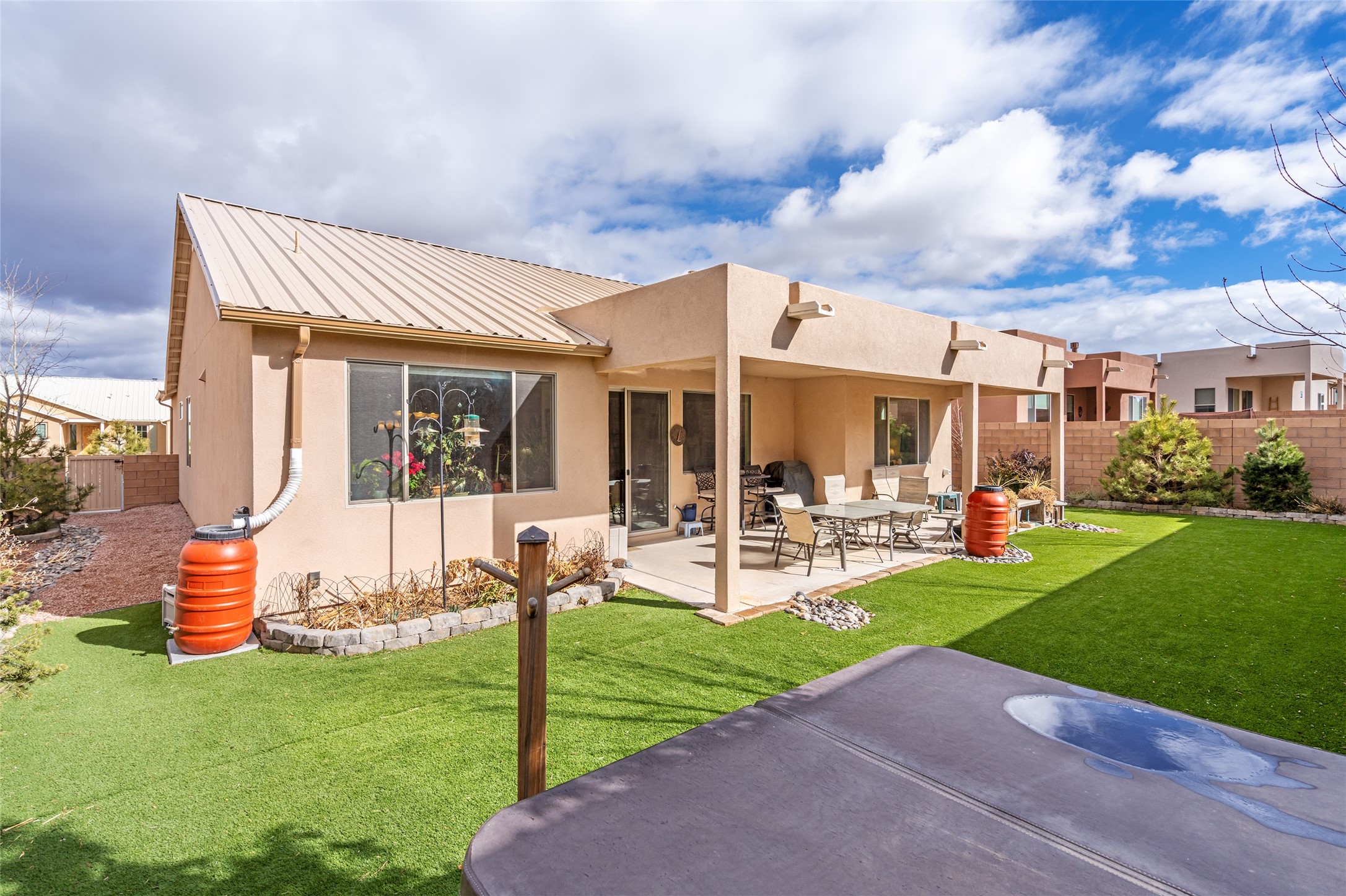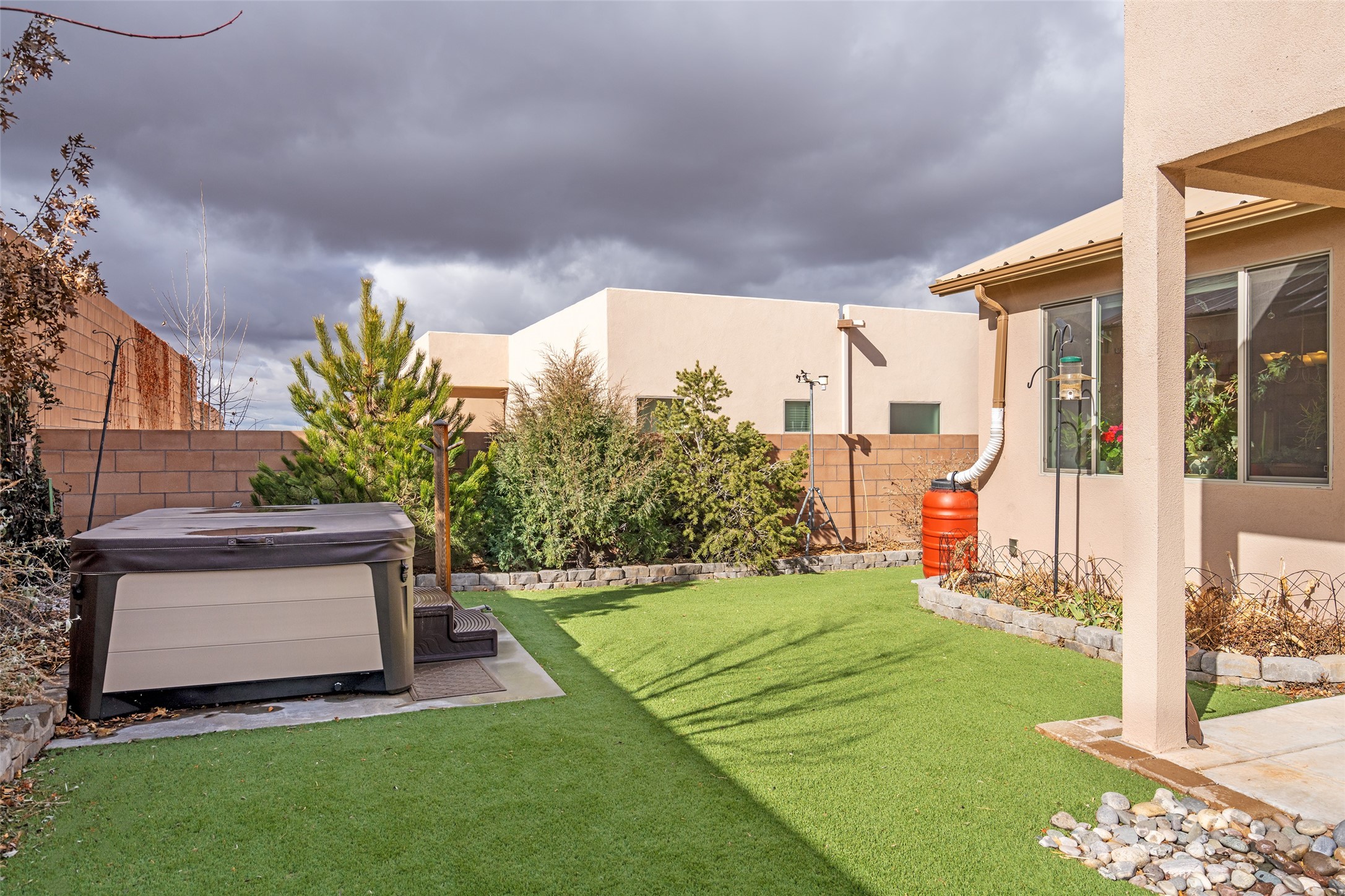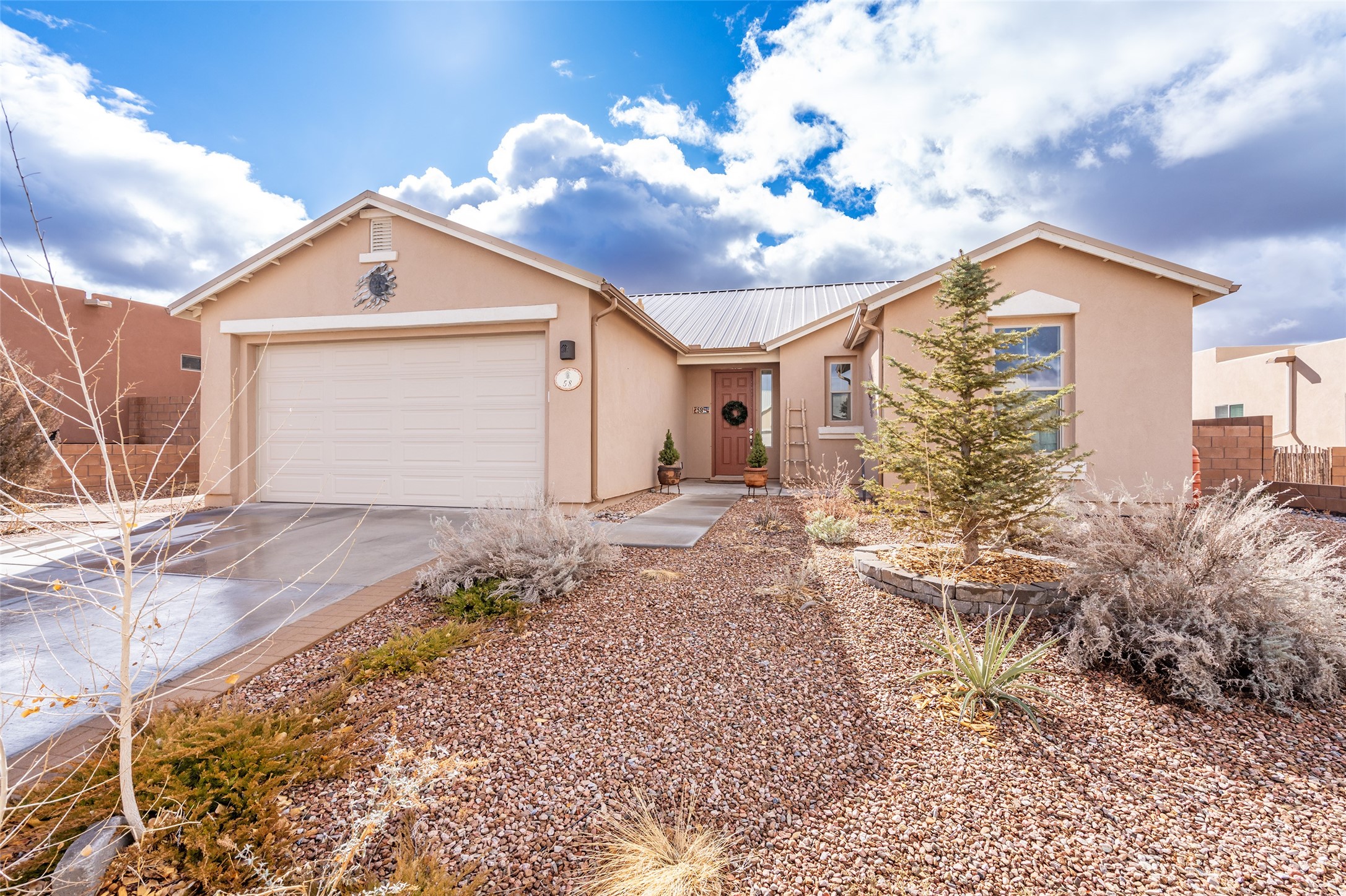 Upgraded Estrella Floor Plan - Move-In Ready with Luxury Touches! Why wait to build? Thoughtfully designed, this two-year-old Estrella floor plan offers style and functionality in a move-in-ready package. Step inside to find gorgeous maple cabinets, elegant granite countertops, 2 year old stainless steel appliances and premium finishes throughout. The open-concept design features tile and engineered wood flooring in the main living areas, while two bedrooms offer soft, plush carpeting. Cozy up on cool evenings by the gas fireplace, a perfect addition to the inviting living space. The split-bedroom layout ensures privacy, with the spacious primary suite offering views of the private backyard, and a spa-like en-suite bath featuring a soaking tub for ultimate relaxation, separate tiled shower, two lighted medicine cabinets with built-in charging stations, double sinks with granite, and beautiful cabinetry. The large walk-in closet is divine and will accommodate your all season wardrobe. Outside, the covered portal leads to a private backyard oasis enclosed by a large privacy wall. Native landscaping on a drip system, combined with astroturf for Fido, ensures beauty with low maintenance. And for the ultimate in relaxation, enjoy your two-year-old Hot Springs hot tub while stargazing at night. Located in the highly desirable Rancho Viejo community, this home is part of a unique village concept dedicated to open space. With more than 14 miles of scenic walking trails and numerous parks, residents enjoy a serene and active lifestyle. Plus, you're roughly 12 miles from the Santa Fe Plaza, making it easy to experience all the culture, dining, & entertainment Santa Fe has to offer. Don't miss this rare opportunity to own a better-than-new home in a breathtaking community--schedule your private showing today!