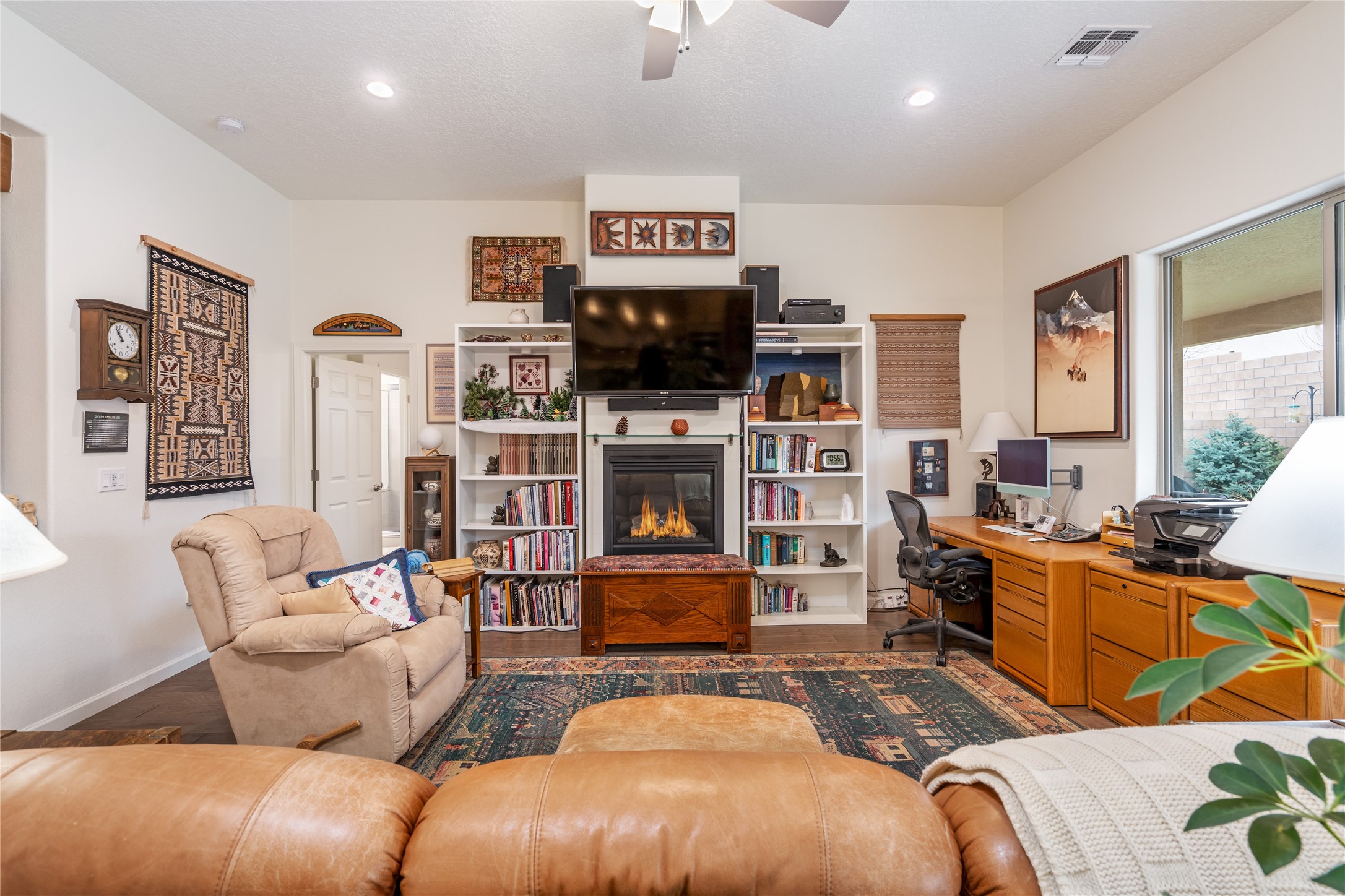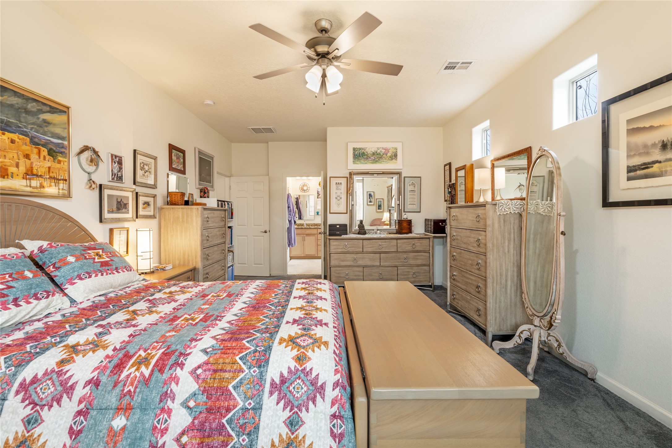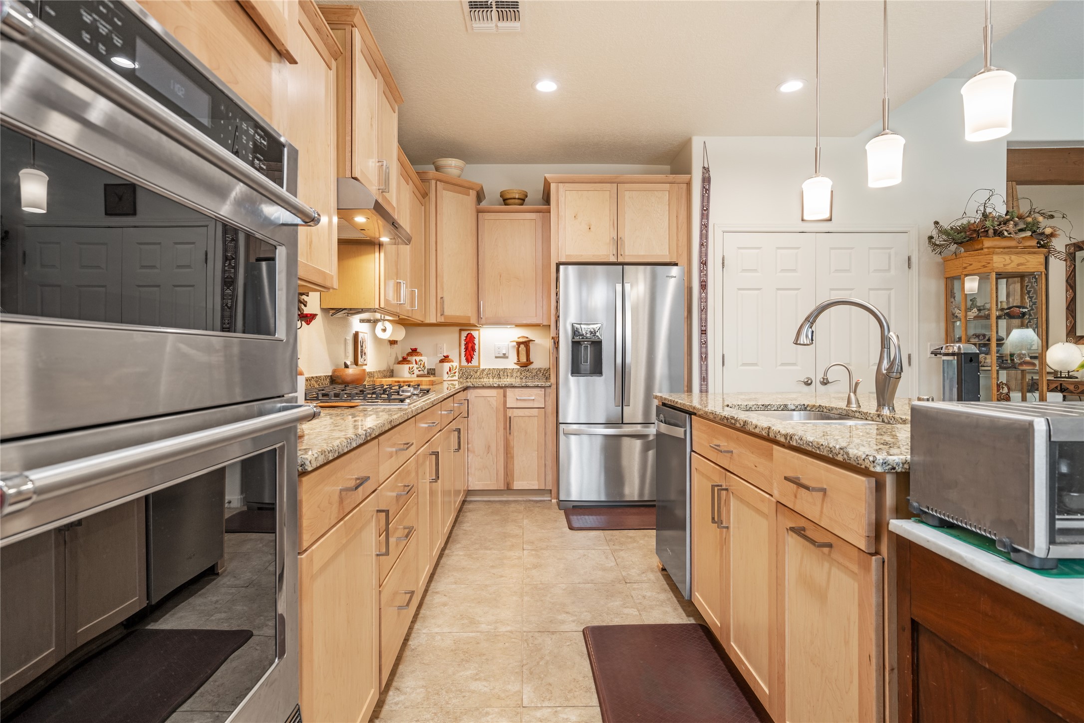 Upgraded Estrella Floor Plan - Move-In Ready with Luxury Touches! Why wait to build? Thoughtfully designed, this two-year-old Estrella floor plan offers style and functionality in a move-in-ready package. Step inside to find gorgeous maple cabinets, elegant granite countertops, 2 year old stainless steel appliances and premium finishes throughout. The open-concept design features tile and engineered wood flooring in the main living areas, while two bedrooms offer soft, plush carpeting. Cozy up on cool evenings by the gas fireplace, a perfect addition to the inviting living space. The split-bedroom layout ensures privacy, with the spacious primary suite offering views of the private backyard, and a spa-like en-suite bath featuring a soaking tub for ultimate relaxation, separate tiled shower, two lighted medicine cabinets with built-in charging stations, double sinks with granite, and beautiful cabinetry. The large walk-in closet is divine and will accommodate your all season wardrobe. Outside, the covered portal leads to a private backyard oasis enclosed by a large privacy wall. Native landscaping on a drip system, combined with astroturf for Fido, ensures beauty with low maintenance. And for the ultimate in relaxation, enjoy your two-year-old Hot Springs hot tub while stargazing at night. Located in the highly desirable Rancho Viejo community, this home is part of a unique village concept dedicated to open space. With more than 14 miles of scenic walking trails and numerous parks, residents enjoy a serene and active lifestyle. Plus, you're roughly 12 miles from the Santa Fe Plaza, making it easy to experience all the culture, dining, & entertainment Santa Fe has to offer. Don't miss this rare opportunity to own a better-than-new home in a breathtaking community--schedule your private showing today!