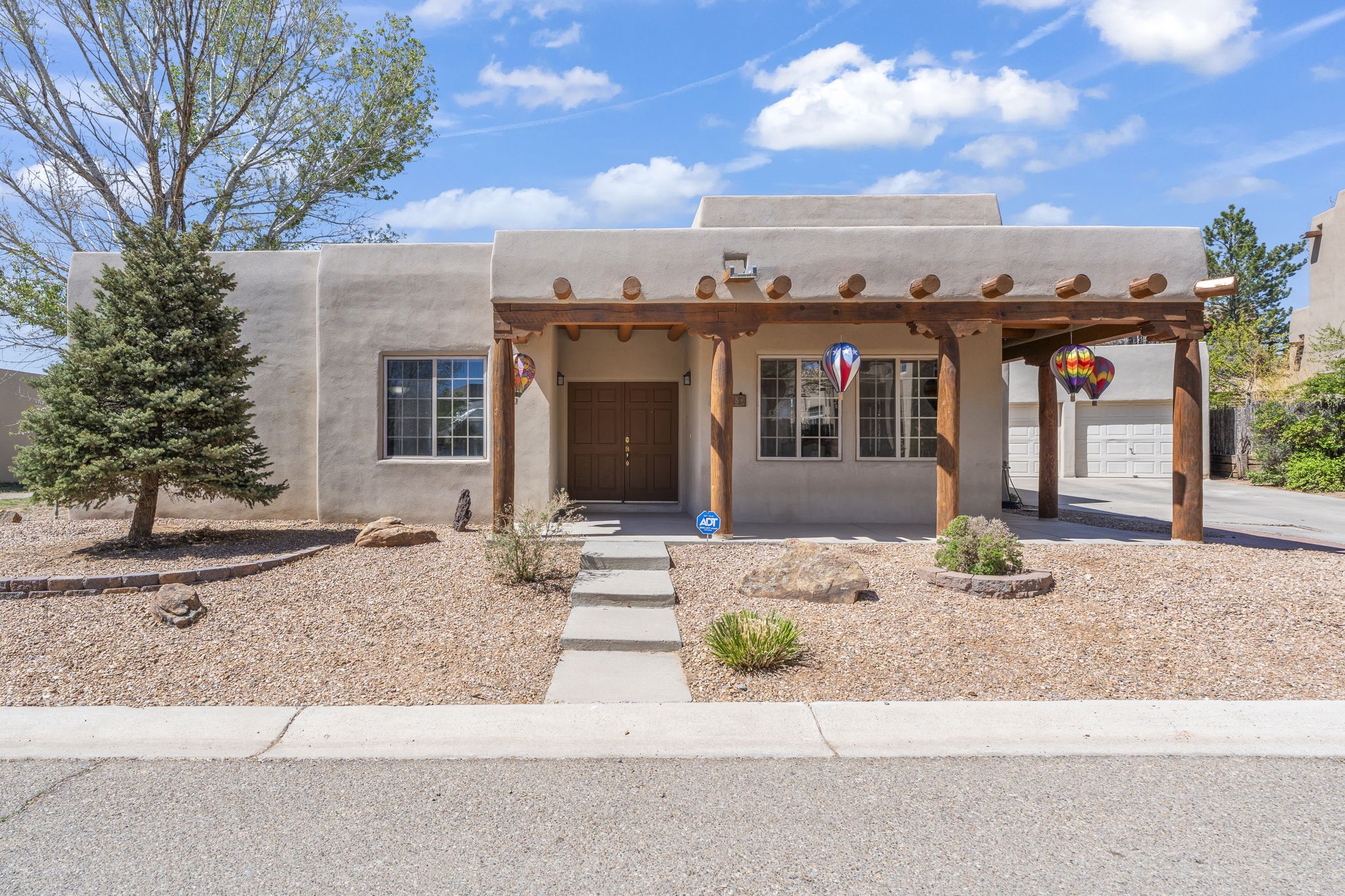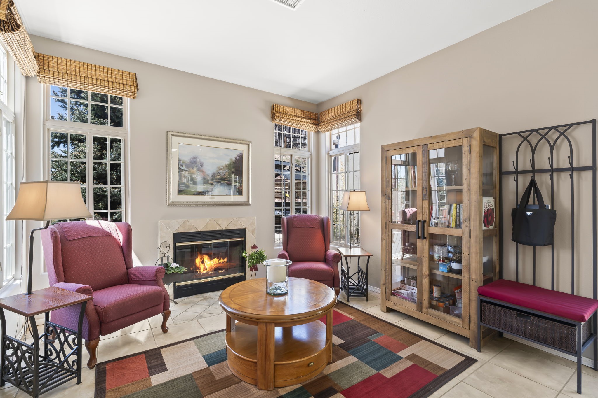 True to its name, the versatile Sunflower floor plan radiates natural light and timeless Southwestern character. This thoughtfully designed single-level home offers over 2,000 square feet of well-balanced living space, featuring four bedrooms--or three bedrooms plus a dedicated office or den to suit your lifestyle needs.Enjoy multiple inviting spaces, including two separate living areas and a dedicated dining space that seamlessly connect to the heart of the home: a spacious kitchen with granite countertops and abundant cabinetry. A cozy breakfast nook and a generous living room each boast wood-burning fireplaces, creating warm, welcoming areas perfect for relaxing or entertaining.The gracious primary suite is a serene retreat with a double vanity, soaking tub, walk-in closet, and direct access to the back patio. A second bathroom includes a curbless wheelchair-accessible shower for ease and comfort.Set on a quiet cul-de-sac, the property backs to city-owned open space for added privacy and a peaceful outdoor setting. The long driveway and detached two-car garage provide ample parking for residents and guests alike.This well-maintained home includes updated finishes and modern mechanical systems throughout. Just two blocks away, enjoy access to fantastic community amenities including an outdoor pool, hot tub, sauna, and a well-equipped gym.This home combines comfort, style, and functionality in a tranquil, highly desirable location!