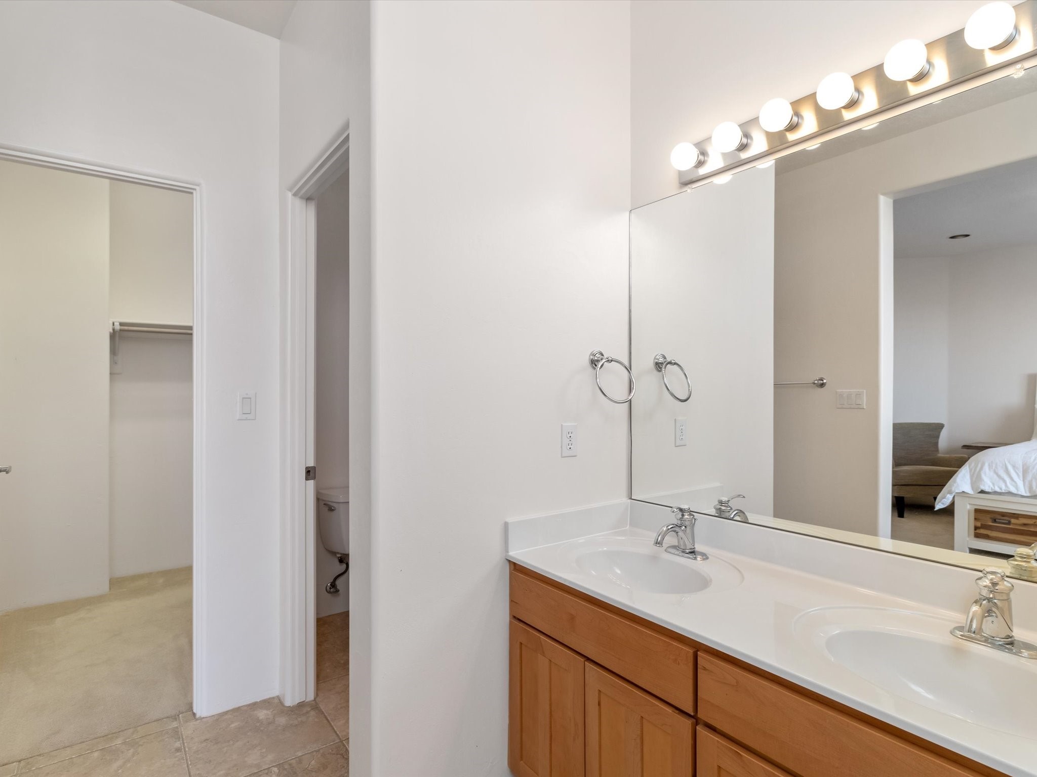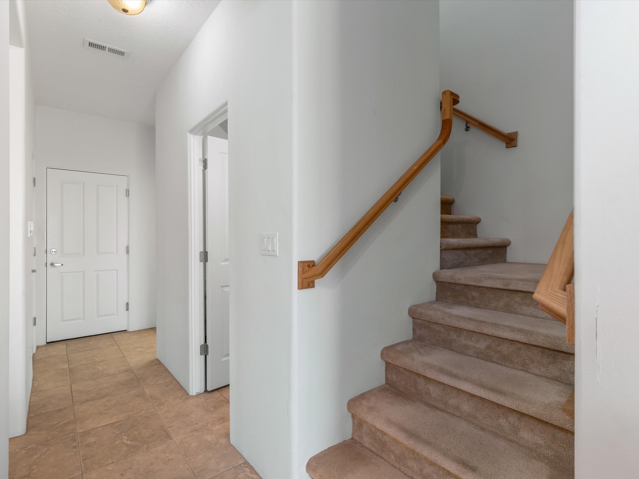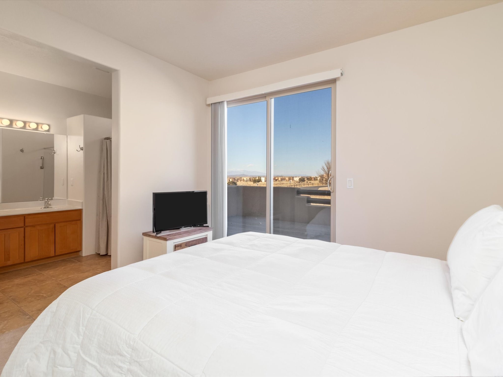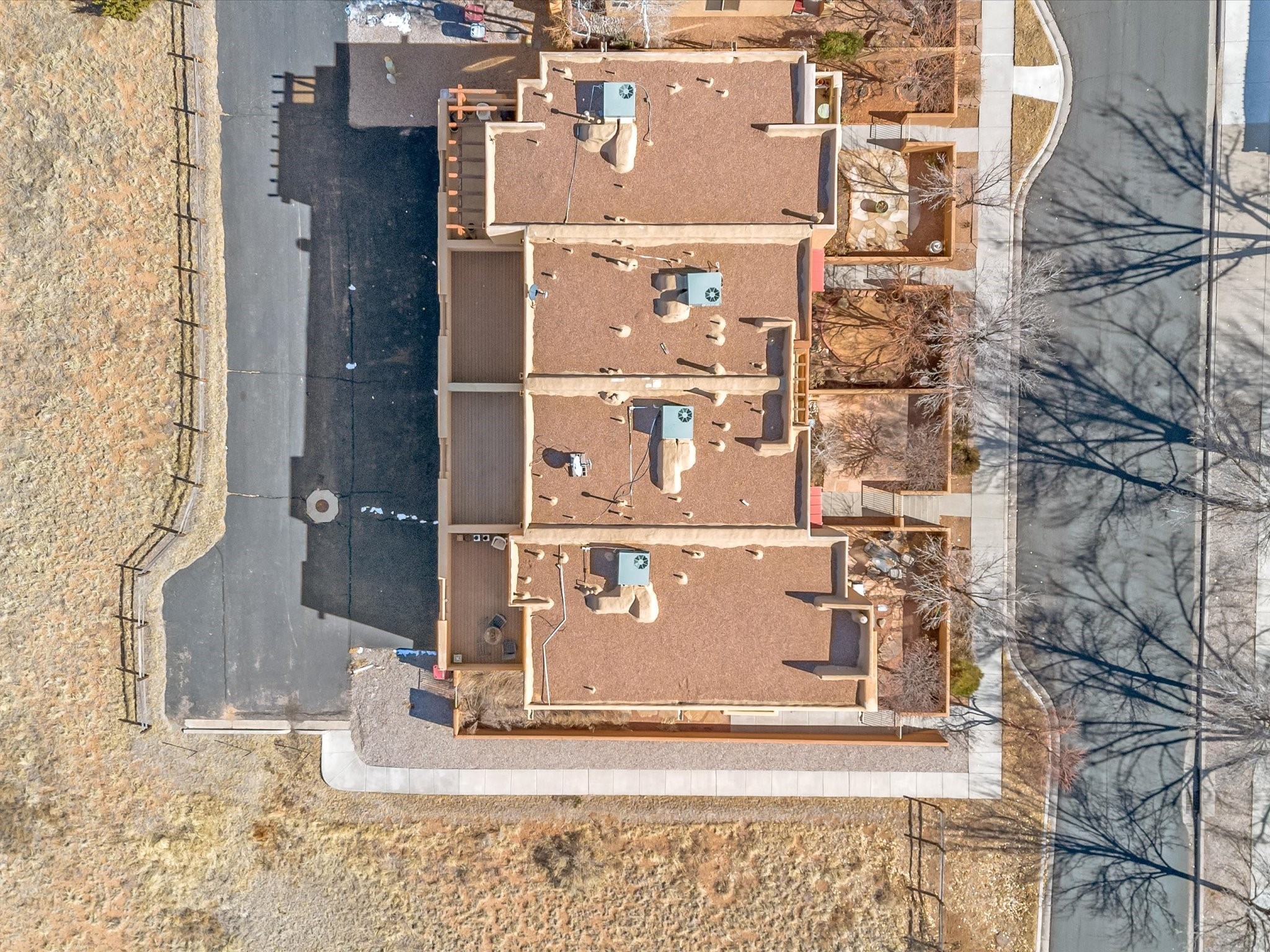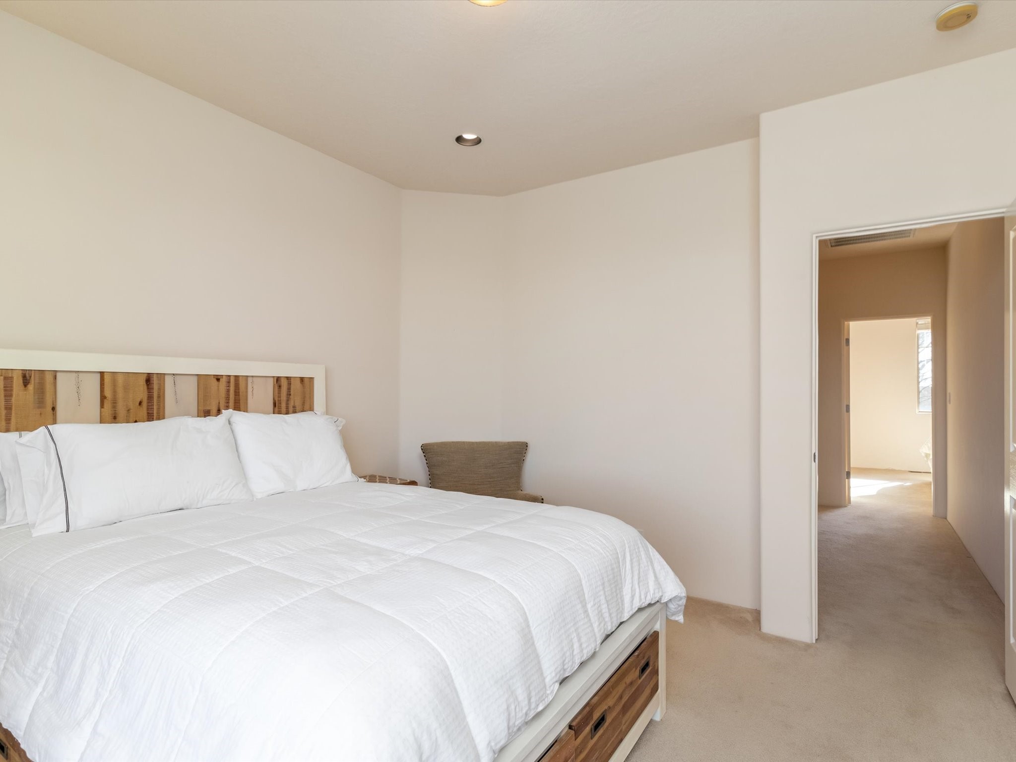 Welcome to this comfortable and warm townhome, gently lived in and located directly across from Rancho Viejo Village Park Plaza. As you step inside, you're greeted by charming tongue and groove ceilings that open up to a spacious living area--ideal for easy entertaining and everyday living. This home features 2 bedrooms, each with their own en-suite bathrooms, offering privacy and convenience. The primary bedroom opens to a large deck with stunning views, perfect for relaxing outdoors. Enjoy the natural light that floods each room, creating a bright and welcoming atmosphere. The thoughtful floor plan provides excellent separation between the bedrooms, ensuring peace and privacy. A generous front courtyard adds to the charm, offering an inviting space for outdoor gatherings or quiet moments in the fresh air. The home is surrounded by beautiful trails and ample open space for outdoor activities, and is conveniently located near Santa Fe Community College with easy access to I-25 for quick commutes. This townhome is a perfect blend of comfort, convenience, and scenic beauty. Don't wait to schedule a private showing today!