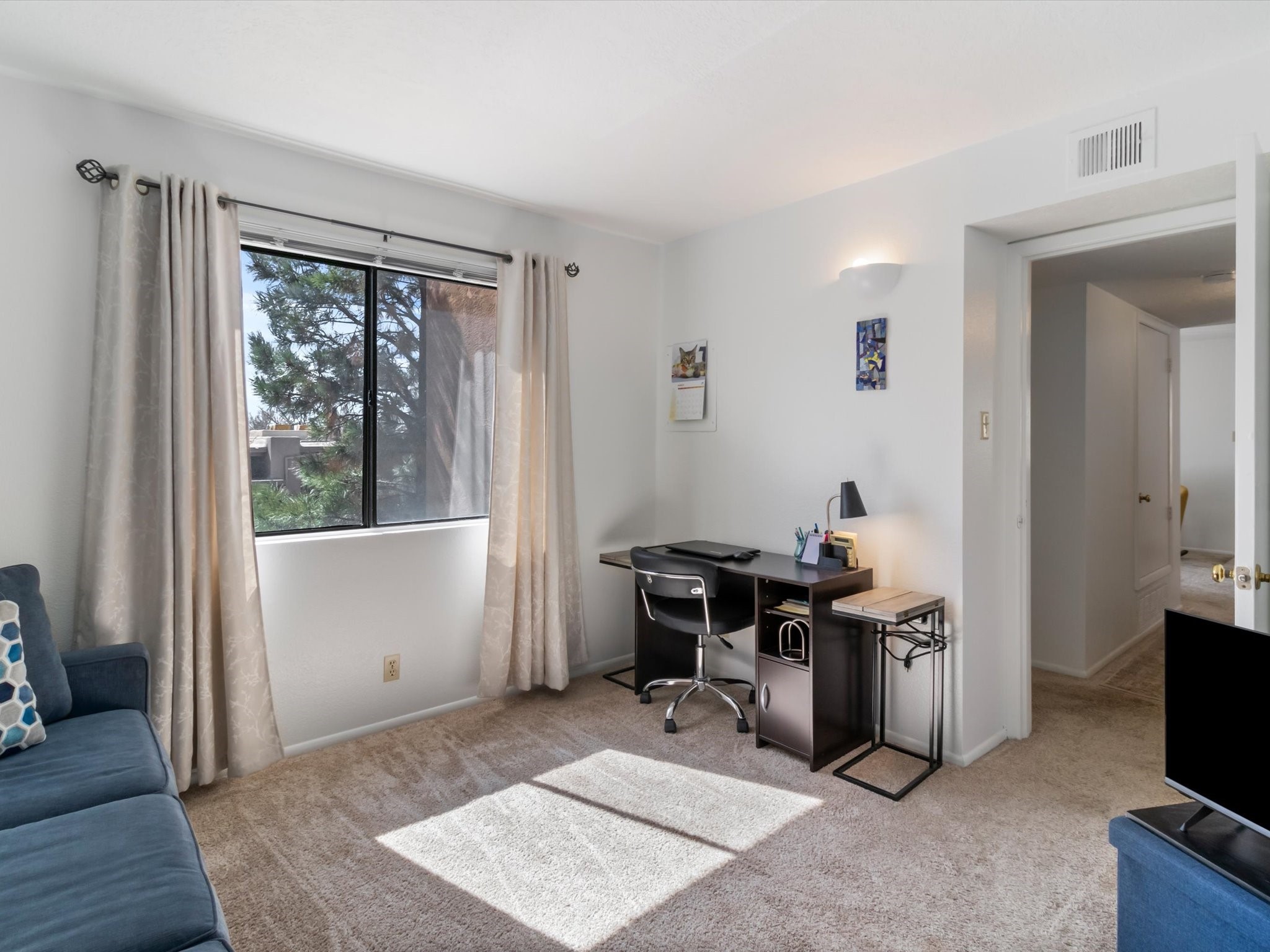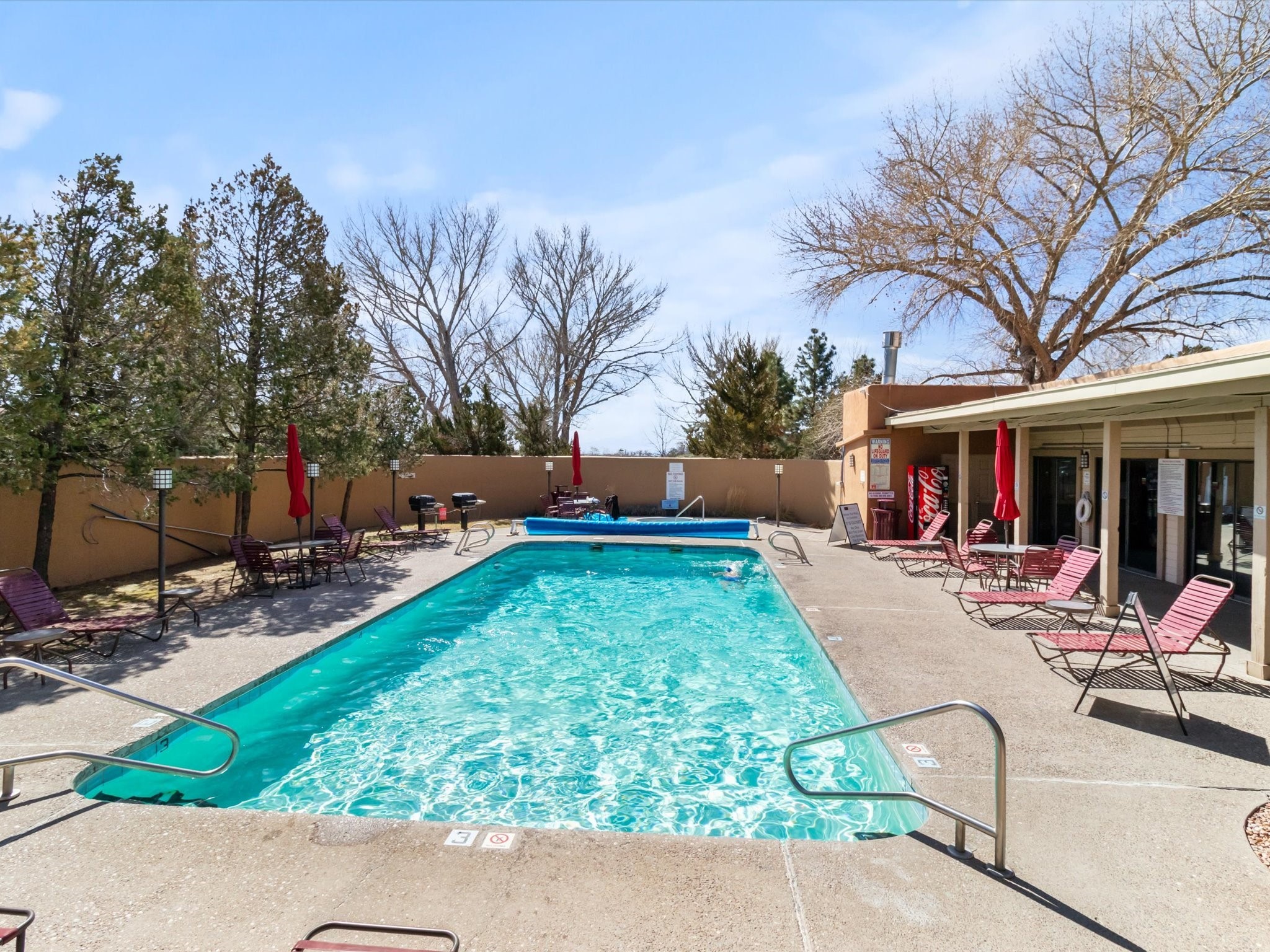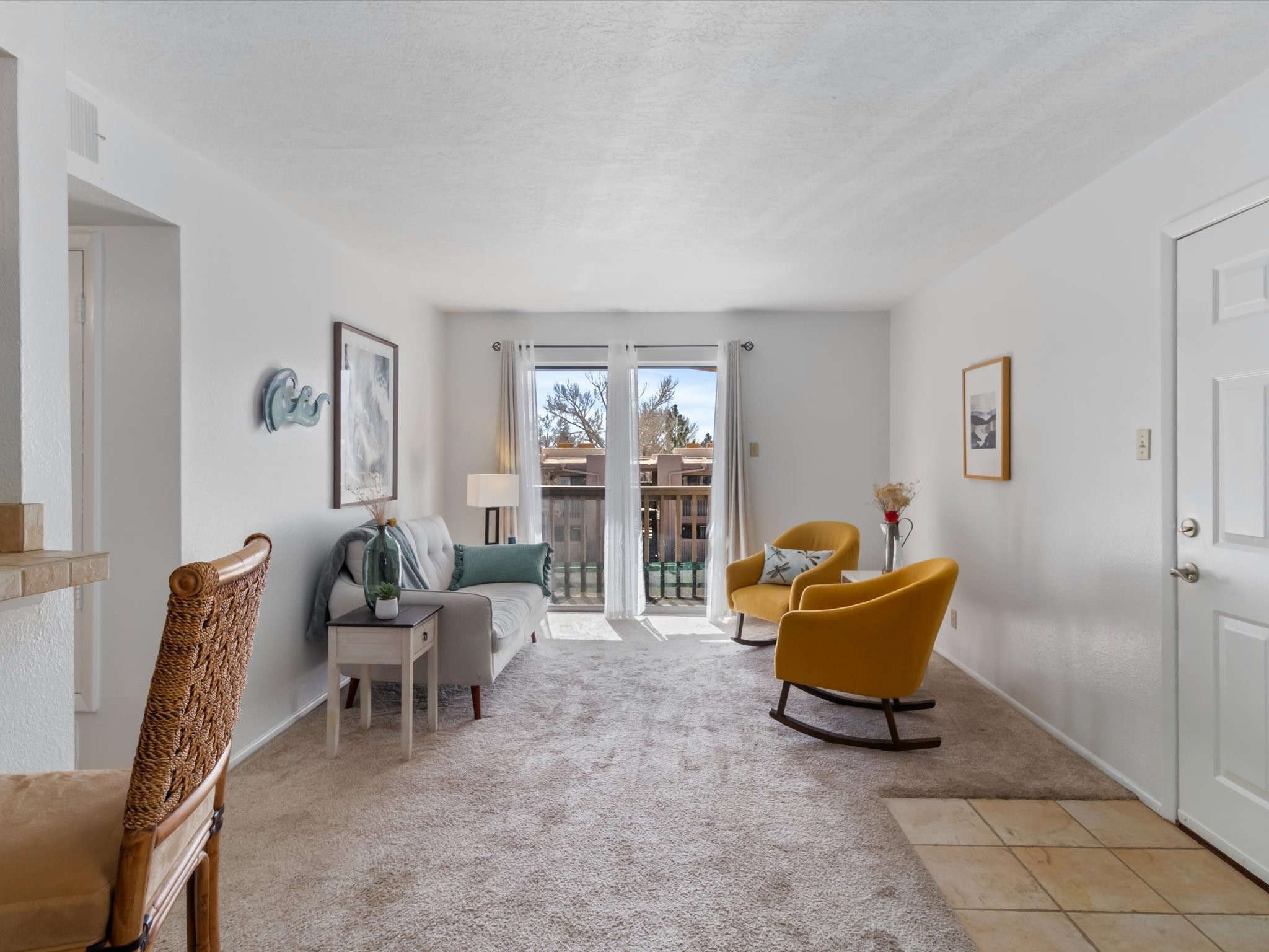 Discover the perfect blend of comfort and convenience in this desirable 2-bedroom, 2-bathroom condo at The Reserve at Santa Fe. Ideally located just minutes from the Historic Plaza, this South-facing unit offers a sunny, bright, private, and quiet second-level living space with Easterly Mountain Views. Step inside to find a thoughtfully designed interior featuring a tiled entryway, kitchen, and baths, complemented by carpeting throughout. The kitchen and bathrooms have tile countertops, maple cabinetry, and stainless-steel appliances. Additional highlights include a private balcony with an extra storage room. Enjoy a low-maintenance lifestyle with HOA-covered roof, stucco, and landscaping, allowing you to fully embrace Santa Fe as your primary or second home. As a resident of The Reserve, you will have access to amenities, including a year-round heated pool, hot tub, first-class fitness center, laundry facilities, and scenic nature trails--all within a beautifully maintained 16-acre gated community. The property also offers ample parking for cars and bicycles and is pet-friendly for small pets up to 25 lbs. Conveniently located just 3 minutes from shopping at DeVargas Mall and 5 minutes from the downtown Santa Fe Plaza, this condo offers an unbeatable location for those seeking a peaceful yet well-connected retreat. Please note that rentals under 30 days are not permitted, and The Reserve is a non-smoking community. Don't miss this incredible opportunity to own a move-in-ready home in one of Santa Fe's most sought-after communities! For more details, visit: www.reserveatsantafe.org*****Freddie Mac backed Mortgages once again available for The Reserve Units!********Community is fully eligible for conventional financing again, please call us for details.