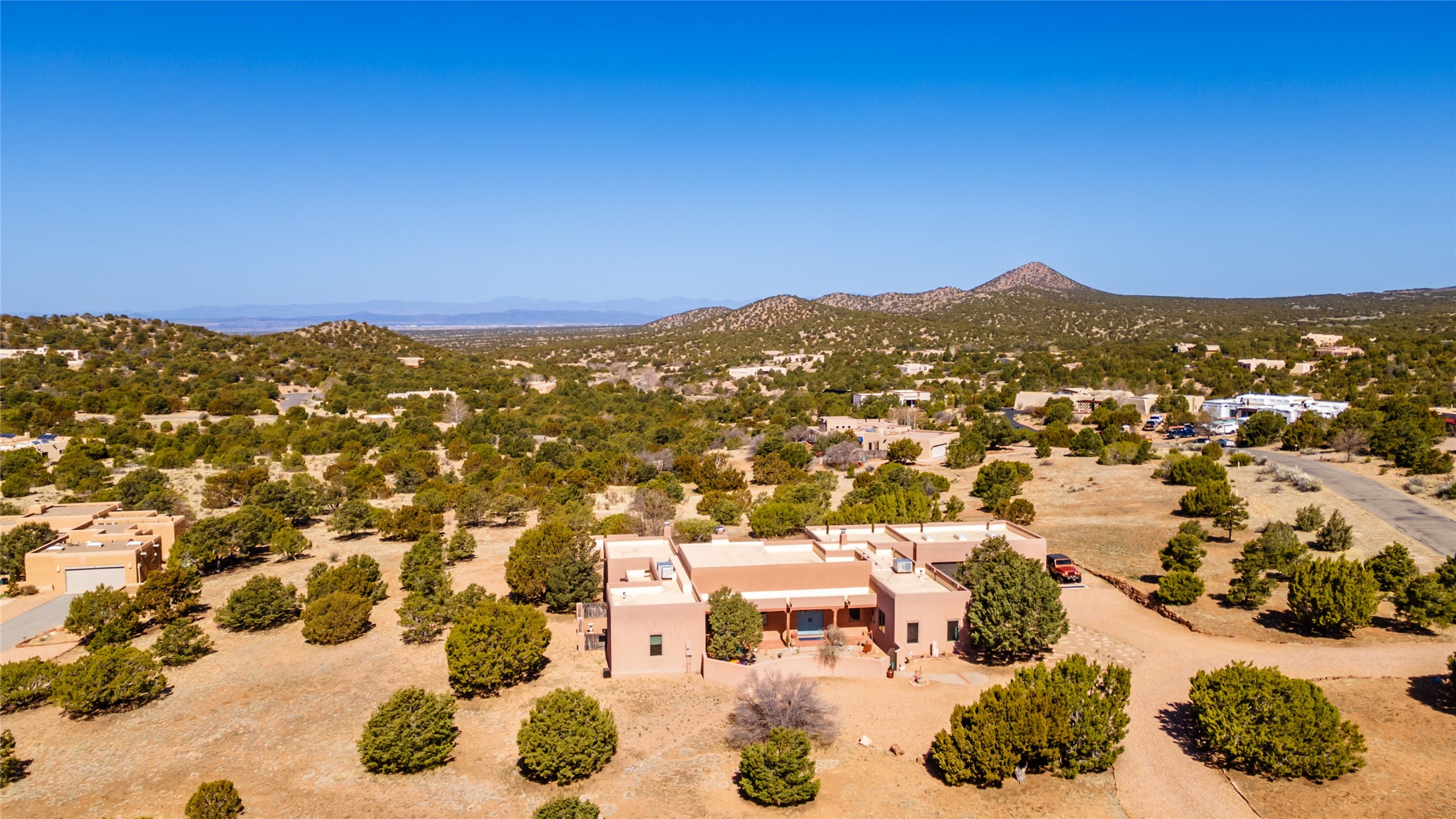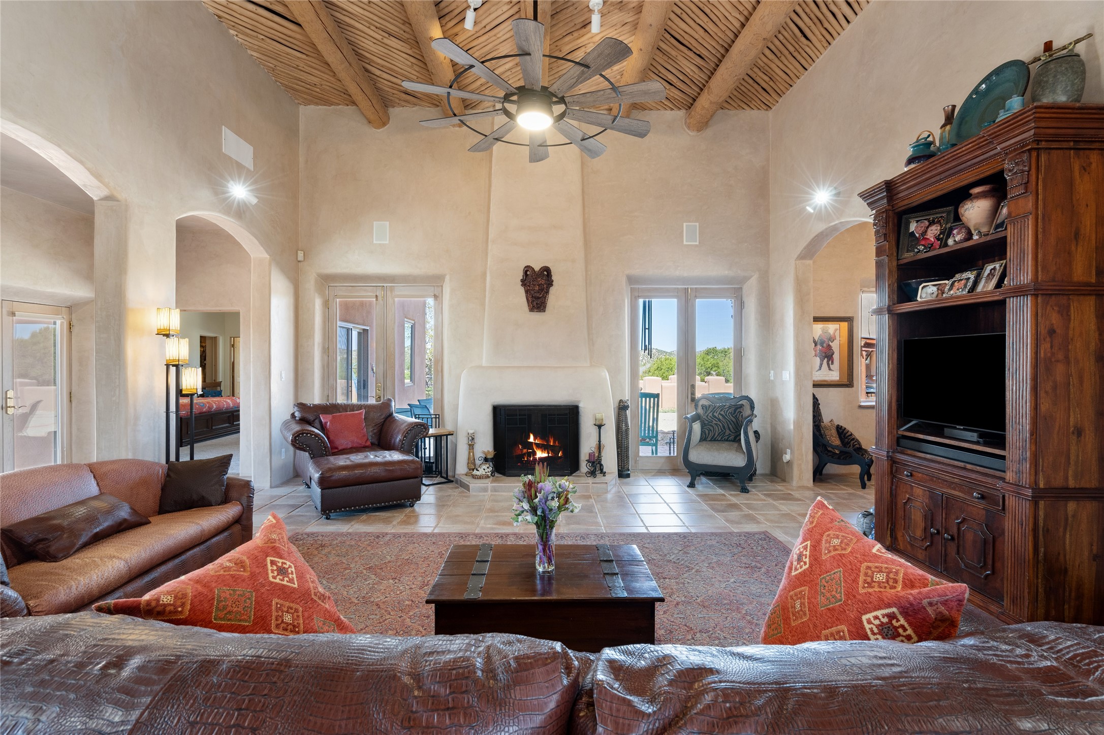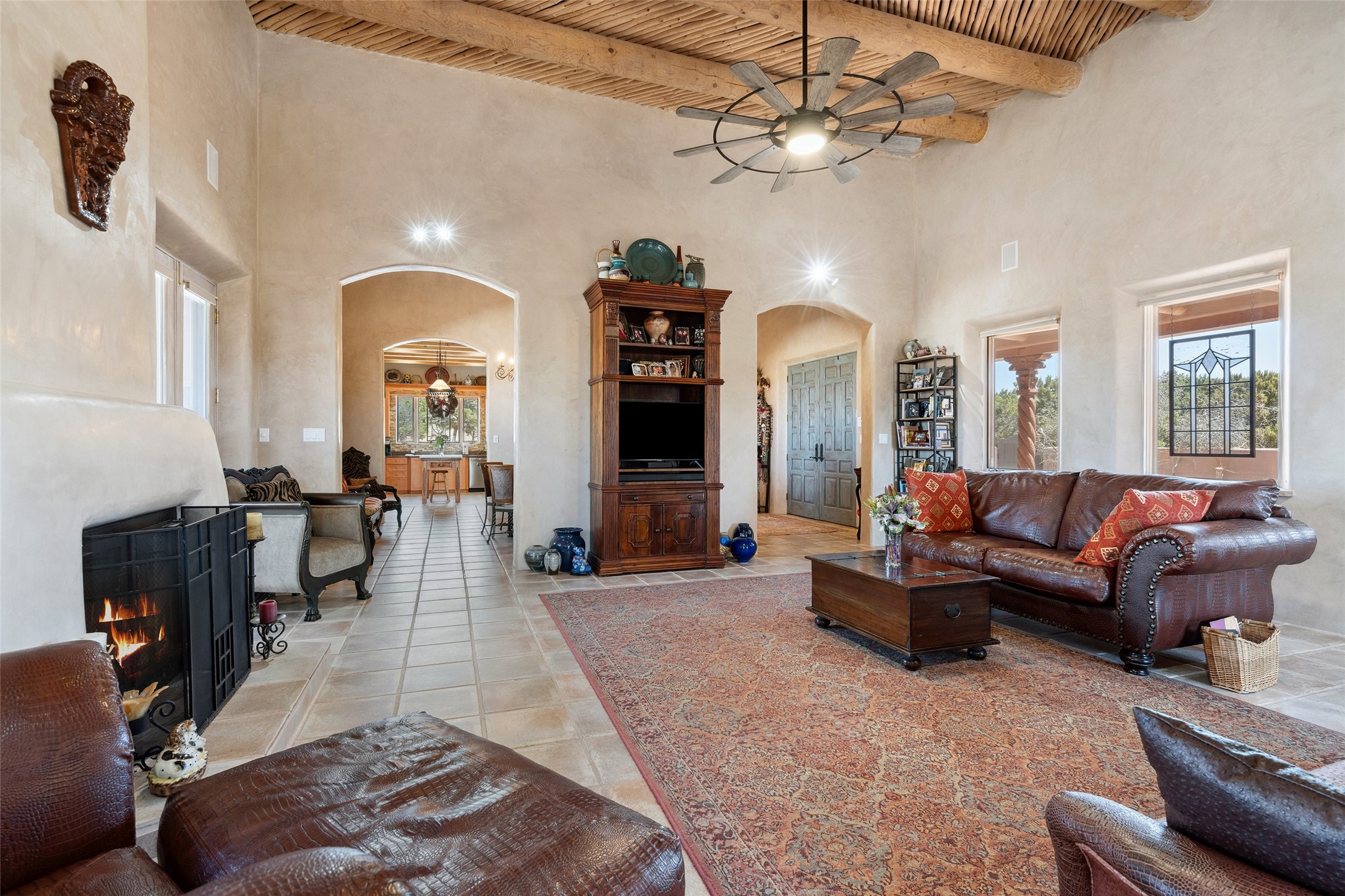 Exquisite Santa Fe Retreat with Sweeping Mountain Views3 Camino Costadino | Dos Griegos | Santa Fe, NMNestled in the highly sought-after Dos Griegos neighborhood, this stunning 3-bedroom, 3-bathroom residence captures the essence of Santa Fe living with breathtaking views of the Jemez Mountains and the foothills of the Sangre de Cristo range.Step into a grand great room where 15-foot ceilings, classic vigas, and smooth diamond plaster walls create a warm and timeless elegance. Expansive windows frame the dramatic natural landscape while flooding the home with ambient light--seamlessly blending the beauty of the outdoors with the comfort of the interior.This thoughtfully designed home also features a dedicated craft room and a spacious office just off the garage, offering flexibility for creatives, remote professionals, or those in need of extra space.Recent upgrades include a brand-new roof and Lifetime Fiberspan canales, ensuring long-term durability and peace of mind. A versatile 13' x 13' shed provides ample room for storage, hobbies, or workshop use.Whether you're savoring a quiet evening under the stars or hosting guests against a backdrop of spectacular mountain views, 3 Camino Costadino offers a rare blend of Southwestern charm, functionality, and enduring quality.