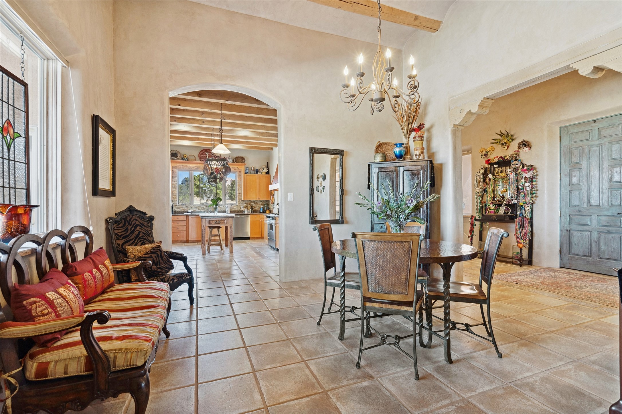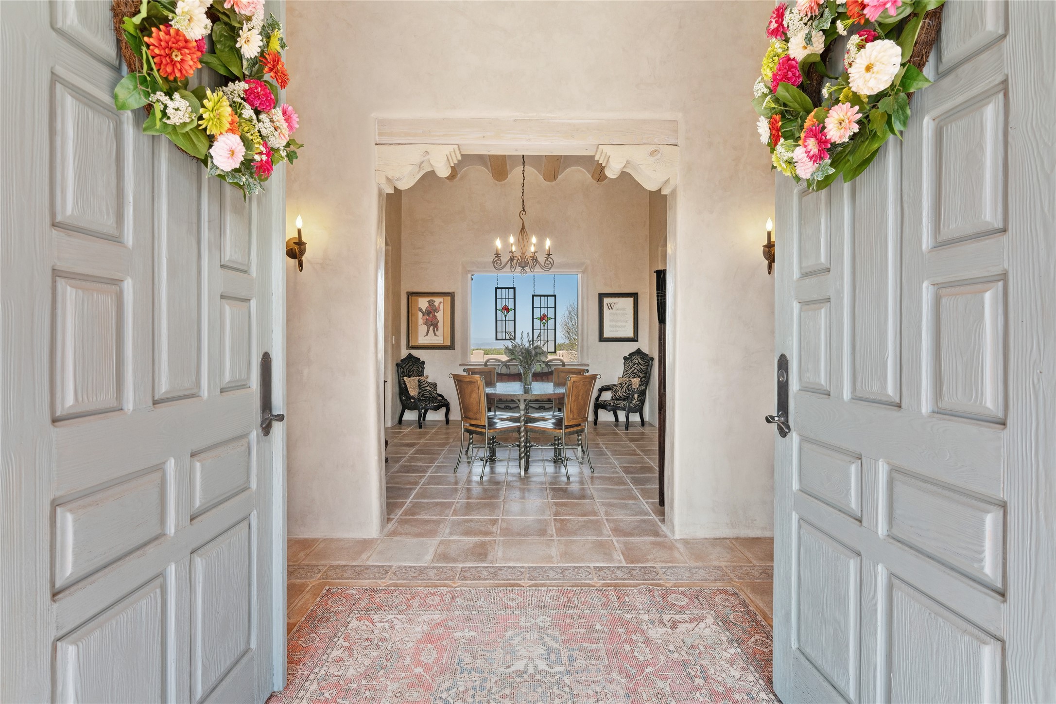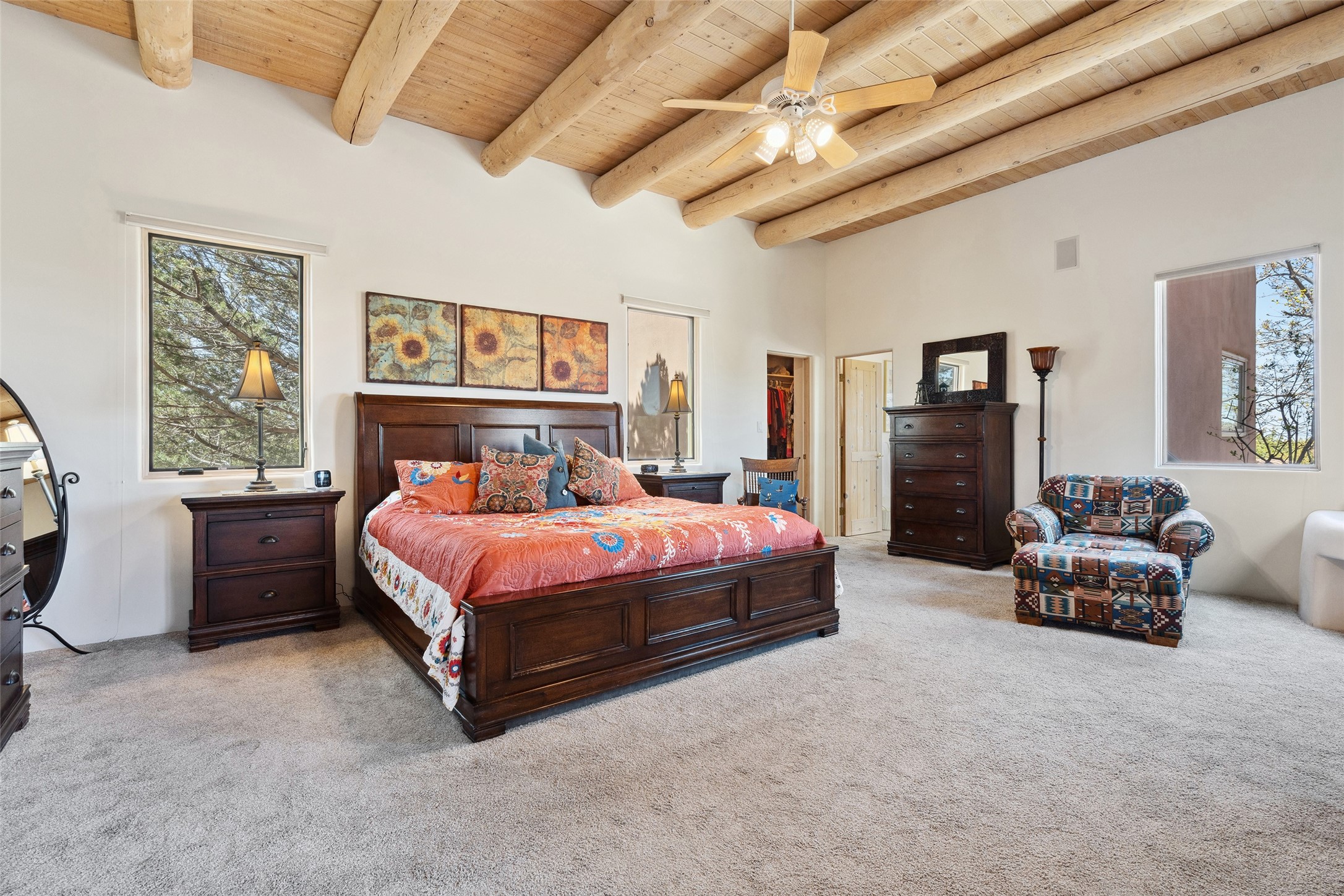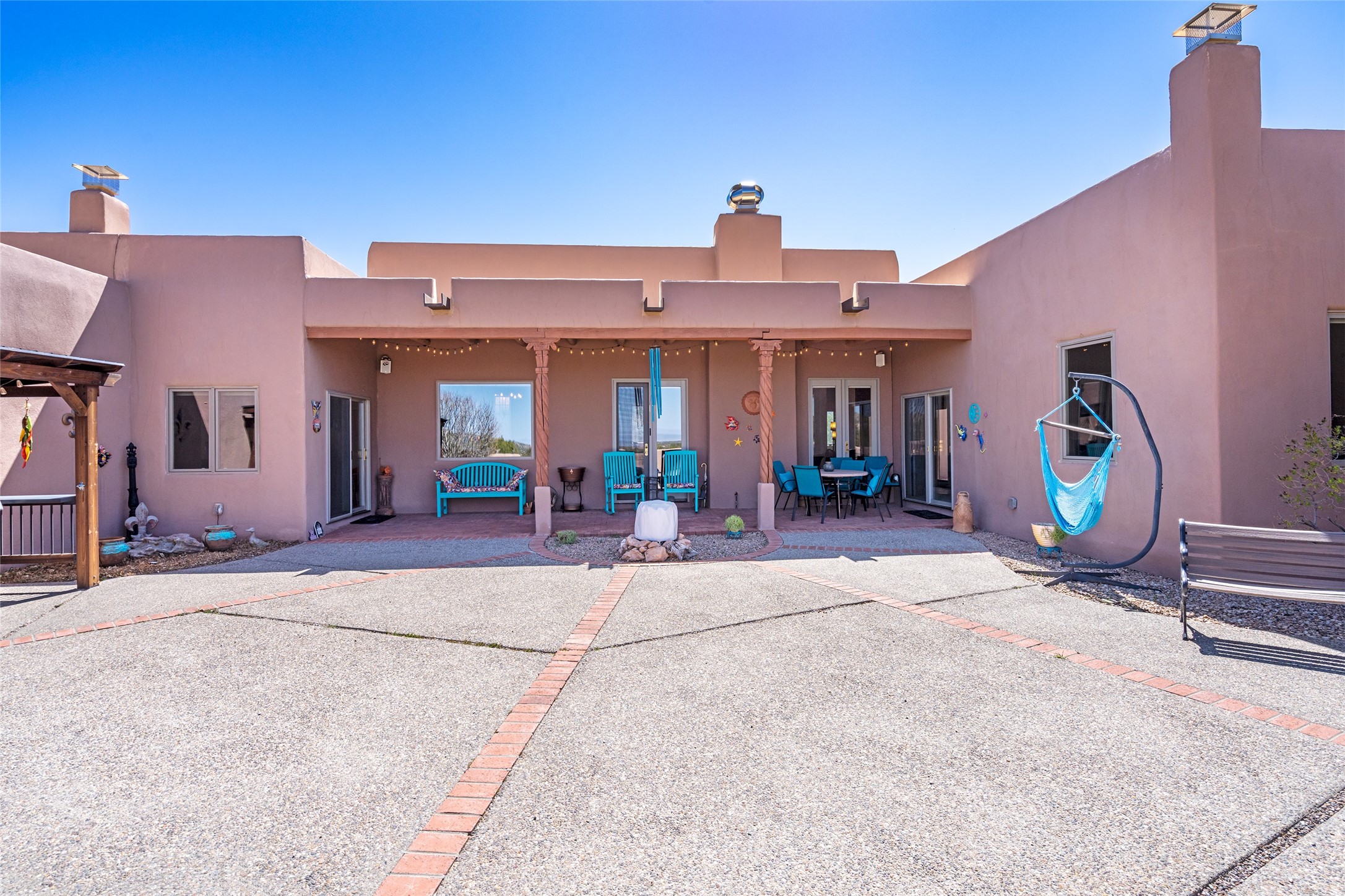 Exquisite Santa Fe Retreat with Sweeping Mountain Views3 Camino Costadino | Dos Griegos | Santa Fe, NMNestled in the highly sought-after Dos Griegos neighborhood, this stunning 3-bedroom, 3-bathroom residence captures the essence of Santa Fe living with breathtaking views of the Jemez Mountains and the foothills of the Sangre de Cristo range.Step into a grand great room where 15-foot ceilings, classic vigas, and smooth diamond plaster walls create a warm and timeless elegance. Expansive windows frame the dramatic natural landscape while flooding the home with ambient light--seamlessly blending the beauty of the outdoors with the comfort of the interior.This thoughtfully designed home also features a dedicated craft room and a spacious office just off the garage, offering flexibility for creatives, remote professionals, or those in need of extra space.Recent upgrades include a brand-new roof and Lifetime Fiberspan canales, ensuring long-term durability and peace of mind. A versatile 13' x 13' shed provides ample room for storage, hobbies, or workshop use.Whether you're savoring a quiet evening under the stars or hosting guests against a backdrop of spectacular mountain views, 3 Camino Costadino offers a rare blend of Southwestern charm, functionality, and enduring quality.