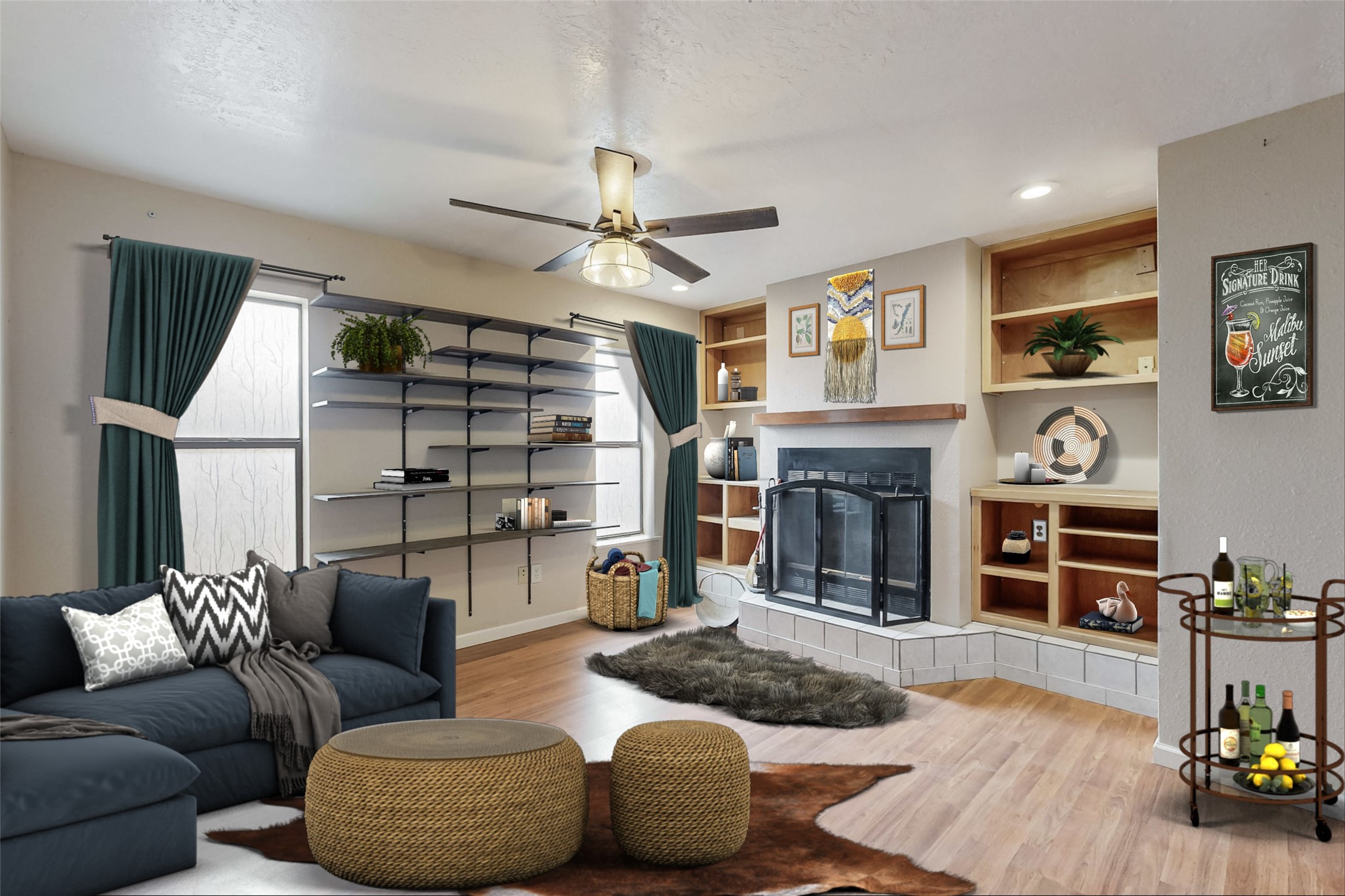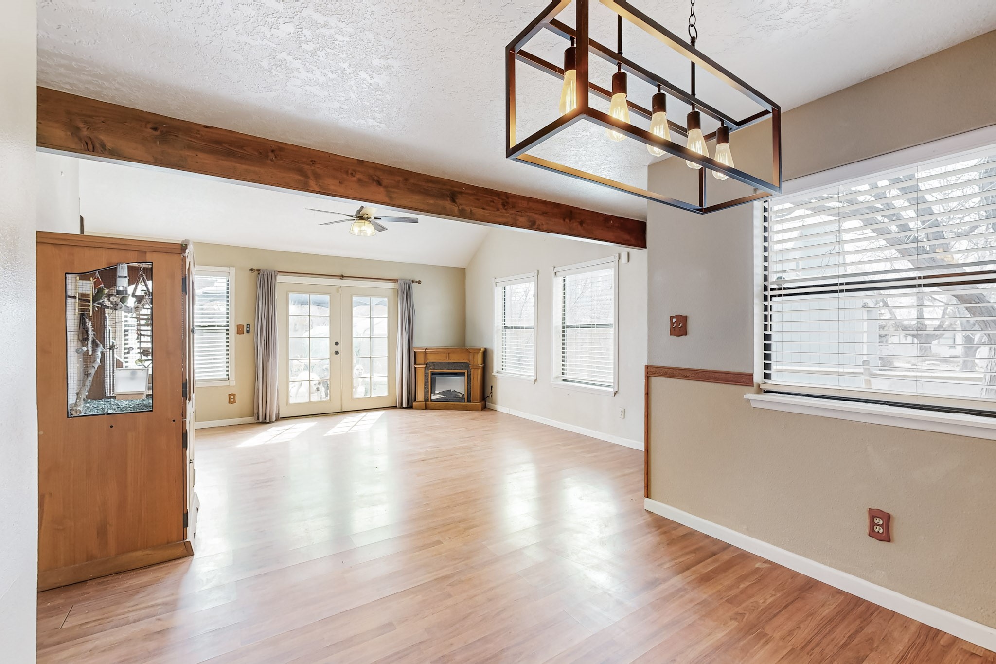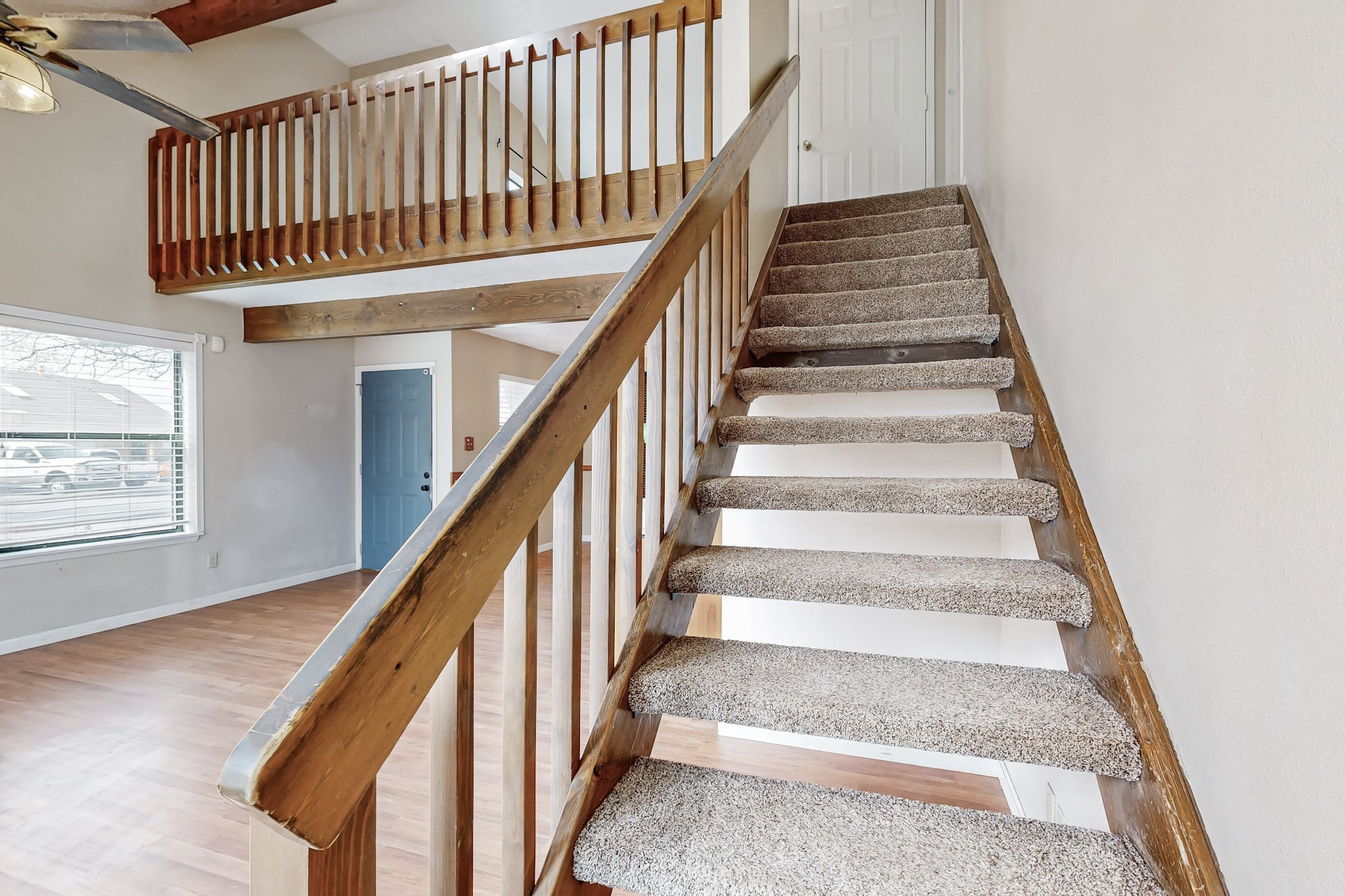 Sellers are feeling motivated! This Chapman home has so much to offer with its spacious, versatile floorplan. Four bedrooms, 3 bathrooms, a main living room, separate den space with wood burning fireplace and expansive loft (with a closet) that can double as a 5th bedroom, office or hobby room. The possibilities are endless with a separate entry to the 4th bedroom with attached 3/4 bath. This addition is the perfect opportunity for a mother-in-law suite or a future income possibility. The home sits on a corner lot in a cul-de-sac and offers a larger yard than most, including a fenced area and doggie door for pets to help keep your main yard tidy and ready for summer fun and barbecues. This home offers plenty of parking with an attached 2 car garage that includes shelving and pegboards to get organized, as well as a side parking space leading into the backyard with an anchored carport and an 8'x8' shed. The landscape is mature and offers two peach trees and one apple tree in the backyard as well as lilac bushes and well-established bulbs and vinca ground cover in the front. Entertaining is easy with French doors opening to the gazebo-covered deck and large backyard, and lots of sun-filled days with maximum sun exposure for your container garden or morning coffee on the patio. Welcome home!