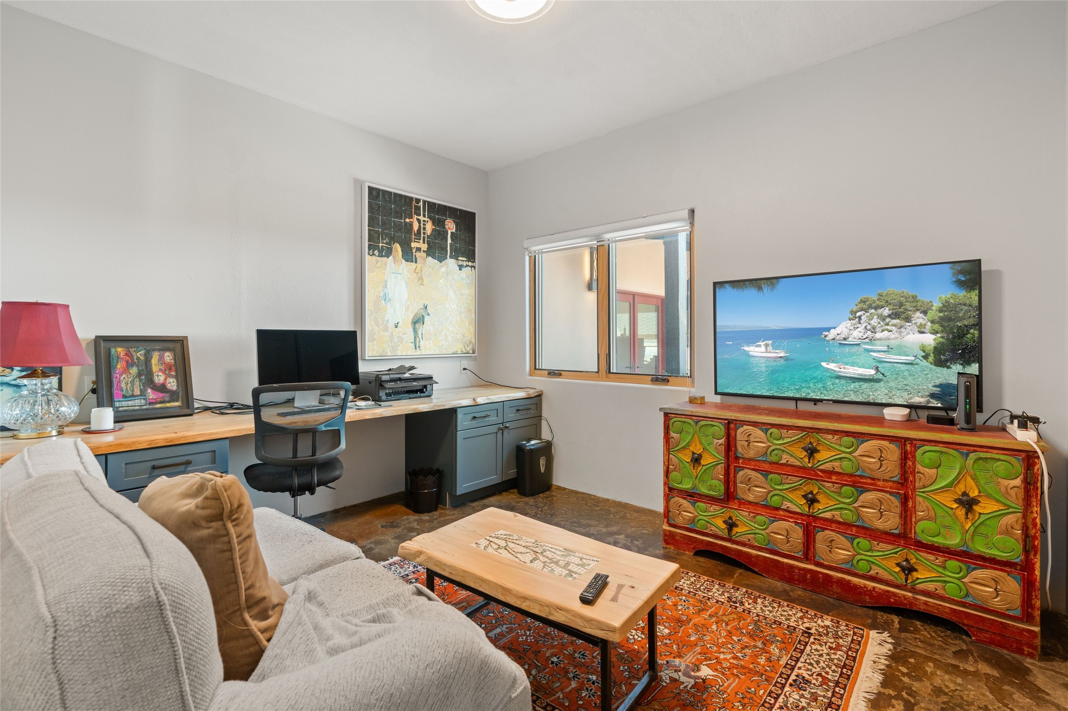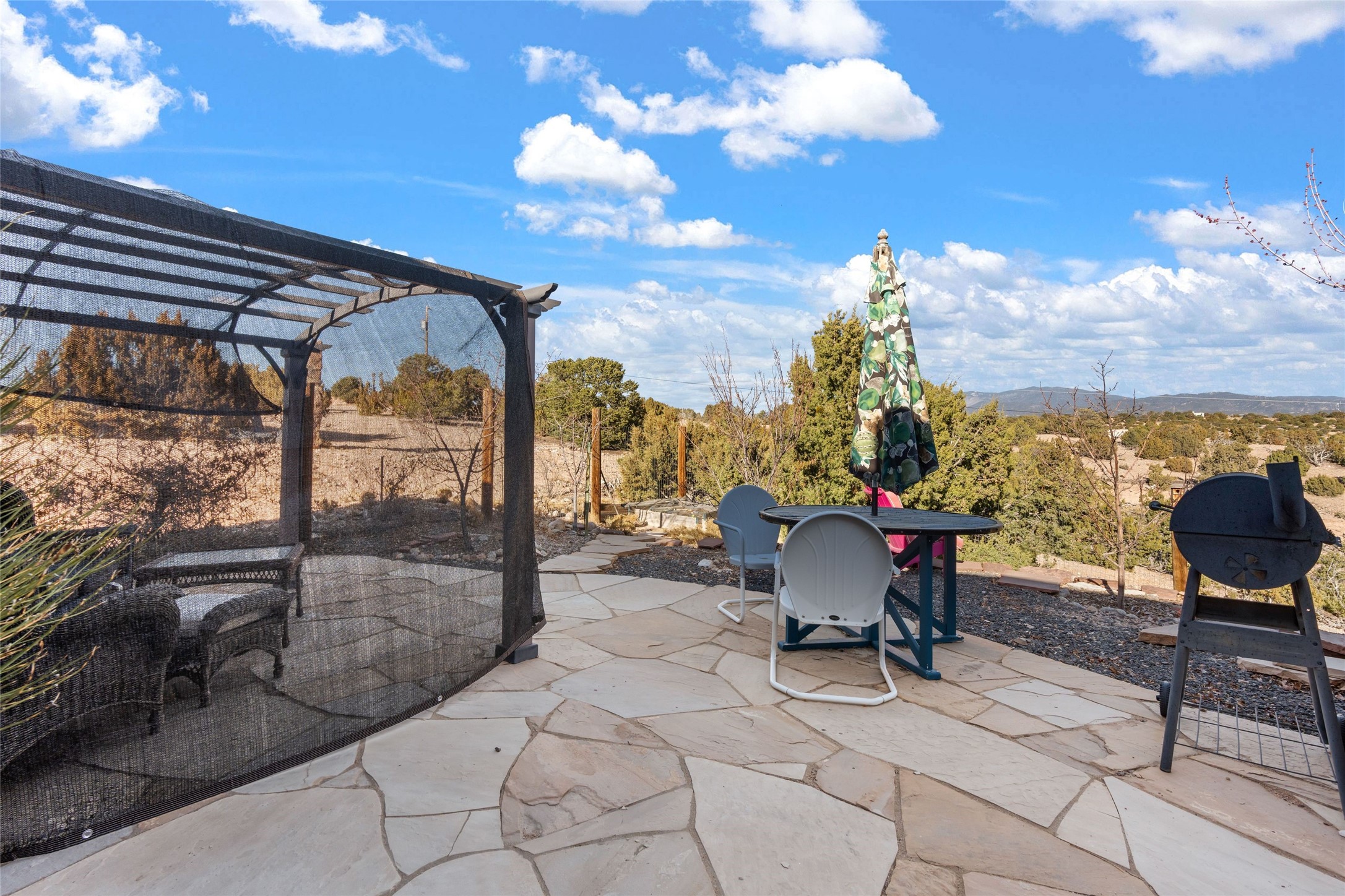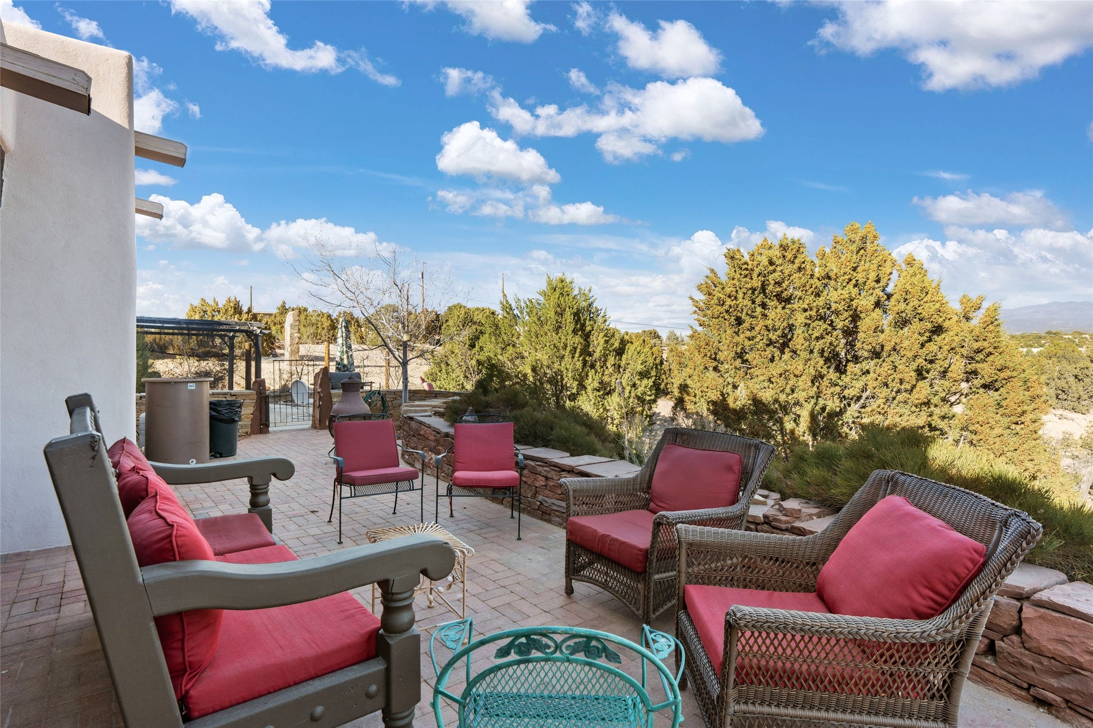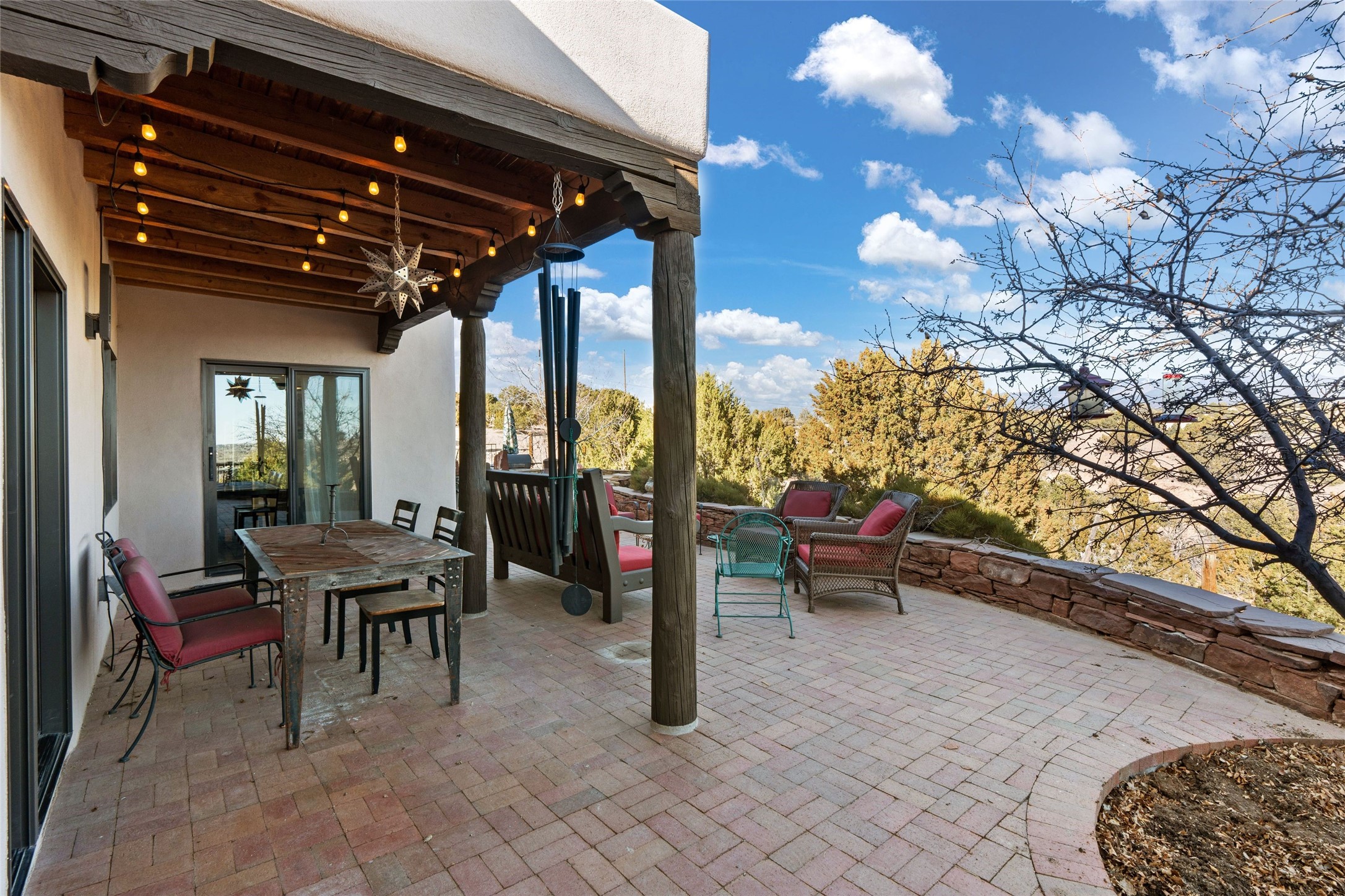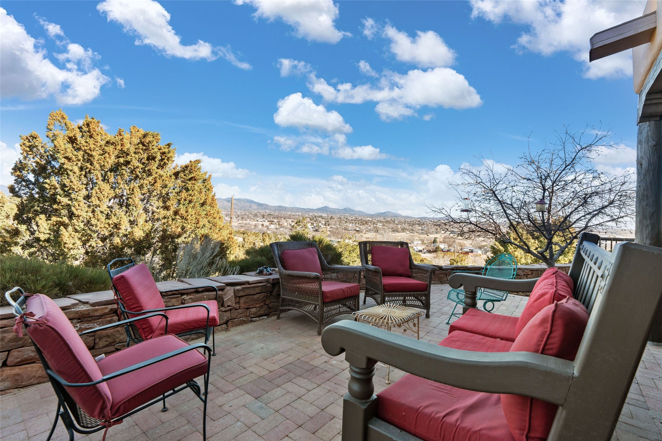 An Artist's Dream Oasis awaits the new owners of this fabulous property! You will have stunning sunrises and sunsets from this well located home on the west ridge overlooking Santa Fe. Just 3.5 miles from the Plaza, the 360 views will enthrall everyone. The 3 bedroom 3 bath main home has two suites, one of which has been successfully used as a vacation rental...it can be a mother-in law suite as well with it's own entrance and outdoor sitting area. The house has had most every detail updated with high end finishes. New windows and doors, new mini-split, new lighting. The kitchen and primary bathroom were remodeled in 2019 with upscale cabinets, appliances and countertops. The 2009 sq. ft. studio/guest house is a professional artist's dream, completed in 2019 with soaring ceilings, fabulous work spaces and an art storage loft. The possibilities are endless as there is kitchen area and 3/4 bath, with rooms that could be bedrooms or living space. It's a must see - must buy home for your Santa Fe life style! See attached documents for a list of upgrades and amenities.