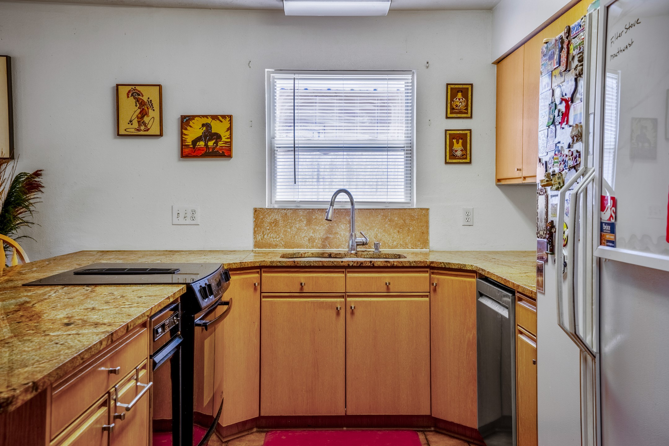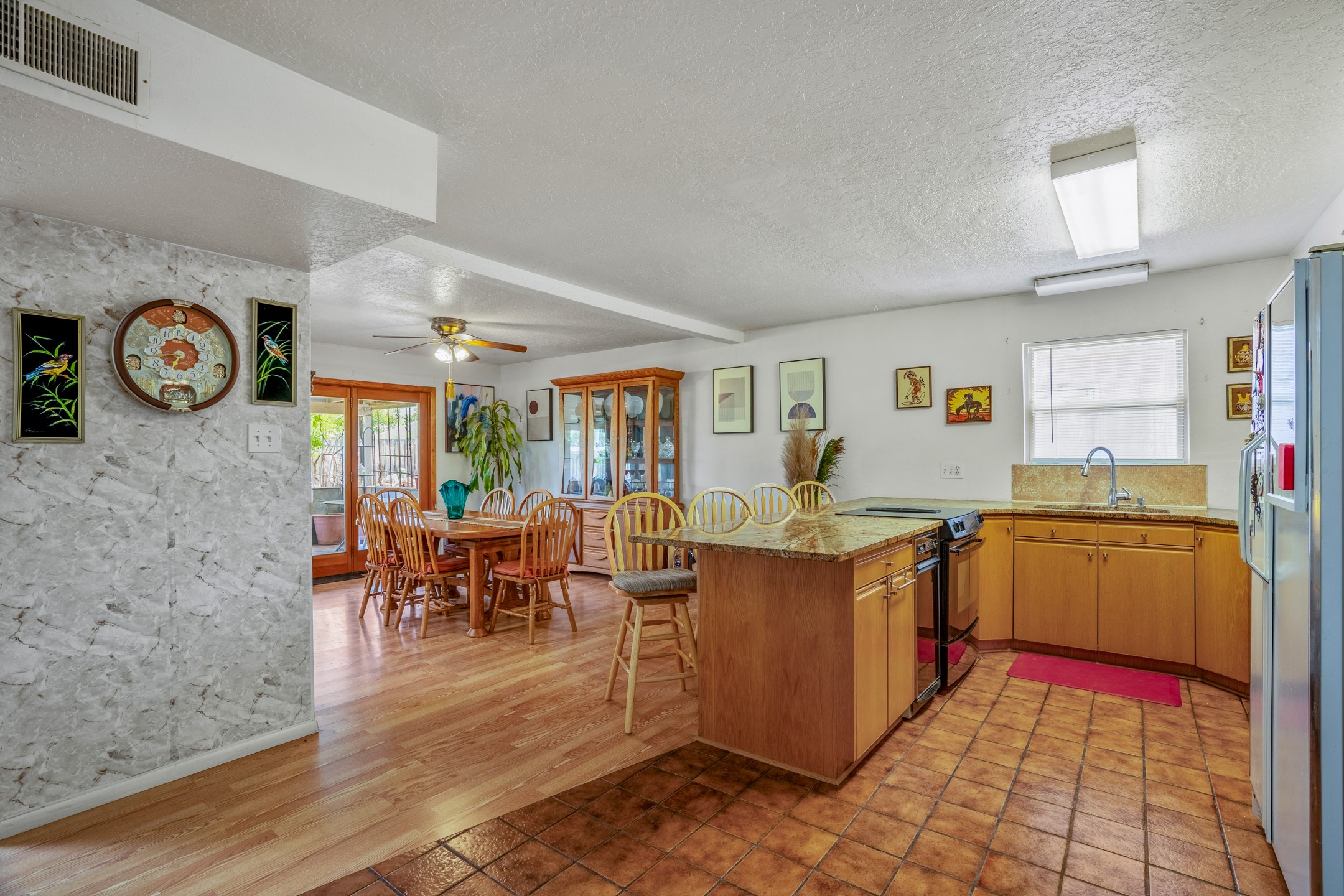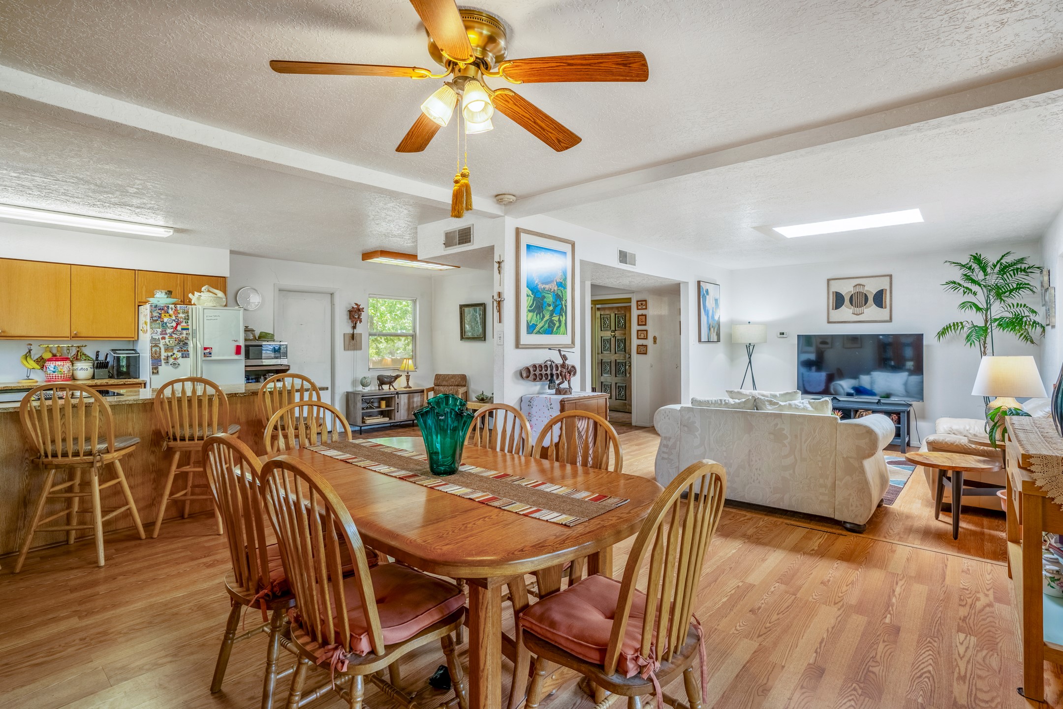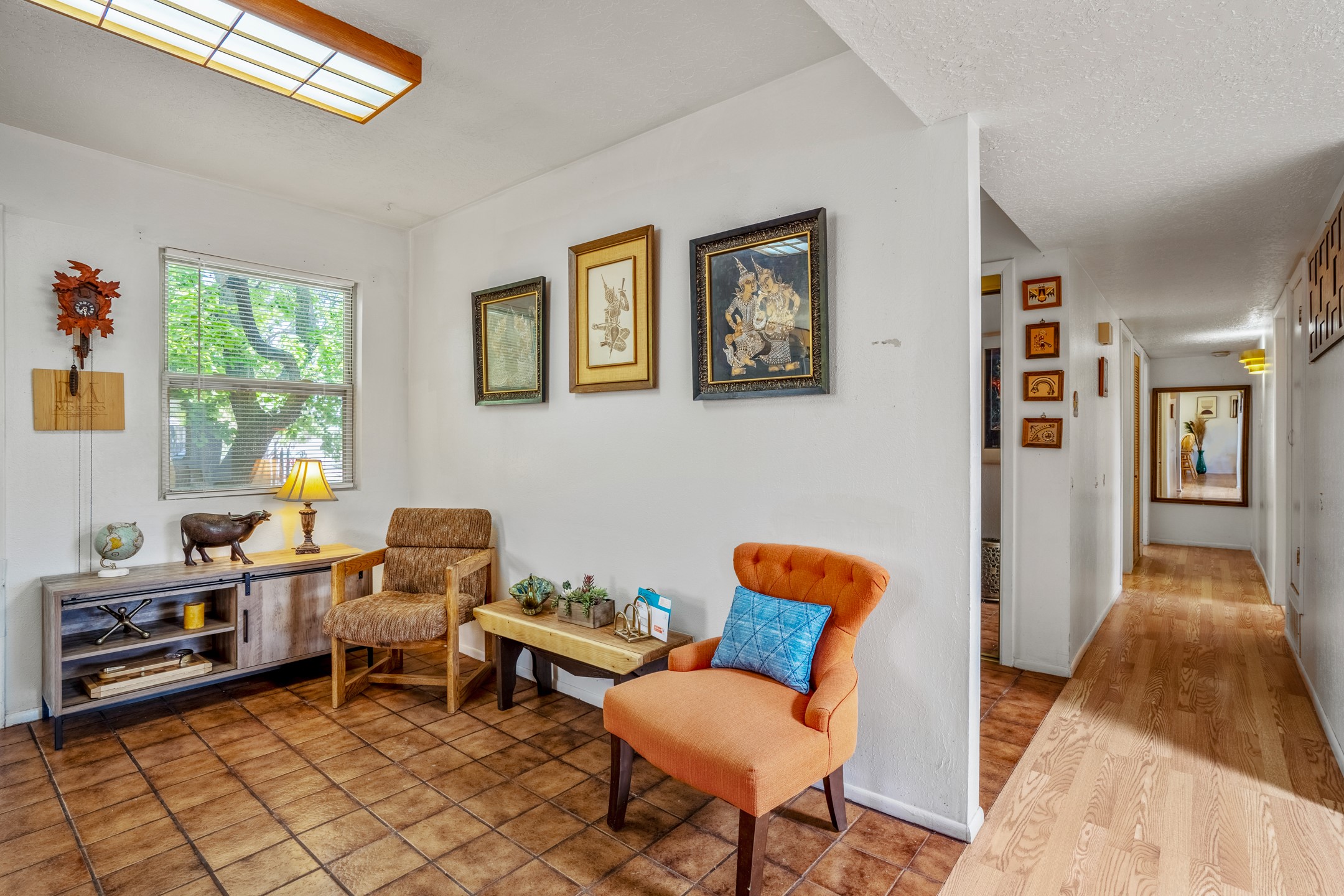 This charming Santa Fe Home is a delightful single-family residence nestled in the heart of Santa Fe. This inviting home offers a perfect blend of comfort and Southwestern charm, making it an ideal choice for those seeking a serene retreat.Spacious Living: This 1887 sq ft home boasts 3 bedrooms and 3 bathrooms, providing ample space for relaxation and entertainment. Part of the home was previously used for a home occupancy business and is till set up that way.Modern Amenities: Equipped with essential appliances, including a dishwasher, dryer, freezer, garbage disposal, range/oven, refrigerator, trash compactor, and washer, ensuring convenience and ease in daily living.Elegant Interiors: Featuring hardwood flooring throughout, the home exudes warmth and sophistication.Outdoor Delight: Set on an 8,929 sq ft lot, the property offers a generous outdoor space, perfect for gardening or outdoor gatherings.Enjoy breathtaking mountain vistas right from your home, providing a picturesque backdrop to your daily life.Convenient Parking: The property includes a carport with space for two vehicles, ensuring your parking needs are well accommodated. Its prime location offers easy access to local amenities, making it a perfect place to call home. Don't miss the opportunity to own this charming Santa Fe residence. Contact us today to schedule a viewing!