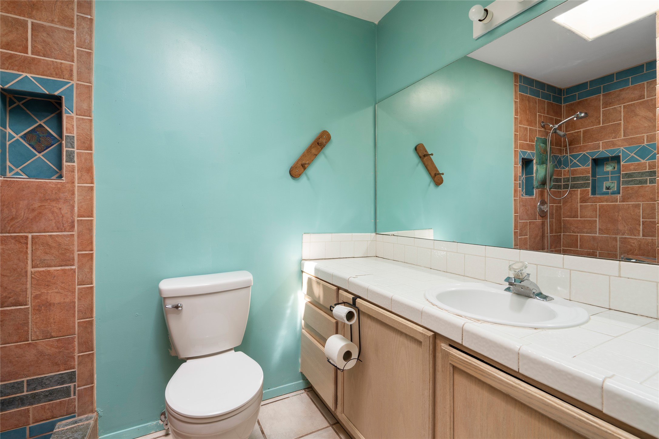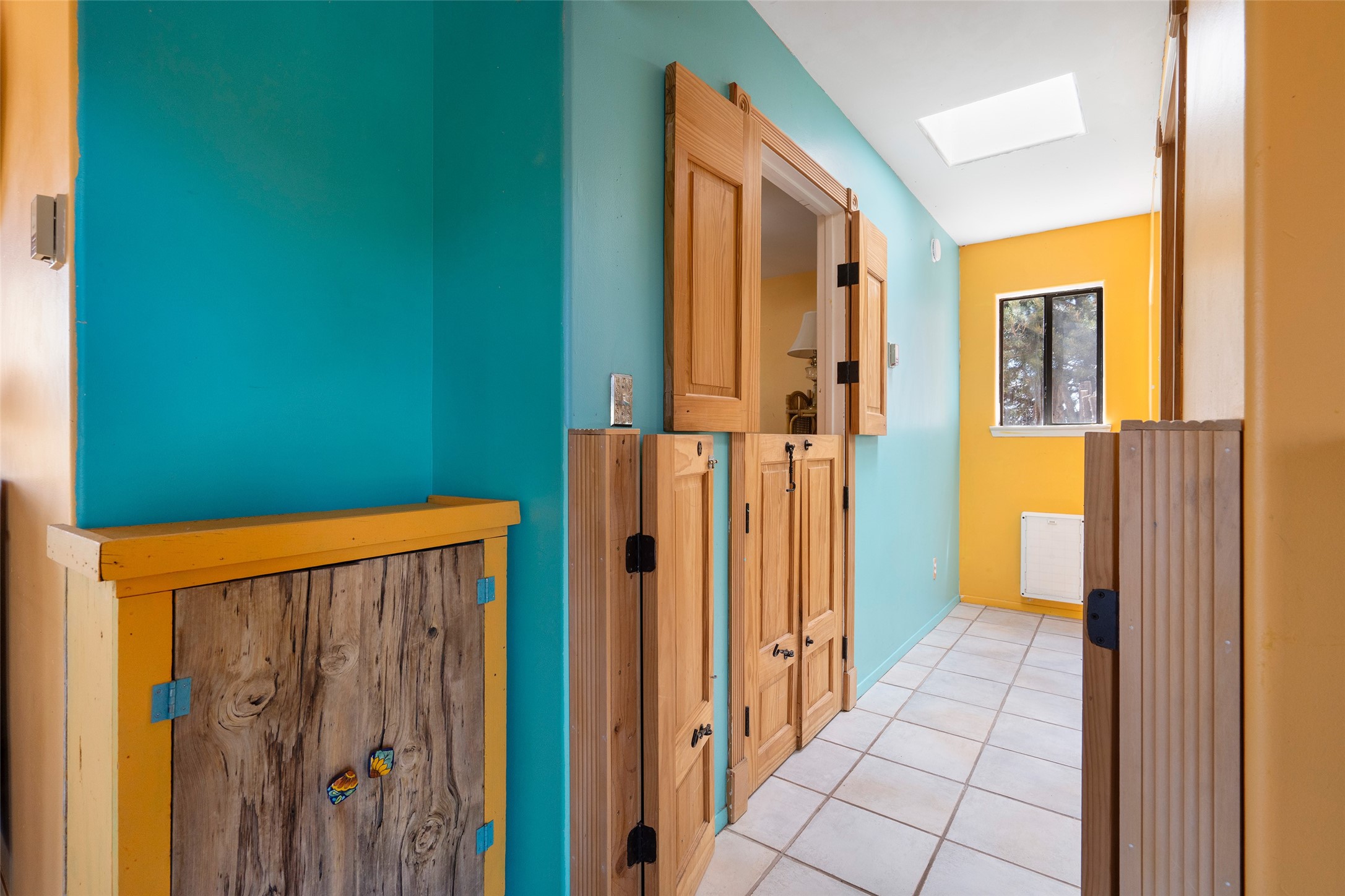 Excellent renovation opportunity in the desirable Eldorado community. Set on a 1.28-acre lot, this home is a hidden gem brimming with potential, ready to be transformed into a stylish Southwestern retreat. Enter the fenced-in yard with a large portal entering into an open concept kitchen, living and dining area, fantastic for entertaining and for those that love indoor-outdoor living.The split floor plan offers privacy for residents and guests, with the primary bedroom separate from the guest room and flex space. Each bedroom has french doors that open into the back yard. There is a garage turned flex space off of the laundry room that could be used as an artist studio or workshop, and the generous yard is a gardener's dream. Those seeking an active lifestyle will love the many amenities Eldorado has to offer: clubhouse, swimming pool, gym, tennis, horse stables and dog parks. Eldorado open space and the Galisteo Basin Preserve are nearby with trails and wildlife to be enjoyed. This property is a canvas for the imagination. Come see it today.