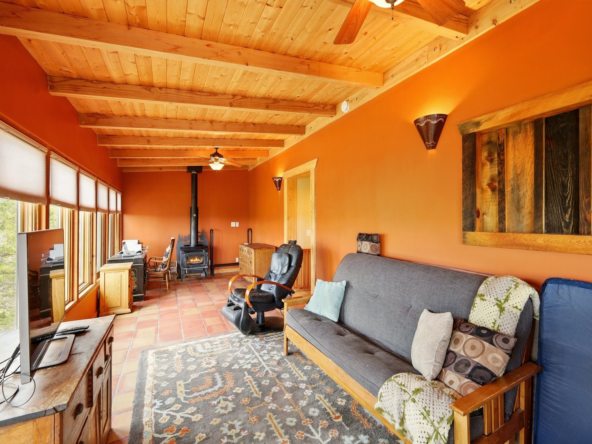 Escape to a 2-bed, 2-bath, 25-acre horse-ready retreat with forest access, rustic charm, and serene mountain views.Tucked away in the high mountains just minutes from Santa Fe, this private 25-acre retreat offers the perfect blend of rustic charm and Southwestern style. With direct access to national forest land, it's a rare opportunity for outdoor enthusiasts and horse lovers alike.The home features Saltillo tile floors, warm wood accents, and a cozy cabin feel, blending seamlessly with its natural surroundings. Equestrian-ready, the property includes a 4-stall stable with water and electric, plus a round pen--all set within expansive, usable land.Enjoy true serenity with no HOA, big skies, and endless trails, all within easy reach of town.