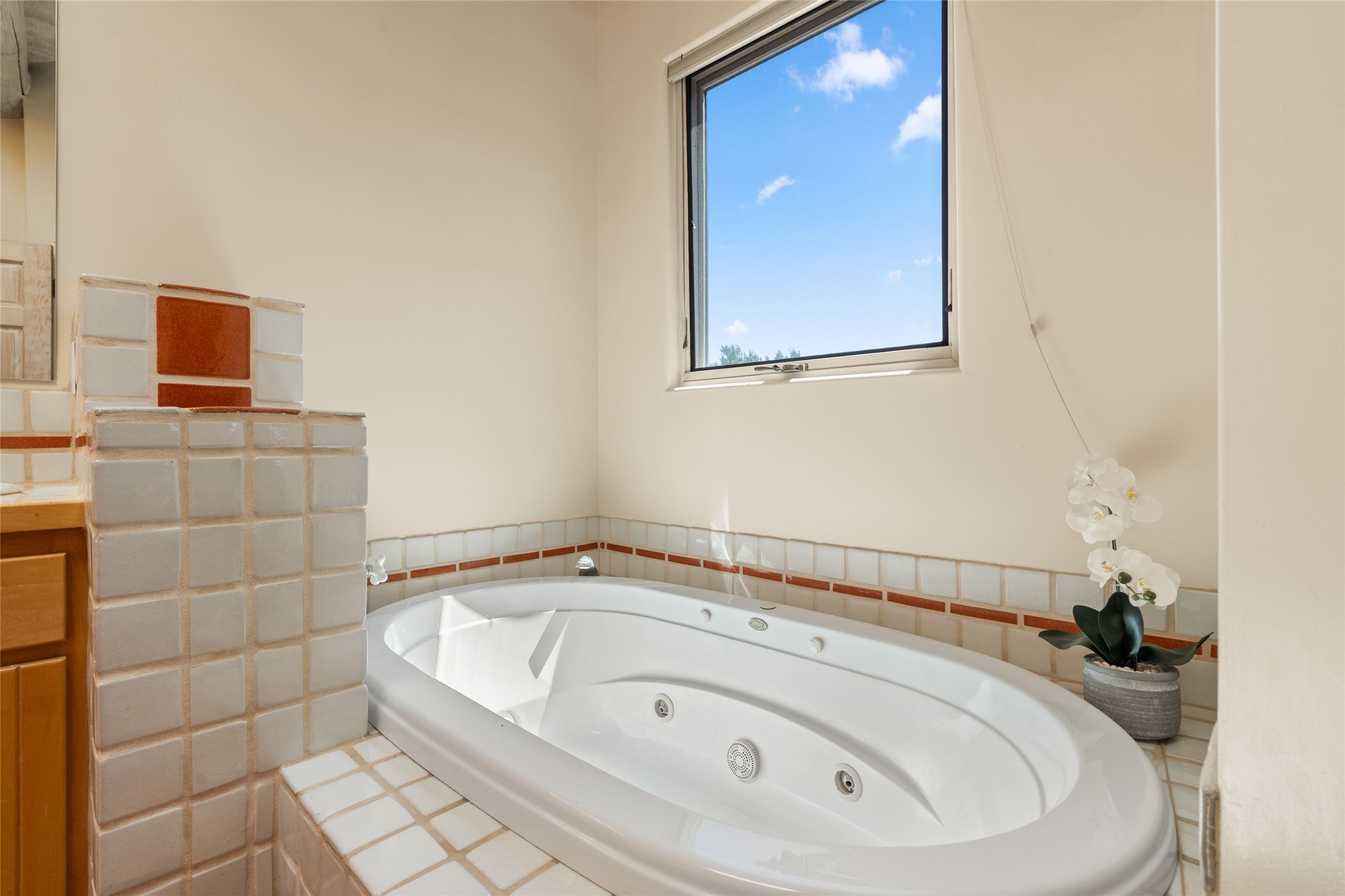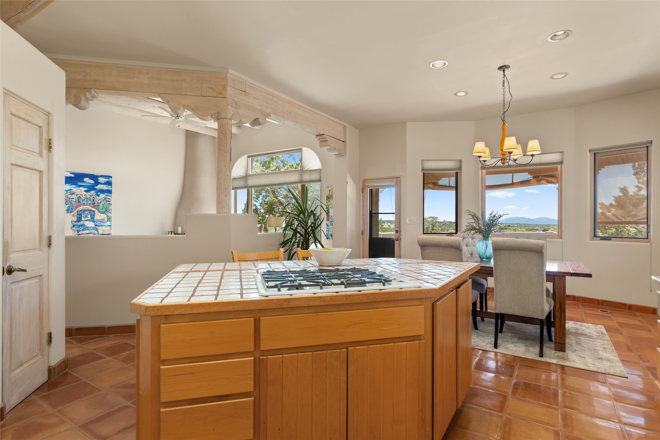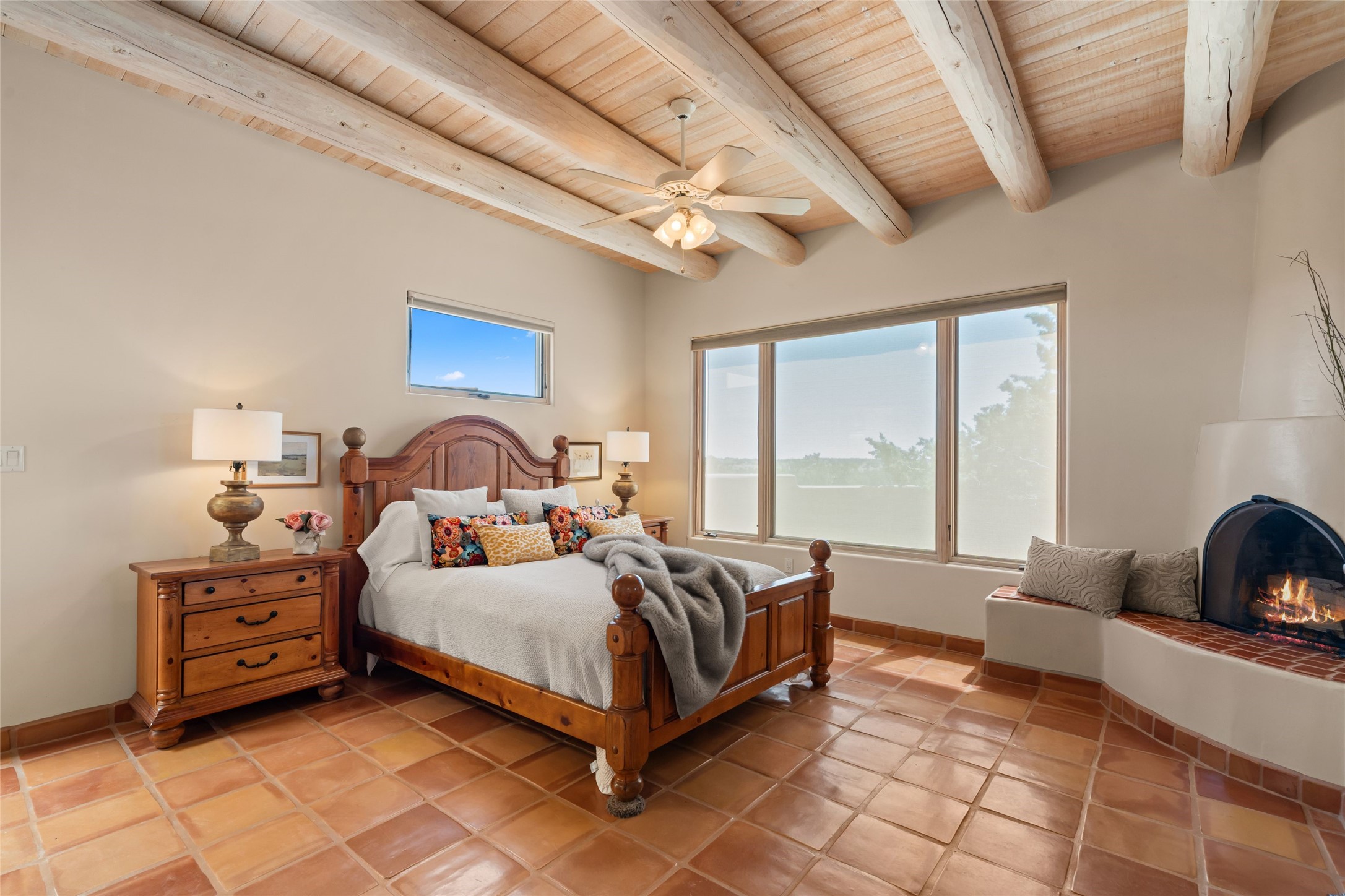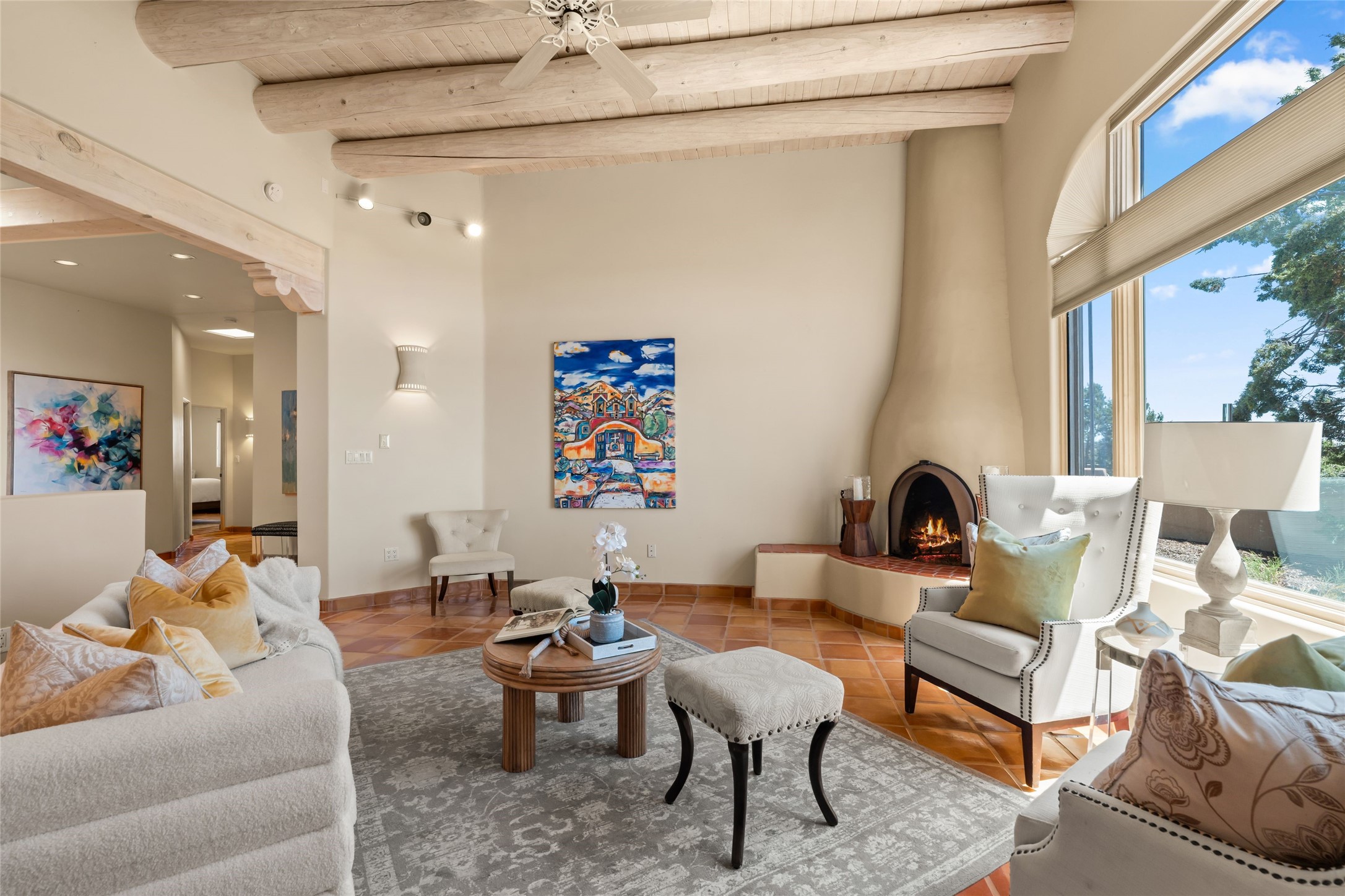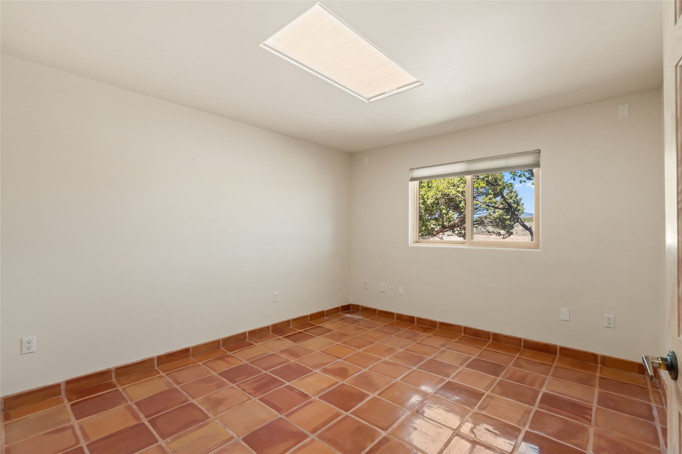 Come enjoy peace and solitude with the VIEWS, VIEWS, and more VIEWS of the Ortiz & Sandia Mountains. A single level home and separate studio on five acres, 3 bedroom, 3 bath, with custom whitewashed wood doors, Saltillo tile radiant heated floors, and an island in the kitchen is MOVE-IN ready. The additional studio (artist/musician or you choose!) also with Saltillo tile floors has its own half bath and heated garage/workshop. High ceilings, and open concept with wonderful light to enjoy, two car garage on the main house, one car garage or workshop off the studio and 2300 +/- square foot in total. Six minutes to the La Tienda for easy grocery shopping, coffee with a friend, Santa Fe Brewing, or mailing off your packages. Downtown Santa Fe is about 15 +/- minutes for your in-town socializing. Septic, HOA and Title are completed - Easy to view.Septic, HOA and Title are completed - Easy to view.