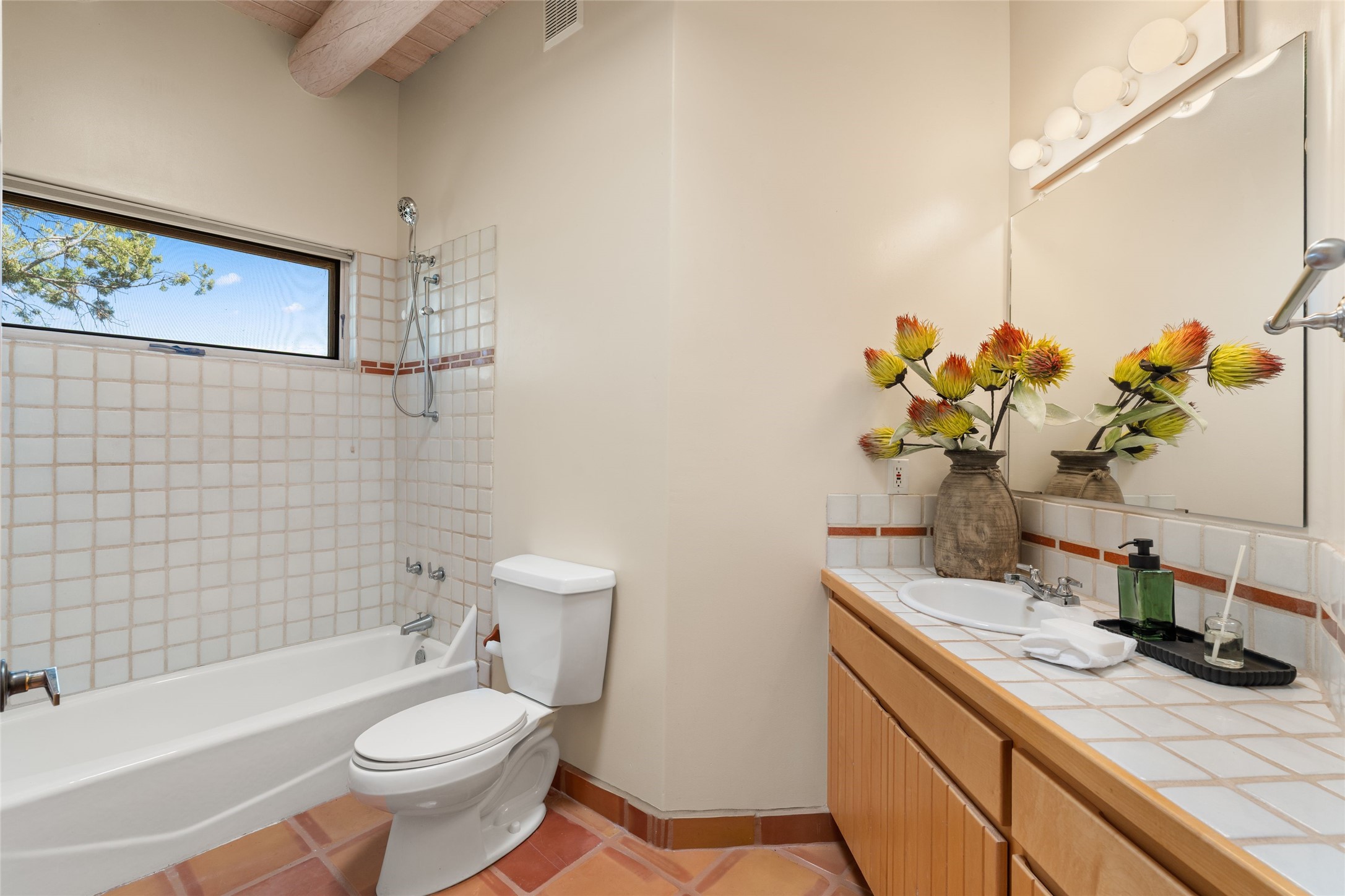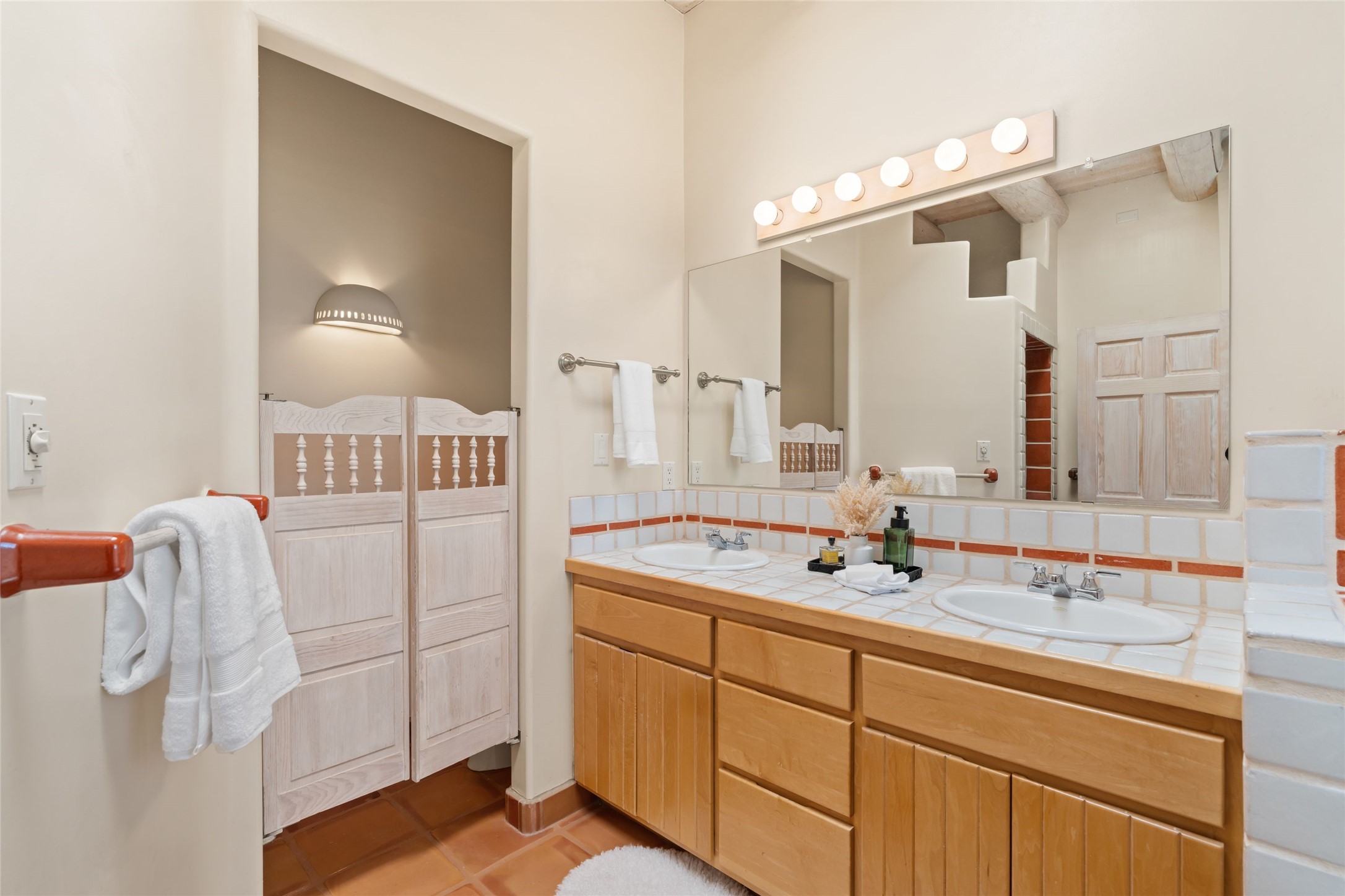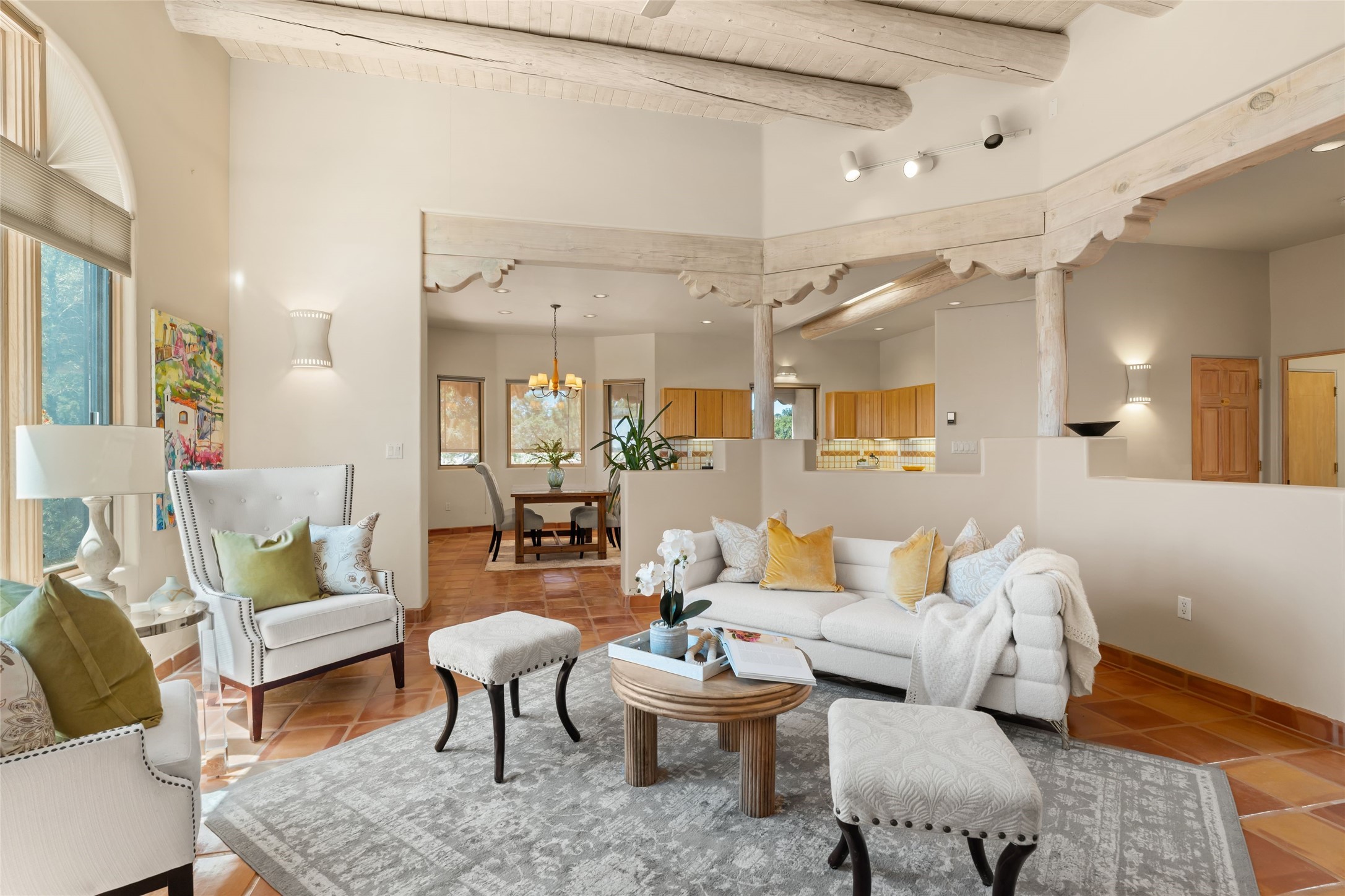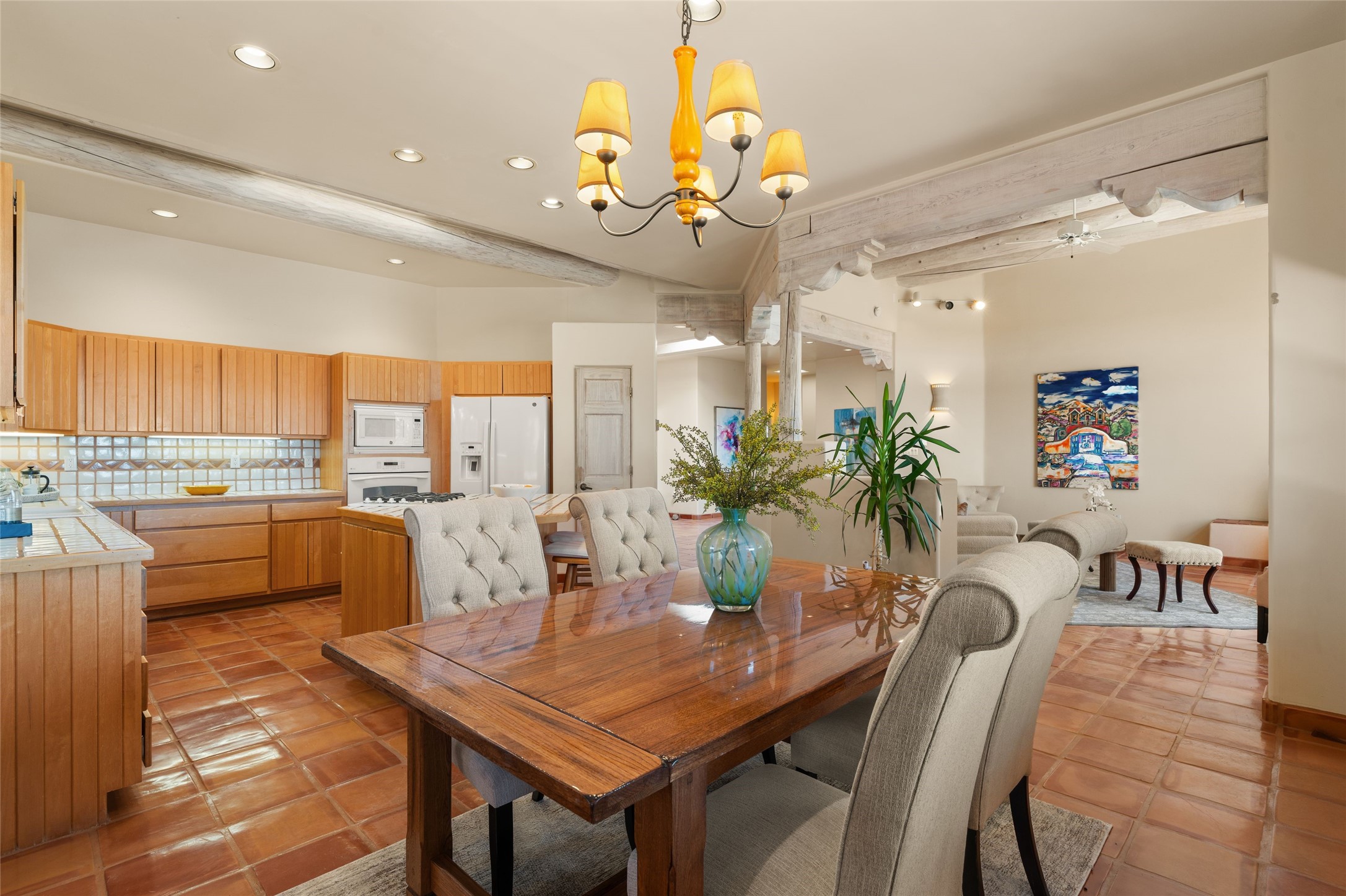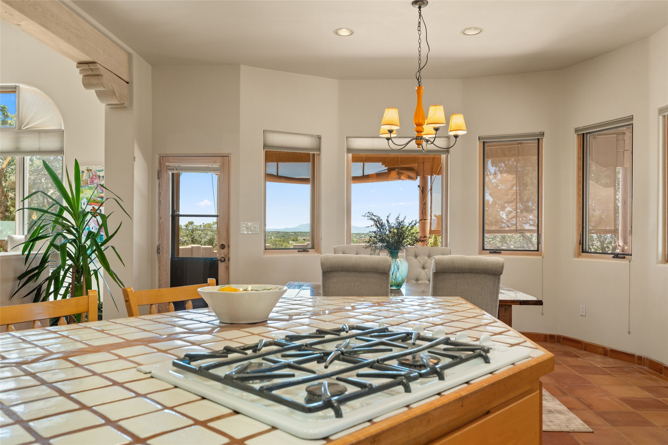 Come enjoy peace and solitude with the VIEWS, VIEWS, and more VIEWS of the Ortiz & Sandia Mountains. A single level home and separate studio on five acres, 3 bedroom, 3 bath, with custom whitewashed wood doors, Saltillo tile radiant heated floors, and an island in the kitchen is MOVE-IN ready. The additional studio (artist/musician or you choose!) also with Saltillo tile floors has its own half bath and heated garage/workshop. High ceilings, and open concept with wonderful light to enjoy, two car garage on the main house, one car garage or workshop off the studio and 2300 +/- square foot in total. Six minutes to the La Tienda for easy grocery shopping, coffee with a friend, Santa Fe Brewing, or mailing off your packages. Downtown Santa Fe is about 15 +/- minutes for your in-town socializing. Septic, HOA and Title are completed - Easy to view.Septic, HOA and Title are completed - Easy to view.