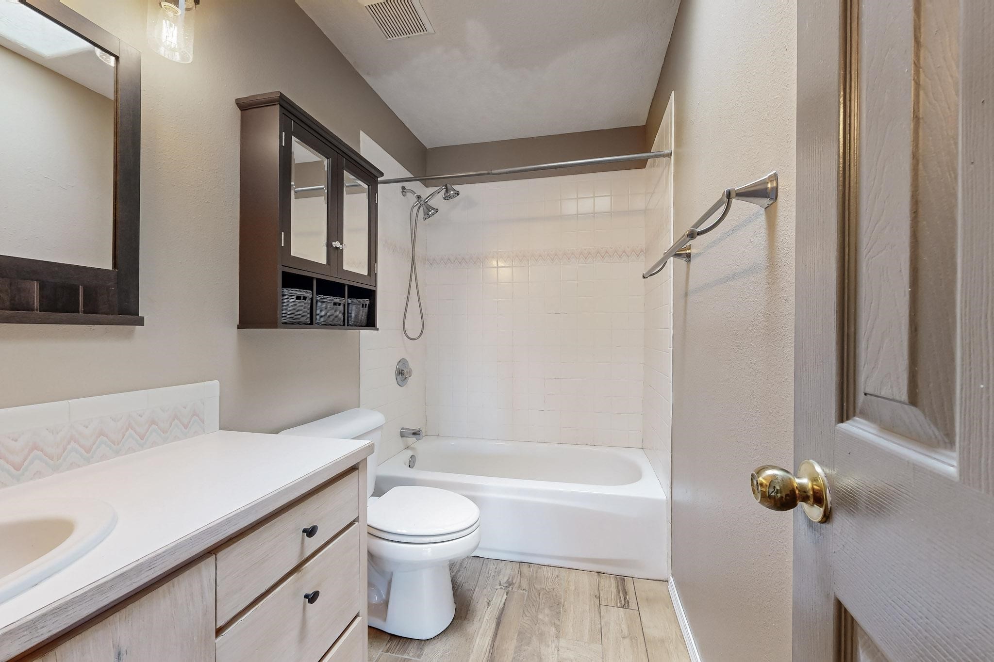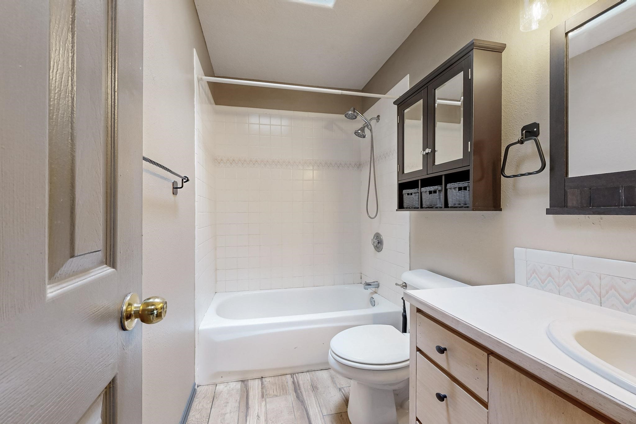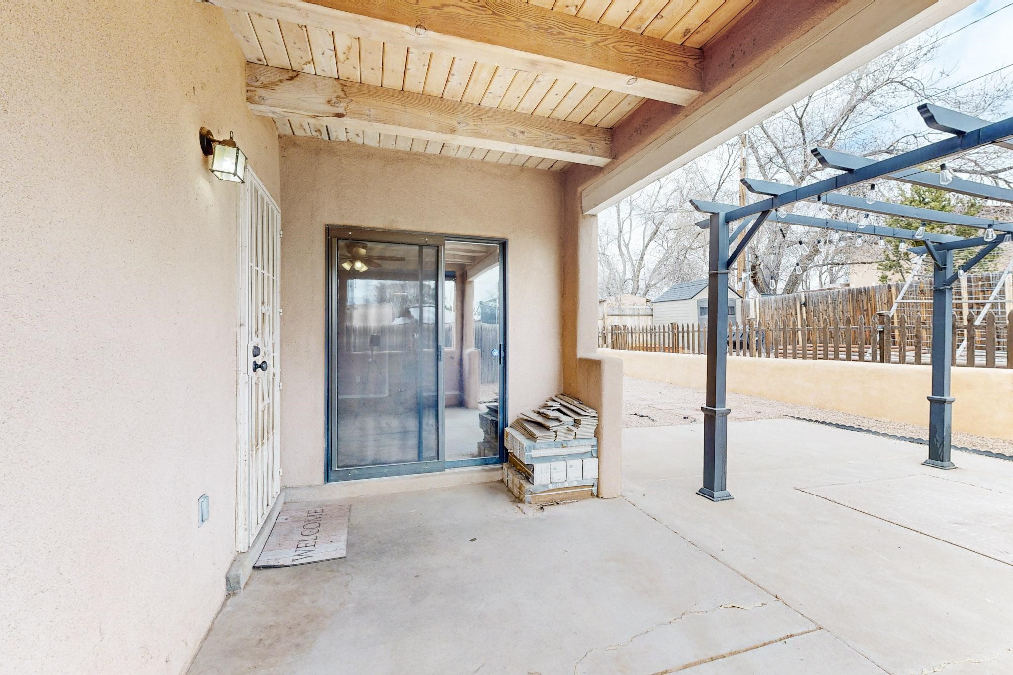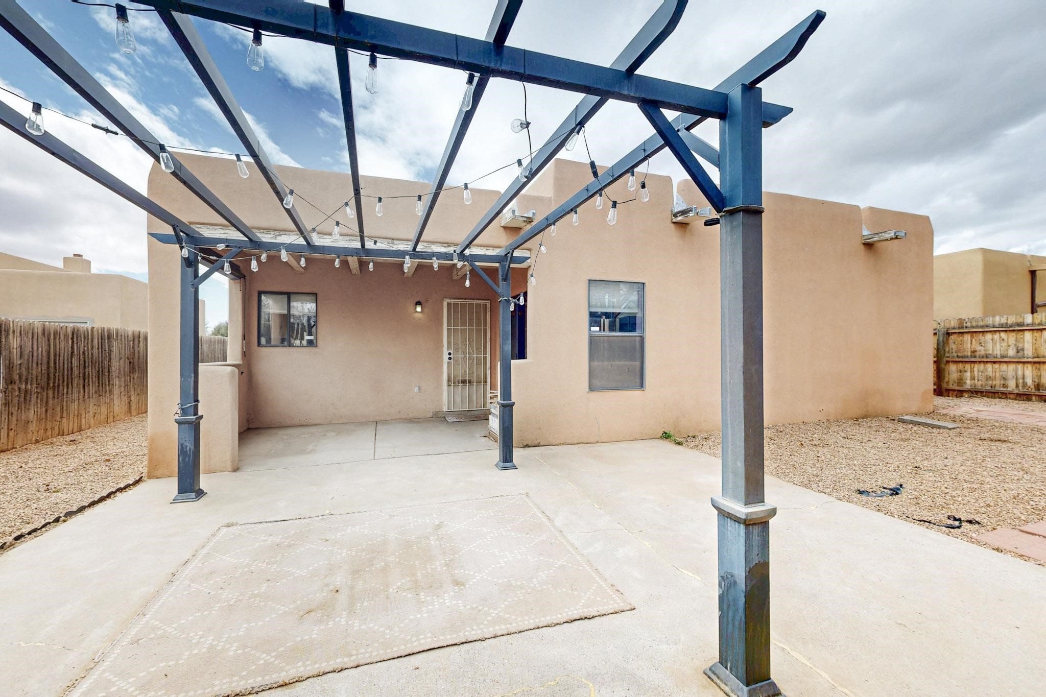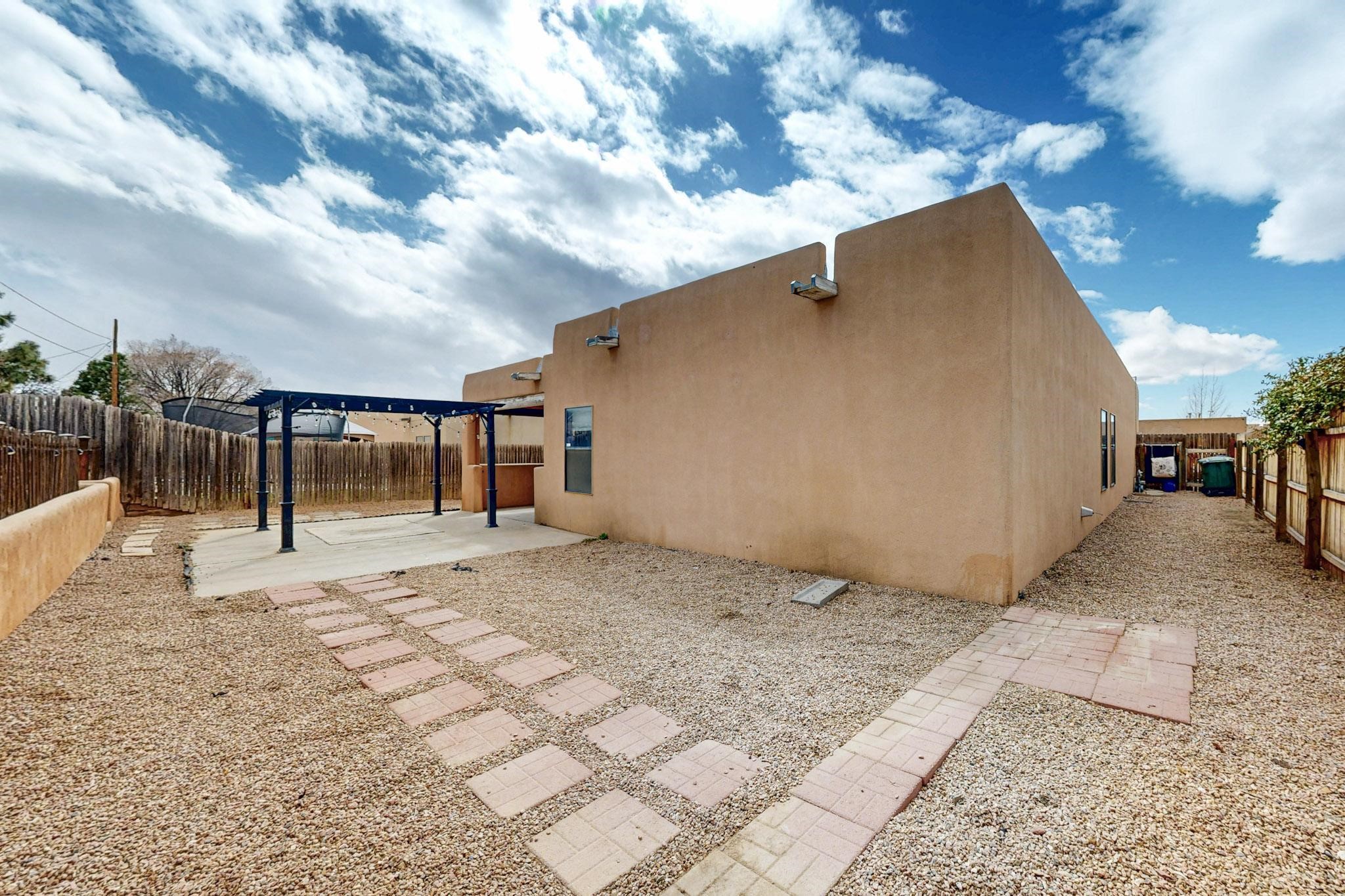 Really nice 3 bedroom 2 bath one story home on a quiet part of the Las Acequias subdivision with several recent updates. The house has an open kitchen, dinning, and living area with a kiva wood burning fireplace for those family and friends gatherings. Nice separation of bedrooms and baths with a good sized back yard with a covered porch and raised beds for gardening and fruit trees that has endless possibilities. Close to a nice park, shopping, schools and I-25 and 599 for an easy commute. Home has central air conditioning which is rare in this neighborhood, a tankless water heater and two car garage. All tile floors and recent custom interior paint make this home move in ready. Priced to sell in this competitive market with so few nice homes in this price range. Easy to show, come see it soon. It won't last long.