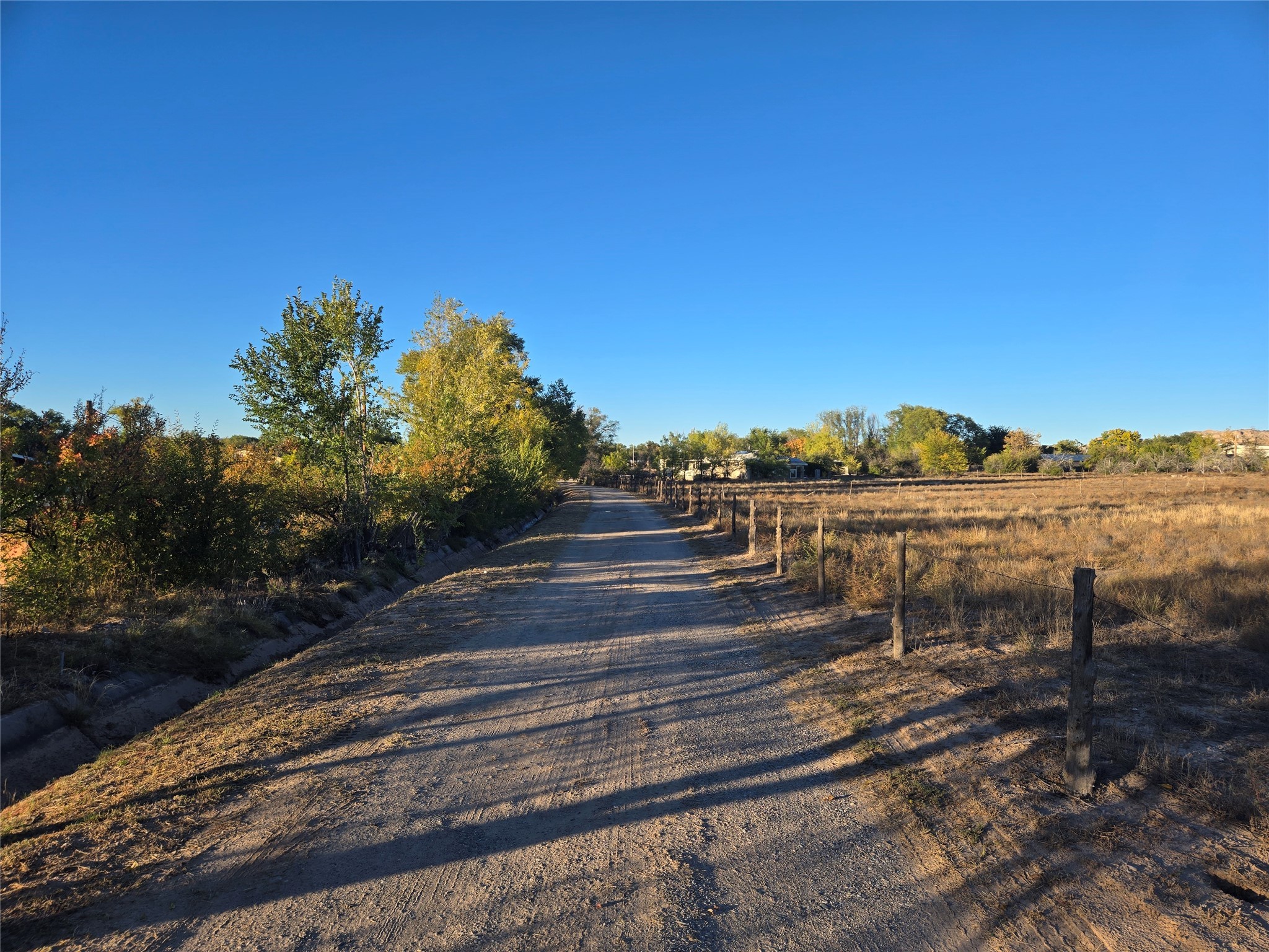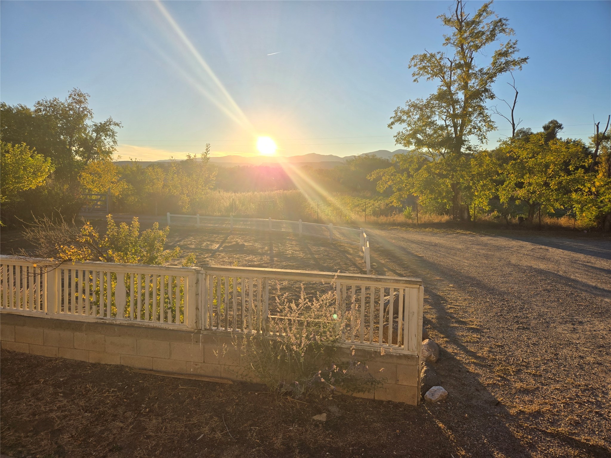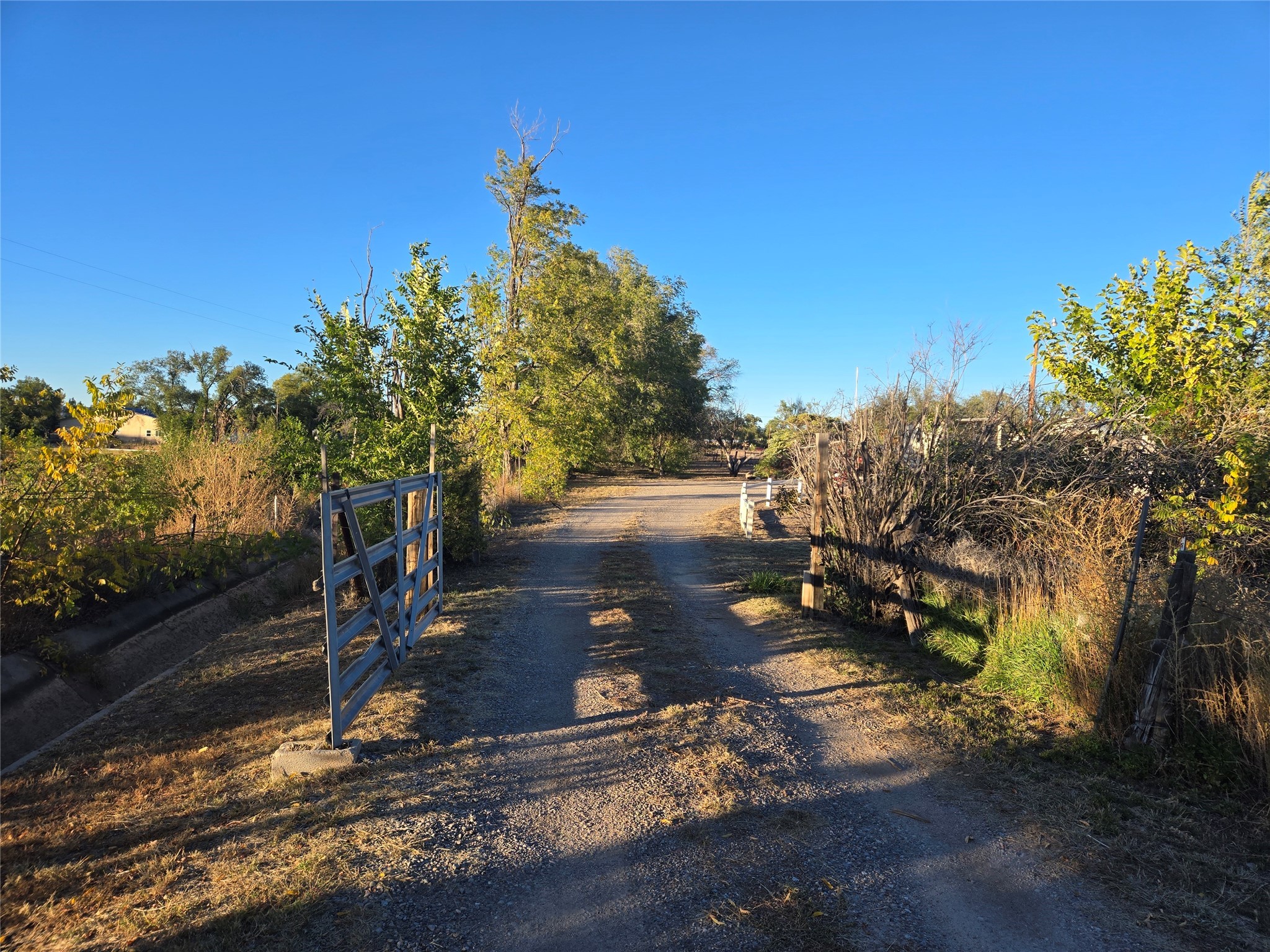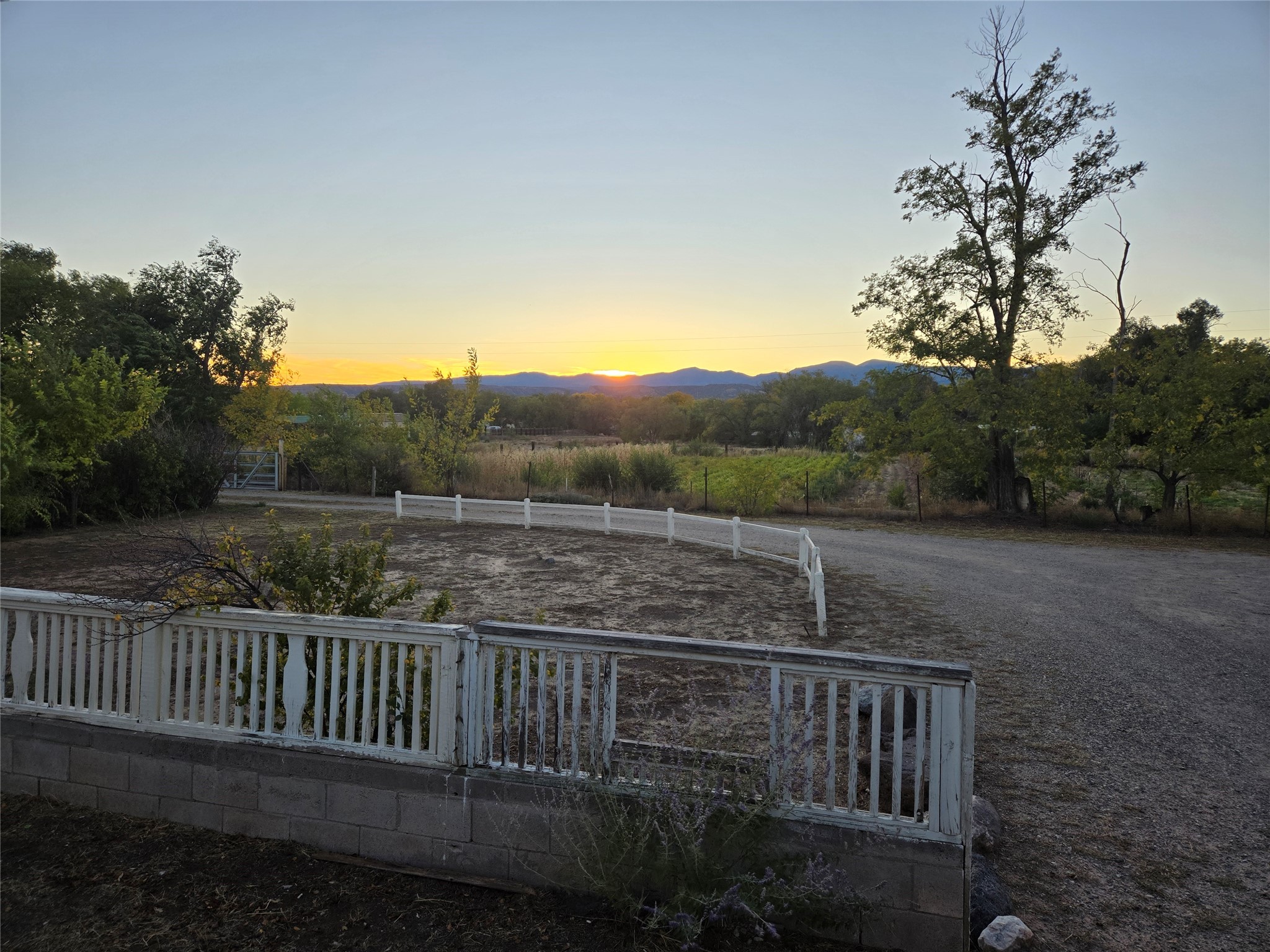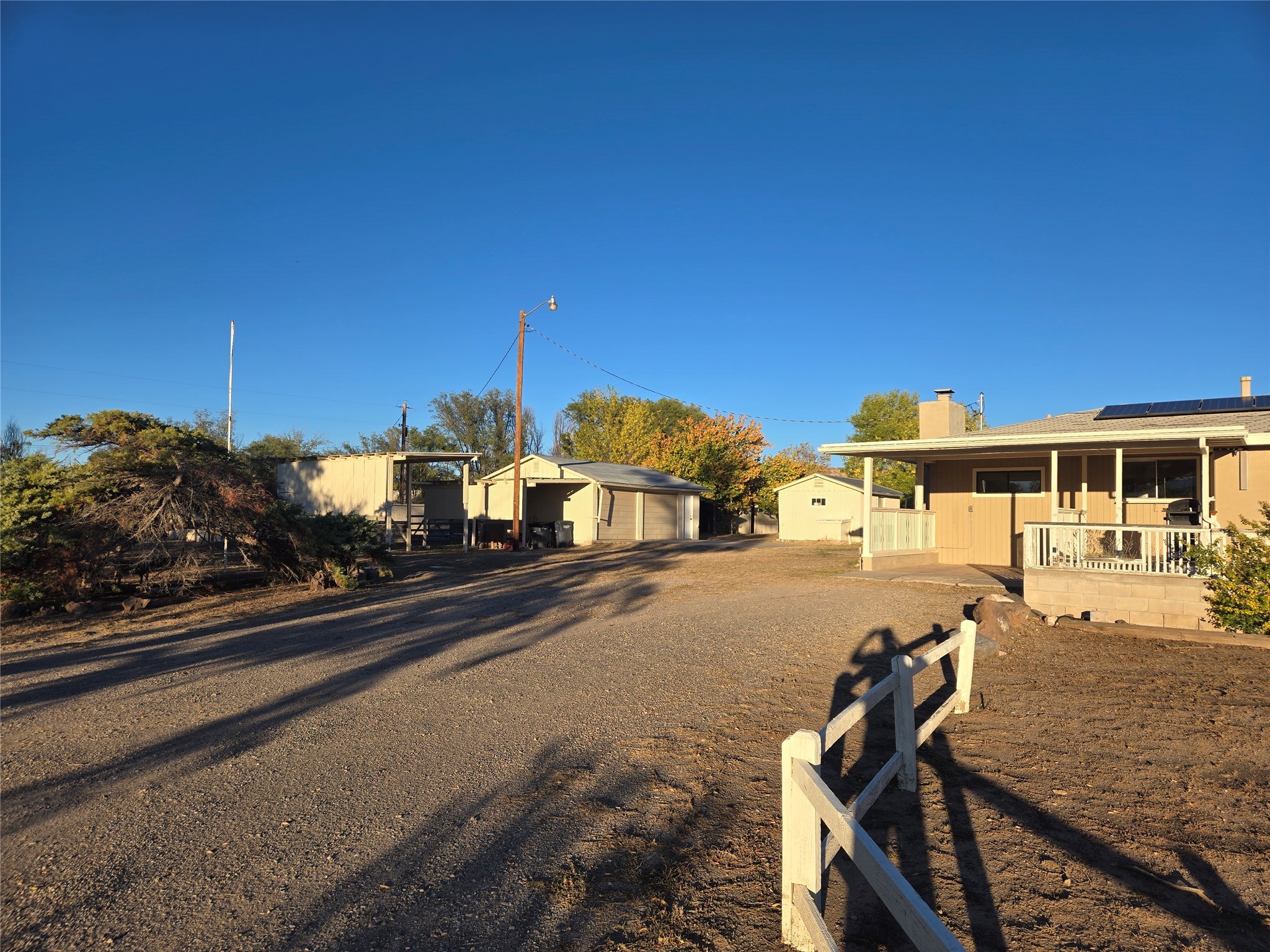 This home has it all, located in town with all the amenities of country living. Three bed, two baths home with open concept living, dining and family room; large laundry room, bonus room, sunroom and attached greenhouse. Spacious Ranch style home on just under 2 fully fenced acres with two separately deeded lots. Updates include full house grid-tied solar system with car charging station, a recently installed 6 head mini split refrigerated air/heating system and new interior paint. Home also has natural gas wall heat units and gas fireplace in living room. Large double car detached garage, RV carport, multiple storage sheds, detached root cellar, separate second greenhouse, and chicken coop. Property also has surface water rights for gardening, mature apple and peach trees and grape vines. Secluded location down long private driveway, with sweeping mountain vistas. Centrally located, easy commute to Los Alamos, Santa Fe or Taos.