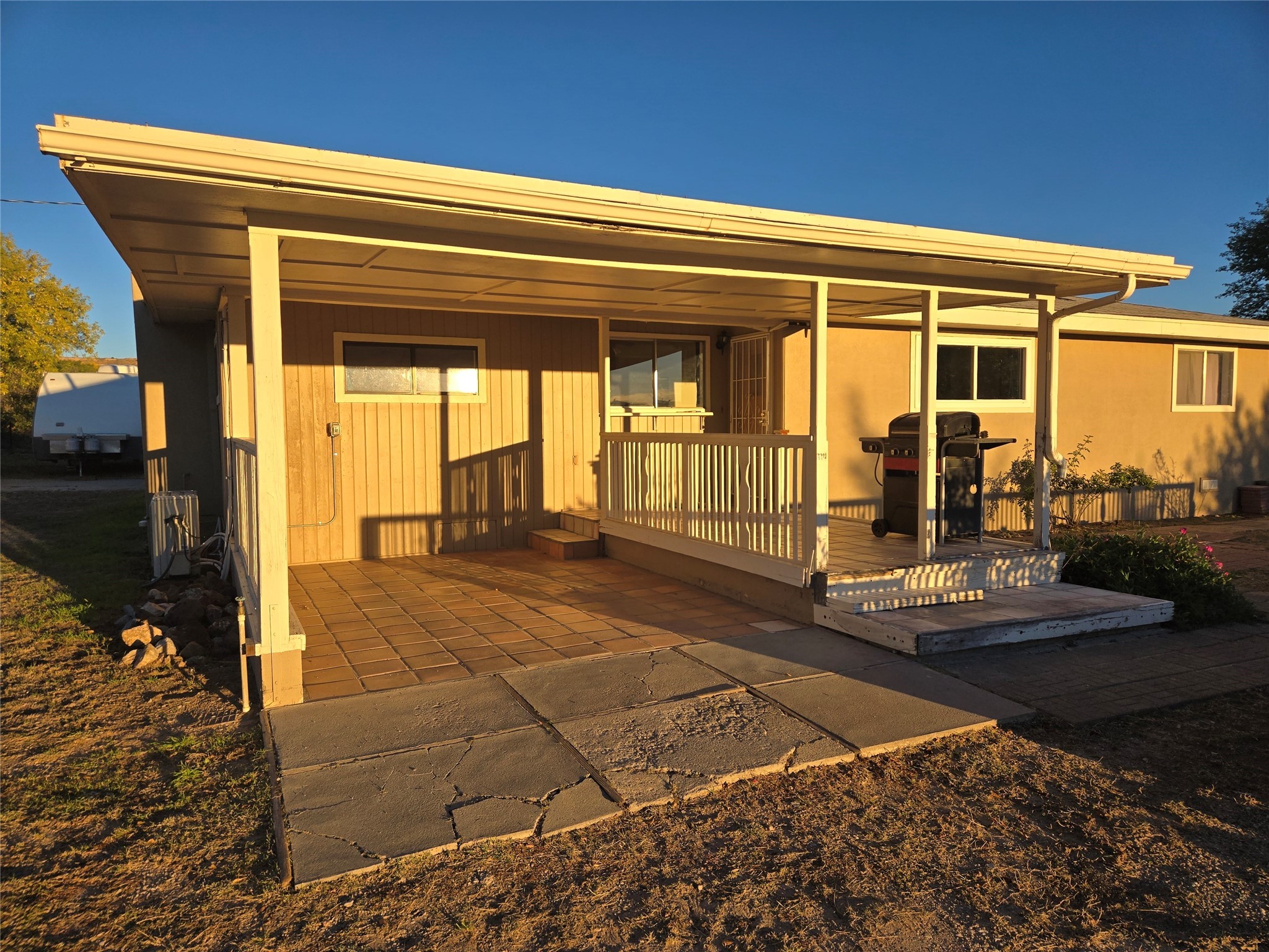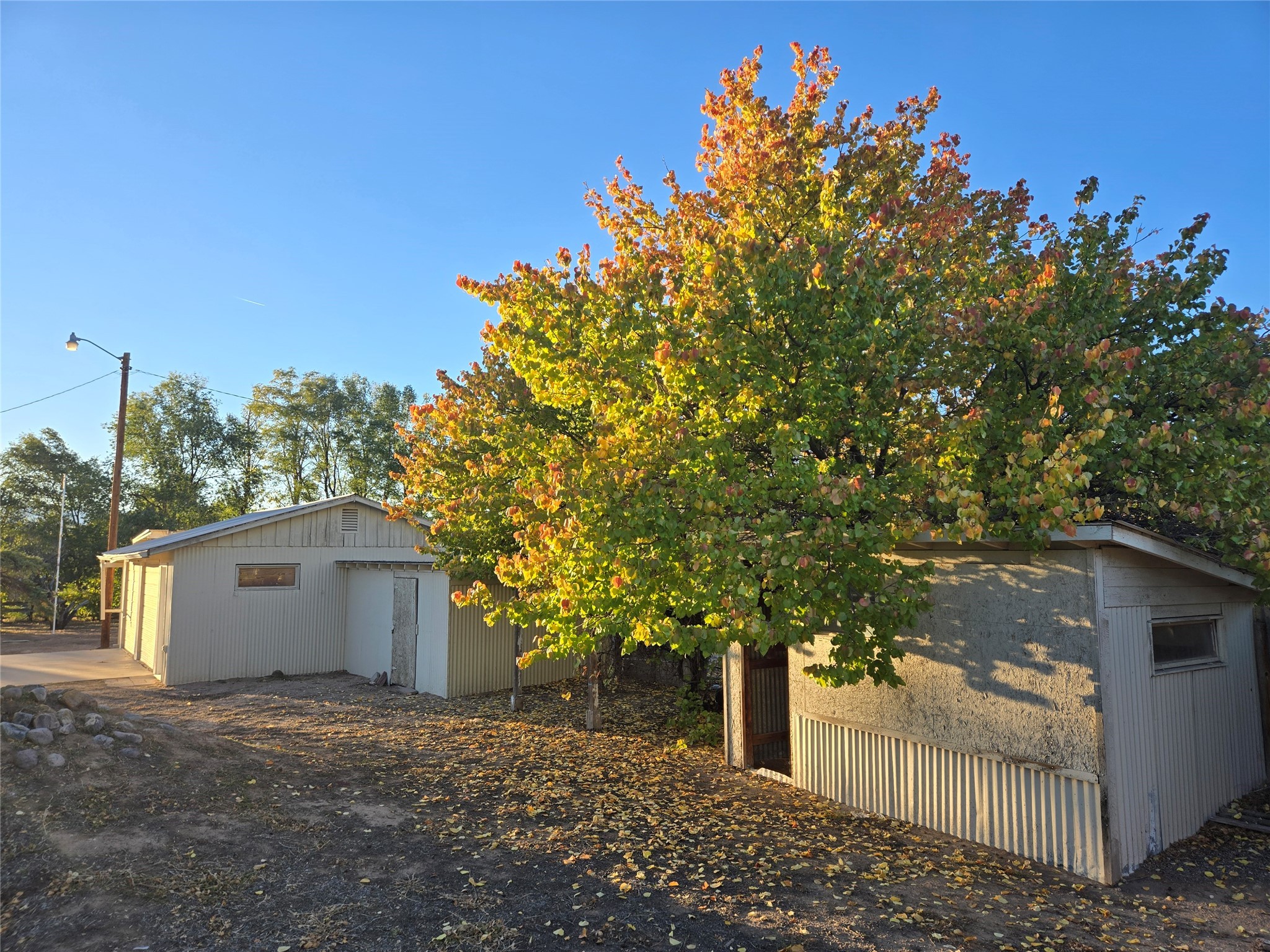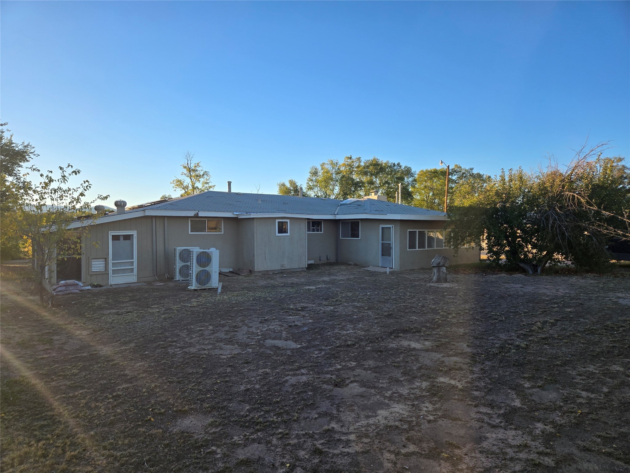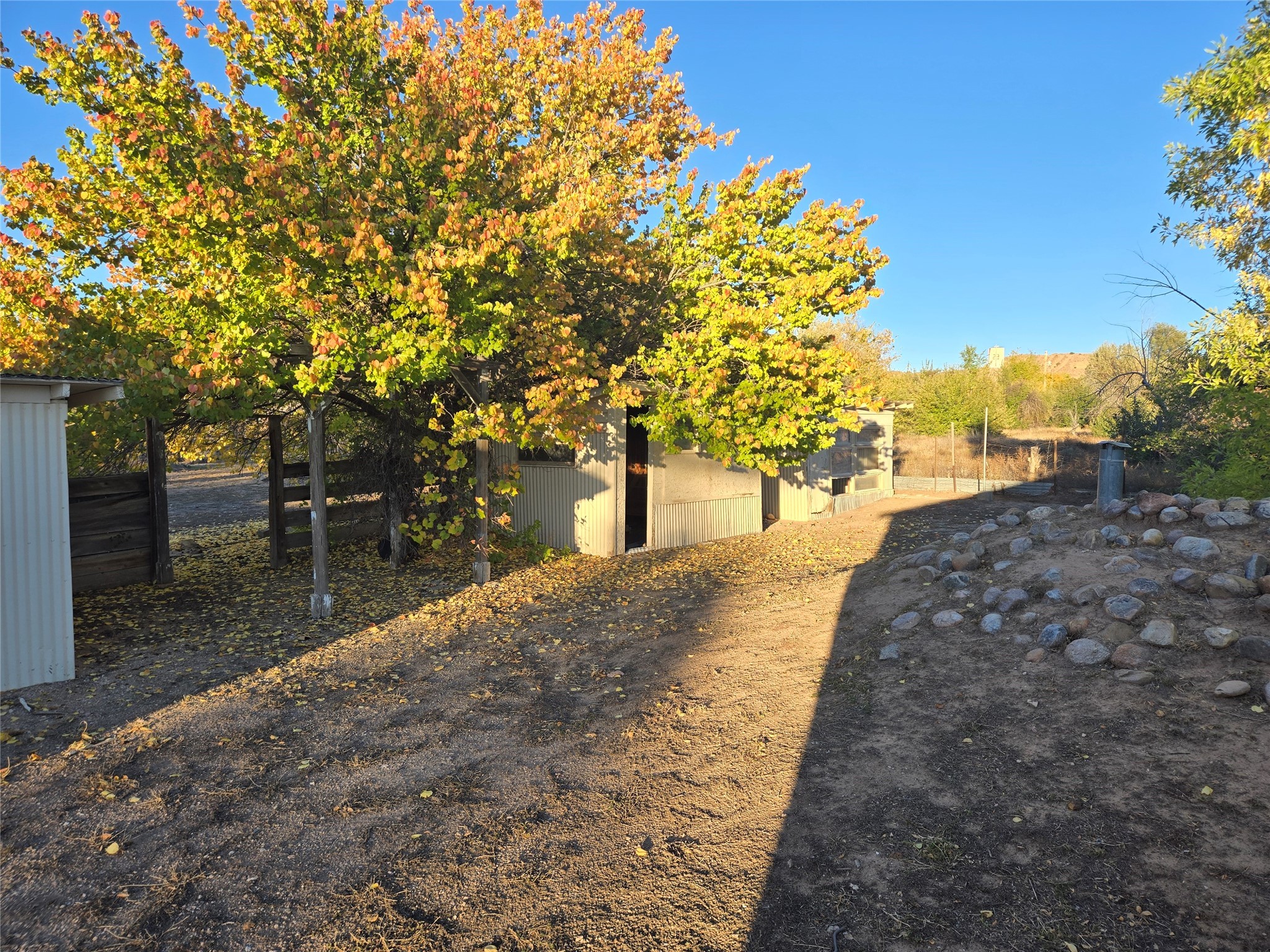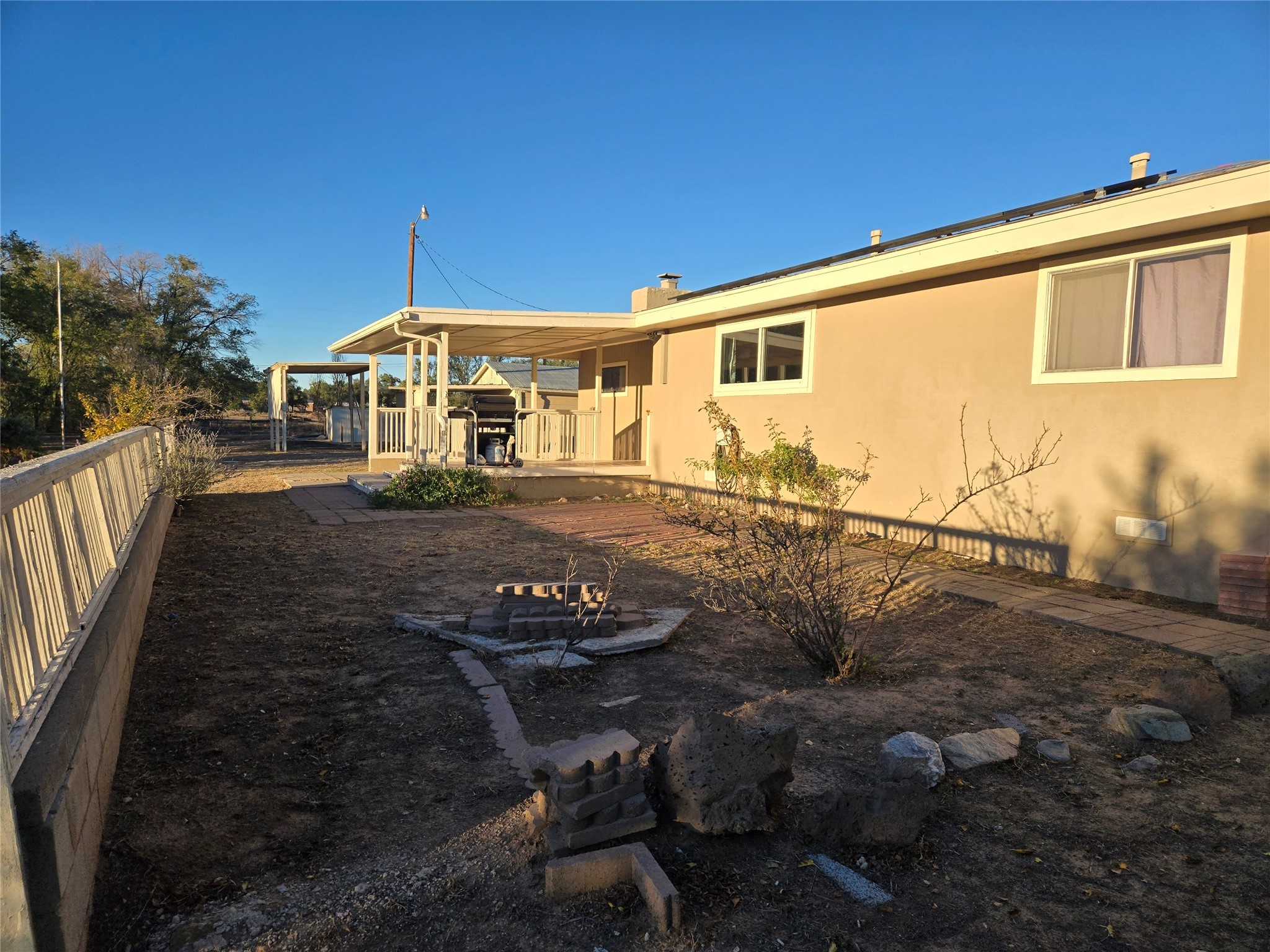 This home has it all, located in town with all the amenities of country living. Three bed, two baths home with open concept living, dining and family room; large laundry room, bonus room, sunroom and attached greenhouse. Spacious Ranch style home on just under 2 fully fenced acres with two separately deeded lots. Updates include full house grid-tied solar system with car charging station, a recently installed 6 head mini split refrigerated air/heating system and new interior paint. Home also has natural gas wall heat units and gas fireplace in living room. Large double car detached garage, RV carport, multiple storage sheds, detached root cellar, separate second greenhouse, and chicken coop. Property also has surface water rights for gardening, mature apple and peach trees and grape vines. Secluded location down long private driveway, with sweeping mountain vistas. Centrally located, easy commute to Los Alamos, Santa Fe or Taos.