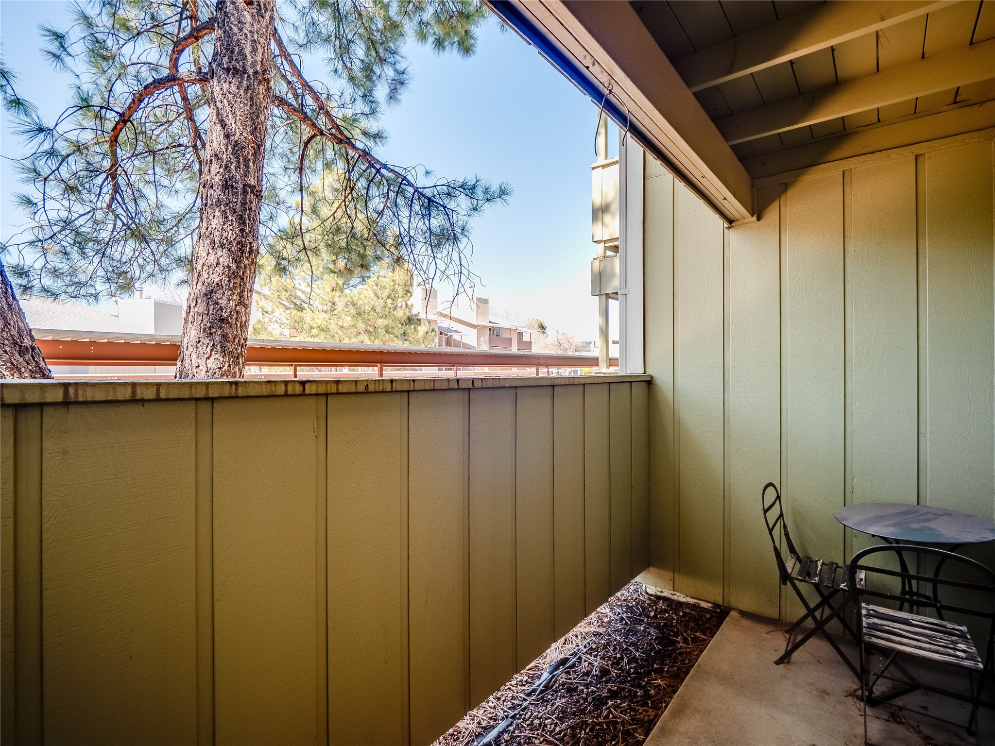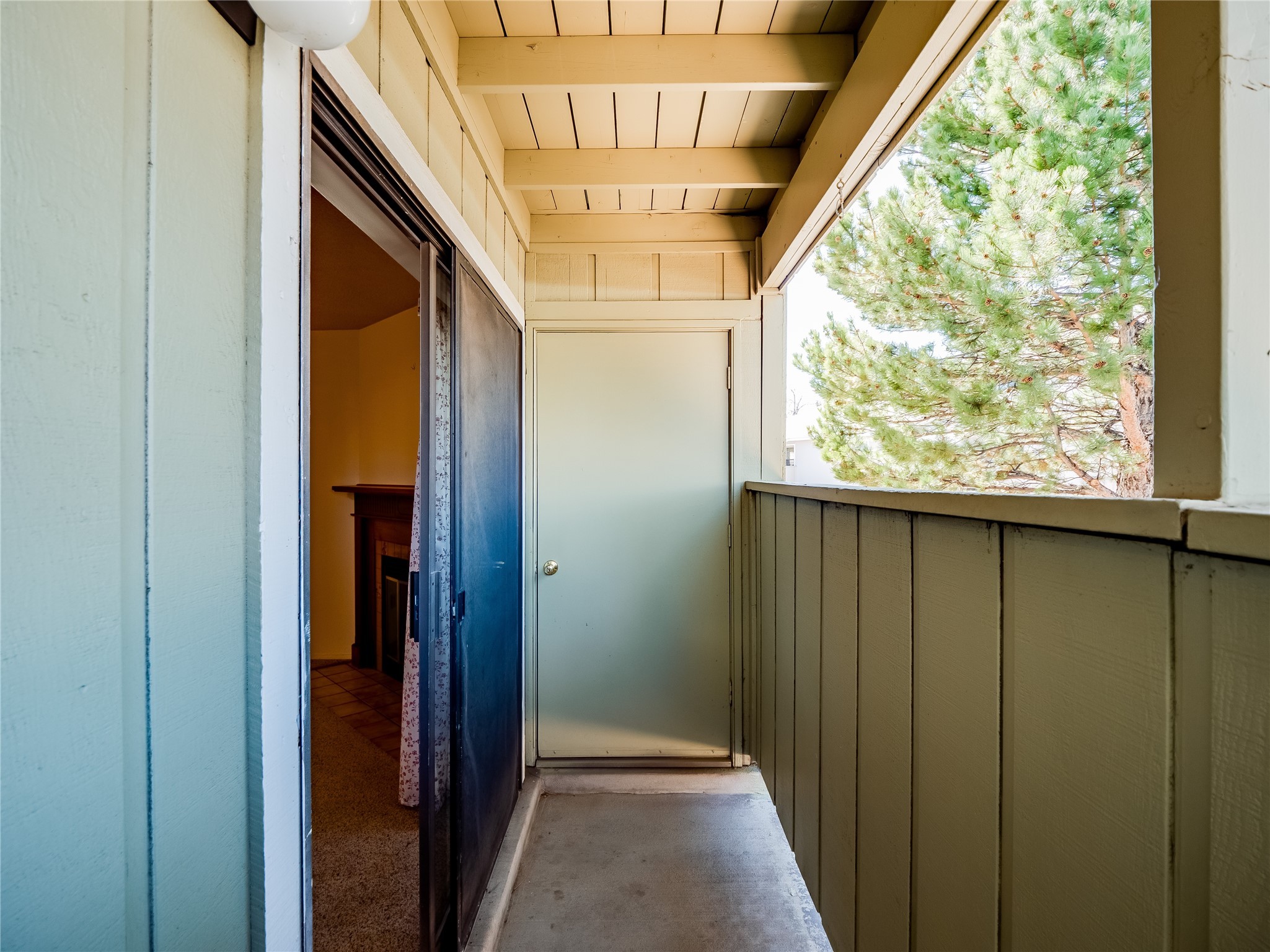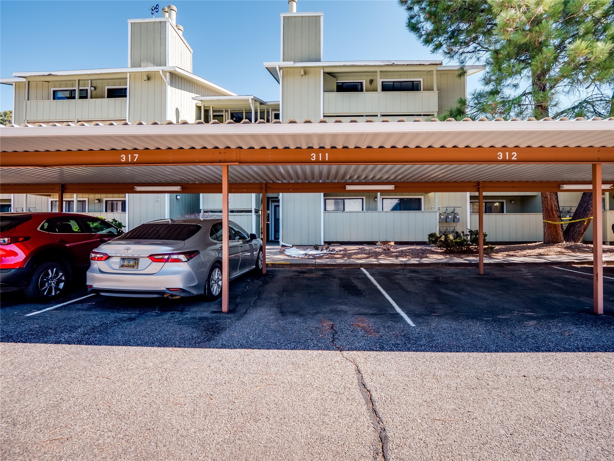 Charming ground-level end unit condo in a prime Eastern Area neighborhood! This delightful condo offers a blend of comfort and convenience. Located near the community center, residents can enjoy access to a pool, common gathering spaces, a grill, and a fire pit--perfect for relaxing or entertaining. Enter a welcoming entryway with a coat closet before entering the open floor plan. The living room is designed for comfort, featuring plush carpeting, a cozy wood burning fireplace with a classic mantel, and glass sliders that fill the space with natural light and leads to a covered, enclosed patio. This private outdoor space is perfect for year-round enjoyment, perfect for a small seating area or potted plants making it an ideal spot for morning coffee or an evening unwind. A convenient storage closet on the patio ensures extra space for seasonal items, outdoor gear, or gardening supplies. Adjacent to the living room is a guest bedroom offering flexibility as a home office. Whether you need a private workspace, a cozy reading nook, or a guest retreat, this space adapts to your lifestyle needs. The dining space flows seamlessly into the kitchen, which boasts warm wood cabinetry with black hardware, a pantry/laundry closet with a washer and dryer, and a convenient pass-through window that doubles as bar seating. Down the hallway, you'll find the spacious primary bedroom, complete with its own private enclosed covered patio, a walk-in closet, and a separate single-sink vanity that connects to the main bathroom. The bathroom features tile flooring, an additional single-sink vanity, and a tiled shower/tub combination. This unit also comes with a covered designated parking spot and is situated near shopping, parks, and restaurants, making it an ideal place to call home. Don't miss the opportunity to tour this inviting condo today!