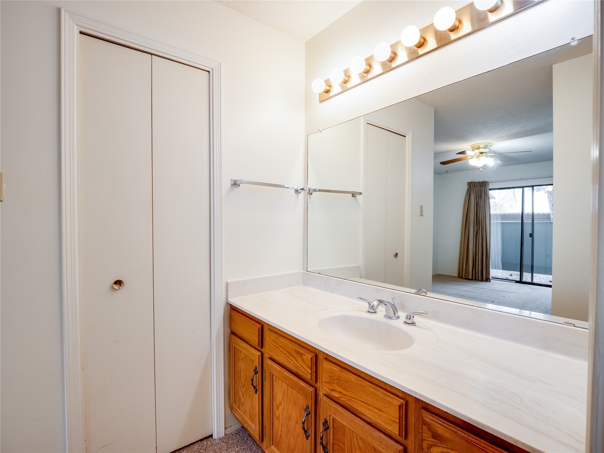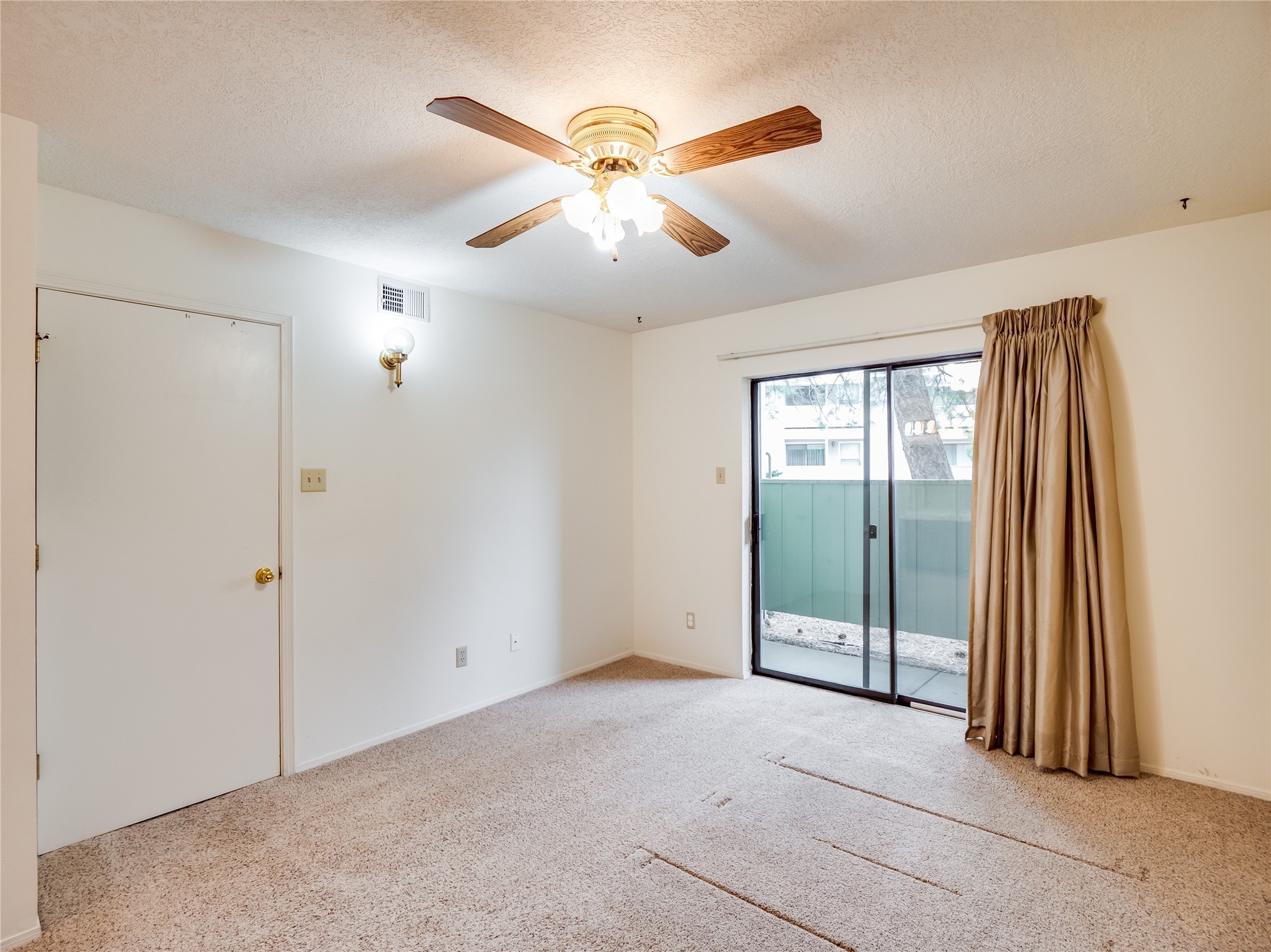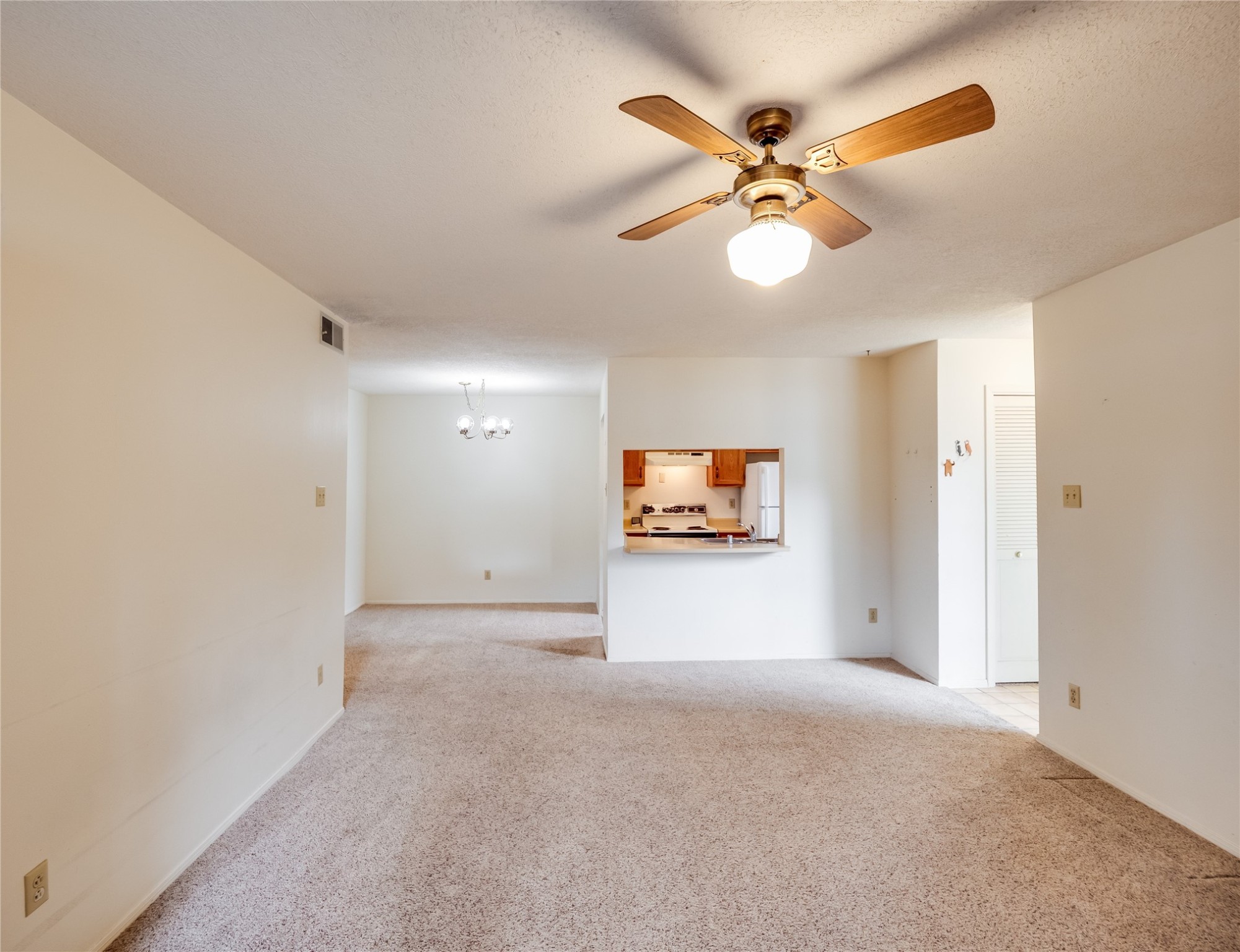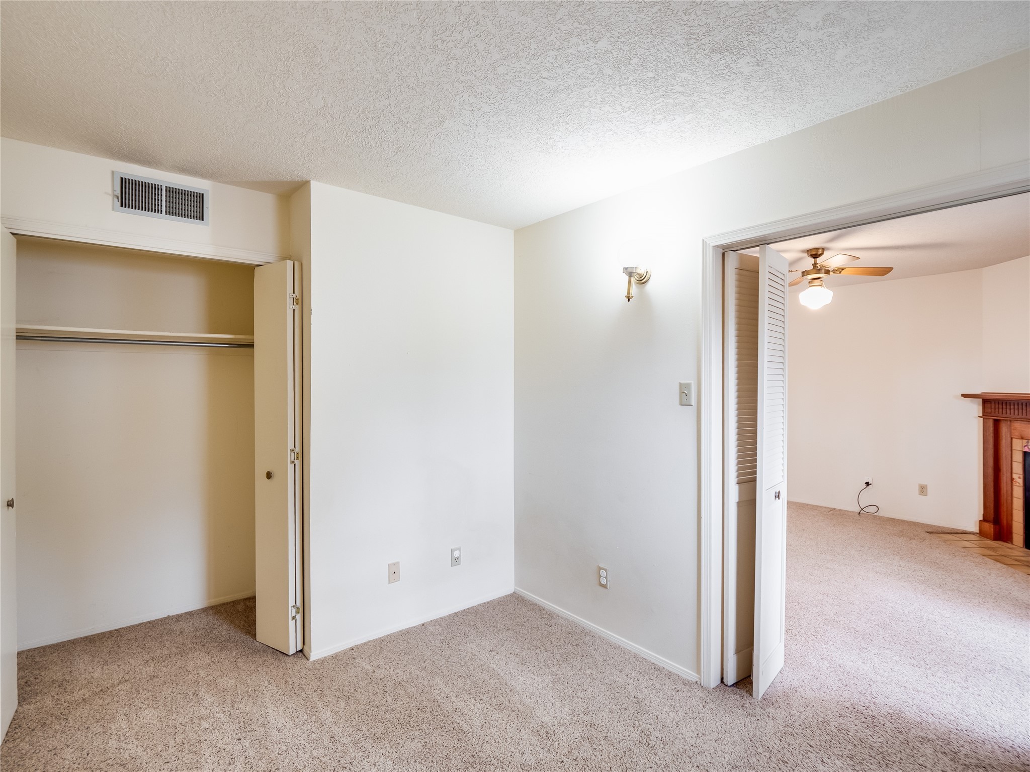 Charming ground-level end unit condo in a prime Eastern Area neighborhood! This delightful condo offers a blend of comfort and convenience. Located near the community center, residents can enjoy access to a pool, common gathering spaces, a grill, and a fire pit--perfect for relaxing or entertaining. Enter a welcoming entryway with a coat closet before entering the open floor plan. The living room is designed for comfort, featuring plush carpeting, a cozy wood burning fireplace with a classic mantel, and glass sliders that fill the space with natural light and leads to a covered, enclosed patio. This private outdoor space is perfect for year-round enjoyment, perfect for a small seating area or potted plants making it an ideal spot for morning coffee or an evening unwind. A convenient storage closet on the patio ensures extra space for seasonal items, outdoor gear, or gardening supplies. Adjacent to the living room is a guest bedroom offering flexibility as a home office. Whether you need a private workspace, a cozy reading nook, or a guest retreat, this space adapts to your lifestyle needs. The dining space flows seamlessly into the kitchen, which boasts warm wood cabinetry with black hardware, a pantry/laundry closet with a washer and dryer, and a convenient pass-through window that doubles as bar seating. Down the hallway, you'll find the spacious primary bedroom, complete with its own private enclosed covered patio, a walk-in closet, and a separate single-sink vanity that connects to the main bathroom. The bathroom features tile flooring, an additional single-sink vanity, and a tiled shower/tub combination. This unit also comes with a covered designated parking spot and is situated near shopping, parks, and restaurants, making it an ideal place to call home. Don't miss the opportunity to tour this inviting condo today!