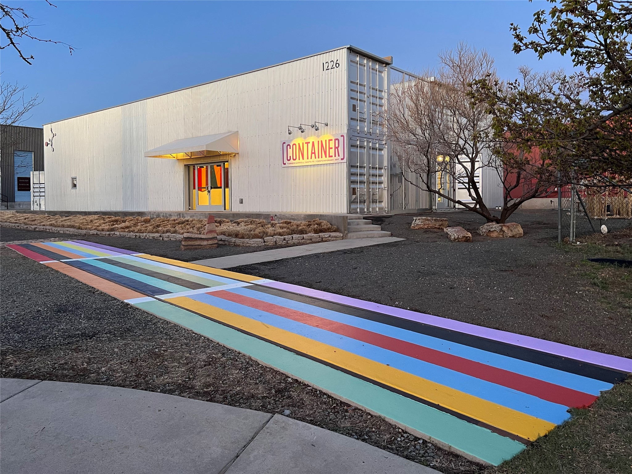 CONTAINER is a unique steel building in the Baca Street Railyard District consisting of repurposed shipping containers retrofitted to operate today what is a contemporary art center and gallery. Consisting of approximately 5,182 square feet, on two levels, an interior staircase as well as an elevator, adjacent to free city/public parking with six designated and two handicap parking spaces, an interior residential rental unit, substantial storage areas, 3 bathrooms total, and two kitchen areas with one each in the residential portion of the building. The land is leasehold with substantial time and numerous options in place.