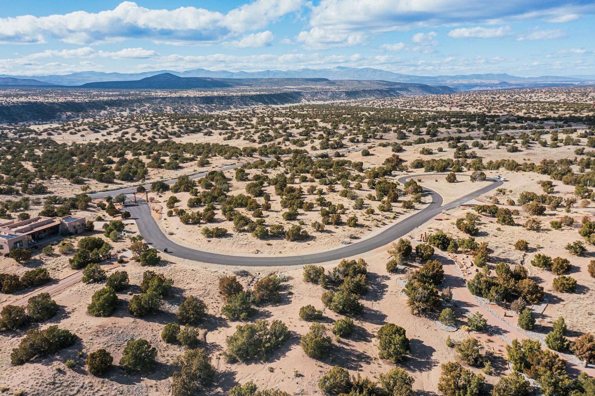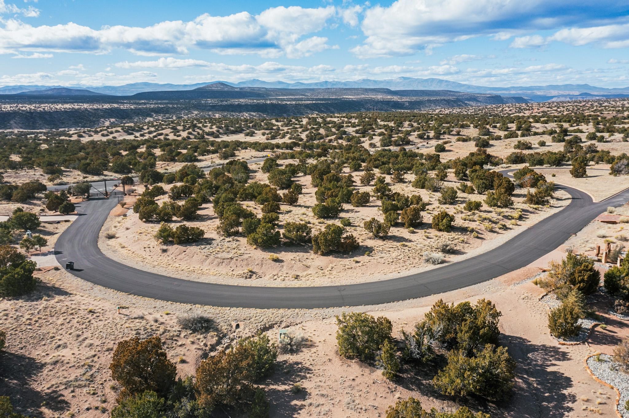 One of the most magical home sites in Las Campanas with sweeping views of the Jemez Mountains from the south to the north! Located on the western edge of Las Campanas in Santa Fe, this home site looks out over the bordering 68,000 acres of Federal land to the famed canyons and sunsets of New Mexico! Perfect for your new home, all utilities are to the lot line and include water, sewer, natural gas, electric, high- speed internet, and paved roads. The soils engineering report has been completed and is available. The lot is ready for construction as soon as you get your permit. Through the HOA, the community offers 24 hour security and 24 hour paramedics to all owners. Membership to The Club at Las Campanas is an additional cost and the membership is optional, and handled through The Club. There is no time limit to begin building your home so you can buy now and build later. This lot has a large developable area, a guest house is allowed, and the views are remarkable!
