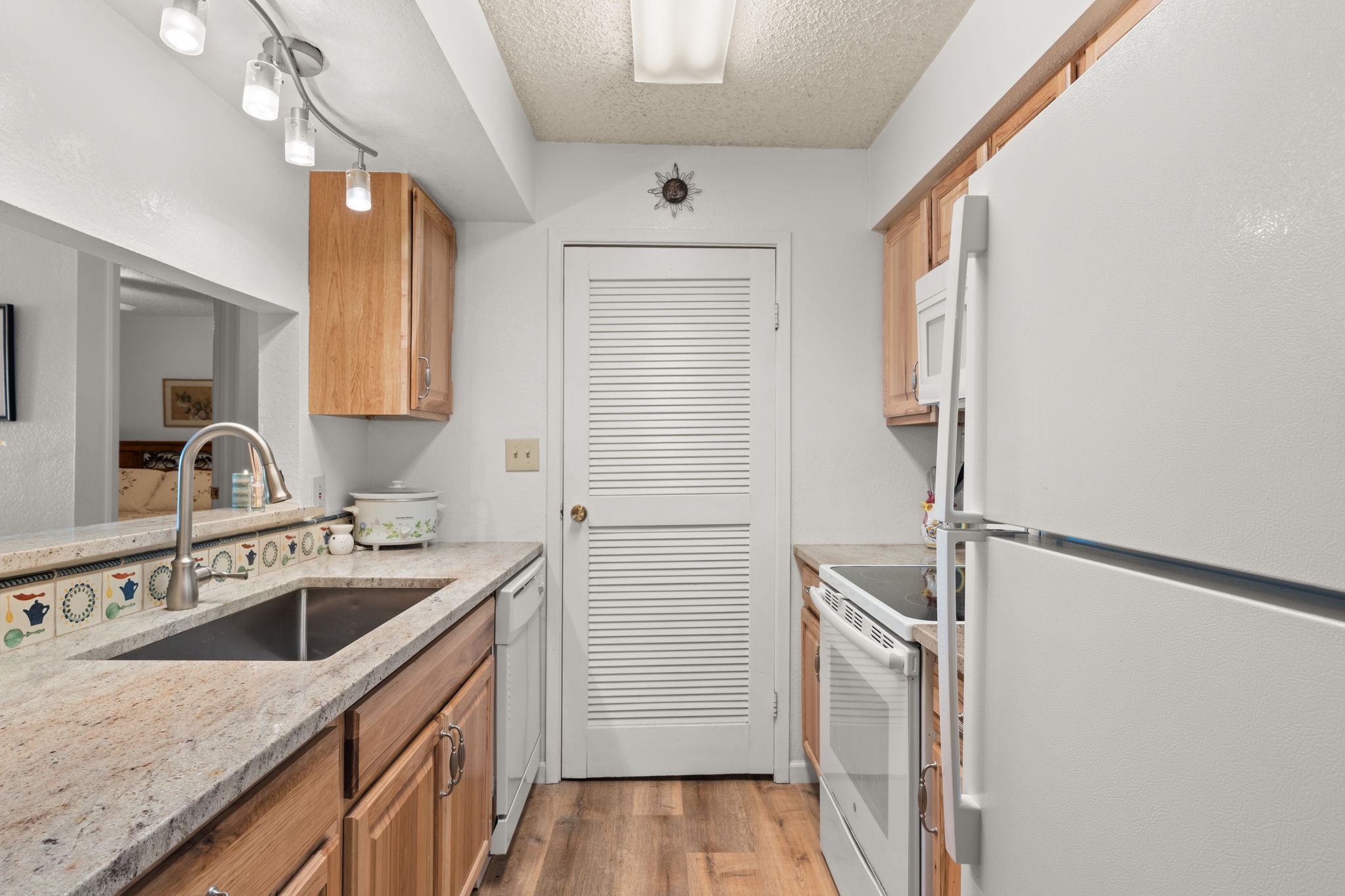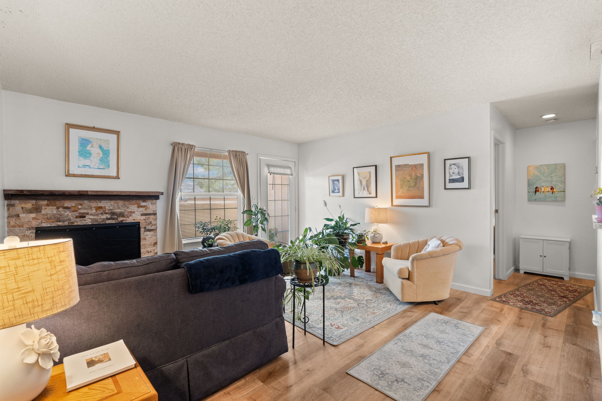 Charming Santa Fe Condo with Modern Upgrades & Resort-Style AmenitiesStep into this beautifully updated ground-floor condo, where modern comfort meets classic Santa Fe charm. The recently remodeled kitchen is a chef's delight, featuring granite countertops, newer appliances, and a stunning Mexican tile backsplash. The upgrades continue into the bathroom, which boasts a new tub, toilet, cabinet, and coordinating Mexican tile accents. Throughout the home, luxury vinyl flooring with an elegant oak-look adds warmth and durability.Cozy up by the wood-burning fireplace in the living room, now enhanced with an updated mantle, or step through the French door onto your private outdoor patio, perfect for enjoying Santa Fe's breathtaking skies. Additional upgrades include a 1.5-year-old water heater, along with upgraded plumbing and electrical in both the kitchen and bathroom for added peace of mind.Beyond the condo's stylish interior, enjoy an array of community amenities, including a cedar sauna, an updated exercise room, scenic hiking trails, an outdoor pool, and a newly renovated 24/7 spa. The condo association has also taken care of recent improvements, such as newer roofs, freshly painted handrails, and an upcoming parking lot resurfacing.All of this is conveniently located near the best of Santa Fe, offering easy access to dining, shopping, outdoor recreation, and cultural attractions. Don't miss this opportunity to own a move-in-ready home in a well-maintained community with top-tier amenities! If you are thinking of buying this property to rent, this excellent tenant would love to stay on indefinitely. Schedule a showing today and experience the charm of this upgraded Santa Fe condo for yourself!