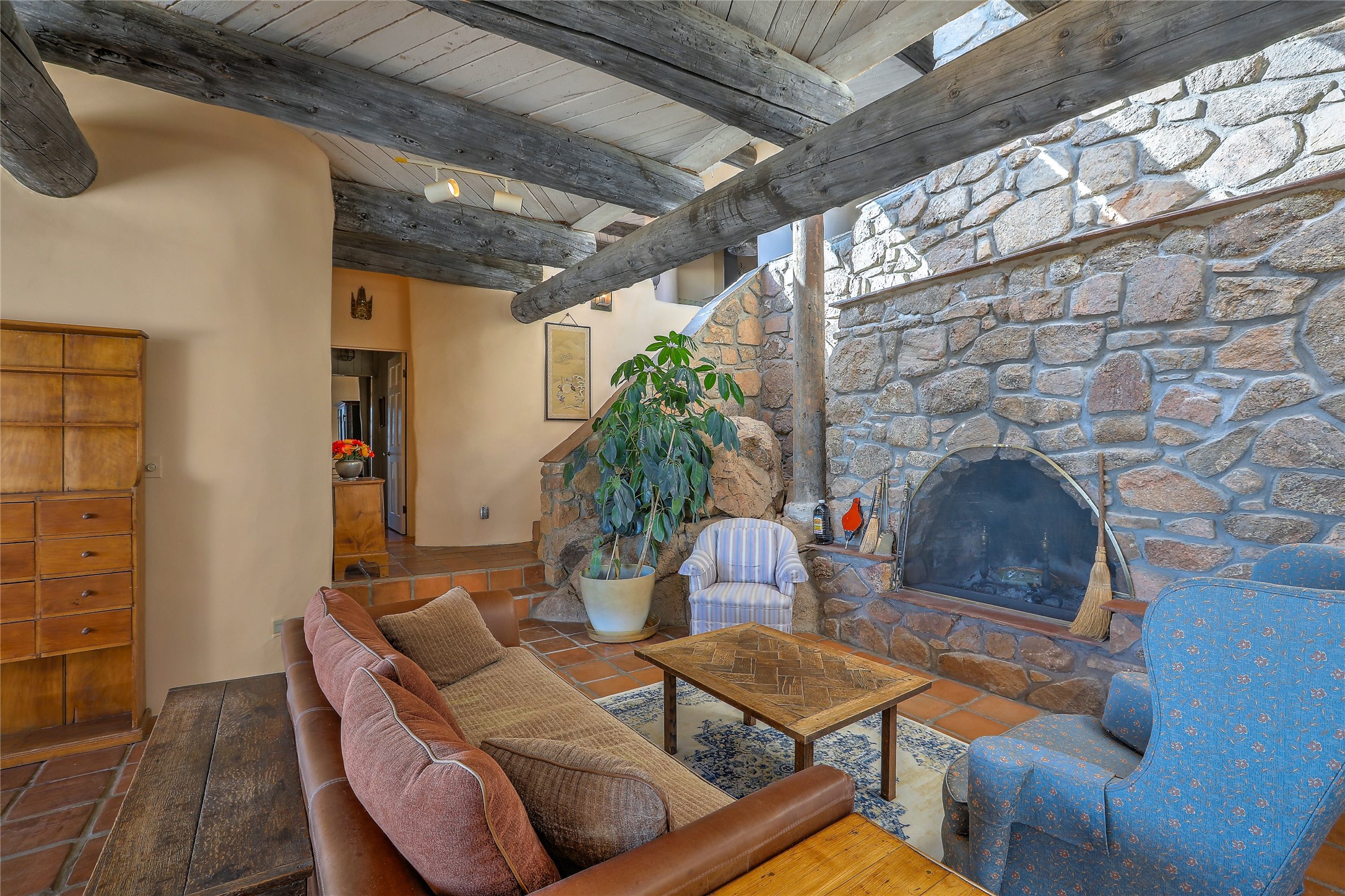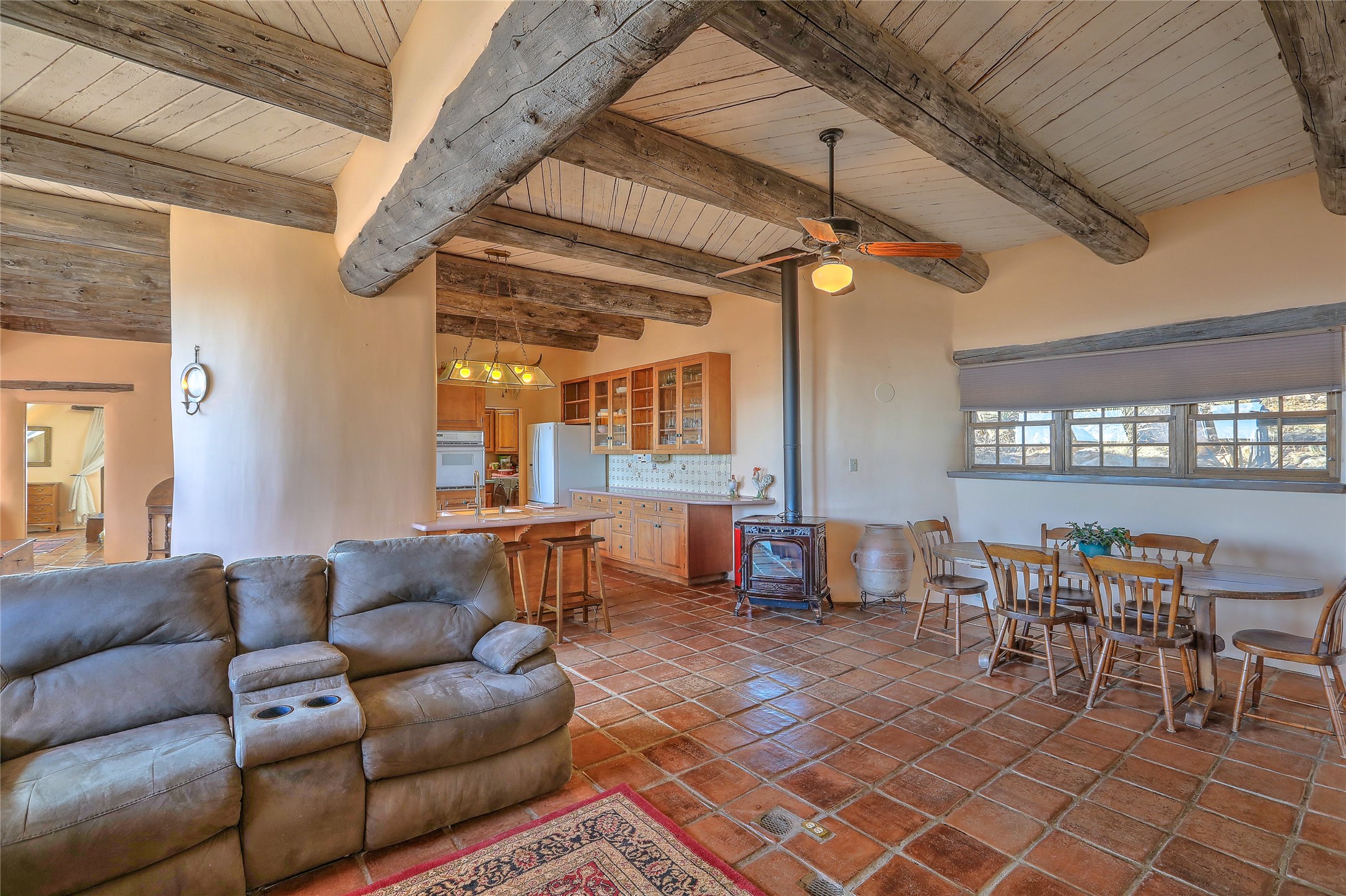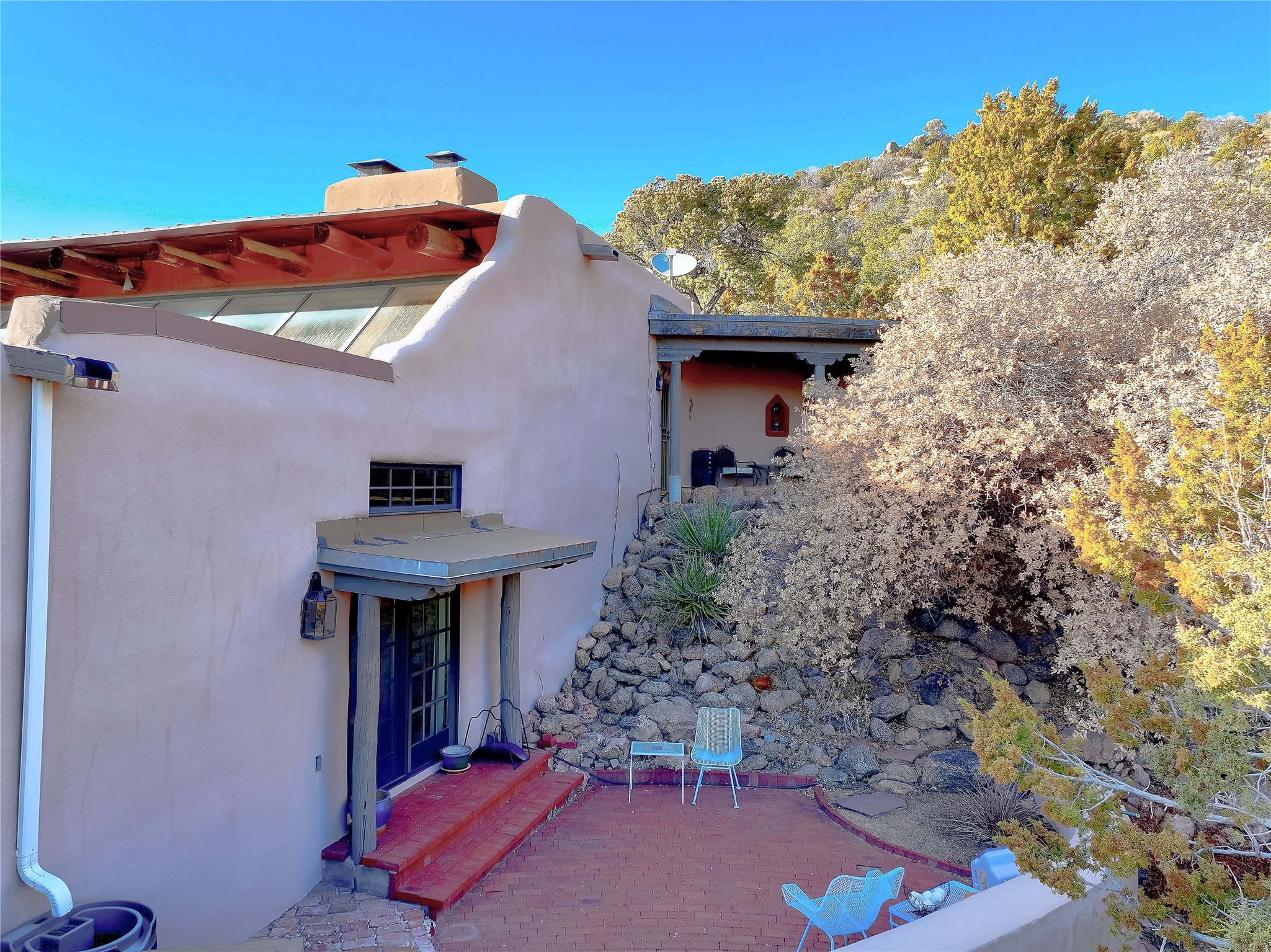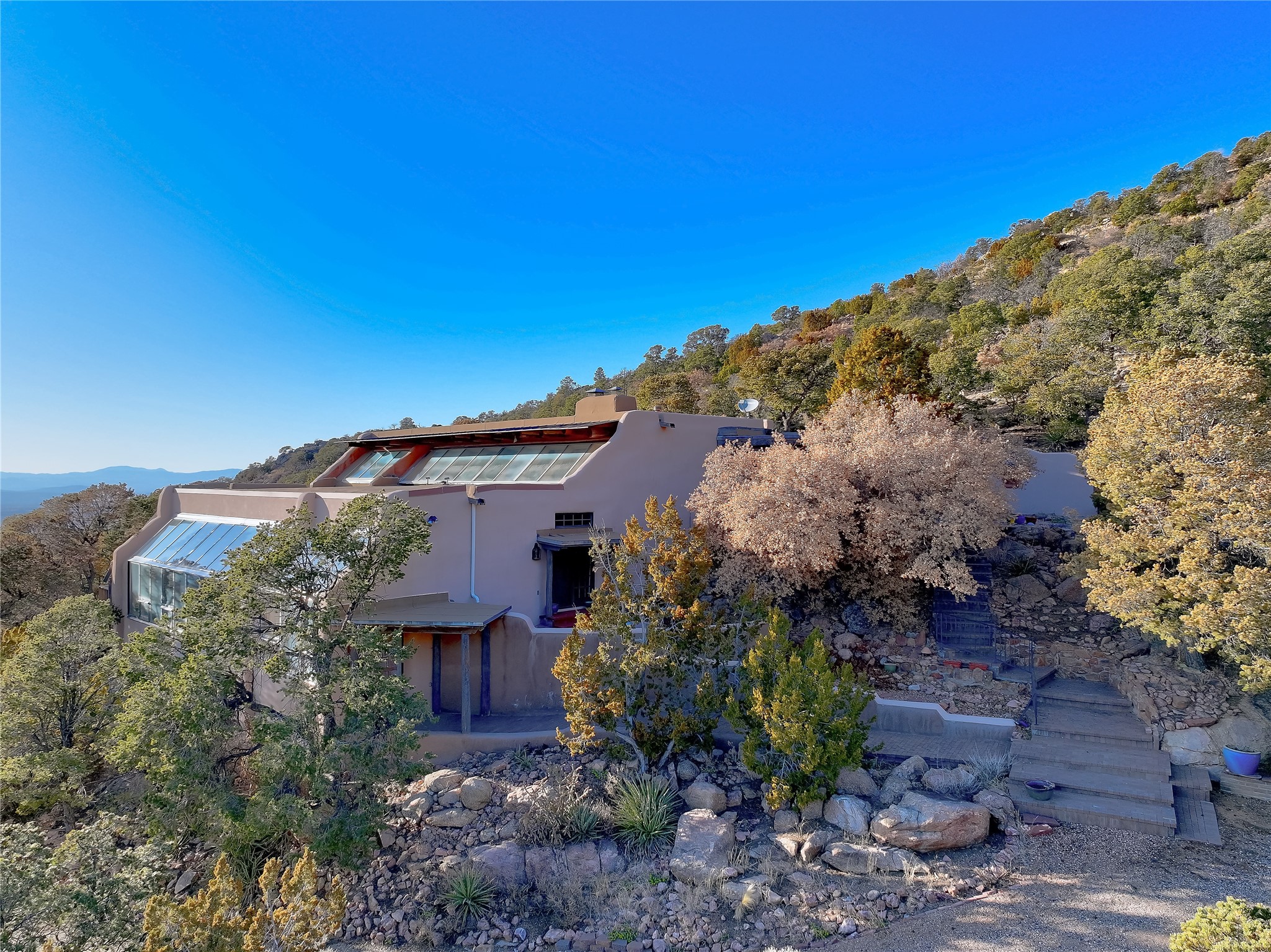 Welcome to your serene sanctuary in Monte De Las Piedras! Immerse yourself in the beauty of this passive solar adobe home, featuring 2-4 bedrooms and 2 full baths. Sitting on 11.85 acres with awe-inspiring mountain views, this split-level residence boasts a charming stone fireplace downstairs and a spacious open kitchen, living, and dining area with an additional fireplace and wood stove for cozy evenings. Step outside onto the view deck, where stunning landscapes unfold before you. The home is adorned with Saltillo tile in the main living areas and wood floors in the bedrooms, creating a warm atmosphere throughout. With a 3-car carport and ample outdoor living space, this property offers the perfect blend of comfort and nature. Make it yours today!