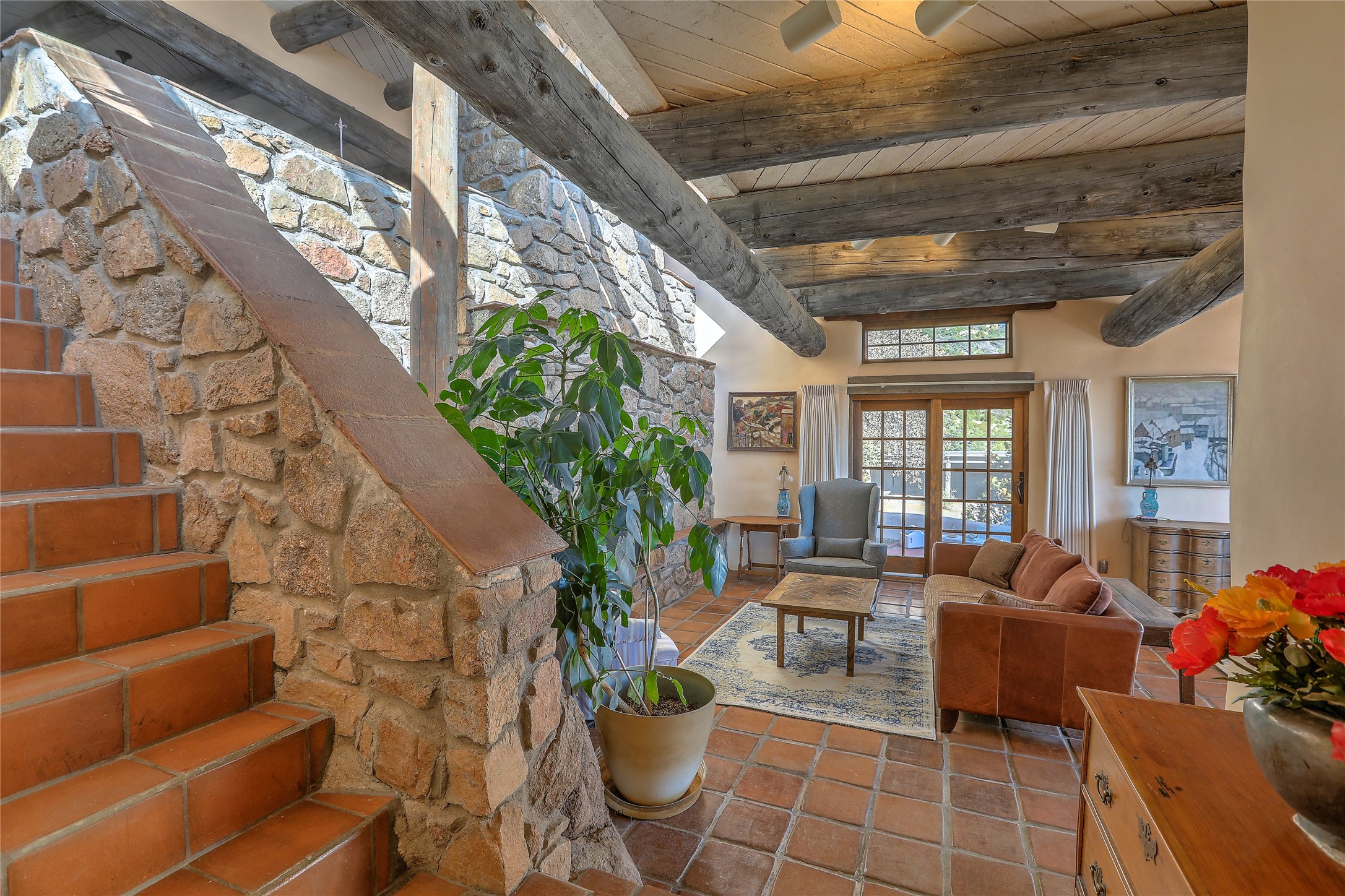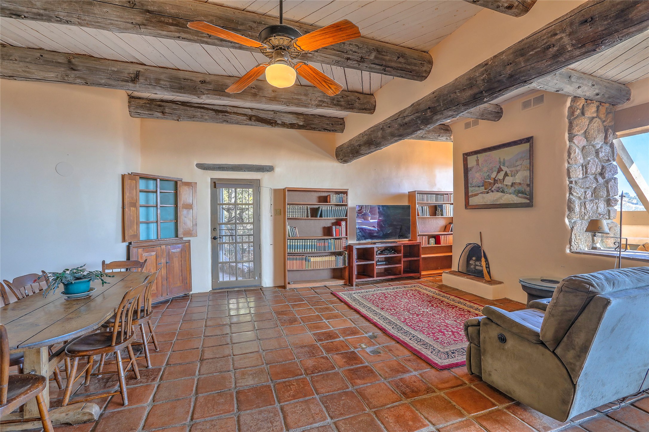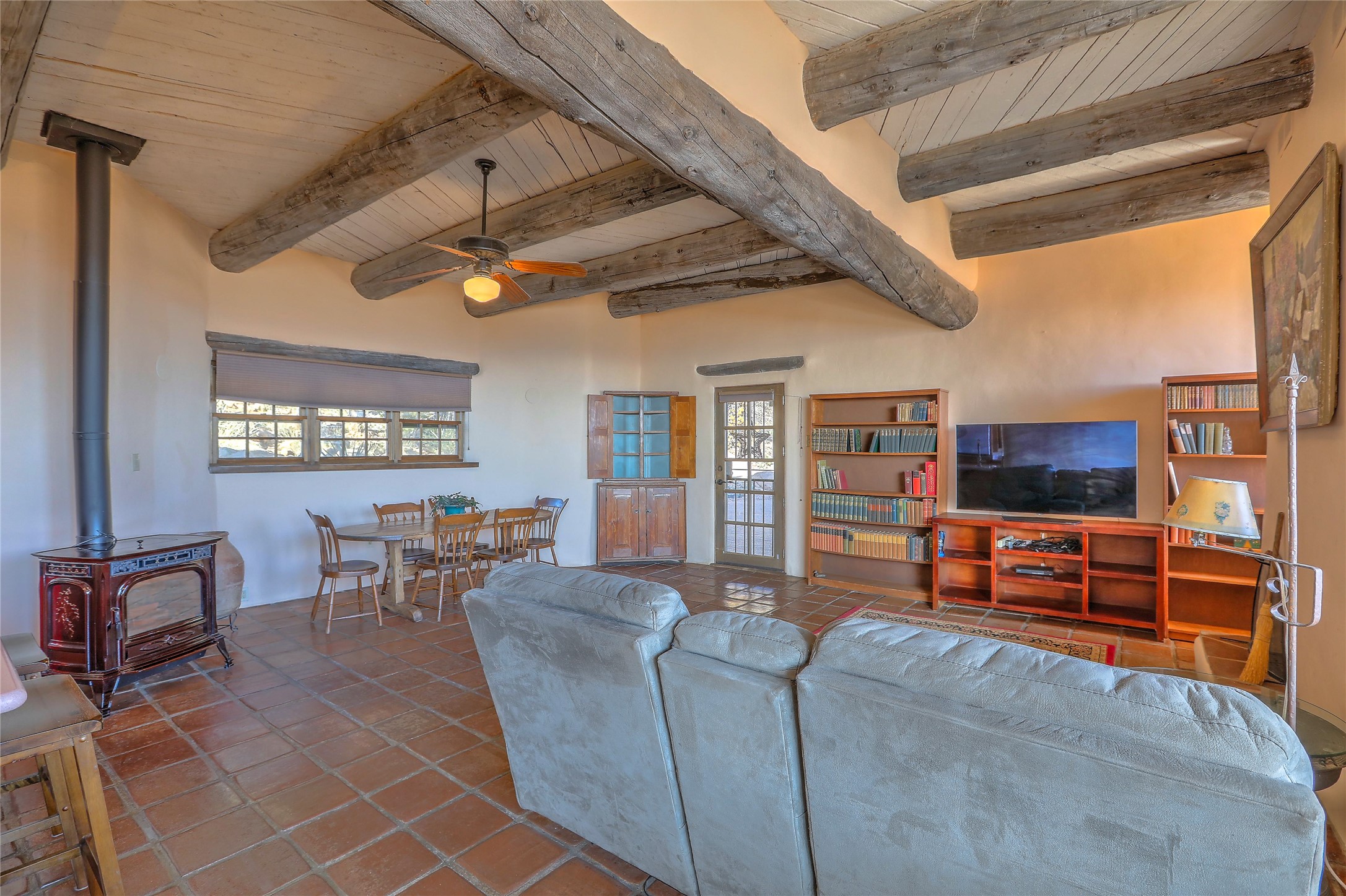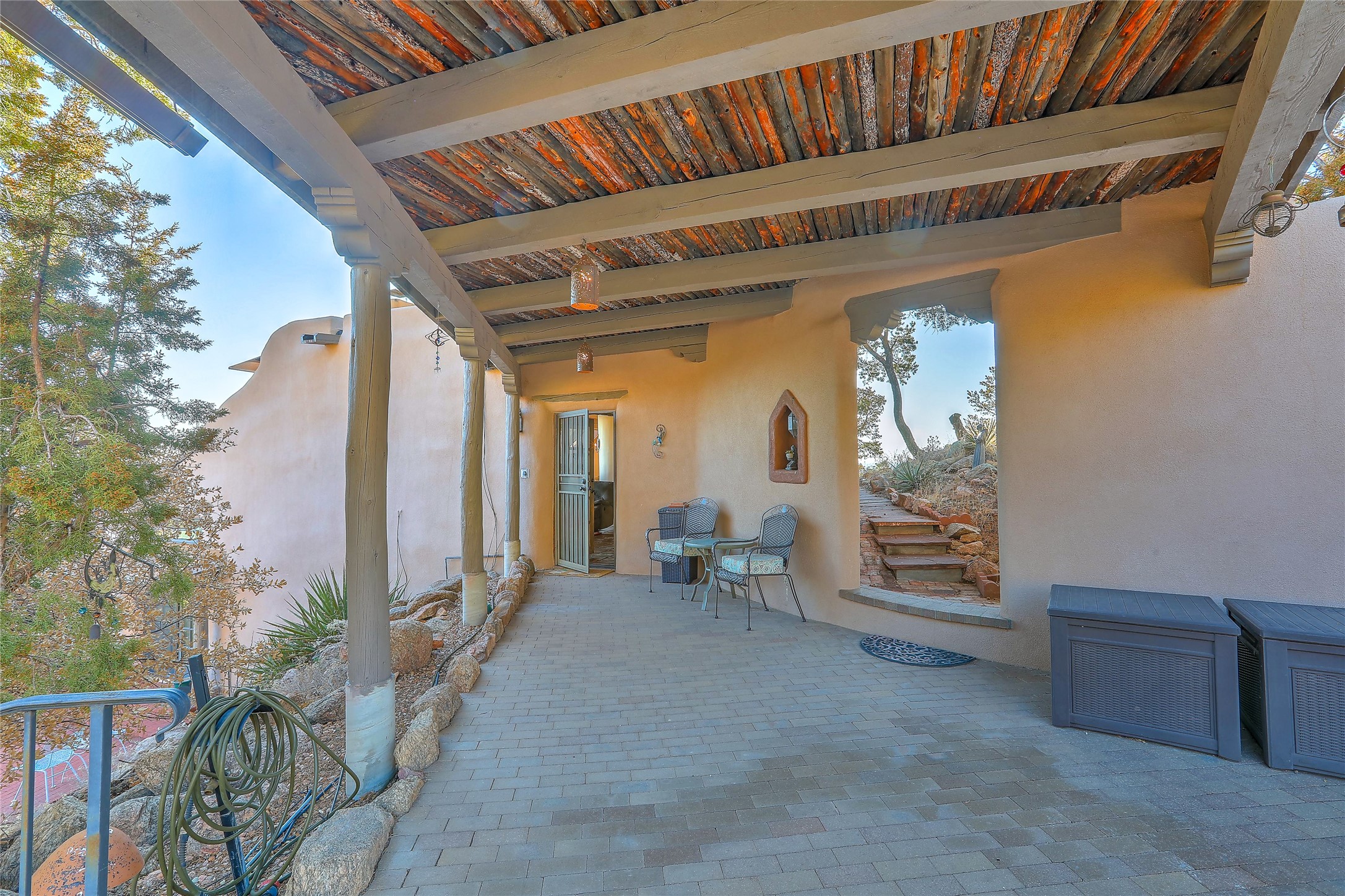 Welcome to your serene sanctuary in Monte De Las Piedras! Immerse yourself in the beauty of this passive solar adobe home, featuring 2-4 bedrooms and 2 full baths. Sitting on 11.85 acres with awe-inspiring mountain views, this split-level residence boasts a charming stone fireplace downstairs and a spacious open kitchen, living, and dining area with an additional fireplace and wood stove for cozy evenings. Step outside onto the view deck, where stunning landscapes unfold before you. The home is adorned with Saltillo tile in the main living areas and wood floors in the bedrooms, creating a warm atmosphere throughout. With a 3-car carport and ample outdoor living space, this property offers the perfect blend of comfort and nature. Make it yours today!