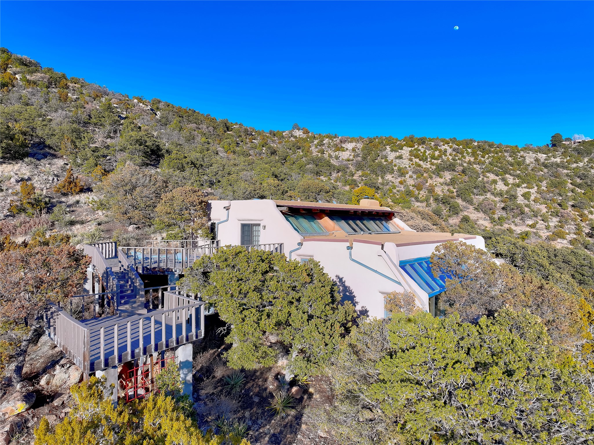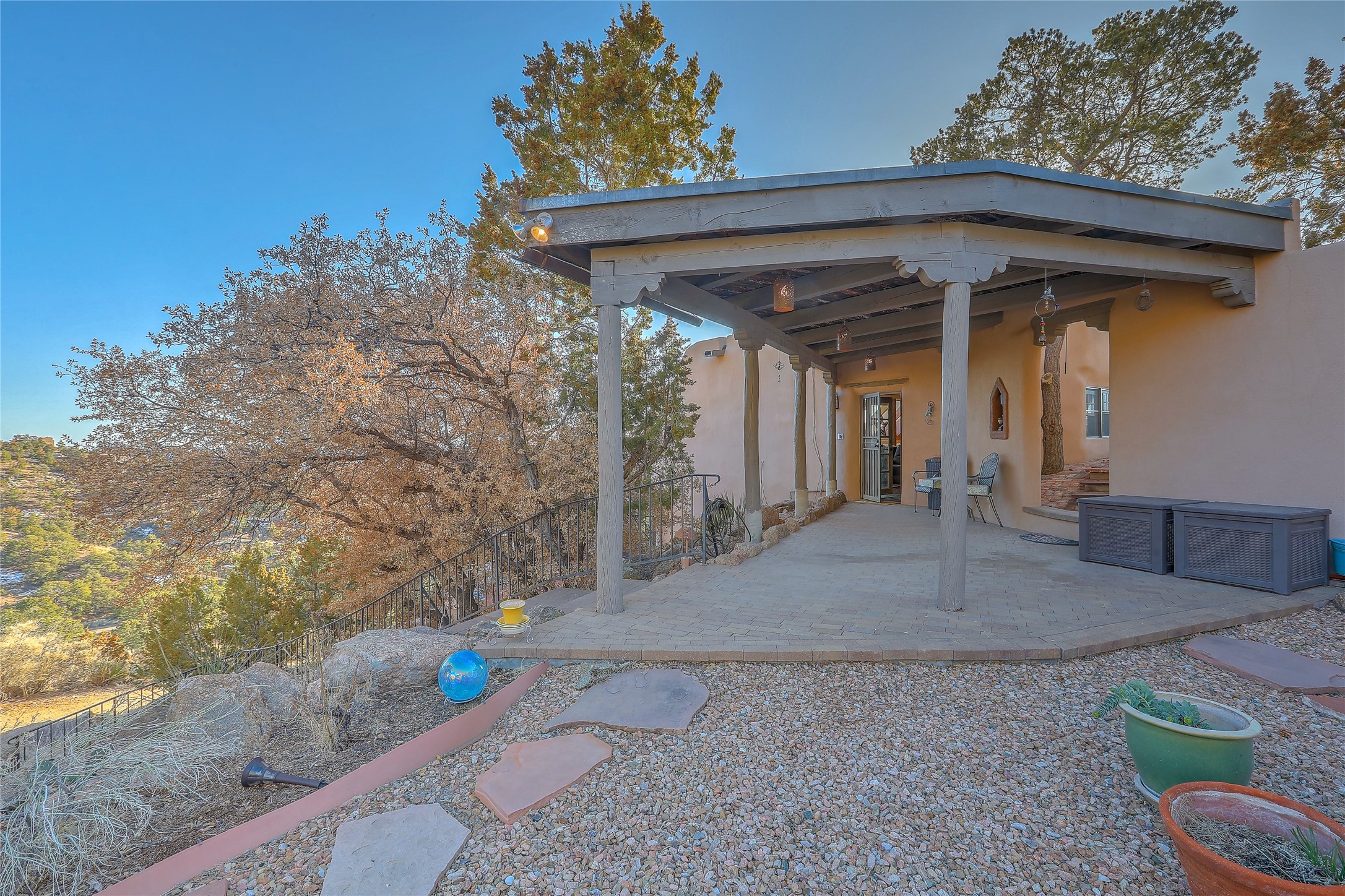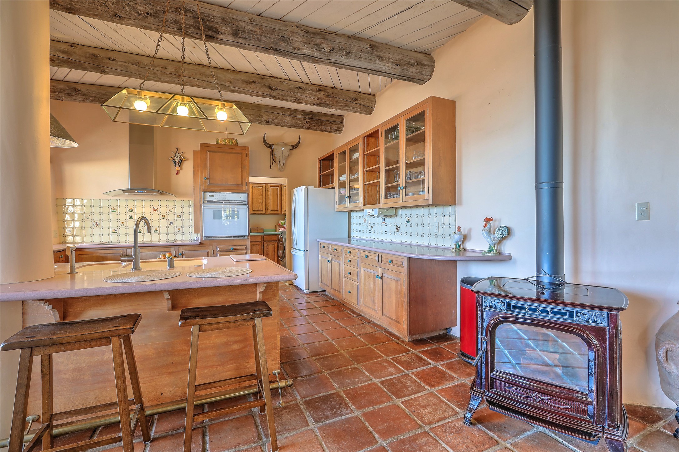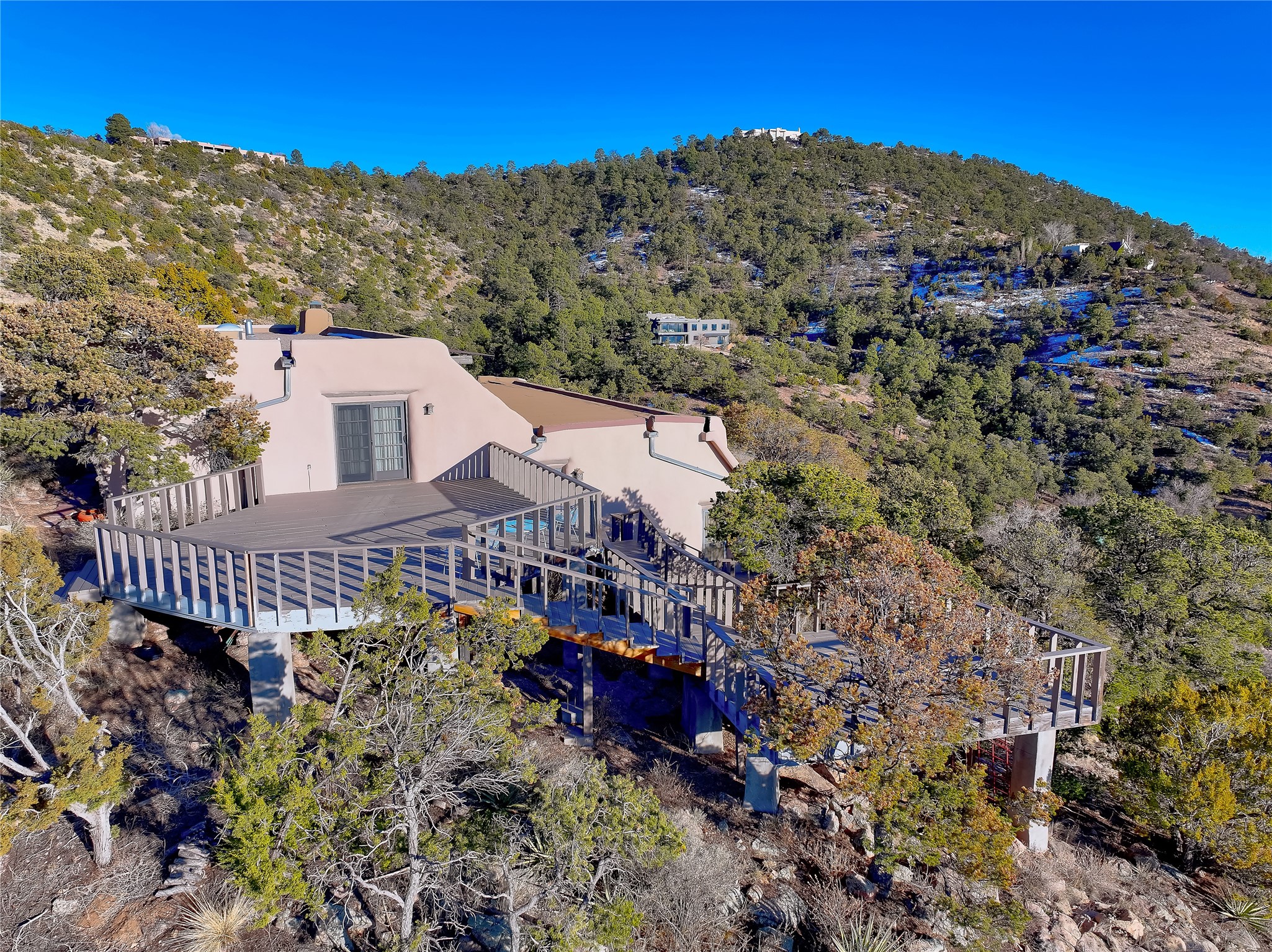 Welcome to your serene sanctuary in Monte De Las Piedras! Immerse yourself in the beauty of this passive solar adobe home, featuring 2-4 bedrooms and 2 full baths. Sitting on 11.85 acres with awe-inspiring mountain views, this split-level residence boasts a charming stone fireplace downstairs and a spacious open kitchen, living, and dining area with an additional fireplace and wood stove for cozy evenings. Step outside onto the view deck, where stunning landscapes unfold before you. The home is adorned with Saltillo tile in the main living areas and wood floors in the bedrooms, creating a warm atmosphere throughout. With a 3-car carport and ample outdoor living space, this property offers the perfect blend of comfort and nature. Make it yours today!