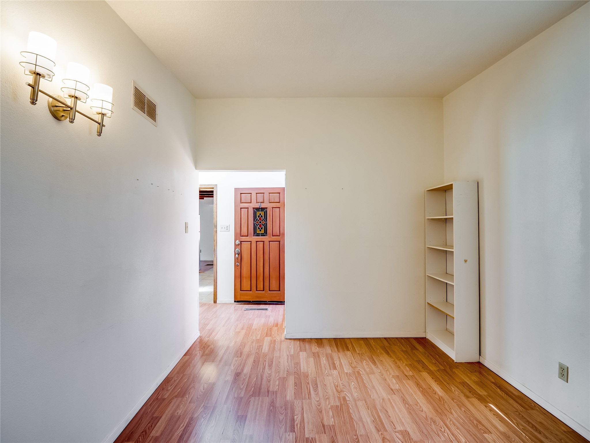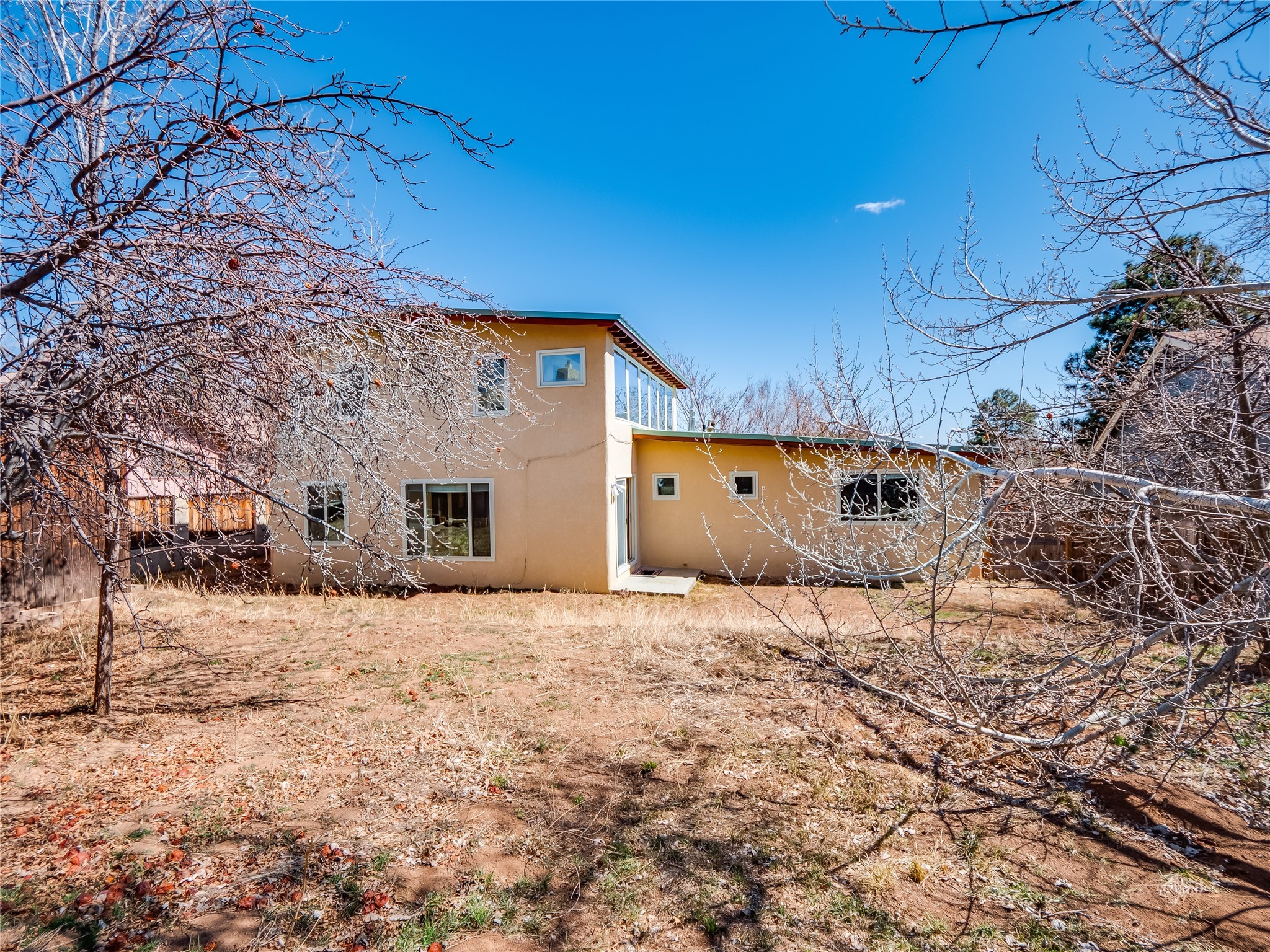 Located in a North Mesa neighborhood, this charming two-story home offers a perfect blend of warmth and character. A low-maintenance front yard with mature trees and a gated front courtyard welcomes you into this inviting residence. Once inside you'll find wood laminate floors that flow throughout the home, complemented by vaulted wood-beamed ceilings and large windows that fill the space with natural light. To the left, a versatile bonus room/den awaits. The bright and airy living room features a partial dropped wood-beamed ceiling that extends into the main living areas, along with sliding doors that lead to the backyard. Adjacent to the living room is another cozy bonus space--ideal for an office or reading nook--with access to the side yard. The intimate dining area is perfectly situated next to the kitchen and features a deep storage closet for added convenience. The kitchen boasts rich wood cabinetry, tile floors, a stylish tiled backsplash, a stainless steel refrigerator, and a brand-new electric cooktop. An additional open space in the kitchen offers the flexibility for a dining nook or a coffee or beverage bar. From here, you'll also find access to the two-car garage. Down the hallway, a guest bath, a spacious guest bedroom, and a guest en-suite provide comfortable accommodations for family and visitors. The conveniently located laundry room adds to the home's practical design. Upstairs, another guest bedroom awaits, along with the expansive primary en-suite, which features double walk-in closets and a well-appointed bath with dual sink vanities and a tiled shower/tub combination. The home has seen significant updates in 2017, including a new metal roof, stucco, windows, garage door, hot water heater, and furnace, offering peace of mind and energy efficiency. The large fenced-in backyard features mature fruit trees and ample space to design your dream outdoor oasis. Close to schools, parks, horse stables, and scenic trails, this unique home could be yours!