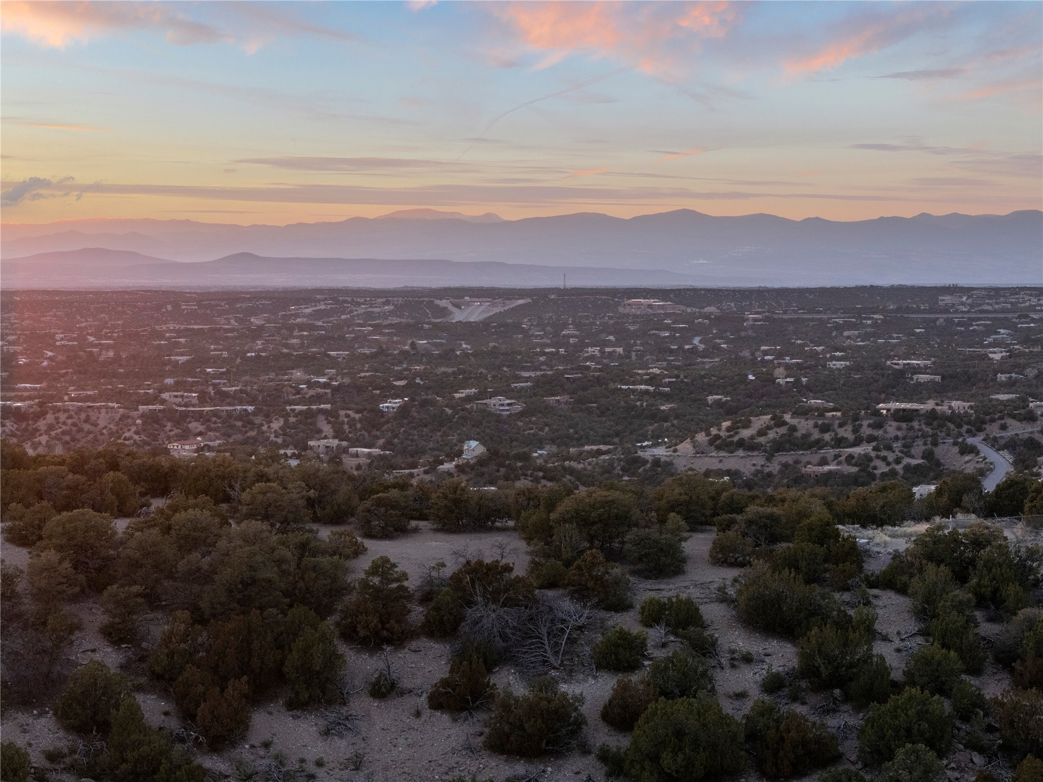 Sited high in the Sangre De Cristo foothills yet only a paved 8-minute drive to the Santa Fe Plaza this spectacular view homesite offers dramatic 360-degree views, including sunsets across the entire Jemez range, distant San Antonio Mountain, northeastern views of the Santa Fe Ski basin, eastern views of the "Snow Hearts" below Thompson Peak and on a clear day north to Colorado! In the evenings, enjoy hours of twinkling Santa Fe & Los Alamos City lights, an ocean of stars & astounding eastern moonrises! This quiet, private, corner homesite is one of the last remaining, easily buildable large acreage lots in the coveted Sierra Del Norte Subdivision (2.026 acres per a 5/18/2023 survey). Due to the lot configuration, there is a preferred building site located on a relatively level "saddle" which provides an elevated viewto the West/Northwest & East/Southeast. This ideal location provides a generous, easily developable building envelope with portions in both the "Foothills" & "Ridgeline" classifications. Per pre-design consultations with the City of Santa Fe, the building envelope holds "Grandfather" status due to the 1990 platting date, prior to the adoption of the 1992 ordinances governing construction in the "Escarpment, Ridgeline & Foothills" classifications, provided the design accommodates building height & additional escarpment requirements. There is Underground Electric, City Water & Sewer, Cable, High-Speed Internet & Natural Gas. The purchase of this amazing homesite includes a 5/18/2023 survey, a 9/5/2023 Tree & Topographic survey plus partially developed plans for a 3,860-Foot Custom Home, 600-foot Detached Guest House and an oversized 3 rd bay Workshop/RV Garage created by the award-winning Hoopes Architects of Santa Fe. Pick up where the seller left off to create your dream home in this highly coveted, close-in neighborhood surrounded by premium custom homes with sensible restrictive covenants.